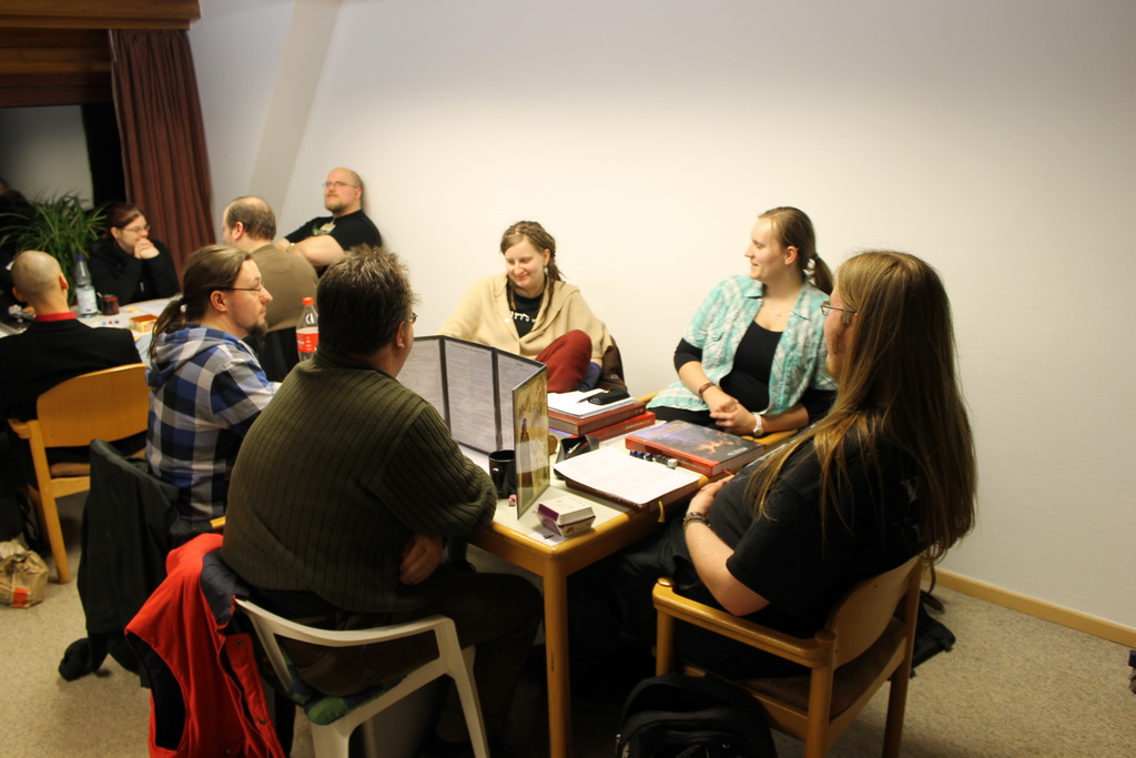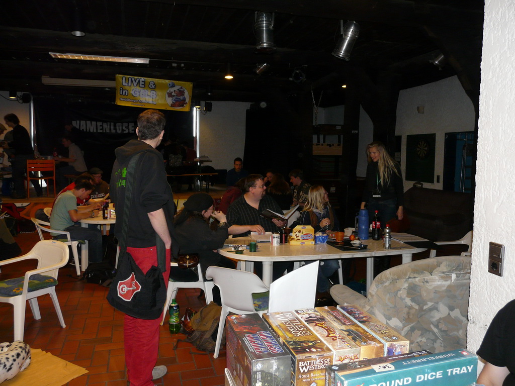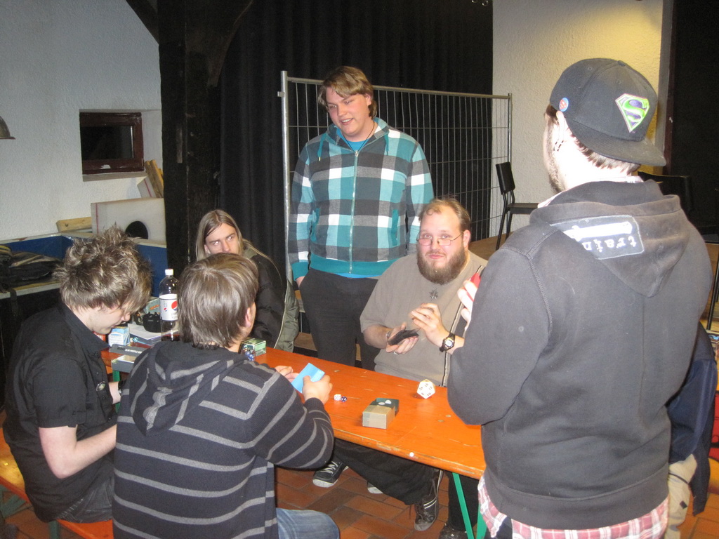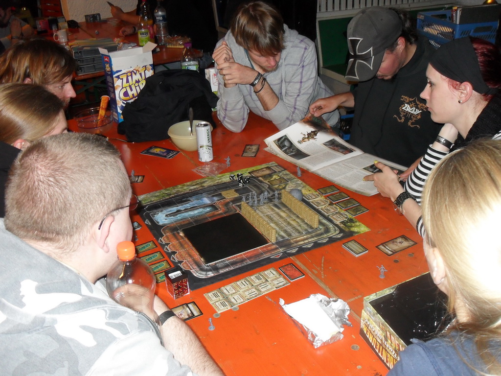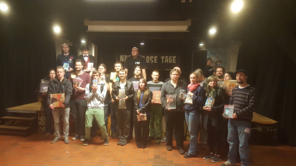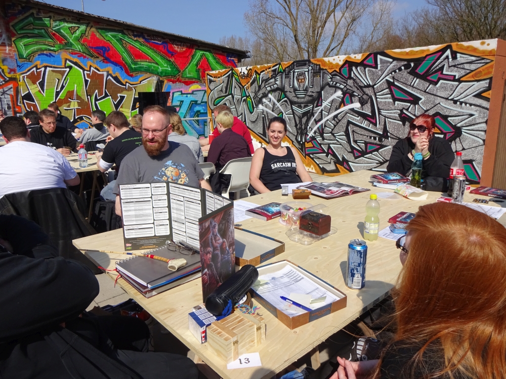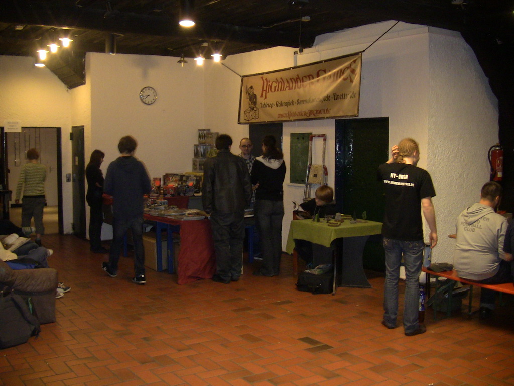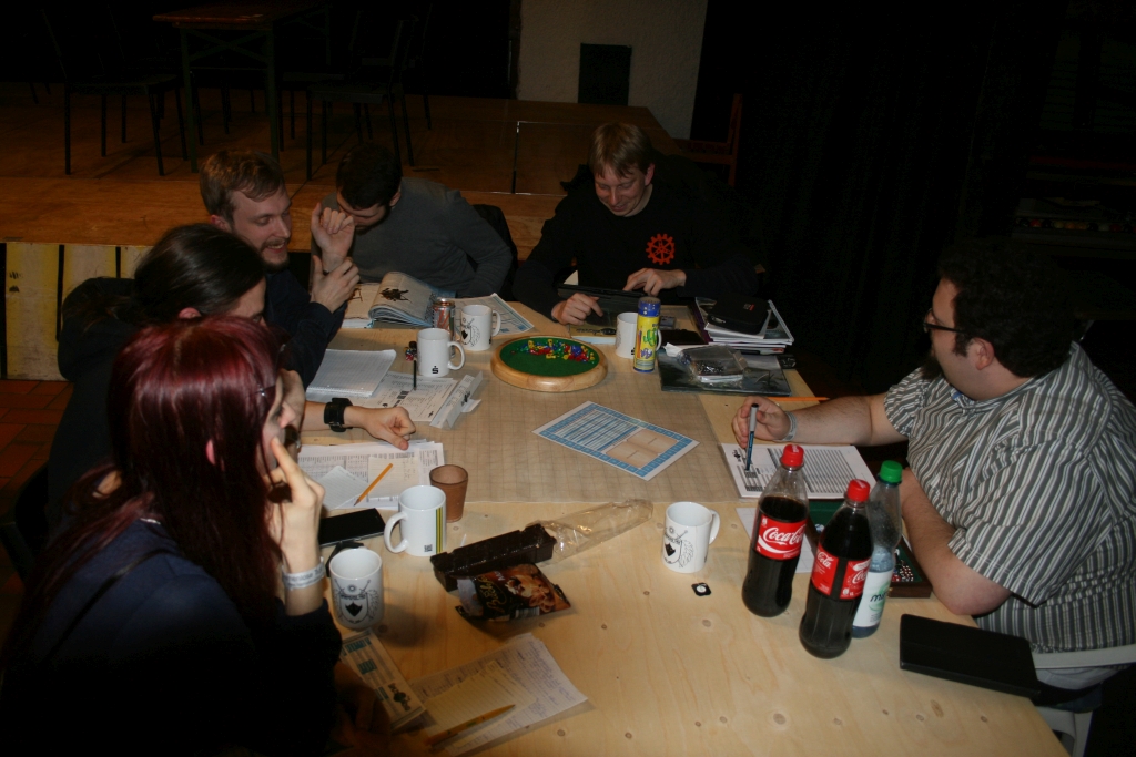 NT24: Bei frischem, wenn doch trockenem Wetter, öffneten sich die Pforten gegen 17:30 Uhr und der Run auf die Tassen im JD Style konnte beginnen. Mit Flatrate und Proviant gewappnet ging es auch schon an die Spieltische. Wer hingegen etwas Kultur genießen wollte, war in der Lesung mit Bernhard Hennen genau richtig. Als der Chilimeister zum Mitternachtsimbiss rief und auch der letzte eine Spielrunde oder bereits einen Platz im Schlafraum der neuen Kita gefunden hatte, ging der Freitag mit einem neuen Besucherrekord von 212 Gästen zu Ende. Am Samstag sollte es spannend werden, ob der Wegfall des Obergeschosses im Jugendhaus auf die Tischreserven auswirken sollte, doch dem war nicht so. Auch einem erneuten Wurststau konnte entgegengewirkt werden, trotz dessen es zu kurzen Wartezeiten beim Grillmeister kam. Mit der Wunschlesung von Bernhard Hennen und Tom Daut wurde auch der Samstag Nachmittag literarisch aufgewertet. Bei der Tombola am Abend konnte man gleich zu Beginn, oder doch am Ende, den verwirrten Gästen eine Besucherzahl von 310 präsentieren. Am Sonntag sollte, ausser beim Grillmeister nichts mehr anbrennen. Die Besucher die es bis dahin geschafft hatten gegen die Müdigkeit anzukämpfen nutzten nochmal ihre Flatrate und spielten bis zur letzten Minute. Mit 321 Gästen, ging die an der Besucherzahl gemessene zweit stärkste Märzveranstaltung zu Ende.