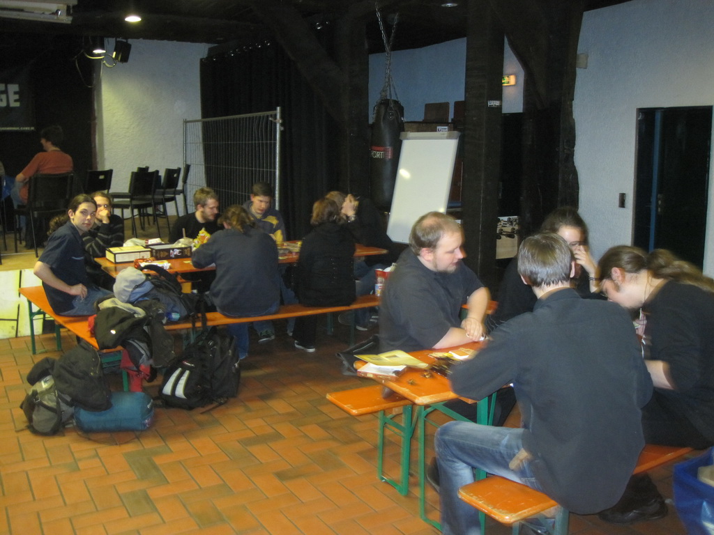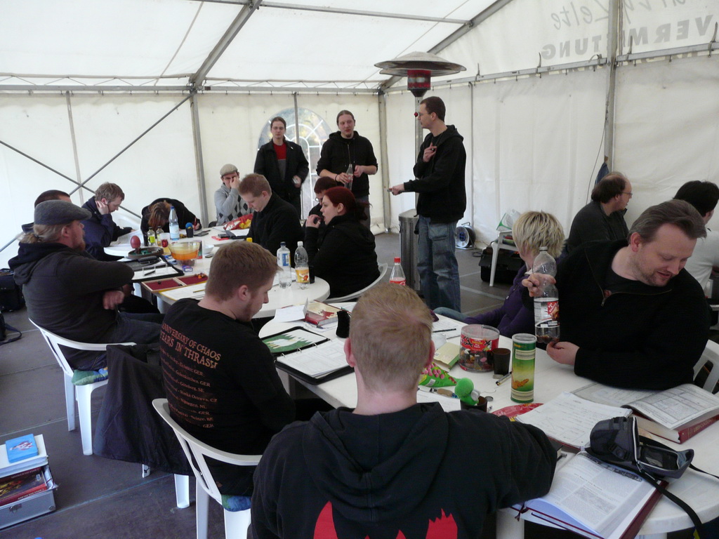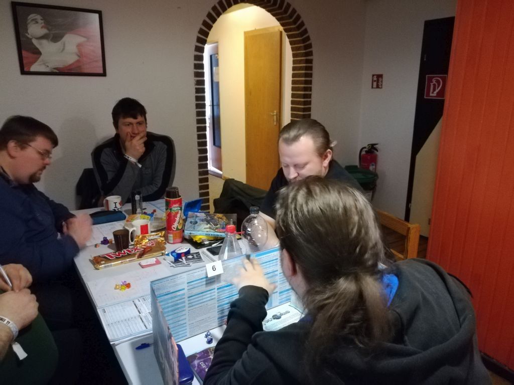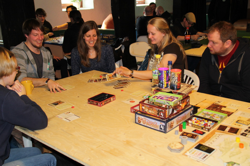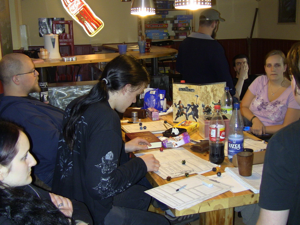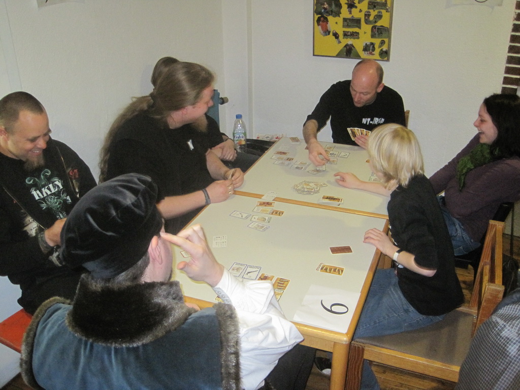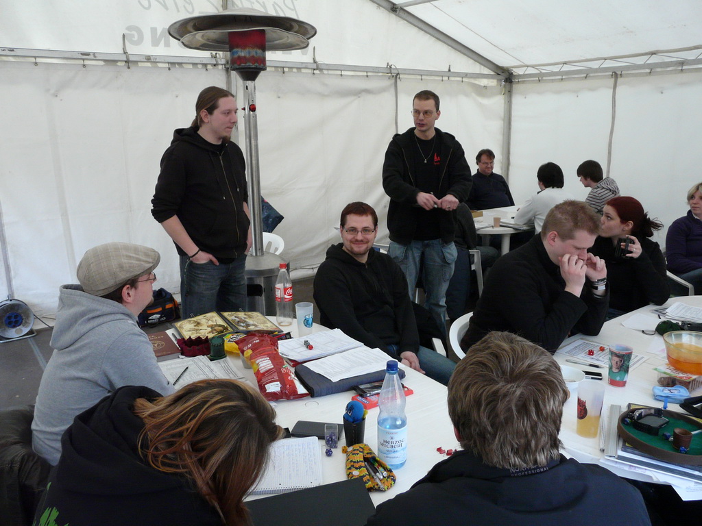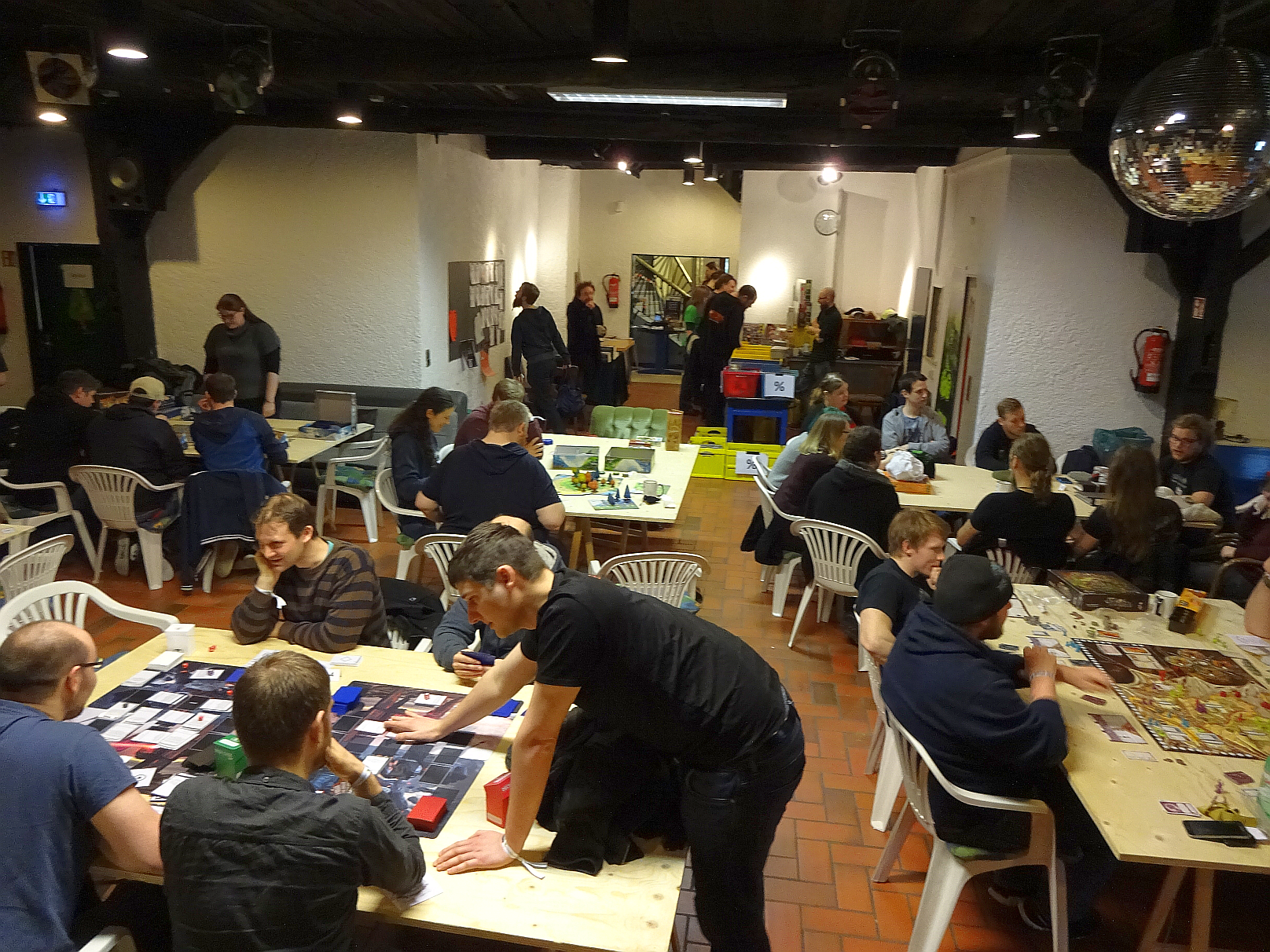 NT24: Bei frischem, wenn doch trockenem Wetter, öffneten sich die Pforten gegen 17:30 Uhr und der Run auf die Tassen im JD Style konnte beginnen. Mit Flatrate und Proviant gewappnet ging es auch schon an die Spieltische. Wer hingegen etwas Kultur genießen wollte, war in der Lesung mit Bernhard Hennen genau richtig. Als der Chilimeister zum Mitternachtsimbiss rief und auch der letzte eine Spielrunde oder bereits einen Platz im Schlafraum der neuen Kita gefunden hatte, ging der Freitag mit einem neuen Besucherrekord von 212 Gästen zu Ende. Am Samstag sollte es spannend werden, ob der Wegfall des Obergeschosses im Jugendhaus auf die Tischreserven auswirken sollte, doch dem war nicht so. Auch einem erneuten Wurststau konnte entgegengewirkt werden, trotz dessen es zu kurzen Wartezeiten beim Grillmeister kam. Mit der Wunschlesung von Bernhard Hennen und Tom Daut wurde auch der Samstag Nachmittag literarisch aufgewertet. Bei der Tombola am Abend konnte man gleich zu Beginn, oder doch am Ende, den verwirrten Gästen eine Besucherzahl von 310 präsentieren. Am Sonntag sollte, ausser beim Grillmeister nichts mehr anbrennen. Die Besucher die es bis dahin geschafft hatten gegen die Müdigkeit anzukämpfen nutzten nochmal ihre Flatrate und spielten bis zur letzten Minute. Mit 321 Gästen, ging die an der Besucherzahl gemessene zweit stärkste Märzveranstaltung zu Ende.