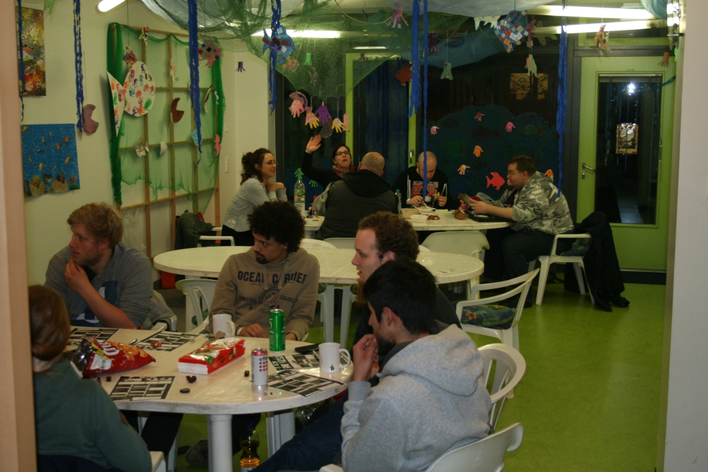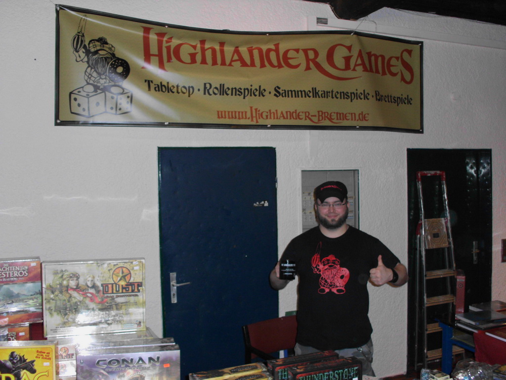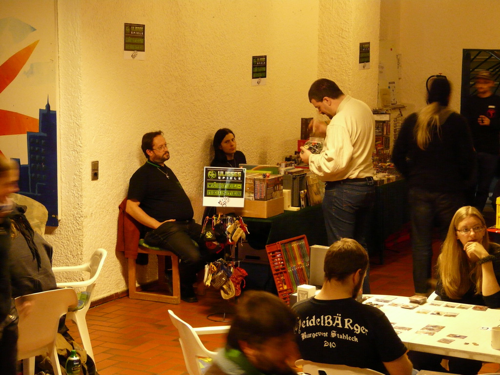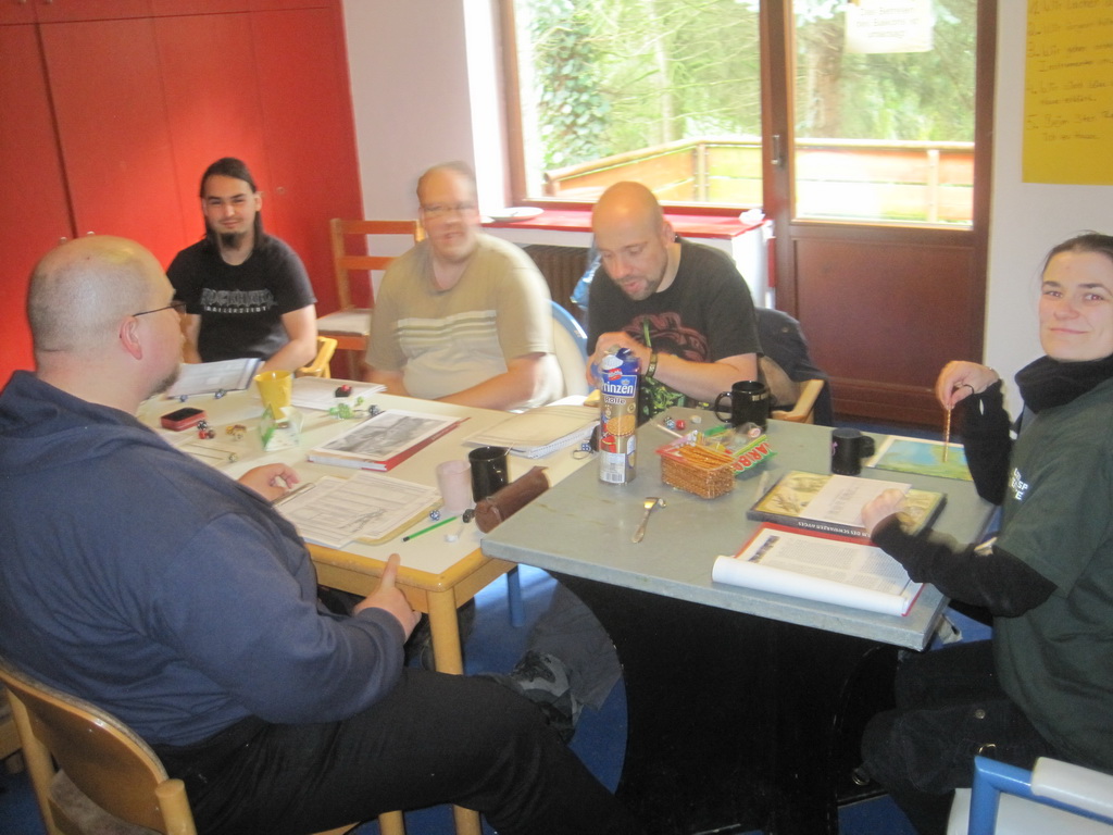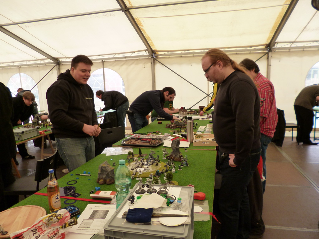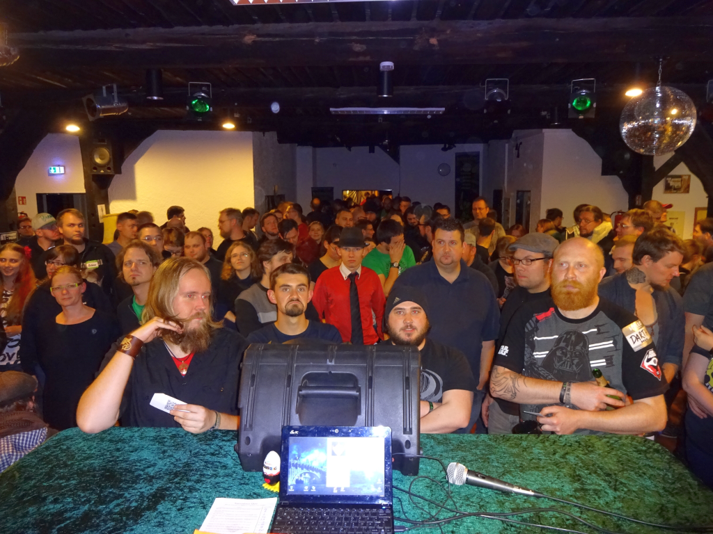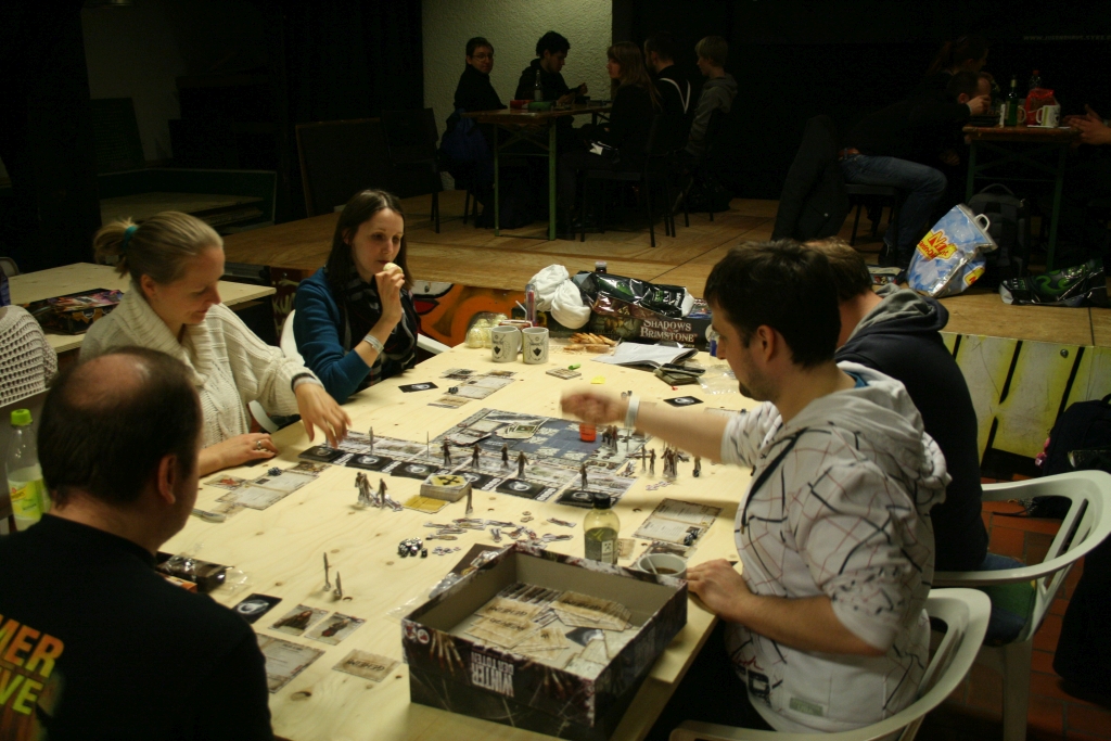 NT24: Bei frischem, wenn doch trockenem Wetter, öffneten sich die Pforten gegen 17:30 Uhr und der Run auf die Tassen im JD Style konnte beginnen. Mit Flatrate und Proviant gewappnet ging es auch schon an die Spieltische. Wer hingegen etwas Kultur genießen wollte, war in der Lesung mit Bernhard Hennen genau richtig. Als der Chilimeister zum Mitternachtsimbiss rief und auch der letzte eine Spielrunde oder bereits einen Platz im Schlafraum der neuen Kita gefunden hatte, ging der Freitag mit einem neuen Besucherrekord von 212 Gästen zu Ende. Am Samstag sollte es spannend werden, ob der Wegfall des Obergeschosses im Jugendhaus auf die Tischreserven auswirken sollte, doch dem war nicht so. Auch einem erneuten Wurststau konnte entgegengewirkt werden, trotz dessen es zu kurzen Wartezeiten beim Grillmeister kam. Mit der Wunschlesung von Bernhard Hennen und Tom Daut wurde auch der Samstag Nachmittag literarisch aufgewertet. Bei der Tombola am Abend konnte man gleich zu Beginn, oder doch am Ende, den verwirrten Gästen eine Besucherzahl von 310 präsentieren. Am Sonntag sollte, ausser beim Grillmeister nichts mehr anbrennen. Die Besucher die es bis dahin geschafft hatten gegen die Müdigkeit anzukämpfen nutzten nochmal ihre Flatrate und spielten bis zur letzten Minute. Mit 321 Gästen, ging die an der Besucherzahl gemessene zweit stärkste Märzveranstaltung zu Ende.