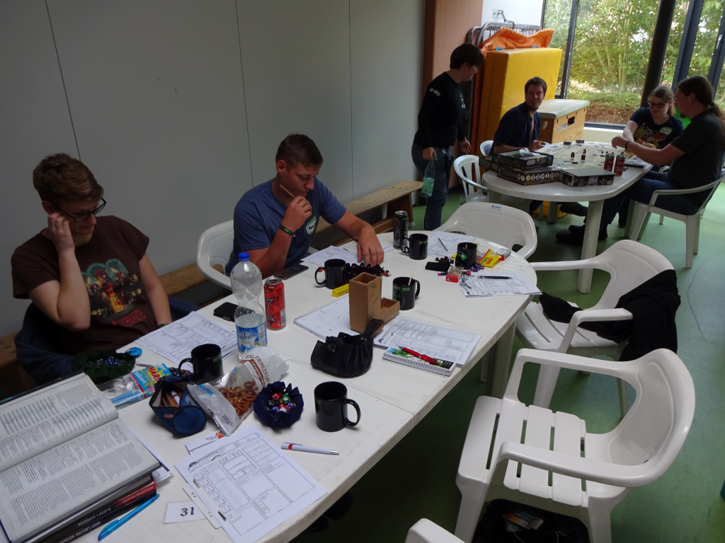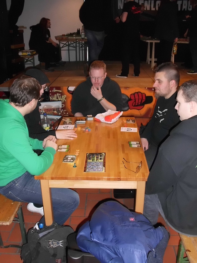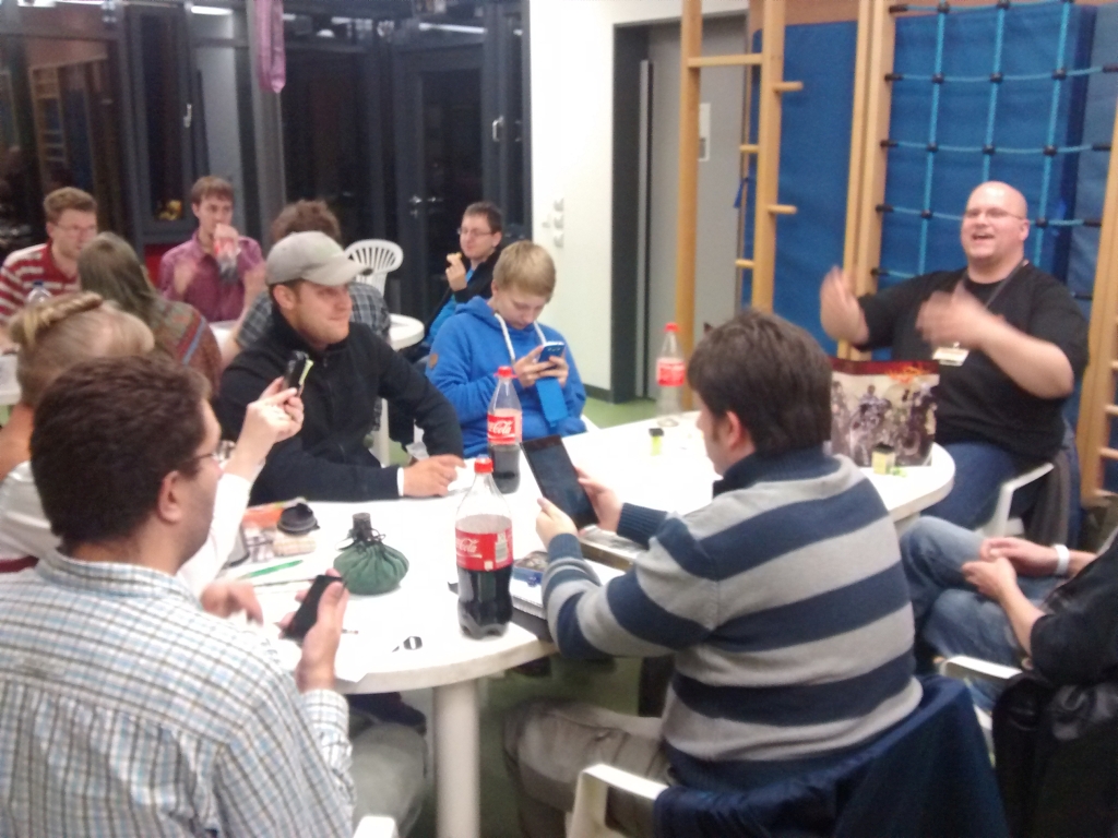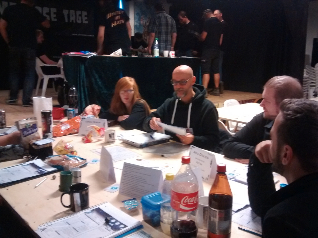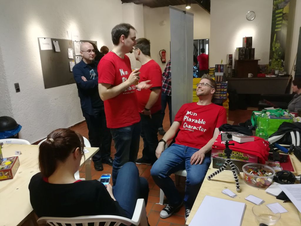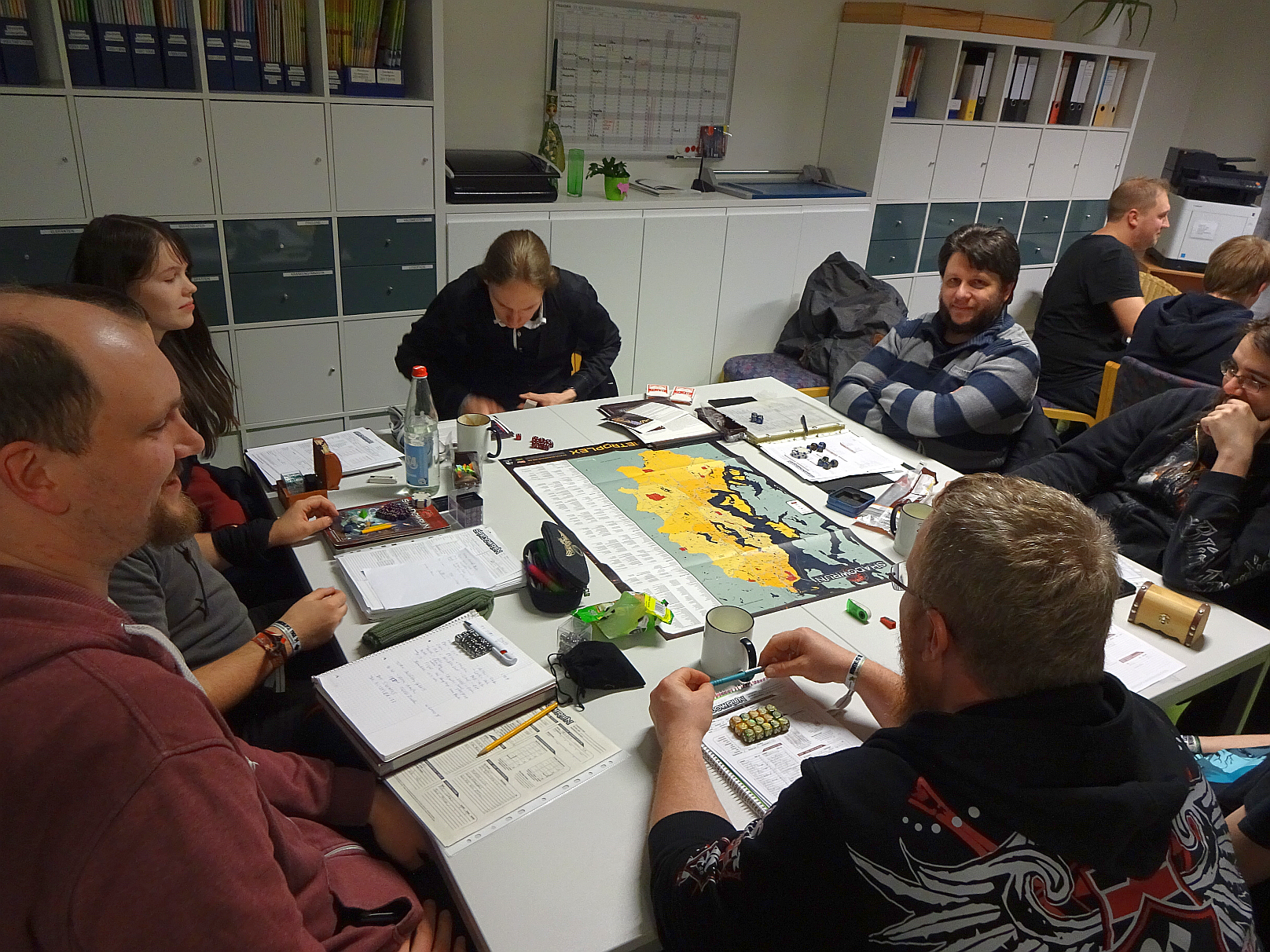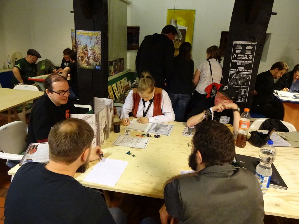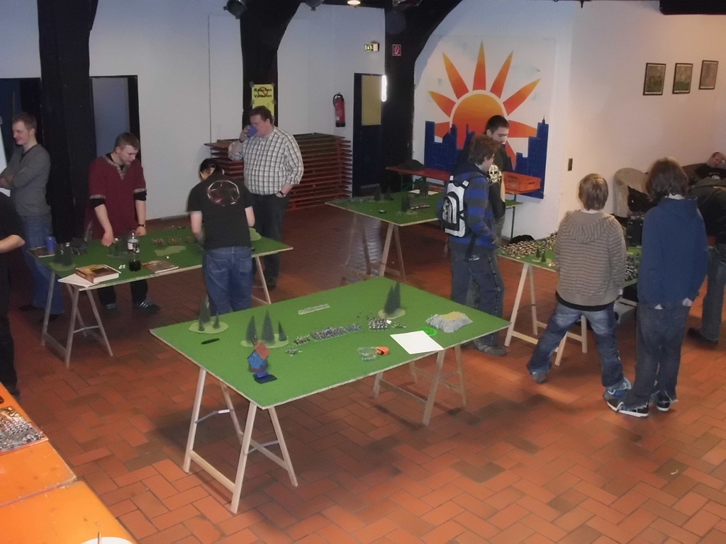 NT24: Bei frischem, wenn doch trockenem Wetter, öffneten sich die Pforten gegen 17:30 Uhr und der Run auf die Tassen im JD Style konnte beginnen. Mit Flatrate und Proviant gewappnet ging es auch schon an die Spieltische. Wer hingegen etwas Kultur genießen wollte, war in der Lesung mit Bernhard Hennen genau richtig. Als der Chilimeister zum Mitternachtsimbiss rief und auch der letzte eine Spielrunde oder bereits einen Platz im Schlafraum der neuen Kita gefunden hatte, ging der Freitag mit einem neuen Besucherrekord von 212 Gästen zu Ende. Am Samstag sollte es spannend werden, ob der Wegfall des Obergeschosses im Jugendhaus auf die Tischreserven auswirken sollte, doch dem war nicht so. Auch einem erneuten Wurststau konnte entgegengewirkt werden, trotz dessen es zu kurzen Wartezeiten beim Grillmeister kam. Mit der Wunschlesung von Bernhard Hennen und Tom Daut wurde auch der Samstag Nachmittag literarisch aufgewertet. Bei der Tombola am Abend konnte man gleich zu Beginn, oder doch am Ende, den verwirrten Gästen eine Besucherzahl von 310 präsentieren. Am Sonntag sollte, ausser beim Grillmeister nichts mehr anbrennen. Die Besucher die es bis dahin geschafft hatten gegen die Müdigkeit anzukämpfen nutzten nochmal ihre Flatrate und spielten bis zur letzten Minute. Mit 321 Gästen, ging die an der Besucherzahl gemessene zweit stärkste Märzveranstaltung zu Ende.