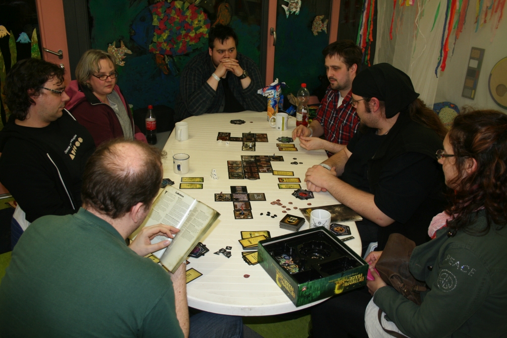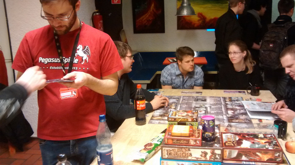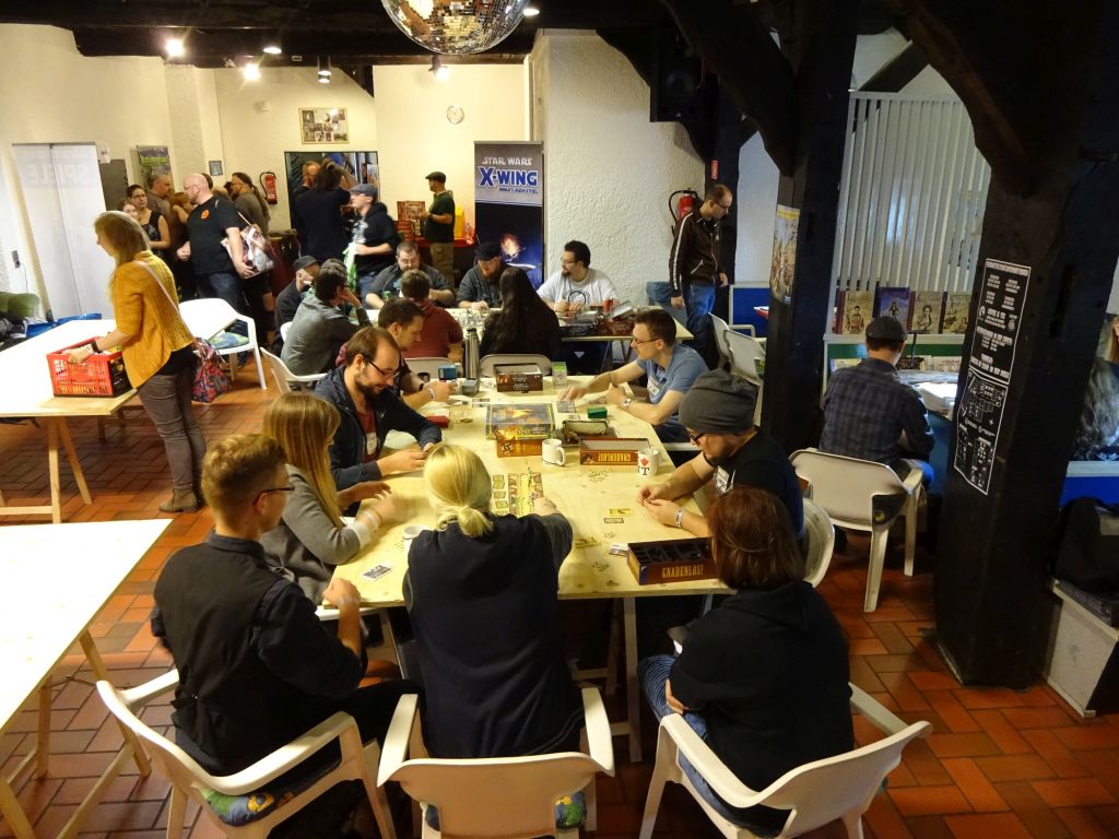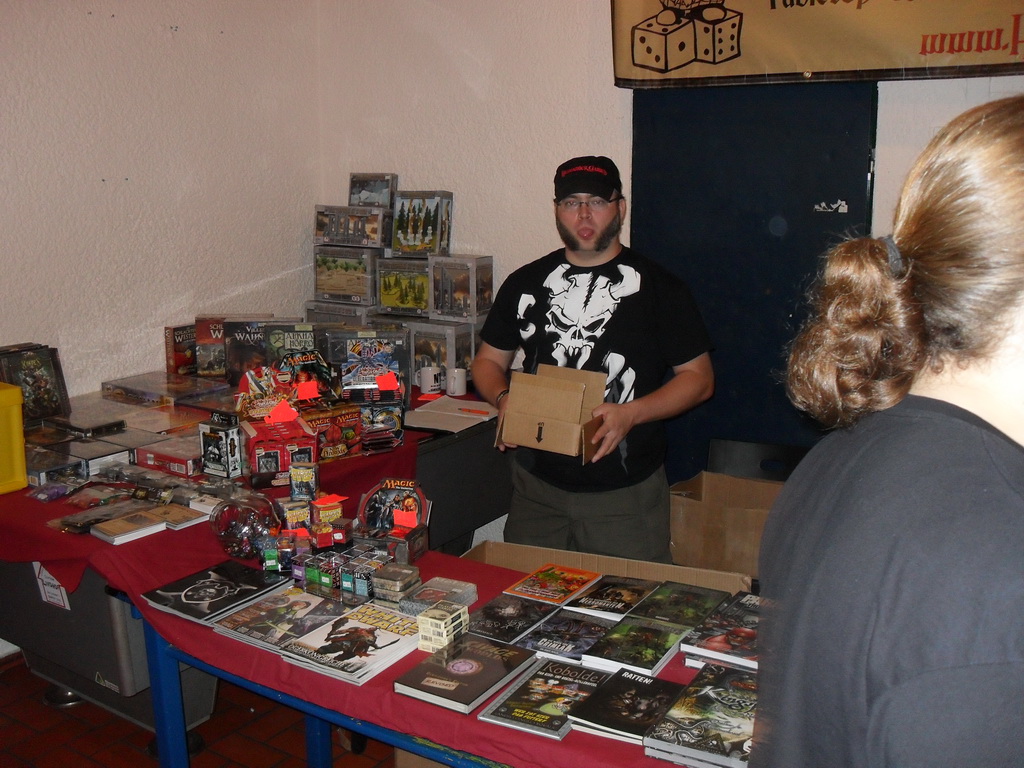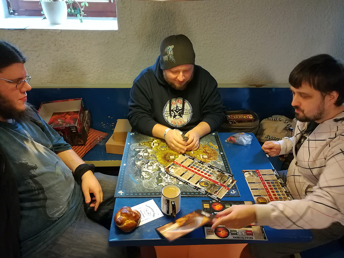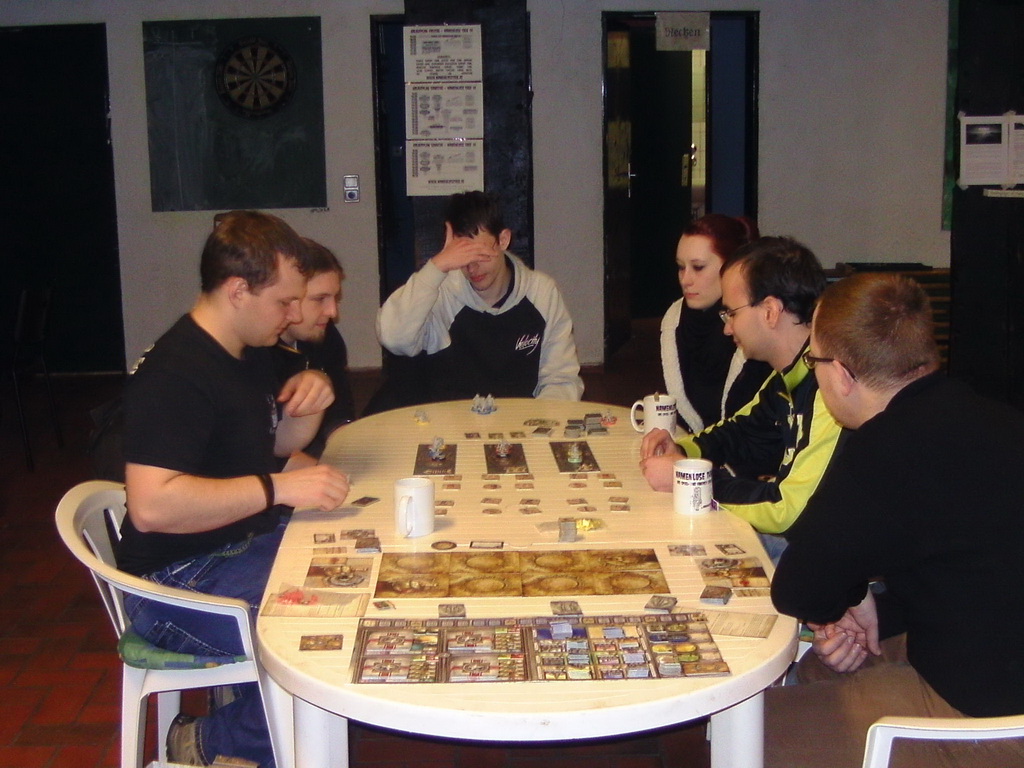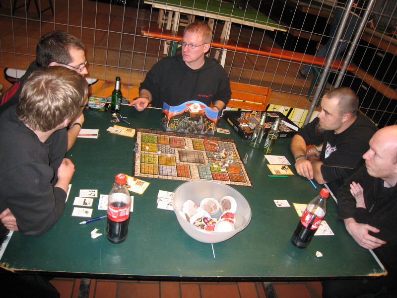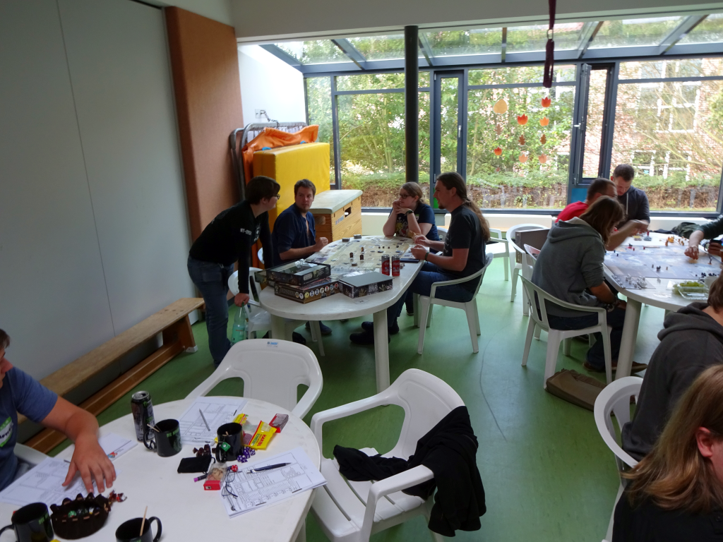 NT24: Bei frischem, wenn doch trockenem Wetter, öffneten sich die Pforten gegen 17:30 Uhr und der Run auf die Tassen im JD Style konnte beginnen. Mit Flatrate und Proviant gewappnet ging es auch schon an die Spieltische. Wer hingegen etwas Kultur genießen wollte, war in der Lesung mit Bernhard Hennen genau richtig. Als der Chilimeister zum Mitternachtsimbiss rief und auch der letzte eine Spielrunde oder bereits einen Platz im Schlafraum der neuen Kita gefunden hatte, ging der Freitag mit einem neuen Besucherrekord von 212 Gästen zu Ende. Am Samstag sollte es spannend werden, ob der Wegfall des Obergeschosses im Jugendhaus auf die Tischreserven auswirken sollte, doch dem war nicht so. Auch einem erneuten Wurststau konnte entgegengewirkt werden, trotz dessen es zu kurzen Wartezeiten beim Grillmeister kam. Mit der Wunschlesung von Bernhard Hennen und Tom Daut wurde auch der Samstag Nachmittag literarisch aufgewertet. Bei der Tombola am Abend konnte man gleich zu Beginn, oder doch am Ende, den verwirrten Gästen eine Besucherzahl von 310 präsentieren. Am Sonntag sollte, ausser beim Grillmeister nichts mehr anbrennen. Die Besucher die es bis dahin geschafft hatten gegen die Müdigkeit anzukämpfen nutzten nochmal ihre Flatrate und spielten bis zur letzten Minute. Mit 321 Gästen, ging die an der Besucherzahl gemessene zweit stärkste Märzveranstaltung zu Ende.