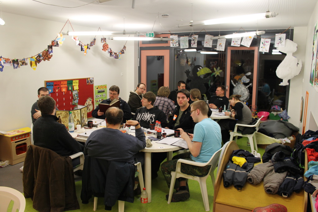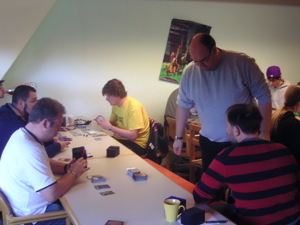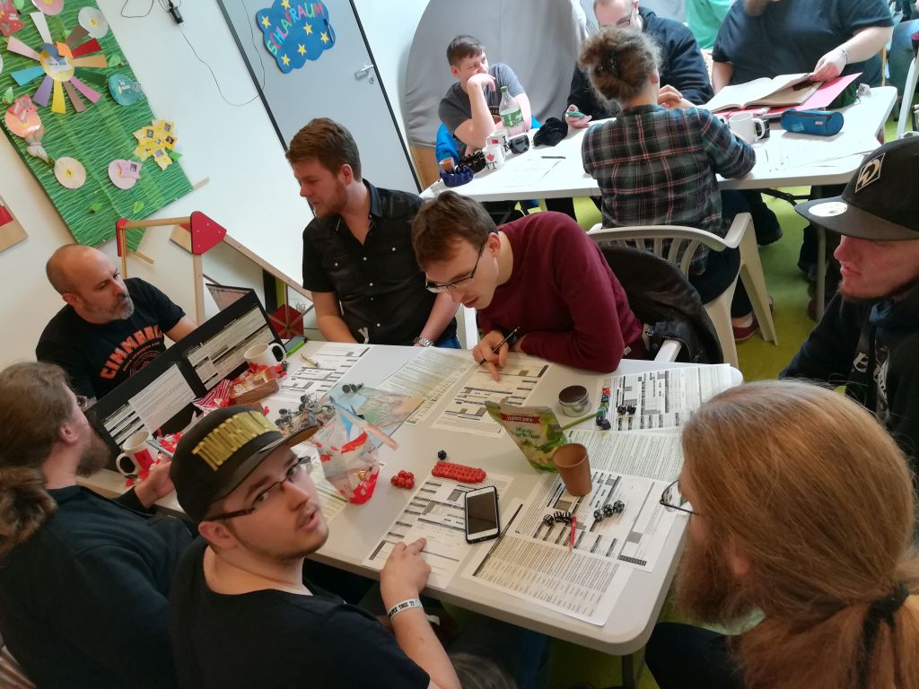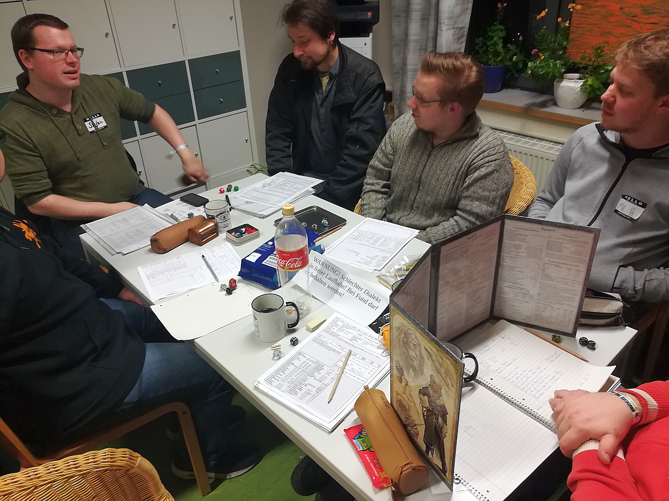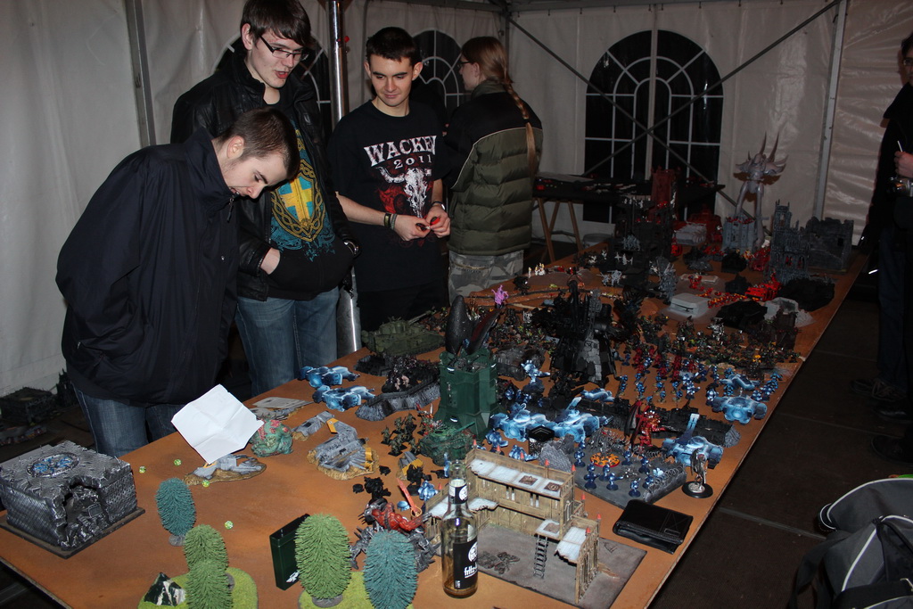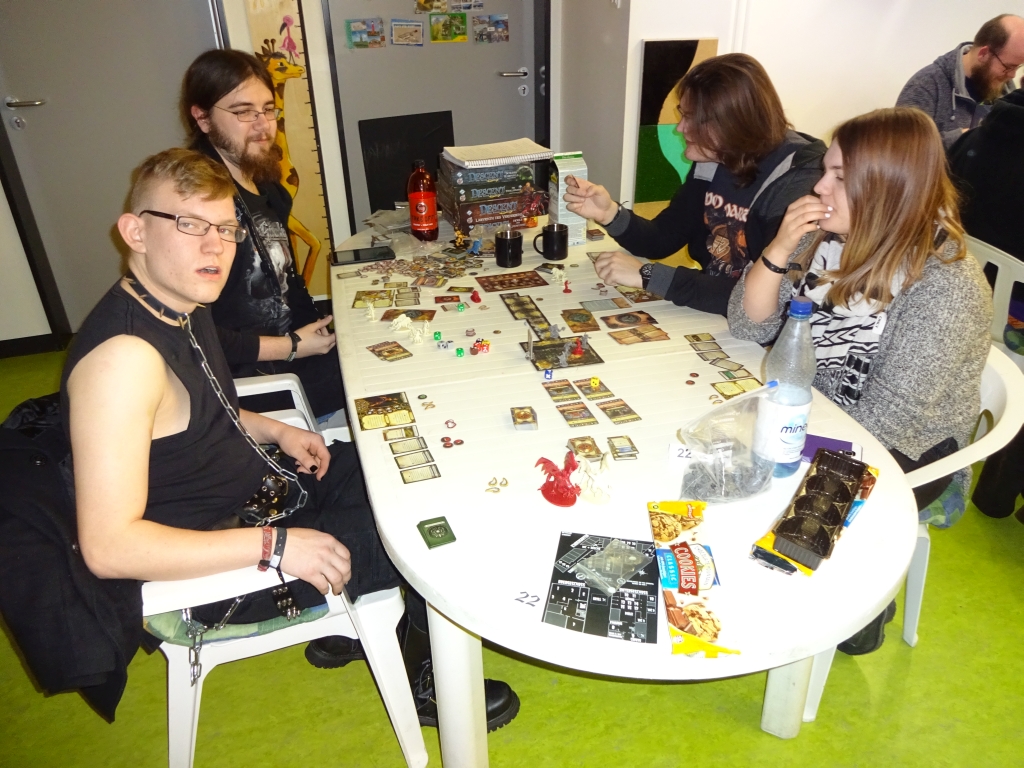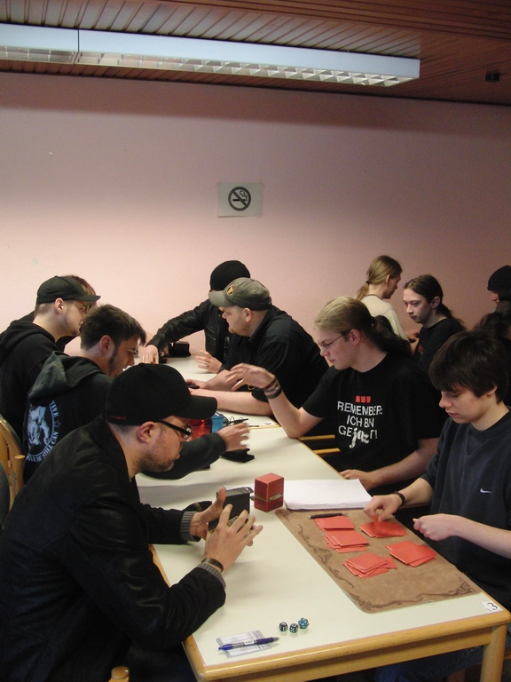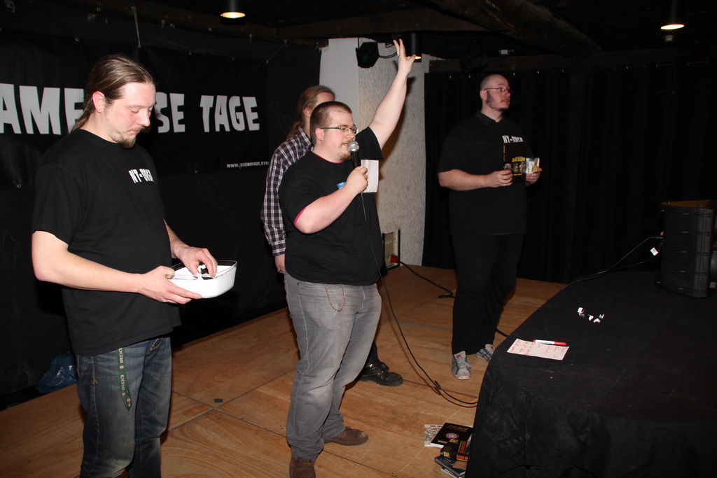 NT24: Bei frischem, wenn doch trockenem Wetter, öffneten sich die Pforten gegen 17:30 Uhr und der Run auf die Tassen im JD Style konnte beginnen. Mit Flatrate und Proviant gewappnet ging es auch schon an die Spieltische. Wer hingegen etwas Kultur genießen wollte, war in der Lesung mit Bernhard Hennen genau richtig. Als der Chilimeister zum Mitternachtsimbiss rief und auch der letzte eine Spielrunde oder bereits einen Platz im Schlafraum der neuen Kita gefunden hatte, ging der Freitag mit einem neuen Besucherrekord von 212 Gästen zu Ende. Am Samstag sollte es spannend werden, ob der Wegfall des Obergeschosses im Jugendhaus auf die Tischreserven auswirken sollte, doch dem war nicht so. Auch einem erneuten Wurststau konnte entgegengewirkt werden, trotz dessen es zu kurzen Wartezeiten beim Grillmeister kam. Mit der Wunschlesung von Bernhard Hennen und Tom Daut wurde auch der Samstag Nachmittag literarisch aufgewertet. Bei der Tombola am Abend konnte man gleich zu Beginn, oder doch am Ende, den verwirrten Gästen eine Besucherzahl von 310 präsentieren. Am Sonntag sollte, ausser beim Grillmeister nichts mehr anbrennen. Die Besucher die es bis dahin geschafft hatten gegen die Müdigkeit anzukämpfen nutzten nochmal ihre Flatrate und spielten bis zur letzten Minute. Mit 321 Gästen, ging die an der Besucherzahl gemessene zweit stärkste Märzveranstaltung zu Ende.