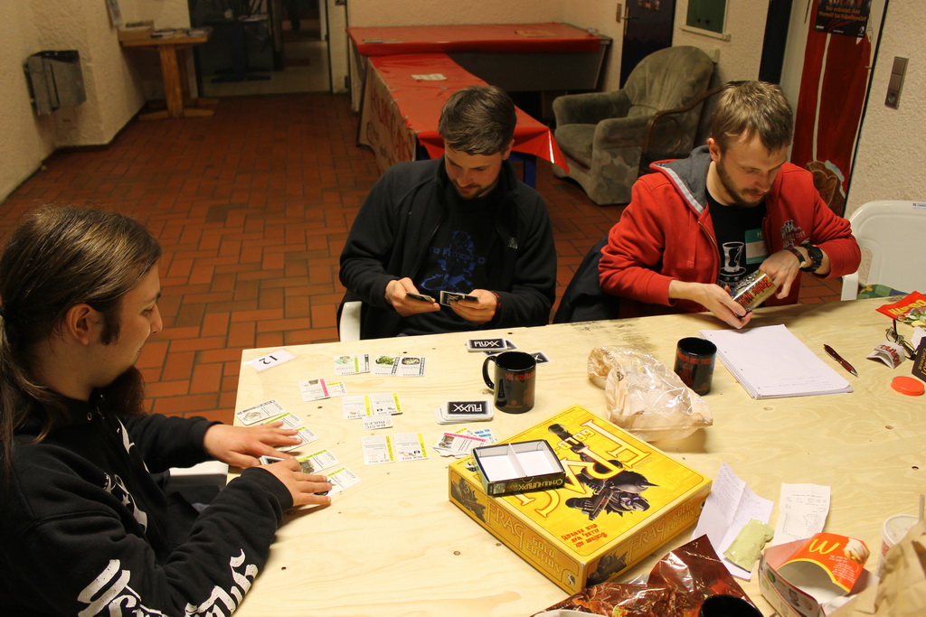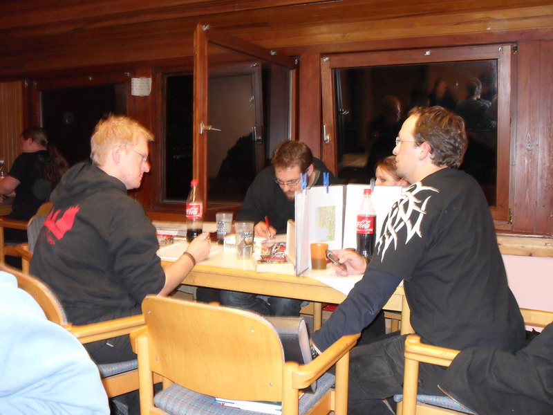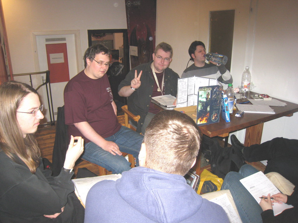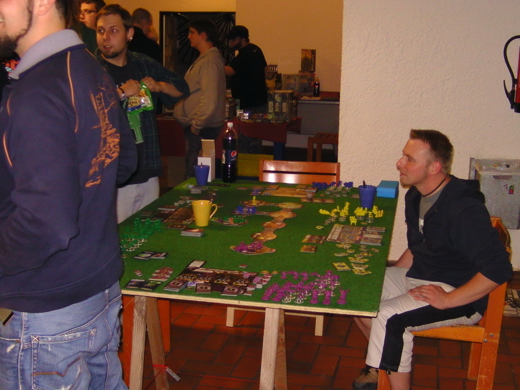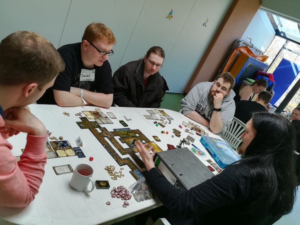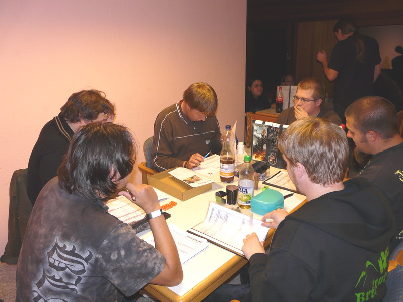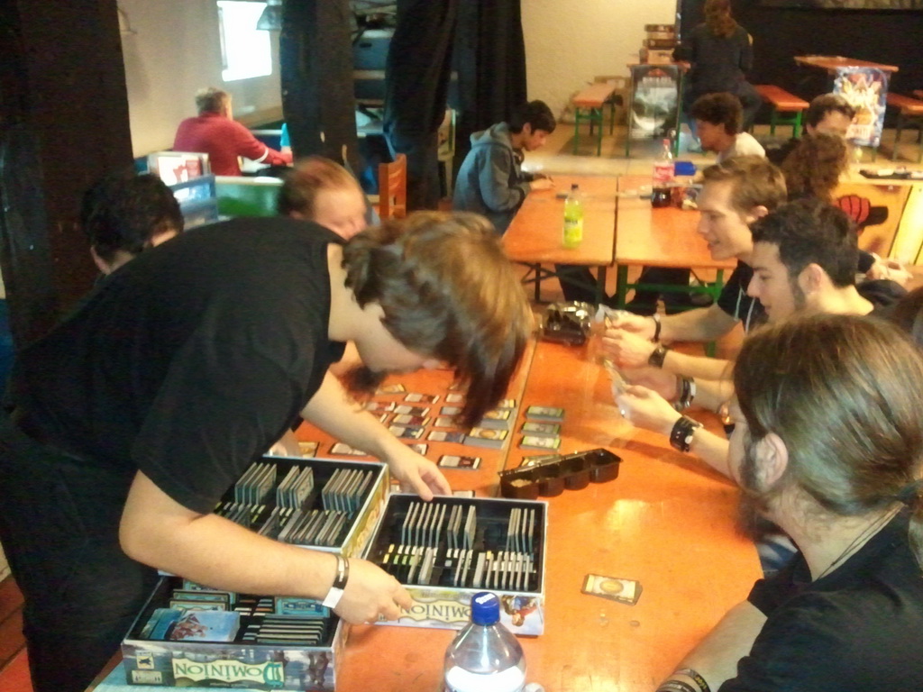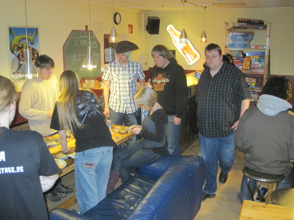 NT24: Bei frischem, wenn doch trockenem Wetter, öffneten sich die Pforten gegen 17:30 Uhr und der Run auf die Tassen im JD Style konnte beginnen. Mit Flatrate und Proviant gewappnet ging es auch schon an die Spieltische. Wer hingegen etwas Kultur genießen wollte, war in der Lesung mit Bernhard Hennen genau richtig. Als der Chilimeister zum Mitternachtsimbiss rief und auch der letzte eine Spielrunde oder bereits einen Platz im Schlafraum der neuen Kita gefunden hatte, ging der Freitag mit einem neuen Besucherrekord von 212 Gästen zu Ende. Am Samstag sollte es spannend werden, ob der Wegfall des Obergeschosses im Jugendhaus auf die Tischreserven auswirken sollte, doch dem war nicht so. Auch einem erneuten Wurststau konnte entgegengewirkt werden, trotz dessen es zu kurzen Wartezeiten beim Grillmeister kam. Mit der Wunschlesung von Bernhard Hennen und Tom Daut wurde auch der Samstag Nachmittag literarisch aufgewertet. Bei der Tombola am Abend konnte man gleich zu Beginn, oder doch am Ende, den verwirrten Gästen eine Besucherzahl von 310 präsentieren. Am Sonntag sollte, ausser beim Grillmeister nichts mehr anbrennen. Die Besucher die es bis dahin geschafft hatten gegen die Müdigkeit anzukämpfen nutzten nochmal ihre Flatrate und spielten bis zur letzten Minute. Mit 321 Gästen, ging die an der Besucherzahl gemessene zweit stärkste Märzveranstaltung zu Ende.