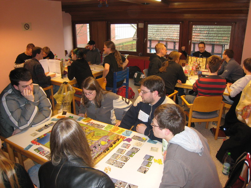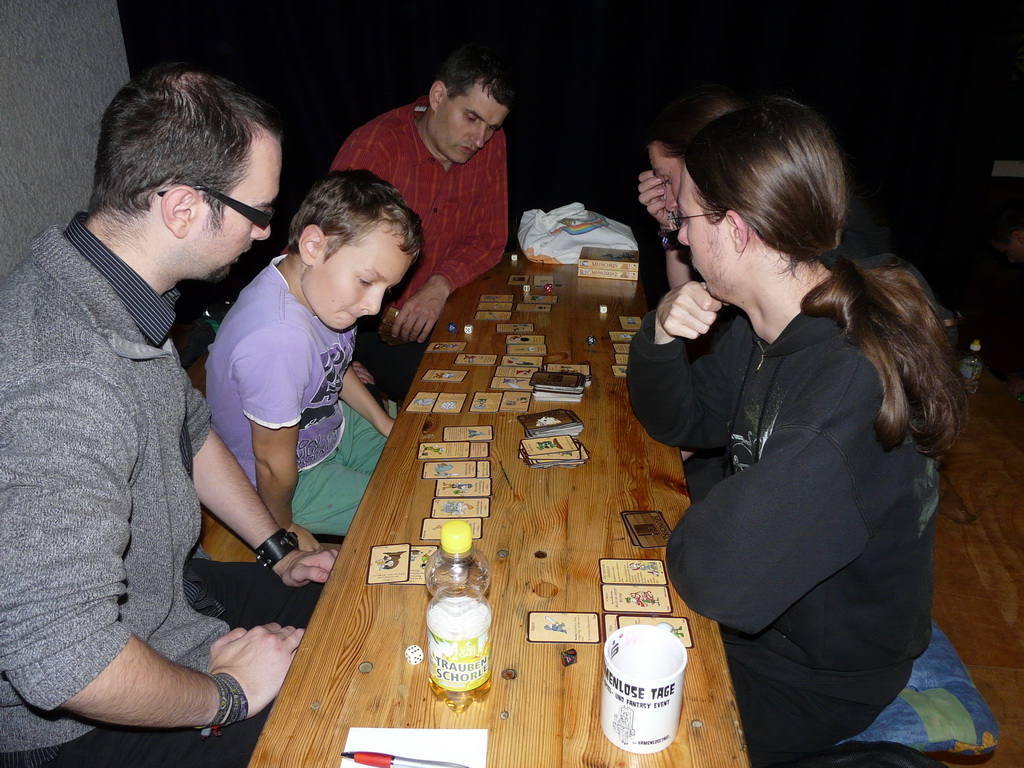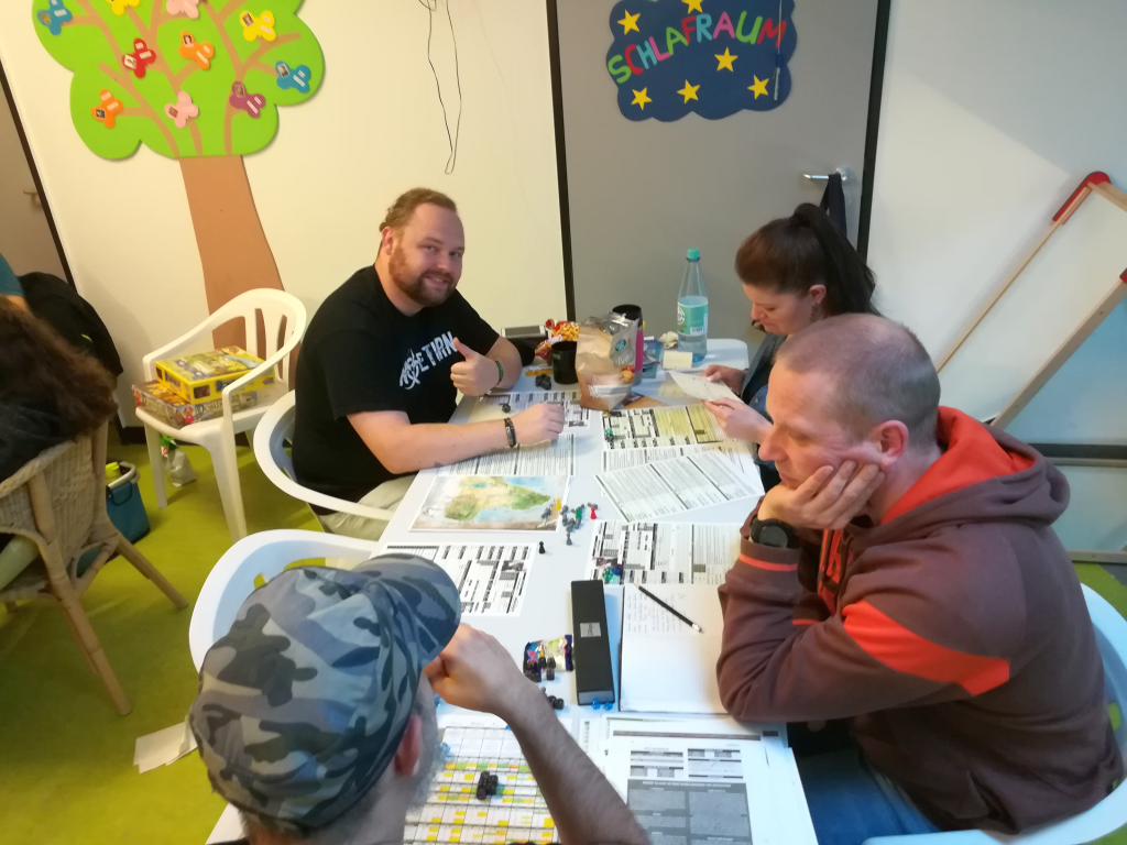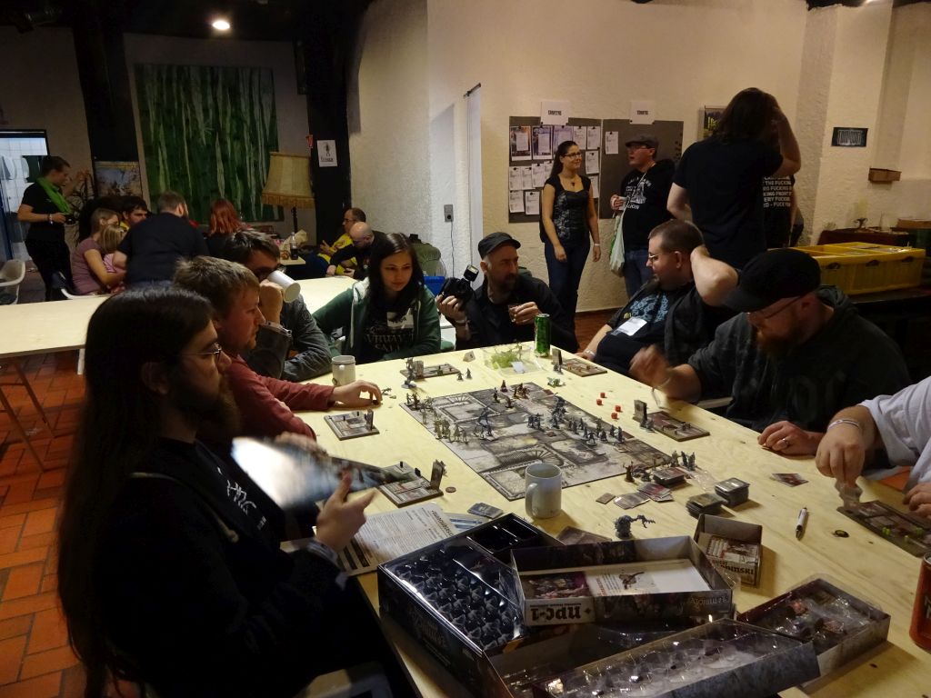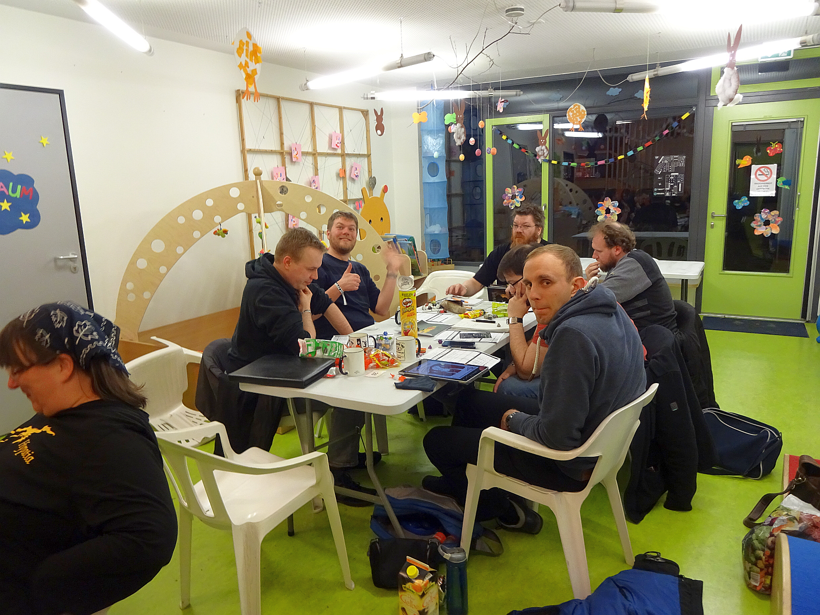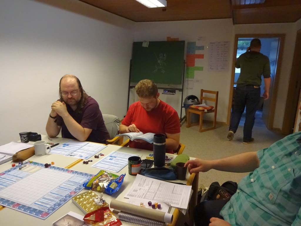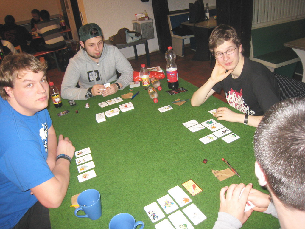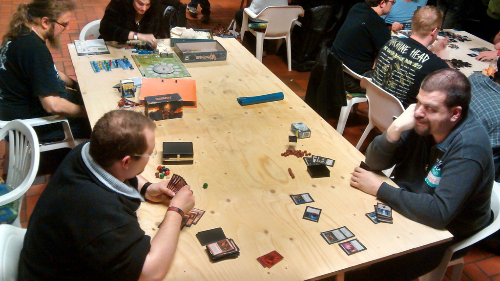NT24: Bei frischem, wenn doch trockenem Wetter, öffneten sich die Pforten gegen 17:30 Uhr und der Run auf die Tassen im JD Style konnte beginnen. Mit Flatrate und Proviant gewappnet ging es auch schon an die Spieltische. Wer hingegen etwas Kultur genießen wollte, war in der Lesung mit Bernhard Hennen genau richtig. Als der Chilimeister zum Mitternachtsimbiss rief und auch der letzte eine Spielrunde oder bereits einen Platz im Schlafraum der neuen Kita gefunden hatte, ging der Freitag mit einem neuen Besucherrekord von 212 Gästen zu Ende. Am Samstag sollte es spannend werden, ob der Wegfall des Obergeschosses im Jugendhaus auf die Tischreserven auswirken sollte, doch dem war nicht so. Auch einem erneuten Wurststau konnte entgegengewirkt werden, trotz dessen es zu kurzen Wartezeiten beim Grillmeister kam. Mit der Wunschlesung von Bernhard Hennen und Tom Daut wurde auch der Samstag Nachmittag literarisch aufgewertet. Bei der Tombola am Abend konnte man gleich zu Beginn, oder doch am Ende, den verwirrten Gästen eine Besucherzahl von 310 präsentieren. Am Sonntag sollte, ausser beim Grillmeister nichts mehr anbrennen. Die Besucher die es bis dahin geschafft hatten gegen die Müdigkeit anzukämpfen nutzten nochmal ihre Flatrate und spielten bis zur letzten Minute. Mit 321 Gästen, ging die an der Besucherzahl gemessene zweit stärkste Märzveranstaltung zu Ende.