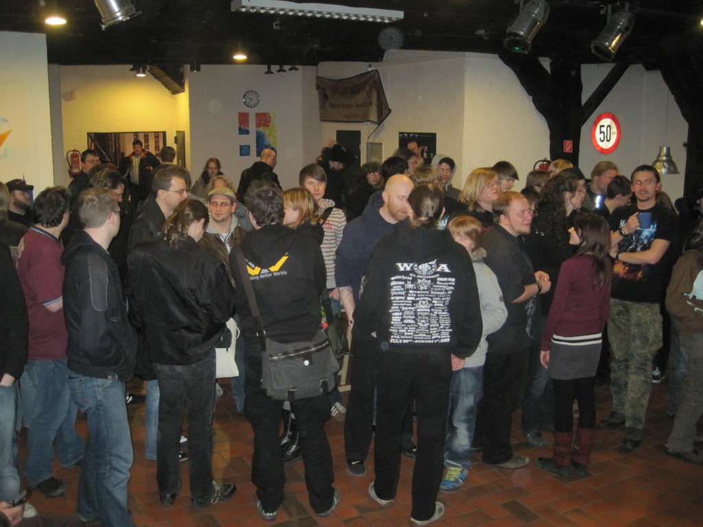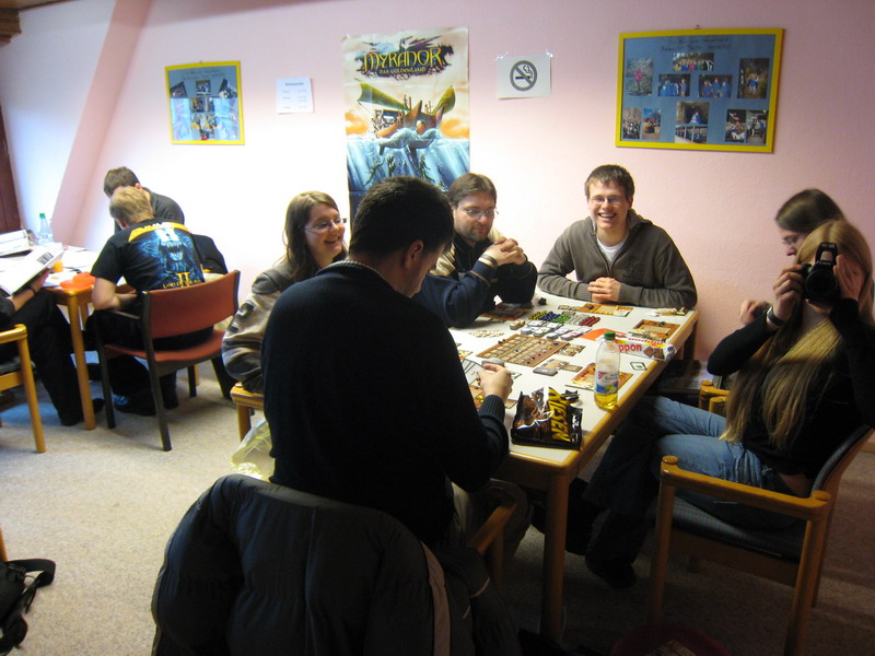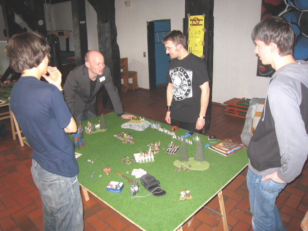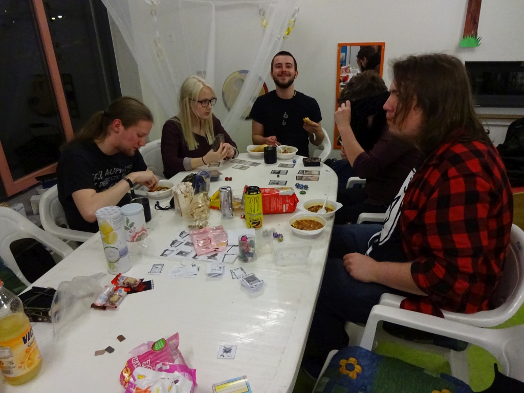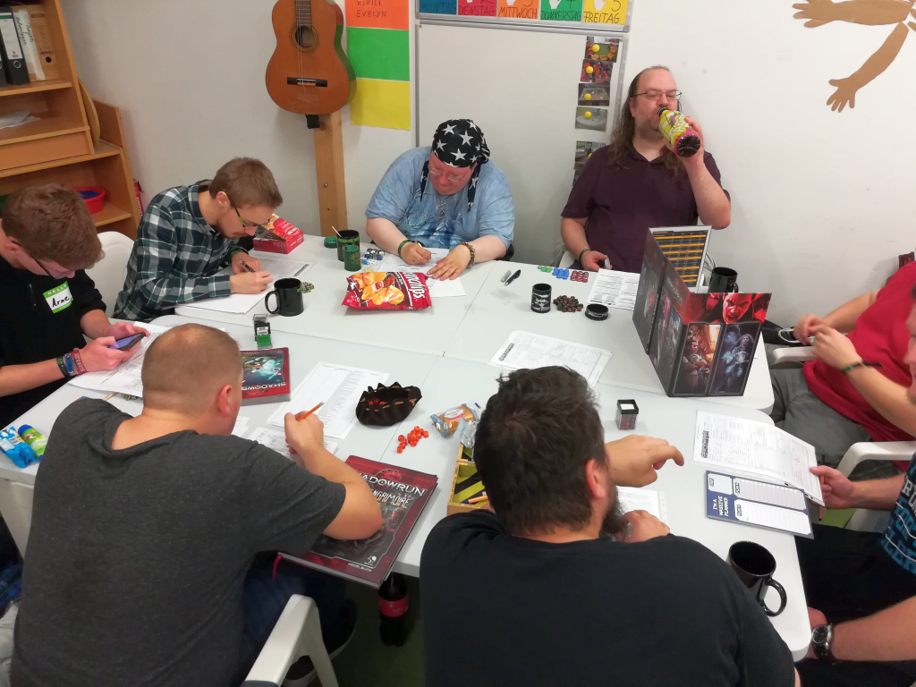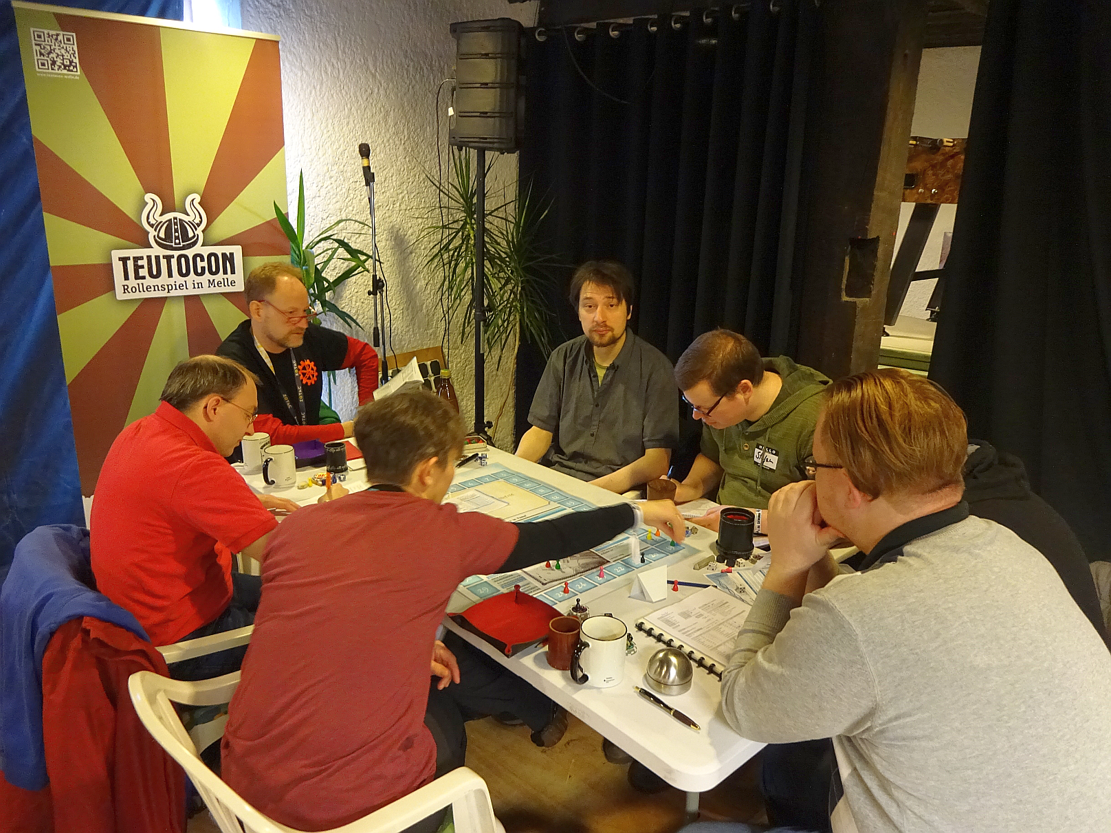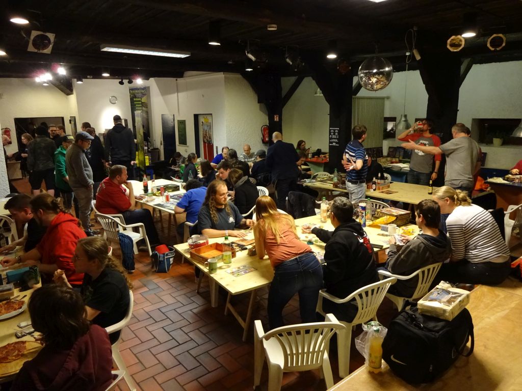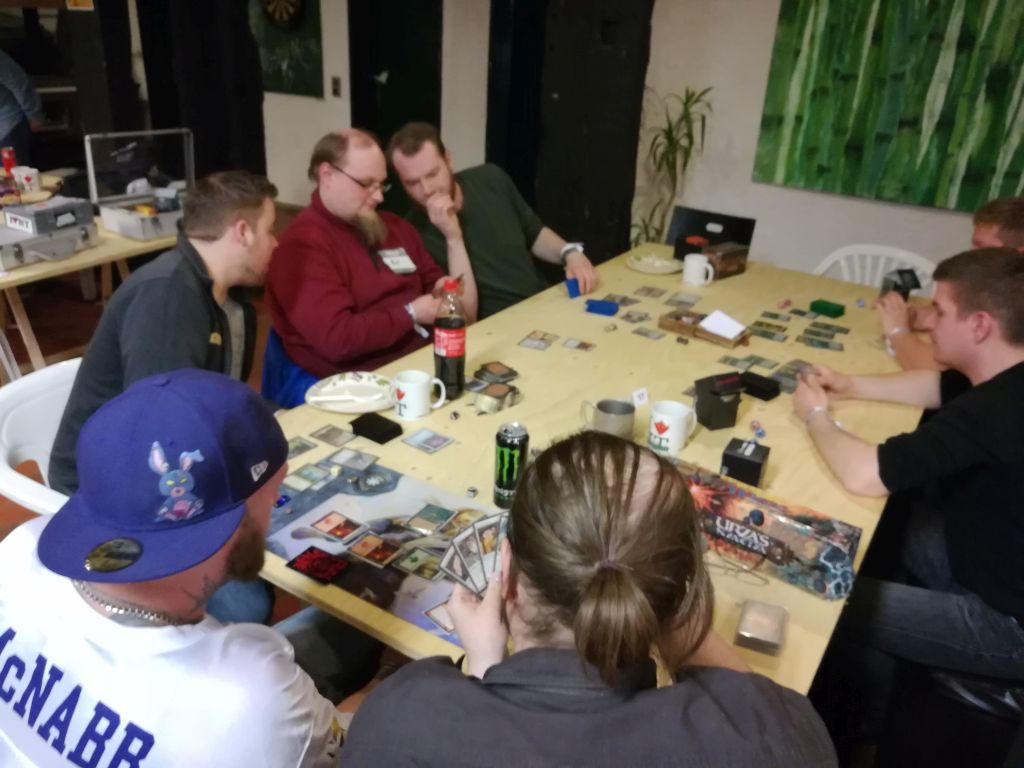 NT24: Bei frischem, wenn doch trockenem Wetter, öffneten sich die Pforten gegen 17:30 Uhr und der Run auf die Tassen im JD Style konnte beginnen. Mit Flatrate und Proviant gewappnet ging es auch schon an die Spieltische. Wer hingegen etwas Kultur genießen wollte, war in der Lesung mit Bernhard Hennen genau richtig. Als der Chilimeister zum Mitternachtsimbiss rief und auch der letzte eine Spielrunde oder bereits einen Platz im Schlafraum der neuen Kita gefunden hatte, ging der Freitag mit einem neuen Besucherrekord von 212 Gästen zu Ende. Am Samstag sollte es spannend werden, ob der Wegfall des Obergeschosses im Jugendhaus auf die Tischreserven auswirken sollte, doch dem war nicht so. Auch einem erneuten Wurststau konnte entgegengewirkt werden, trotz dessen es zu kurzen Wartezeiten beim Grillmeister kam. Mit der Wunschlesung von Bernhard Hennen und Tom Daut wurde auch der Samstag Nachmittag literarisch aufgewertet. Bei der Tombola am Abend konnte man gleich zu Beginn, oder doch am Ende, den verwirrten Gästen eine Besucherzahl von 310 präsentieren. Am Sonntag sollte, ausser beim Grillmeister nichts mehr anbrennen. Die Besucher die es bis dahin geschafft hatten gegen die Müdigkeit anzukämpfen nutzten nochmal ihre Flatrate und spielten bis zur letzten Minute. Mit 321 Gästen, ging die an der Besucherzahl gemessene zweit stärkste Märzveranstaltung zu Ende.