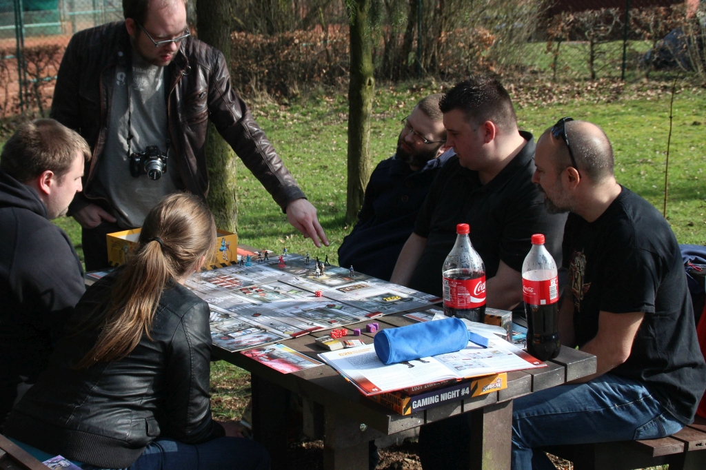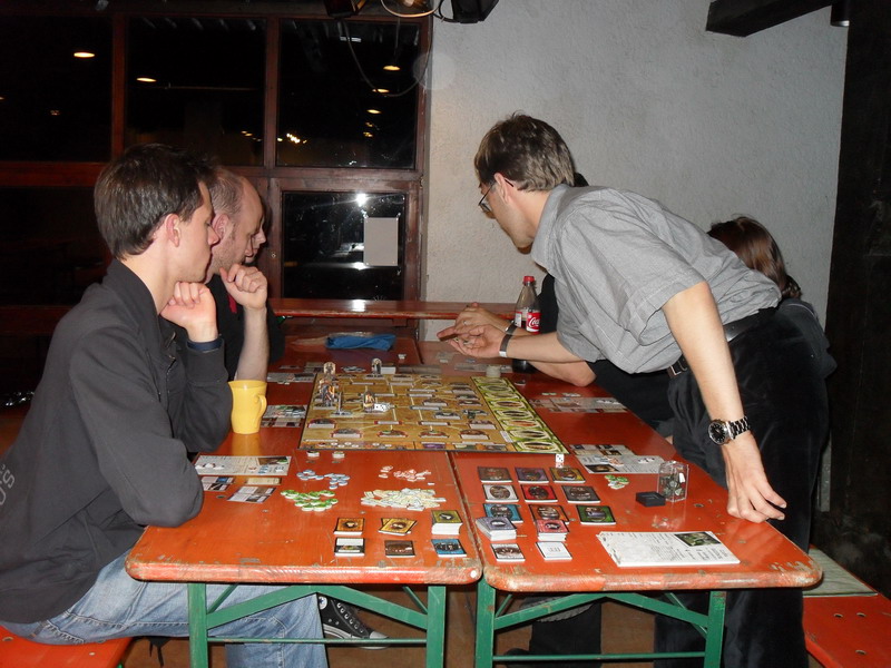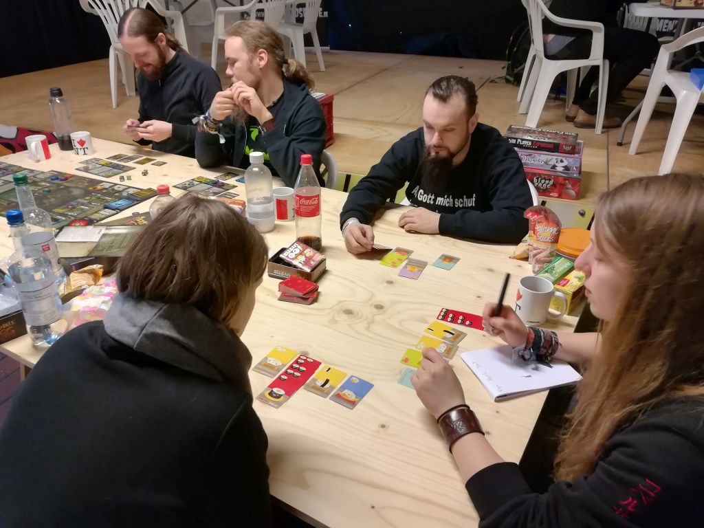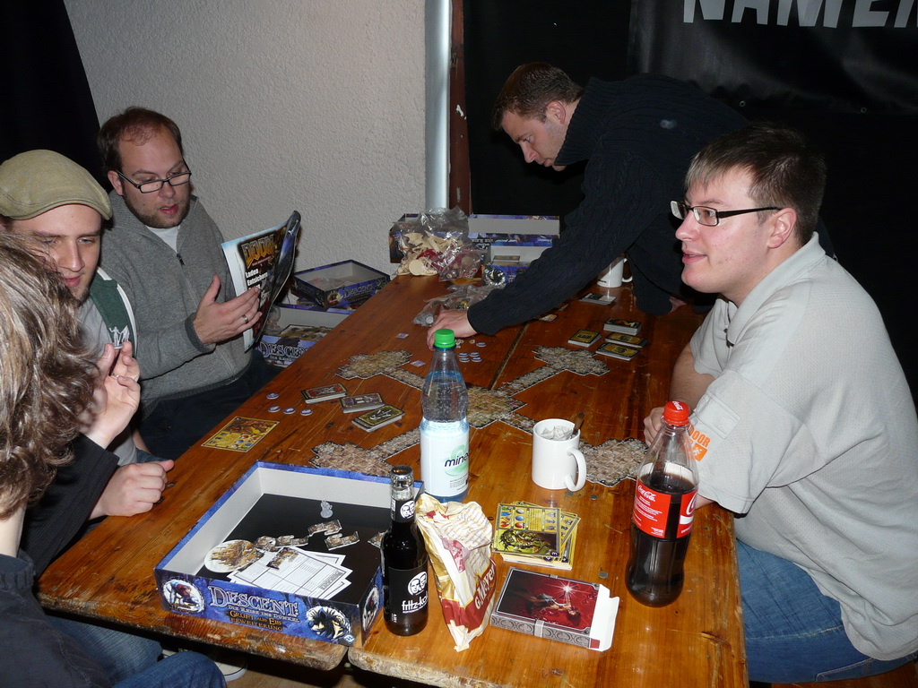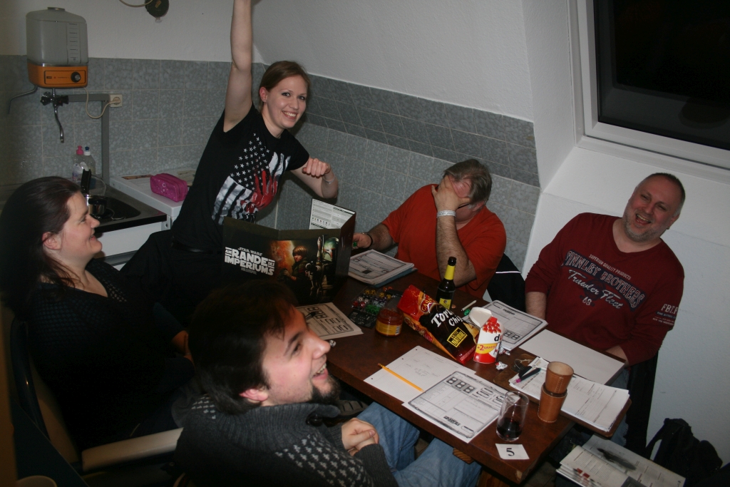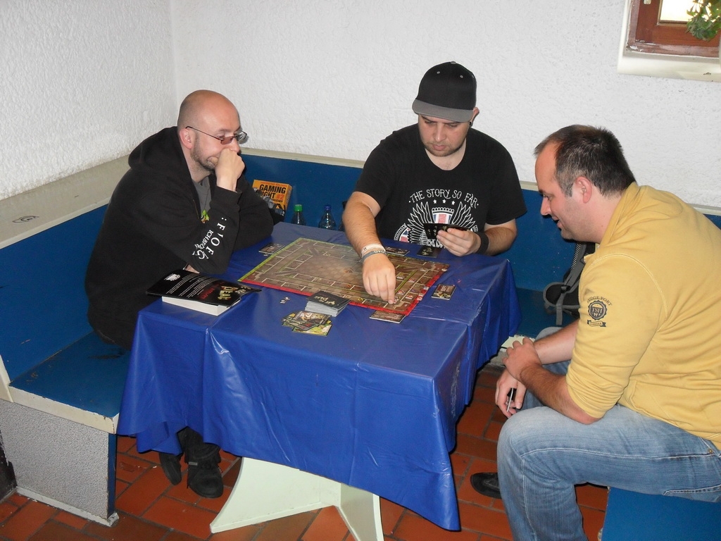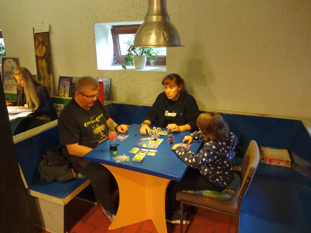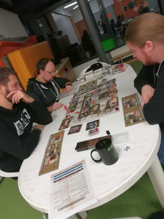 NT24: Bei frischem, wenn doch trockenem Wetter, öffneten sich die Pforten gegen 17:30 Uhr und der Run auf die Tassen im JD Style konnte beginnen. Mit Flatrate und Proviant gewappnet ging es auch schon an die Spieltische. Wer hingegen etwas Kultur genießen wollte, war in der Lesung mit Bernhard Hennen genau richtig. Als der Chilimeister zum Mitternachtsimbiss rief und auch der letzte eine Spielrunde oder bereits einen Platz im Schlafraum der neuen Kita gefunden hatte, ging der Freitag mit einem neuen Besucherrekord von 212 Gästen zu Ende. Am Samstag sollte es spannend werden, ob der Wegfall des Obergeschosses im Jugendhaus auf die Tischreserven auswirken sollte, doch dem war nicht so. Auch einem erneuten Wurststau konnte entgegengewirkt werden, trotz dessen es zu kurzen Wartezeiten beim Grillmeister kam. Mit der Wunschlesung von Bernhard Hennen und Tom Daut wurde auch der Samstag Nachmittag literarisch aufgewertet. Bei der Tombola am Abend konnte man gleich zu Beginn, oder doch am Ende, den verwirrten Gästen eine Besucherzahl von 310 präsentieren. Am Sonntag sollte, ausser beim Grillmeister nichts mehr anbrennen. Die Besucher die es bis dahin geschafft hatten gegen die Müdigkeit anzukämpfen nutzten nochmal ihre Flatrate und spielten bis zur letzten Minute. Mit 321 Gästen, ging die an der Besucherzahl gemessene zweit stärkste Märzveranstaltung zu Ende.