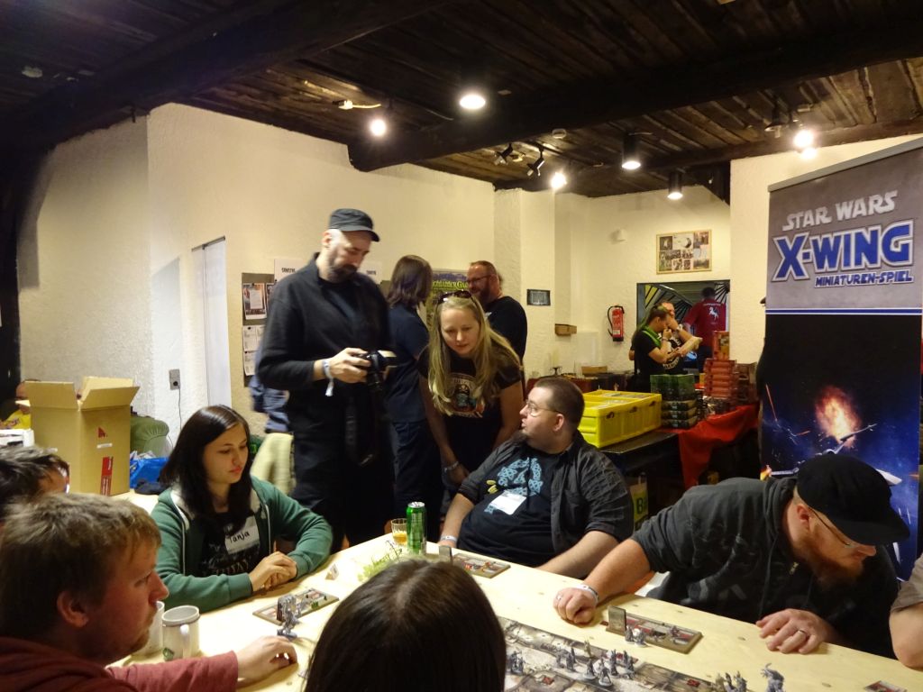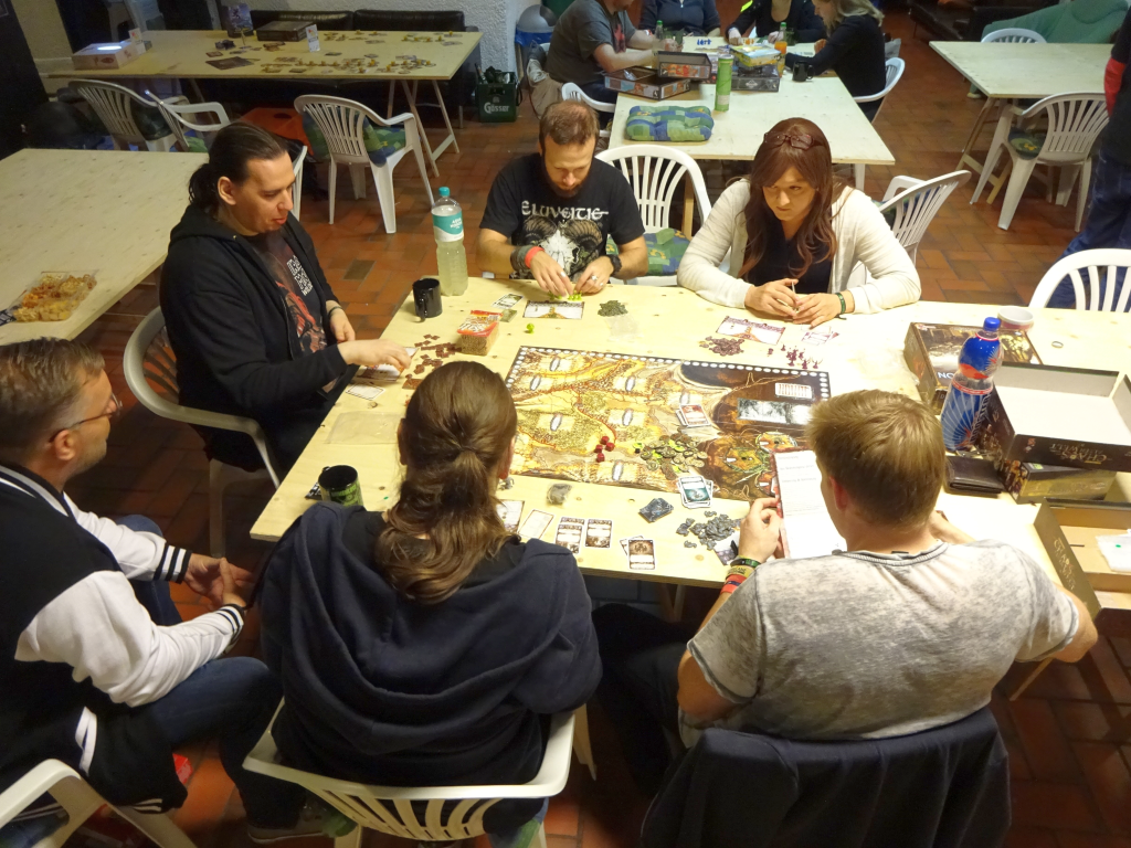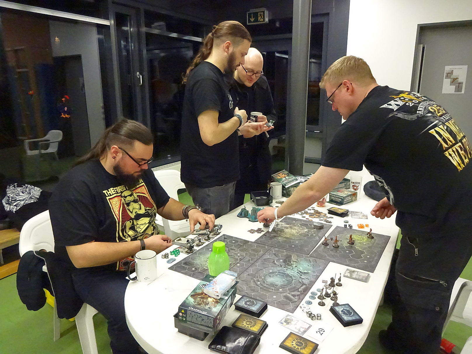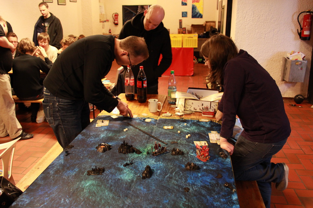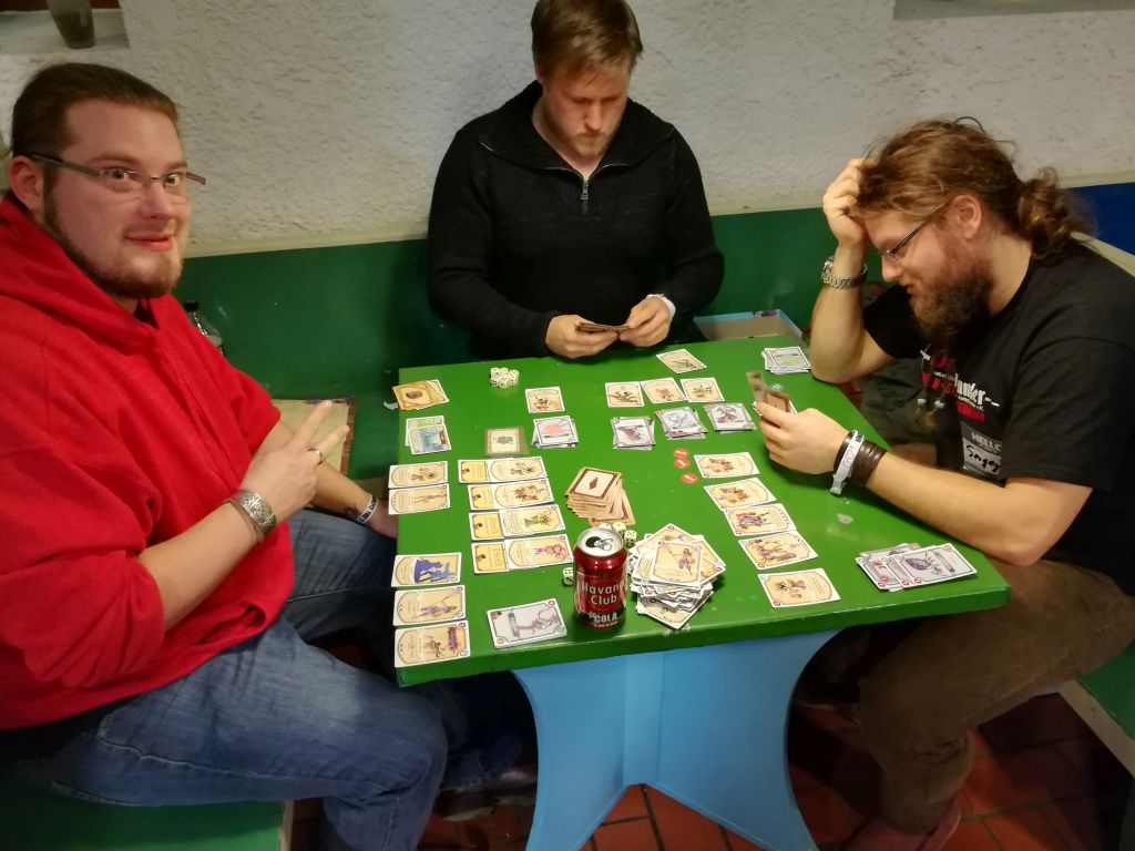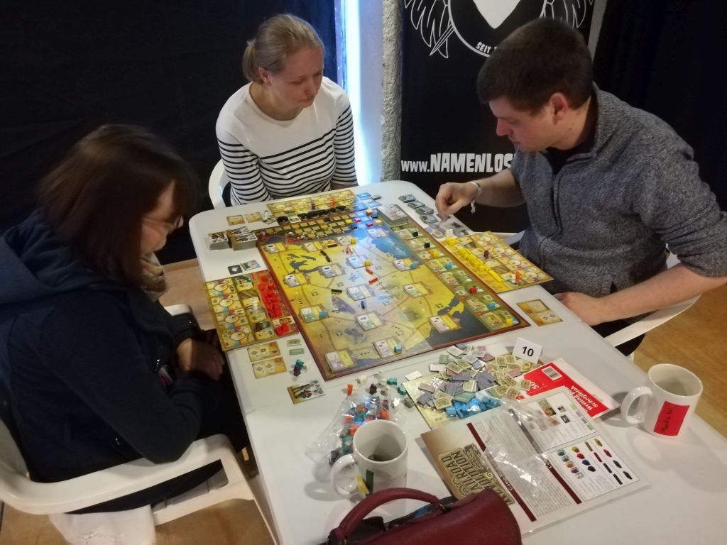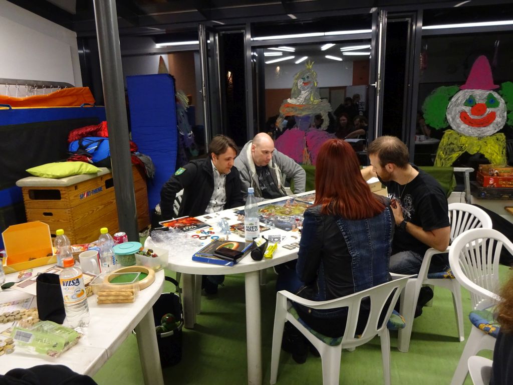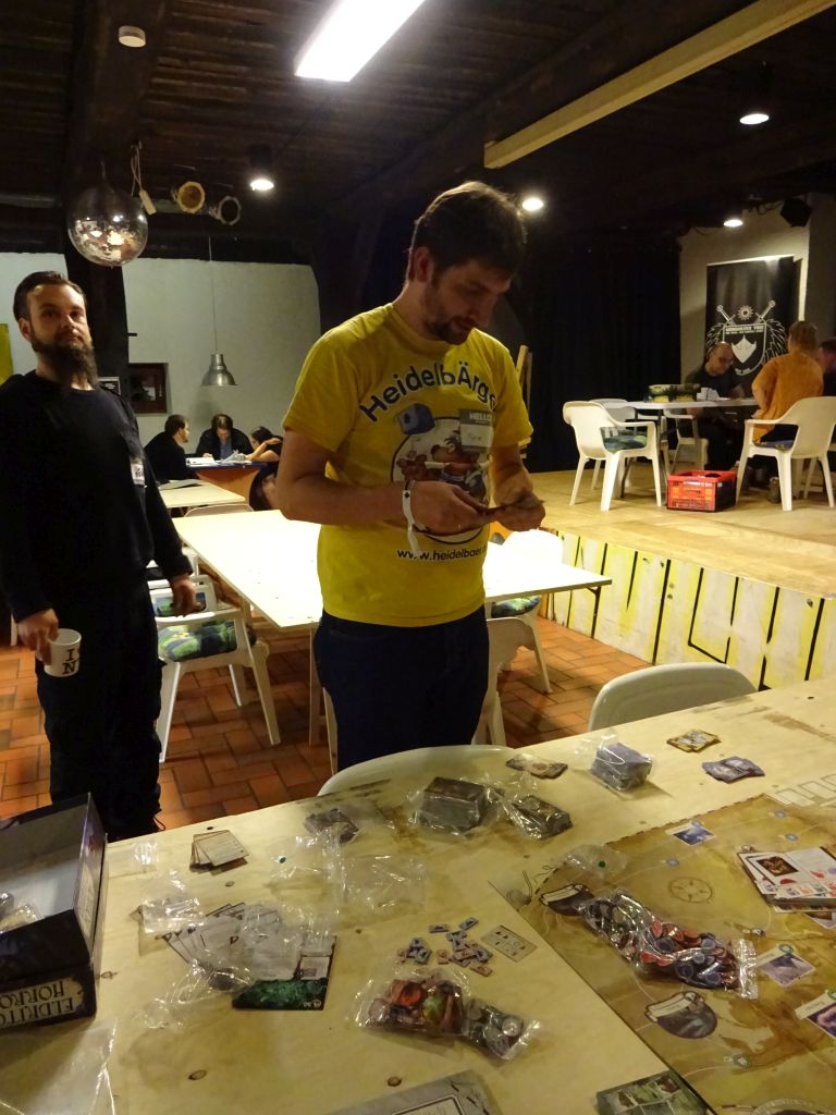 NT24: Bei frischem, wenn doch trockenem Wetter, öffneten sich die Pforten gegen 17:30 Uhr und der Run auf die Tassen im JD Style konnte beginnen. Mit Flatrate und Proviant gewappnet ging es auch schon an die Spieltische. Wer hingegen etwas Kultur genießen wollte, war in der Lesung mit Bernhard Hennen genau richtig. Als der Chilimeister zum Mitternachtsimbiss rief und auch der letzte eine Spielrunde oder bereits einen Platz im Schlafraum der neuen Kita gefunden hatte, ging der Freitag mit einem neuen Besucherrekord von 212 Gästen zu Ende. Am Samstag sollte es spannend werden, ob der Wegfall des Obergeschosses im Jugendhaus auf die Tischreserven auswirken sollte, doch dem war nicht so. Auch einem erneuten Wurststau konnte entgegengewirkt werden, trotz dessen es zu kurzen Wartezeiten beim Grillmeister kam. Mit der Wunschlesung von Bernhard Hennen und Tom Daut wurde auch der Samstag Nachmittag literarisch aufgewertet. Bei der Tombola am Abend konnte man gleich zu Beginn, oder doch am Ende, den verwirrten Gästen eine Besucherzahl von 310 präsentieren. Am Sonntag sollte, ausser beim Grillmeister nichts mehr anbrennen. Die Besucher die es bis dahin geschafft hatten gegen die Müdigkeit anzukämpfen nutzten nochmal ihre Flatrate und spielten bis zur letzten Minute. Mit 321 Gästen, ging die an der Besucherzahl gemessene zweit stärkste Märzveranstaltung zu Ende.
