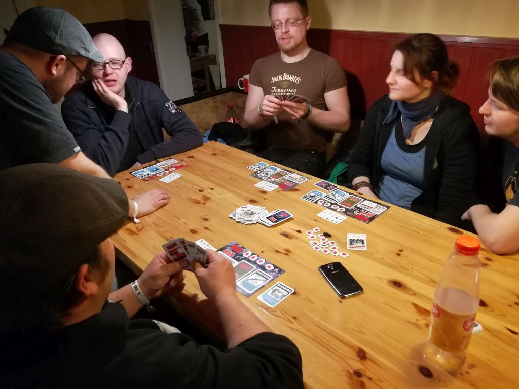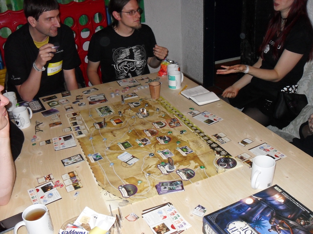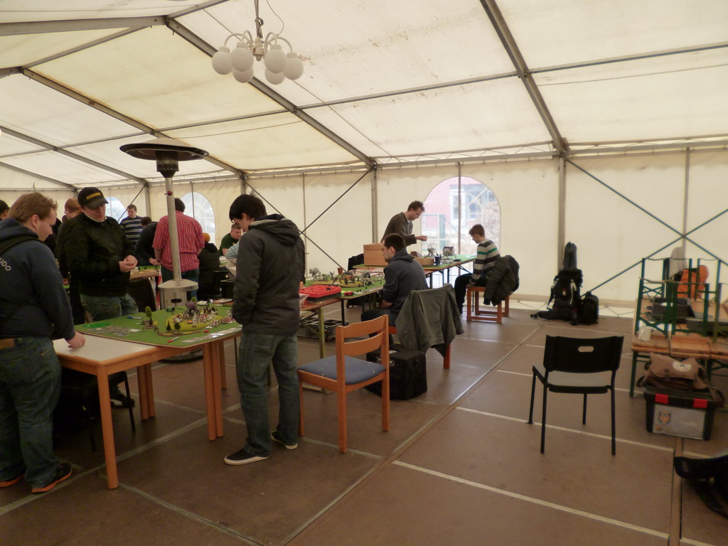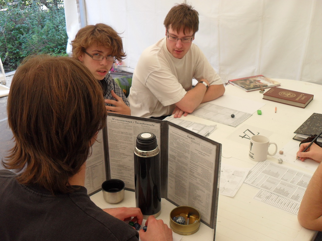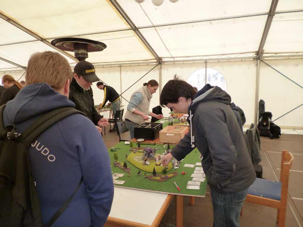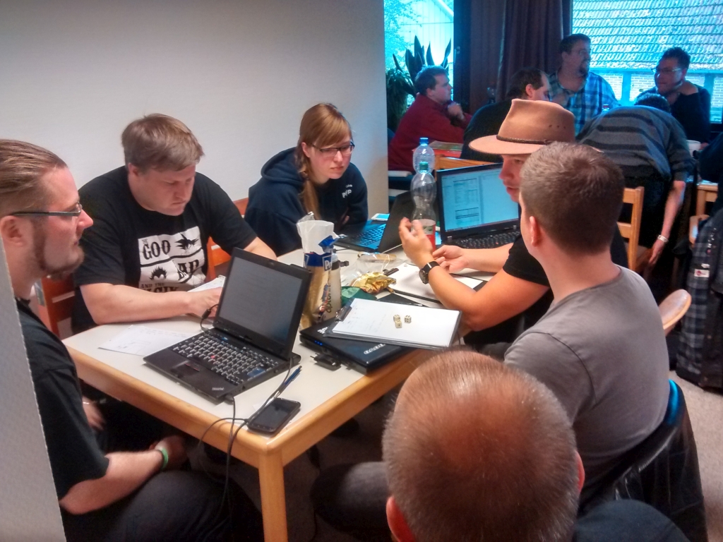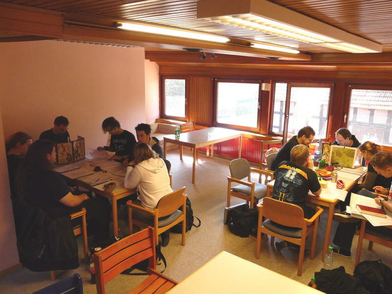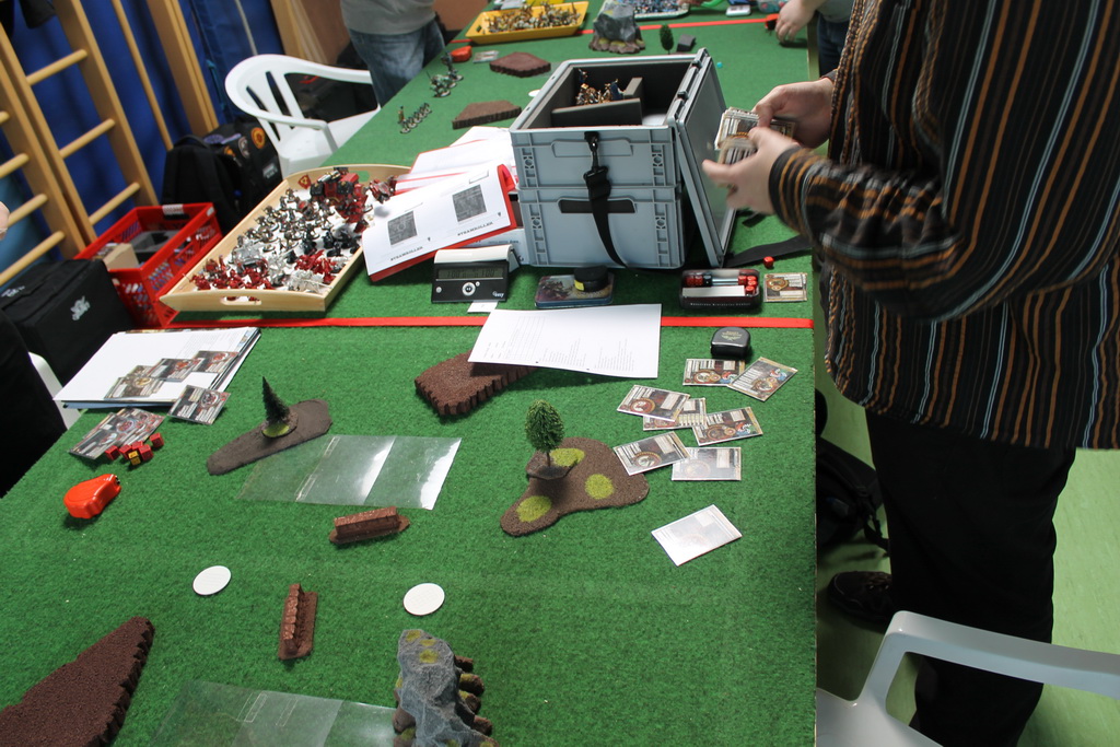 NT24: Bei frischem, wenn doch trockenem Wetter, öffneten sich die Pforten gegen 17:30 Uhr und der Run auf die Tassen im JD Style konnte beginnen. Mit Flatrate und Proviant gewappnet ging es auch schon an die Spieltische. Wer hingegen etwas Kultur genießen wollte, war in der Lesung mit Bernhard Hennen genau richtig. Als der Chilimeister zum Mitternachtsimbiss rief und auch der letzte eine Spielrunde oder bereits einen Platz im Schlafraum der neuen Kita gefunden hatte, ging der Freitag mit einem neuen Besucherrekord von 212 Gästen zu Ende. Am Samstag sollte es spannend werden, ob der Wegfall des Obergeschosses im Jugendhaus auf die Tischreserven auswirken sollte, doch dem war nicht so. Auch einem erneuten Wurststau konnte entgegengewirkt werden, trotz dessen es zu kurzen Wartezeiten beim Grillmeister kam. Mit der Wunschlesung von Bernhard Hennen und Tom Daut wurde auch der Samstag Nachmittag literarisch aufgewertet. Bei der Tombola am Abend konnte man gleich zu Beginn, oder doch am Ende, den verwirrten Gästen eine Besucherzahl von 310 präsentieren. Am Sonntag sollte, ausser beim Grillmeister nichts mehr anbrennen. Die Besucher die es bis dahin geschafft hatten gegen die Müdigkeit anzukämpfen nutzten nochmal ihre Flatrate und spielten bis zur letzten Minute. Mit 321 Gästen, ging die an der Besucherzahl gemessene zweit stärkste Märzveranstaltung zu Ende.