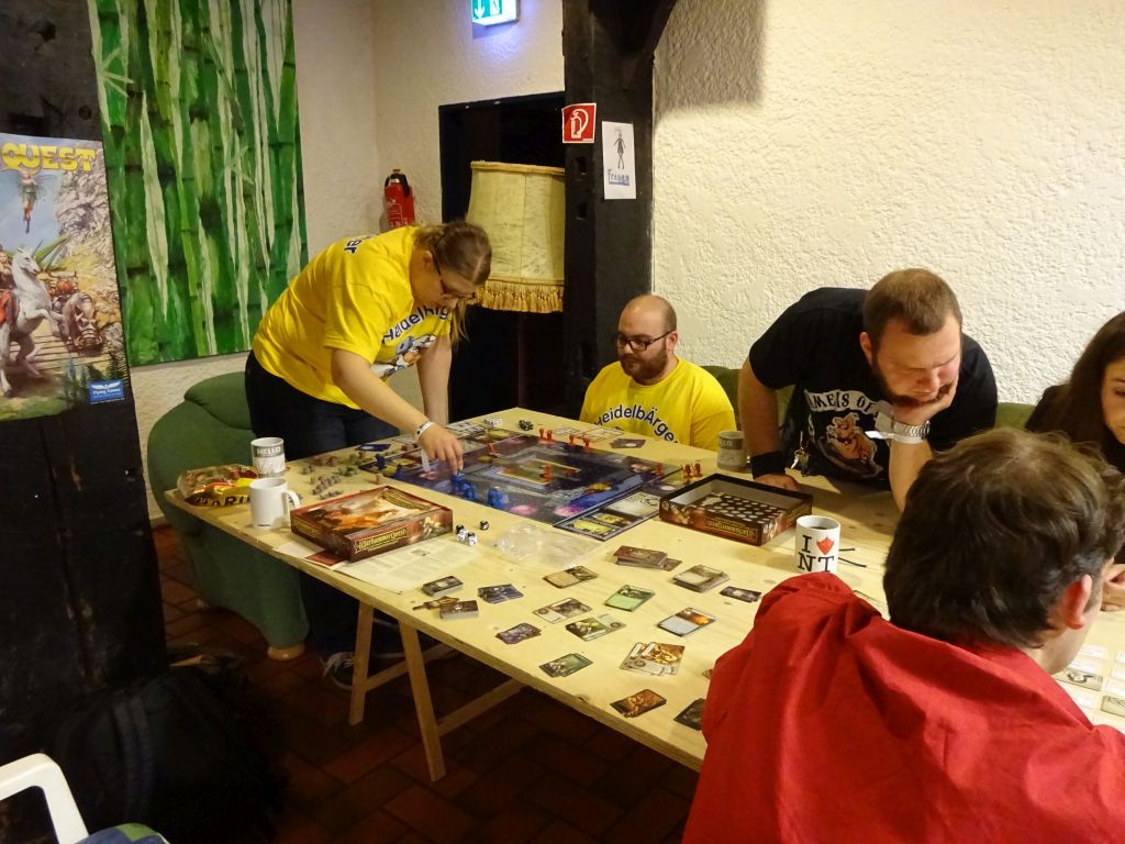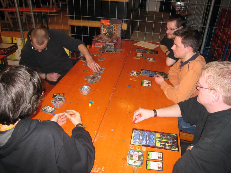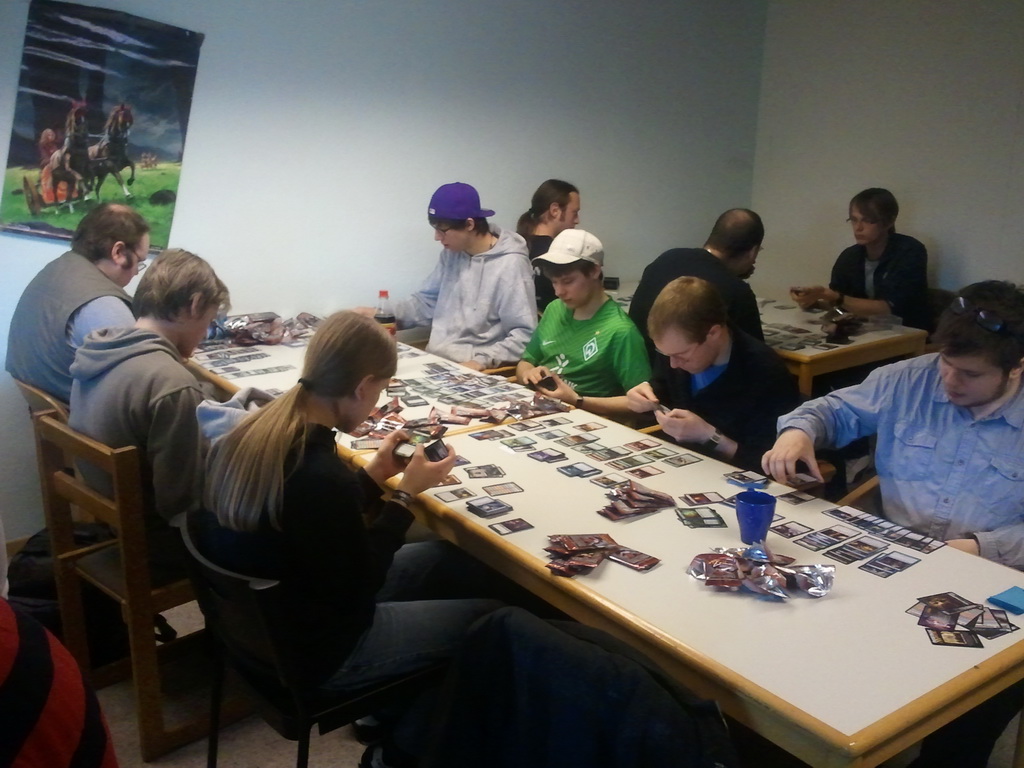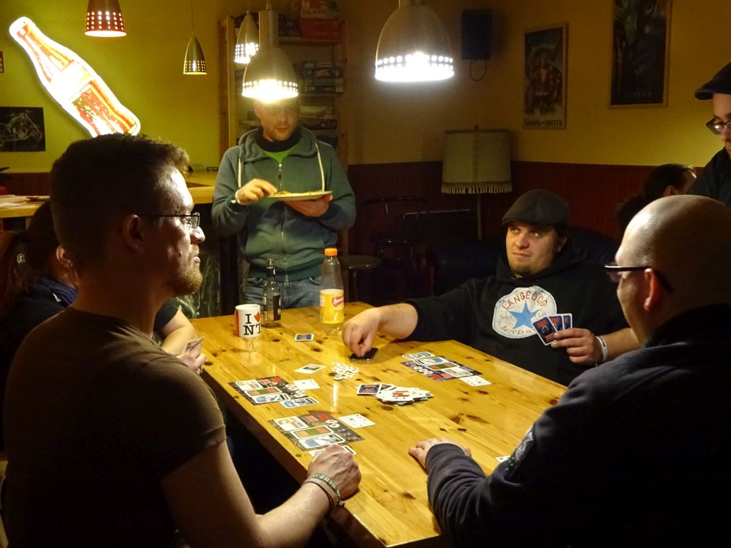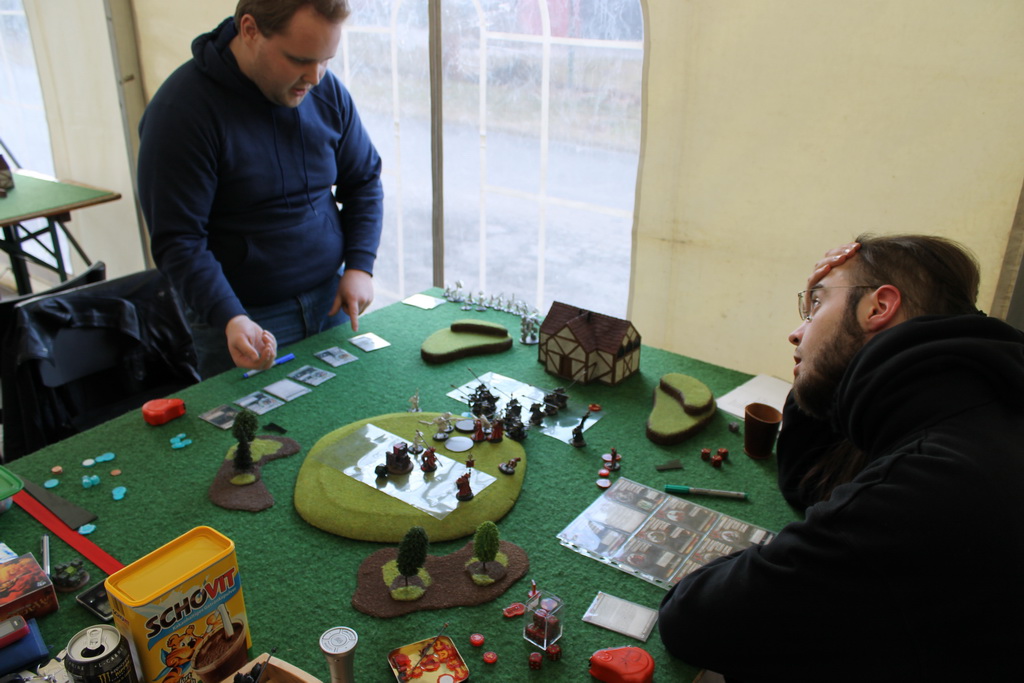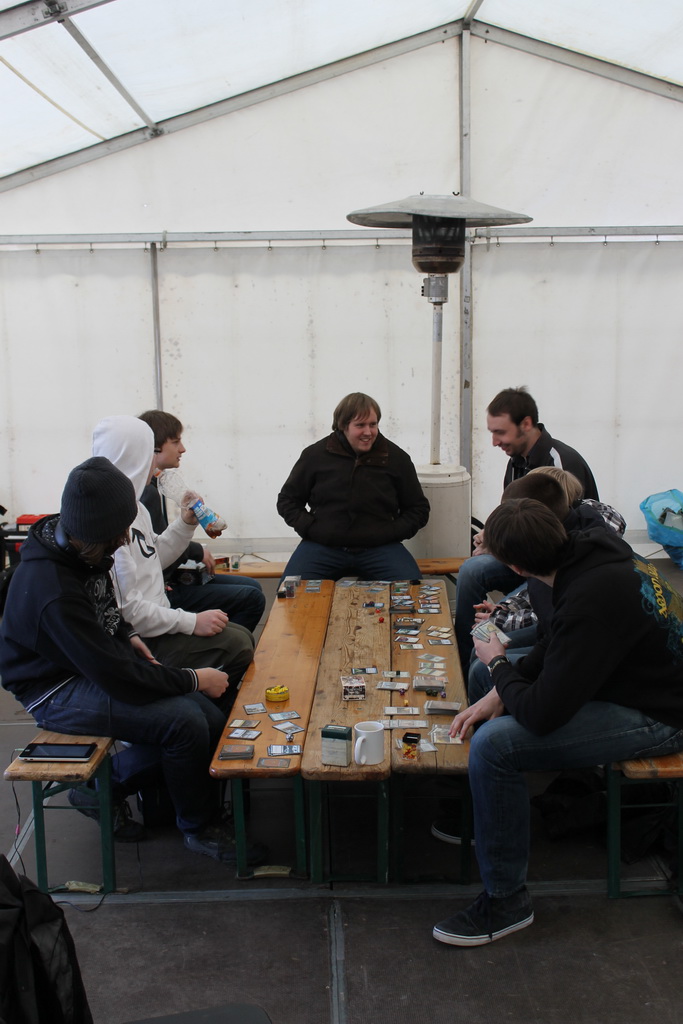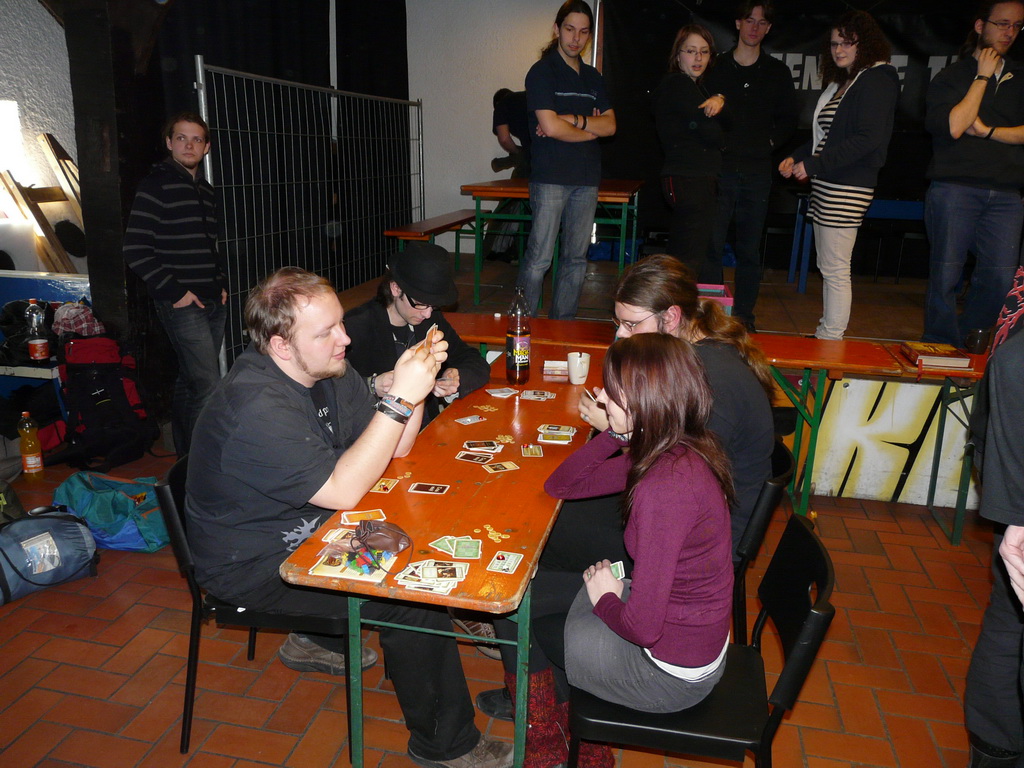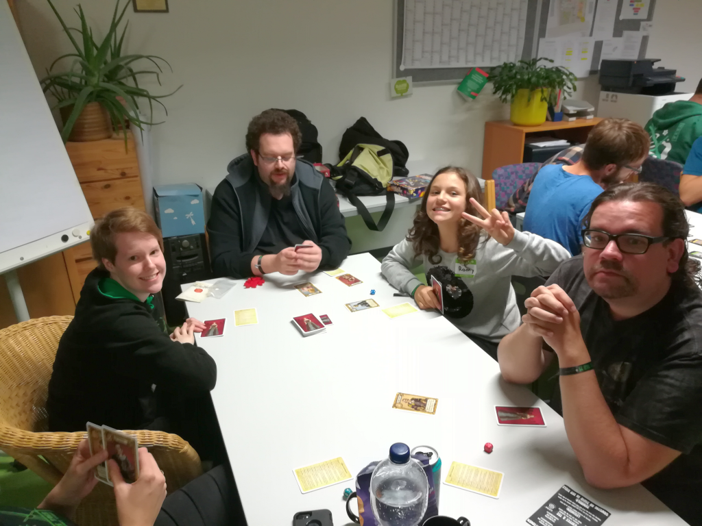 NT24: Bei frischem, wenn doch trockenem Wetter, öffneten sich die Pforten gegen 17:30 Uhr und der Run auf die Tassen im JD Style konnte beginnen. Mit Flatrate und Proviant gewappnet ging es auch schon an die Spieltische. Wer hingegen etwas Kultur genießen wollte, war in der Lesung mit Bernhard Hennen genau richtig. Als der Chilimeister zum Mitternachtsimbiss rief und auch der letzte eine Spielrunde oder bereits einen Platz im Schlafraum der neuen Kita gefunden hatte, ging der Freitag mit einem neuen Besucherrekord von 212 Gästen zu Ende. Am Samstag sollte es spannend werden, ob der Wegfall des Obergeschosses im Jugendhaus auf die Tischreserven auswirken sollte, doch dem war nicht so. Auch einem erneuten Wurststau konnte entgegengewirkt werden, trotz dessen es zu kurzen Wartezeiten beim Grillmeister kam. Mit der Wunschlesung von Bernhard Hennen und Tom Daut wurde auch der Samstag Nachmittag literarisch aufgewertet. Bei der Tombola am Abend konnte man gleich zu Beginn, oder doch am Ende, den verwirrten Gästen eine Besucherzahl von 310 präsentieren. Am Sonntag sollte, ausser beim Grillmeister nichts mehr anbrennen. Die Besucher die es bis dahin geschafft hatten gegen die Müdigkeit anzukämpfen nutzten nochmal ihre Flatrate und spielten bis zur letzten Minute. Mit 321 Gästen, ging die an der Besucherzahl gemessene zweit stärkste Märzveranstaltung zu Ende.