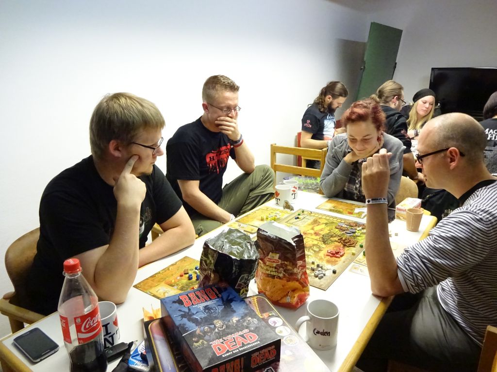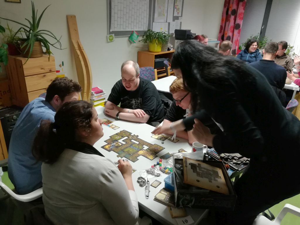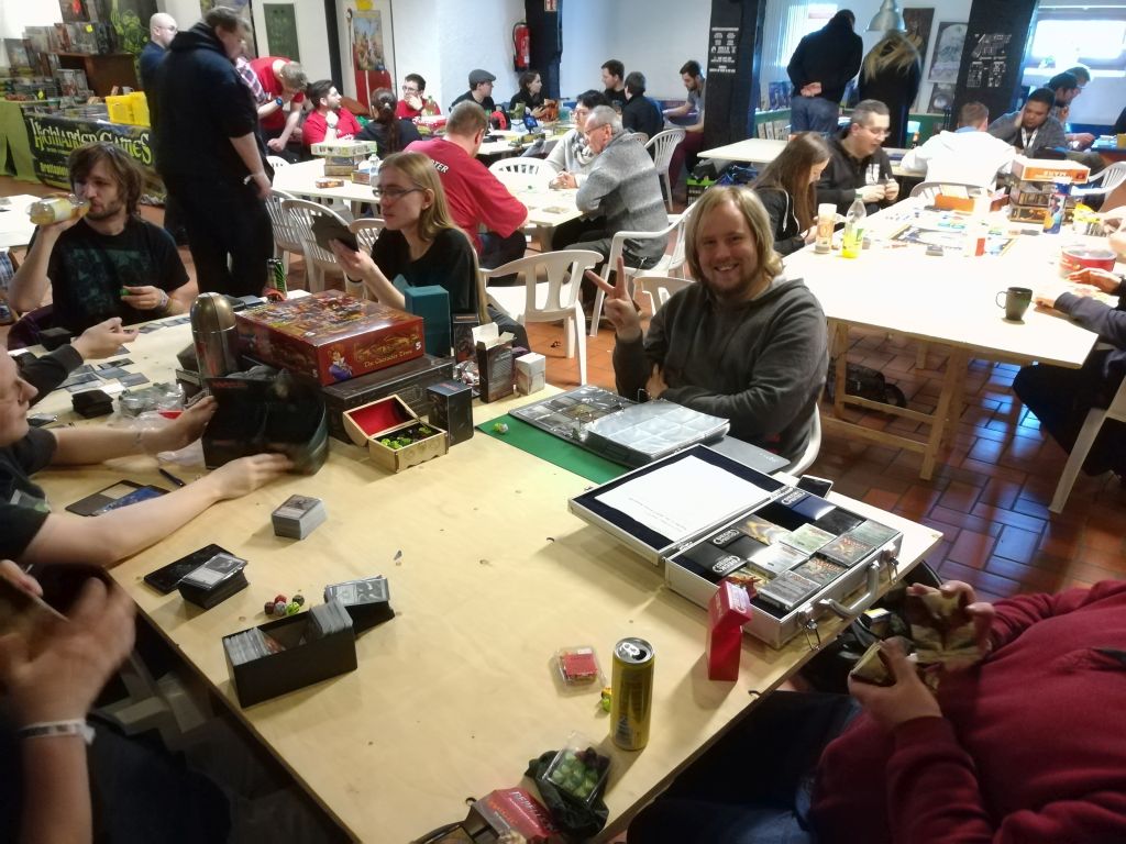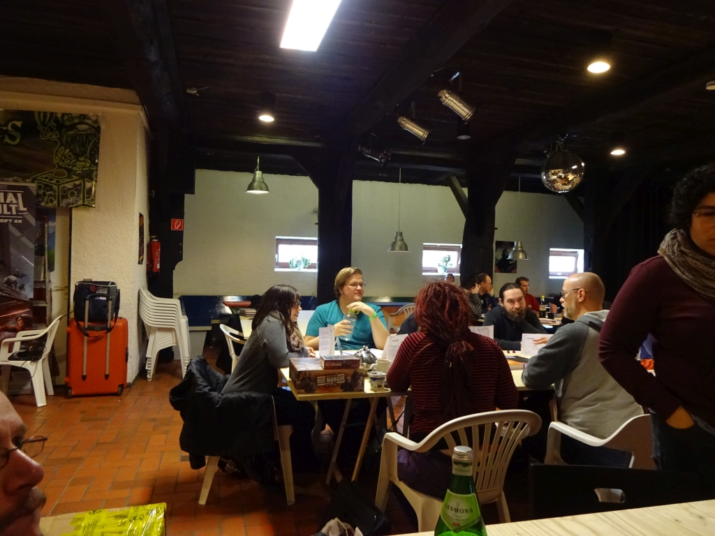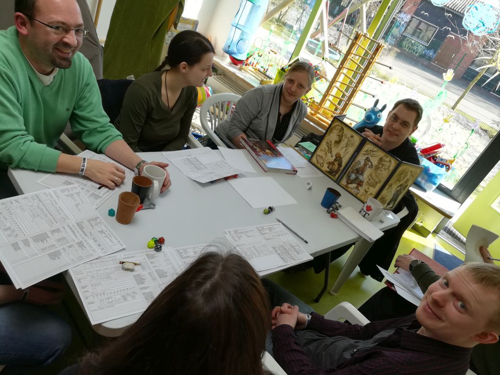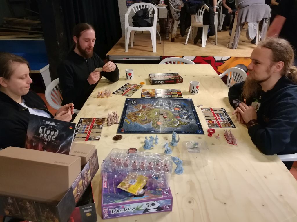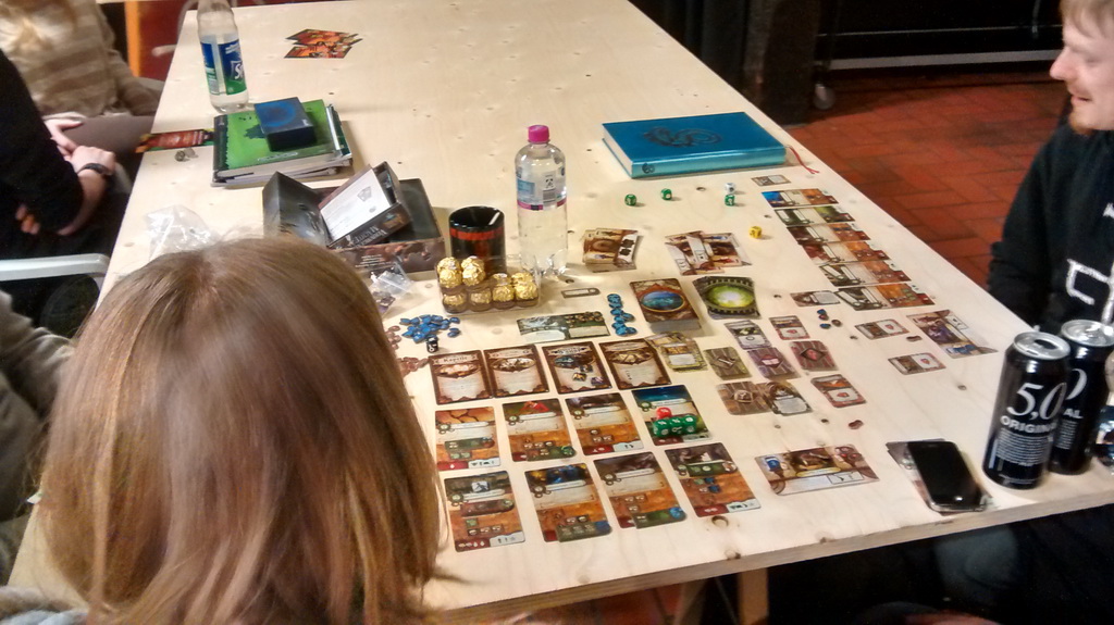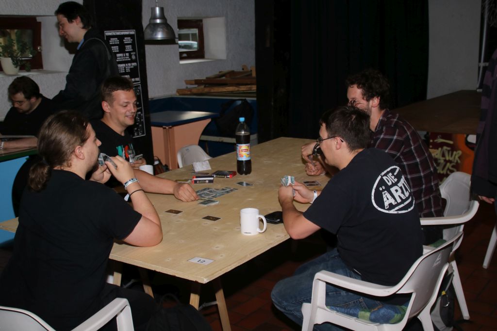 NT24: Bei frischem, wenn doch trockenem Wetter, öffneten sich die Pforten gegen 17:30 Uhr und der Run auf die Tassen im JD Style konnte beginnen. Mit Flatrate und Proviant gewappnet ging es auch schon an die Spieltische. Wer hingegen etwas Kultur genießen wollte, war in der Lesung mit Bernhard Hennen genau richtig. Als der Chilimeister zum Mitternachtsimbiss rief und auch der letzte eine Spielrunde oder bereits einen Platz im Schlafraum der neuen Kita gefunden hatte, ging der Freitag mit einem neuen Besucherrekord von 212 Gästen zu Ende. Am Samstag sollte es spannend werden, ob der Wegfall des Obergeschosses im Jugendhaus auf die Tischreserven auswirken sollte, doch dem war nicht so. Auch einem erneuten Wurststau konnte entgegengewirkt werden, trotz dessen es zu kurzen Wartezeiten beim Grillmeister kam. Mit der Wunschlesung von Bernhard Hennen und Tom Daut wurde auch der Samstag Nachmittag literarisch aufgewertet. Bei der Tombola am Abend konnte man gleich zu Beginn, oder doch am Ende, den verwirrten Gästen eine Besucherzahl von 310 präsentieren. Am Sonntag sollte, ausser beim Grillmeister nichts mehr anbrennen. Die Besucher die es bis dahin geschafft hatten gegen die Müdigkeit anzukämpfen nutzten nochmal ihre Flatrate und spielten bis zur letzten Minute. Mit 321 Gästen, ging die an der Besucherzahl gemessene zweit stärkste Märzveranstaltung zu Ende.