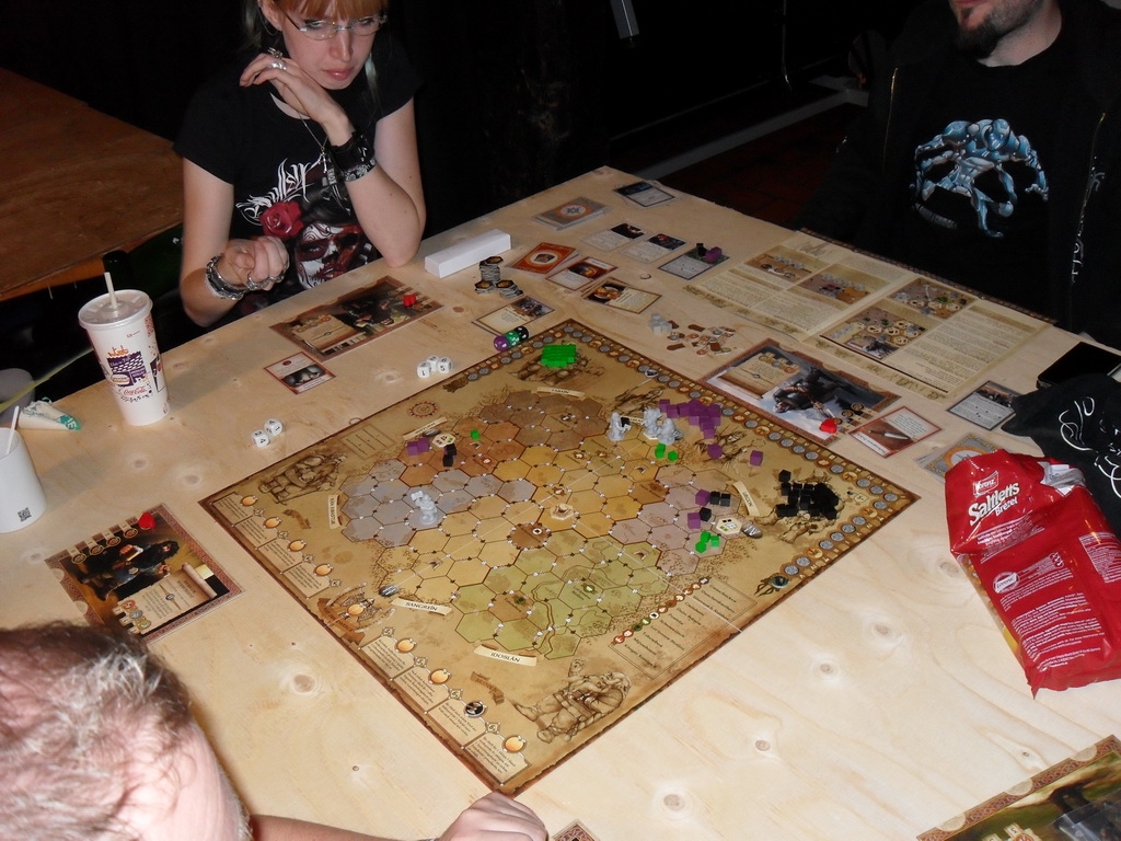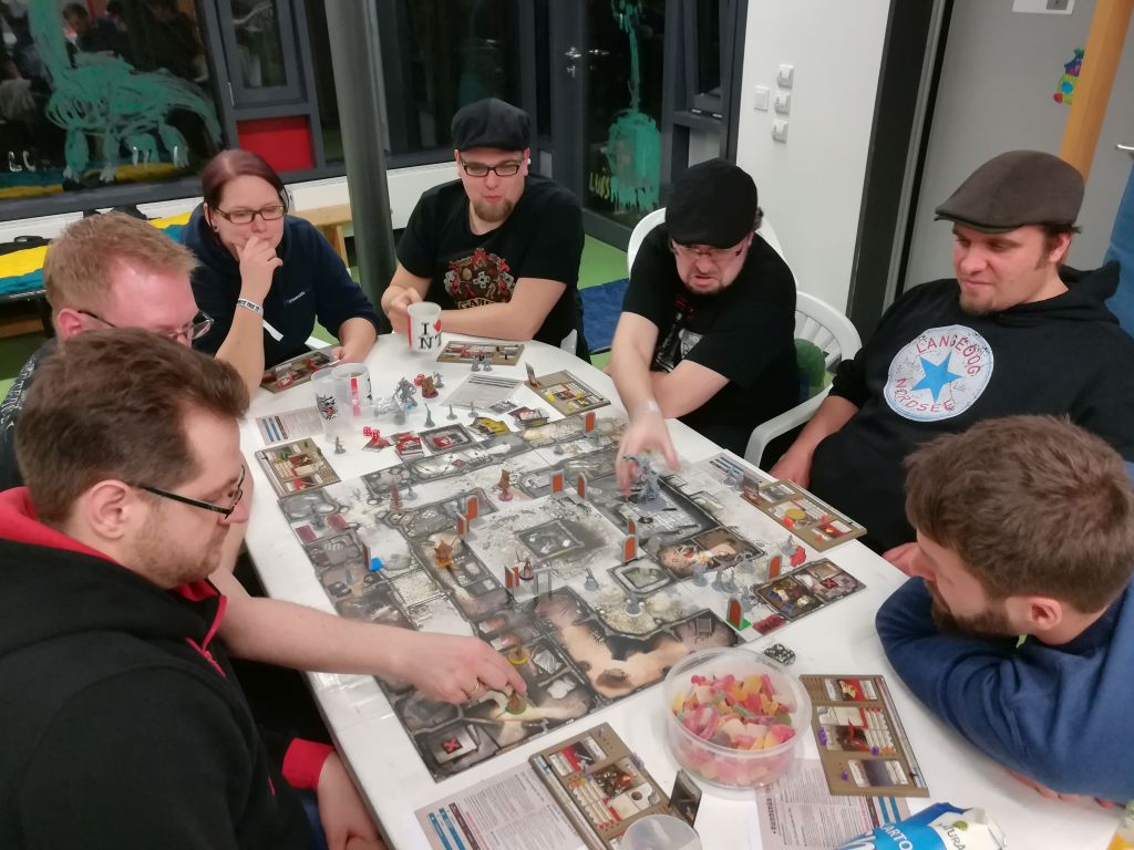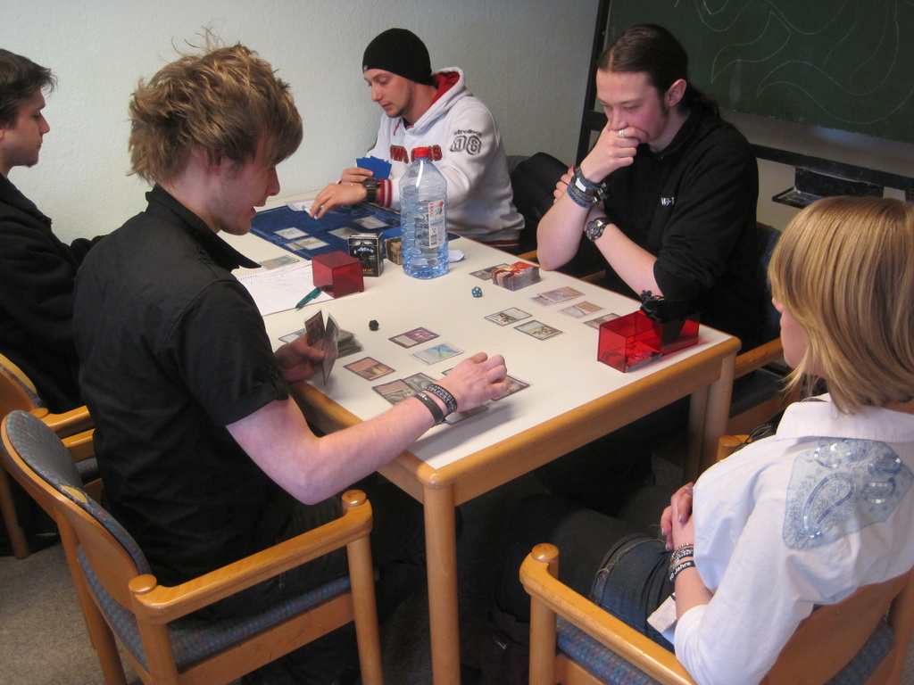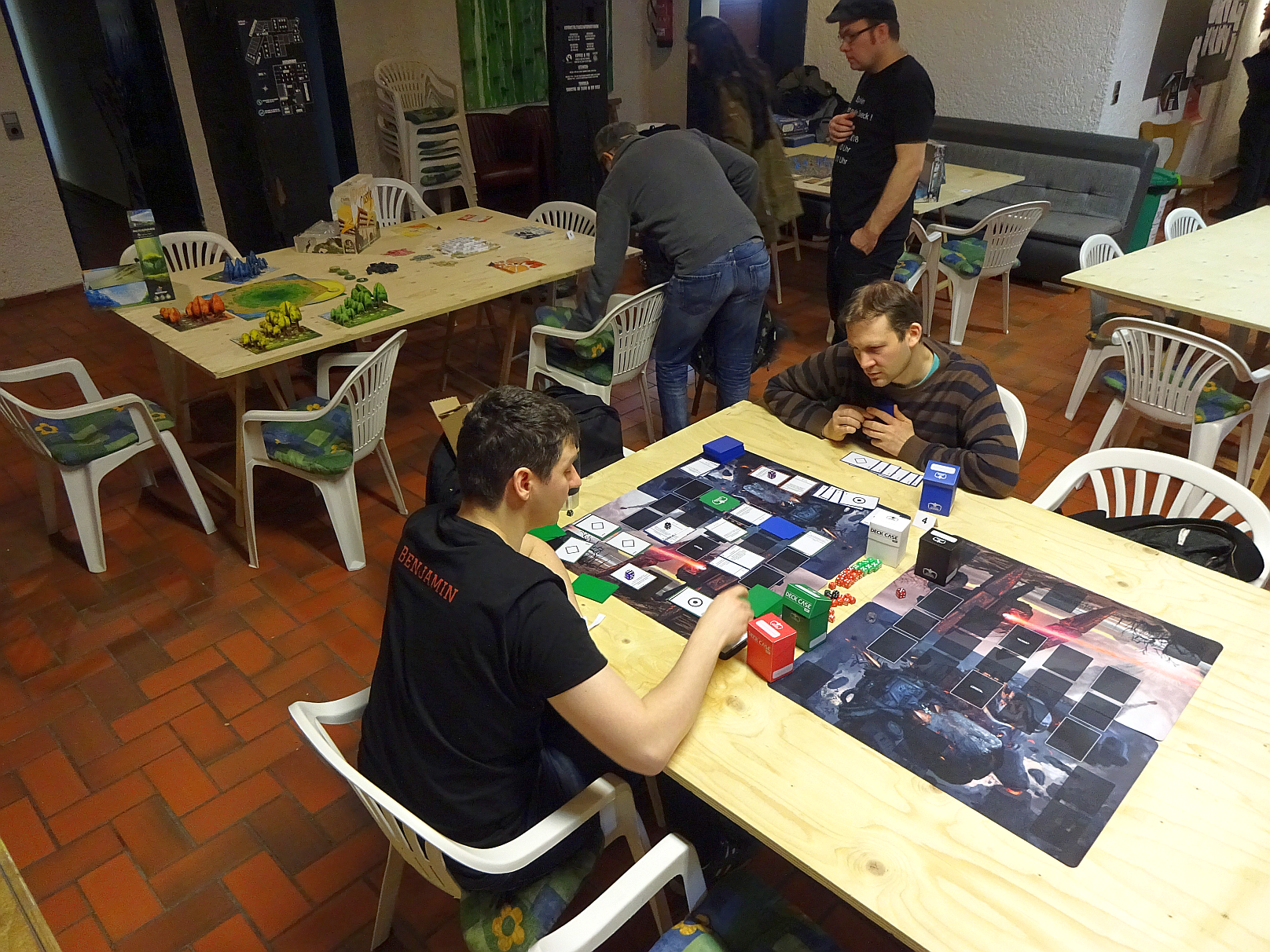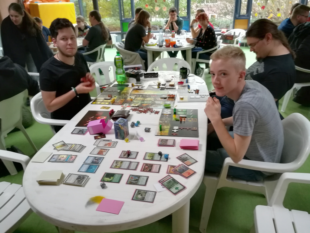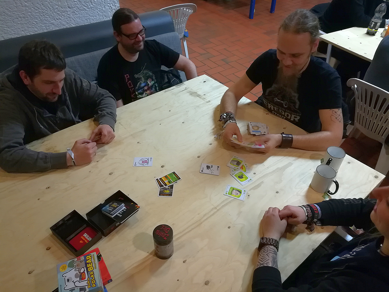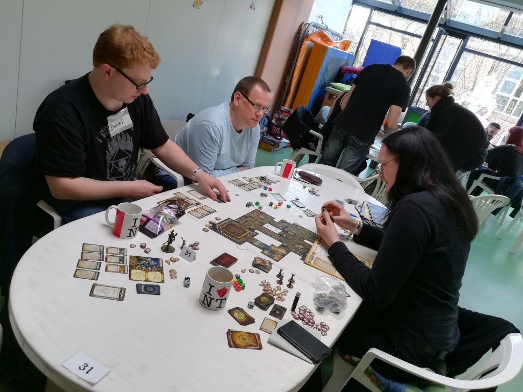 NT24: Bei frischem, wenn doch trockenem Wetter, öffneten sich die Pforten gegen 17:30 Uhr und der Run auf die Tassen im JD Style konnte beginnen. Mit Flatrate und Proviant gewappnet ging es auch schon an die Spieltische. Wer hingegen etwas Kultur genießen wollte, war in der Lesung mit Bernhard Hennen genau richtig. Als der Chilimeister zum Mitternachtsimbiss rief und auch der letzte eine Spielrunde oder bereits einen Platz im Schlafraum der neuen Kita gefunden hatte, ging der Freitag mit einem neuen Besucherrekord von 212 Gästen zu Ende. Am Samstag sollte es spannend werden, ob der Wegfall des Obergeschosses im Jugendhaus auf die Tischreserven auswirken sollte, doch dem war nicht so. Auch einem erneuten Wurststau konnte entgegengewirkt werden, trotz dessen es zu kurzen Wartezeiten beim Grillmeister kam. Mit der Wunschlesung von Bernhard Hennen und Tom Daut wurde auch der Samstag Nachmittag literarisch aufgewertet. Bei der Tombola am Abend konnte man gleich zu Beginn, oder doch am Ende, den verwirrten Gästen eine Besucherzahl von 310 präsentieren. Am Sonntag sollte, ausser beim Grillmeister nichts mehr anbrennen. Die Besucher die es bis dahin geschafft hatten gegen die Müdigkeit anzukämpfen nutzten nochmal ihre Flatrate und spielten bis zur letzten Minute. Mit 321 Gästen, ging die an der Besucherzahl gemessene zweit stärkste Märzveranstaltung zu Ende.