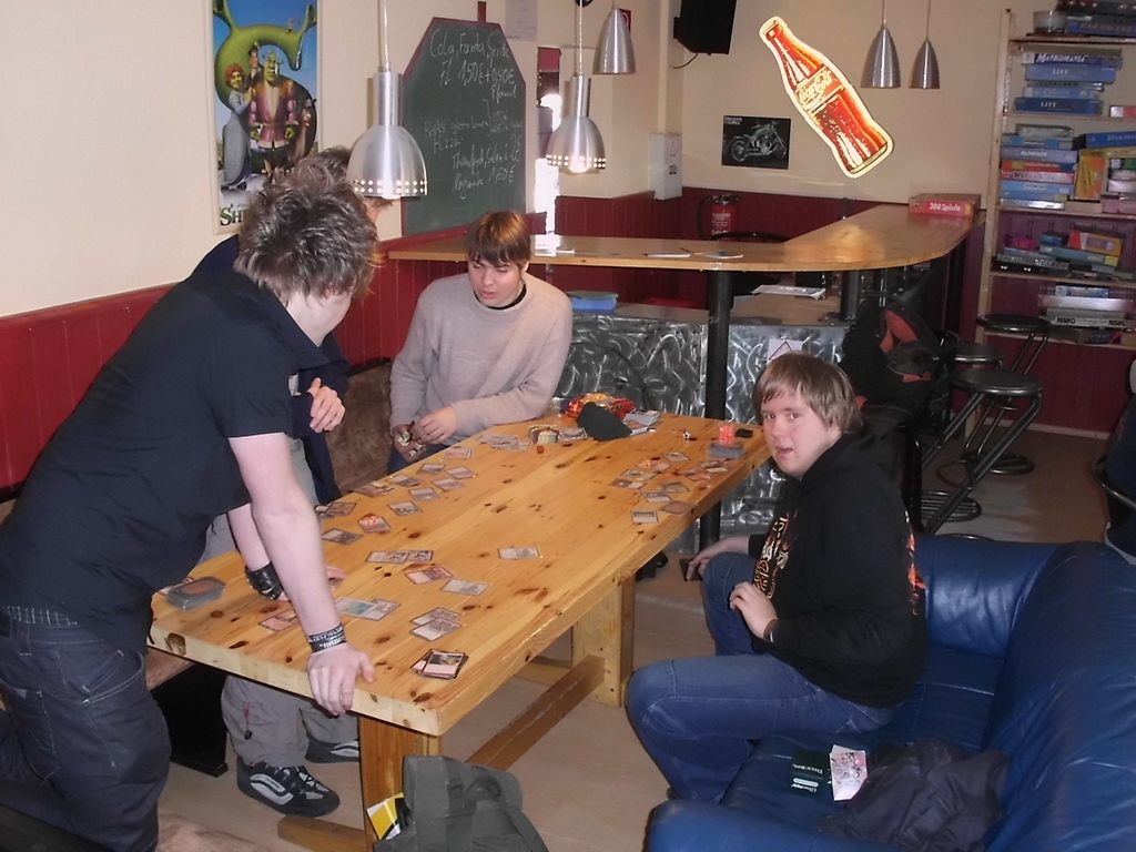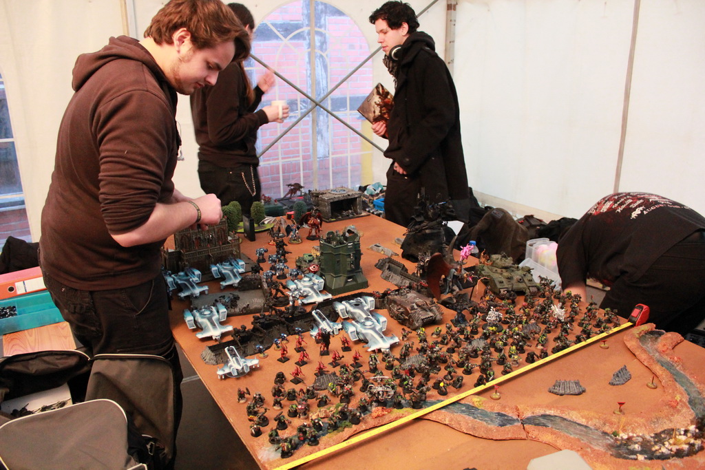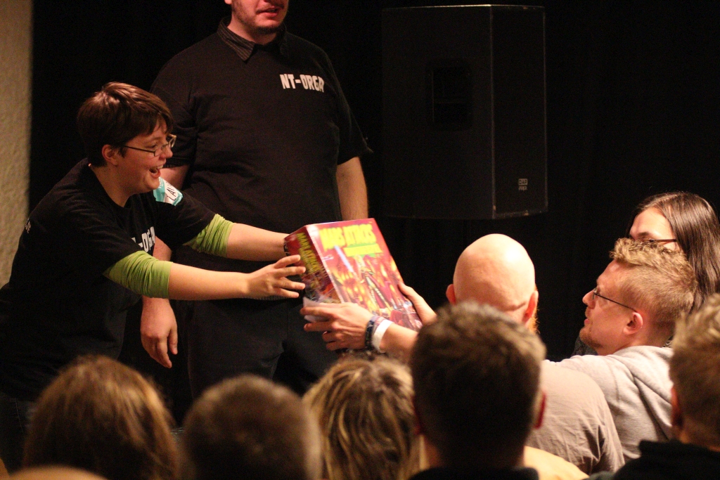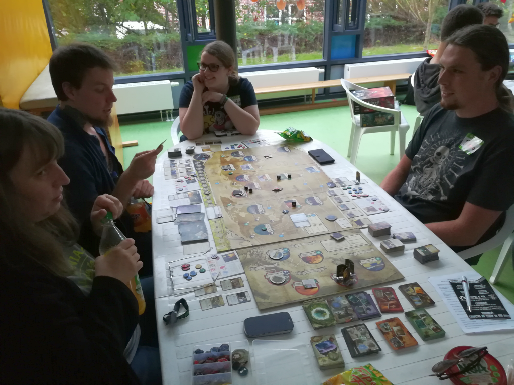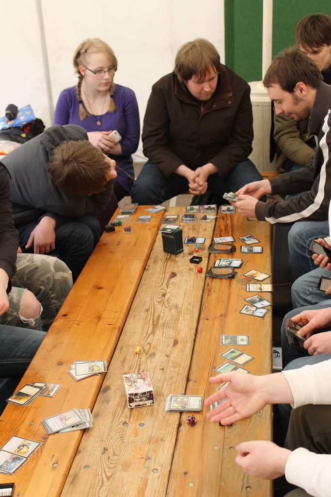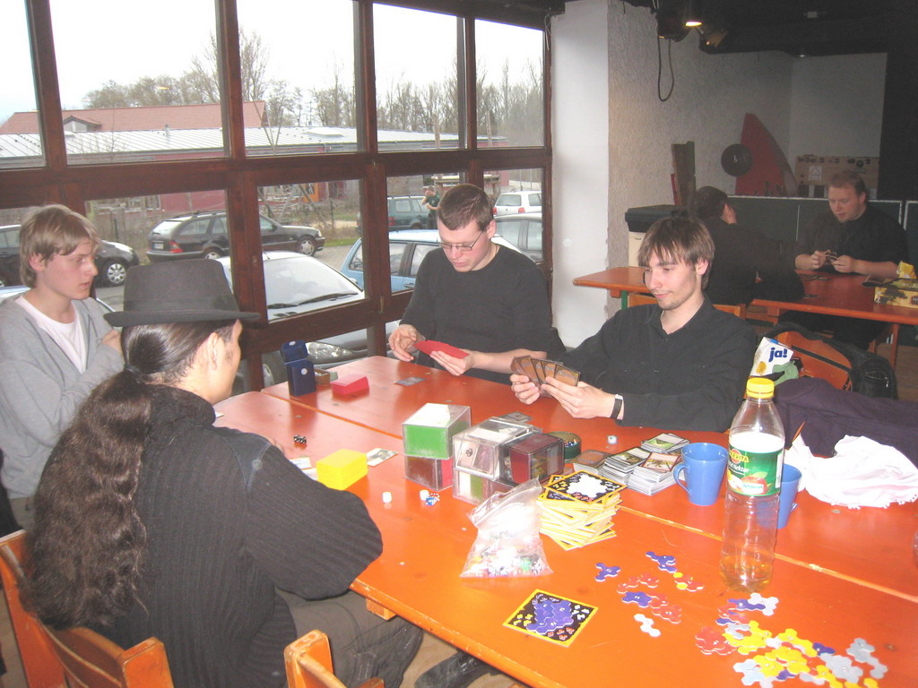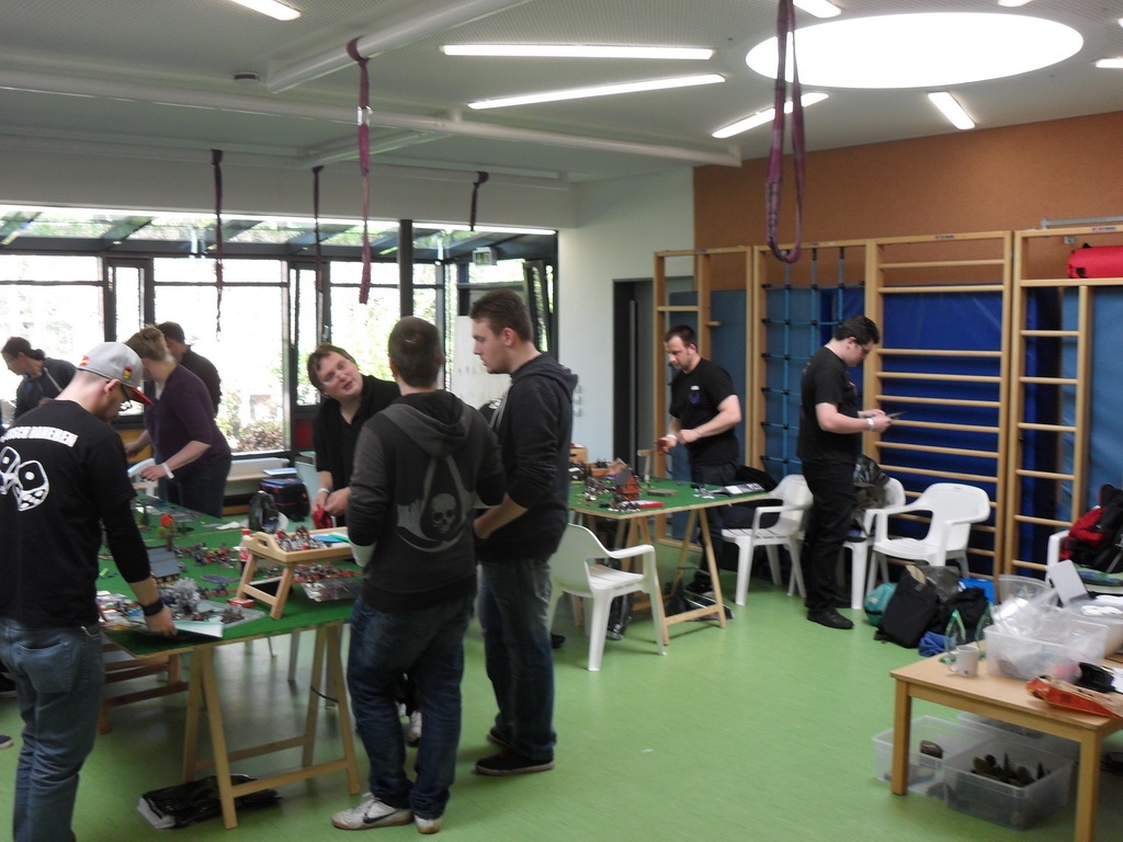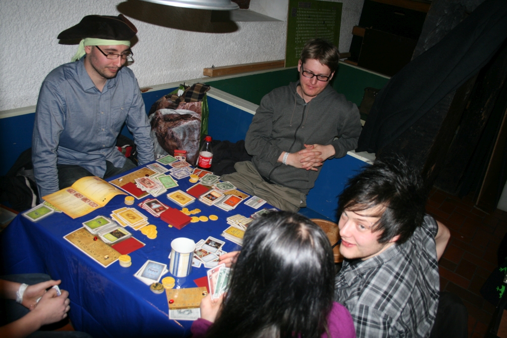 NT24: Bei frischem, wenn doch trockenem Wetter, öffneten sich die Pforten gegen 17:30 Uhr und der Run auf die Tassen im JD Style konnte beginnen. Mit Flatrate und Proviant gewappnet ging es auch schon an die Spieltische. Wer hingegen etwas Kultur genießen wollte, war in der Lesung mit Bernhard Hennen genau richtig. Als der Chilimeister zum Mitternachtsimbiss rief und auch der letzte eine Spielrunde oder bereits einen Platz im Schlafraum der neuen Kita gefunden hatte, ging der Freitag mit einem neuen Besucherrekord von 212 Gästen zu Ende. Am Samstag sollte es spannend werden, ob der Wegfall des Obergeschosses im Jugendhaus auf die Tischreserven auswirken sollte, doch dem war nicht so. Auch einem erneuten Wurststau konnte entgegengewirkt werden, trotz dessen es zu kurzen Wartezeiten beim Grillmeister kam. Mit der Wunschlesung von Bernhard Hennen und Tom Daut wurde auch der Samstag Nachmittag literarisch aufgewertet. Bei der Tombola am Abend konnte man gleich zu Beginn, oder doch am Ende, den verwirrten Gästen eine Besucherzahl von 310 präsentieren. Am Sonntag sollte, ausser beim Grillmeister nichts mehr anbrennen. Die Besucher die es bis dahin geschafft hatten gegen die Müdigkeit anzukämpfen nutzten nochmal ihre Flatrate und spielten bis zur letzten Minute. Mit 321 Gästen, ging die an der Besucherzahl gemessene zweit stärkste Märzveranstaltung zu Ende.