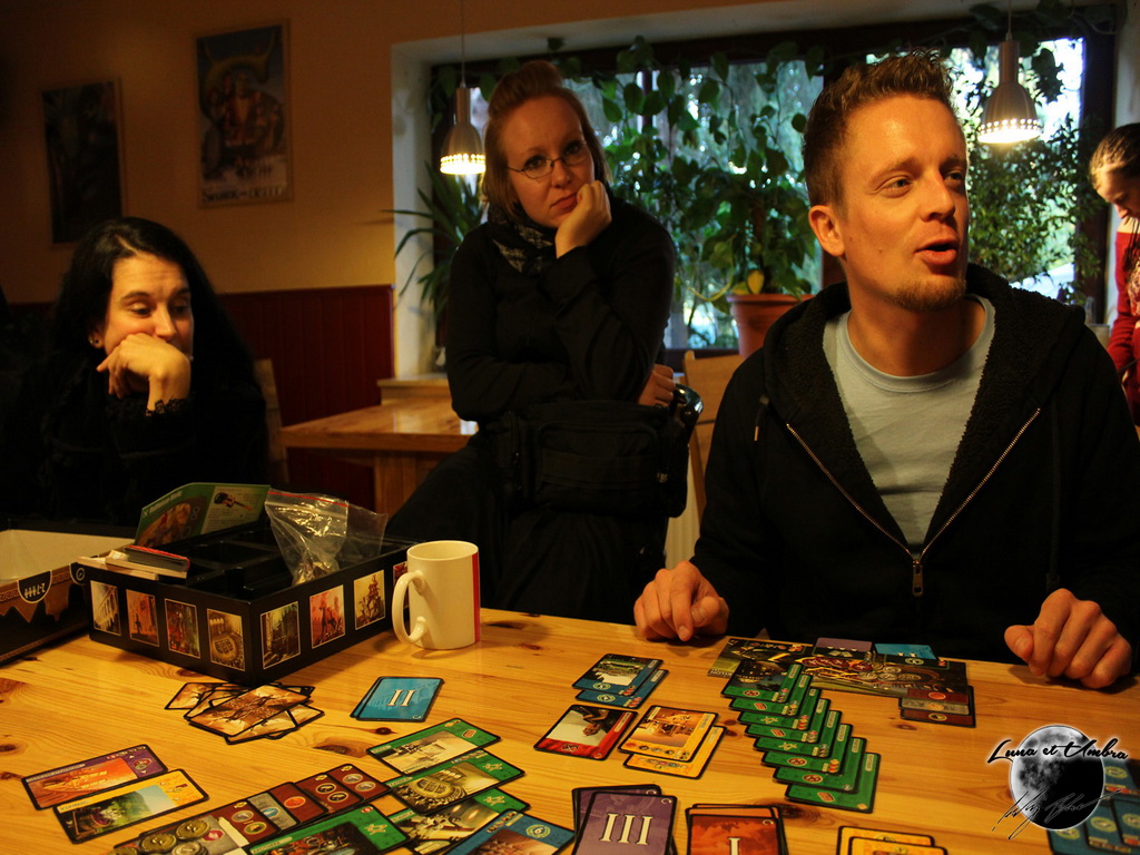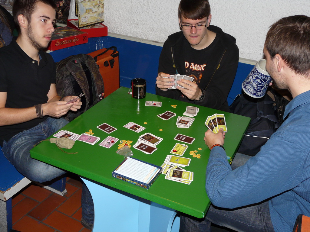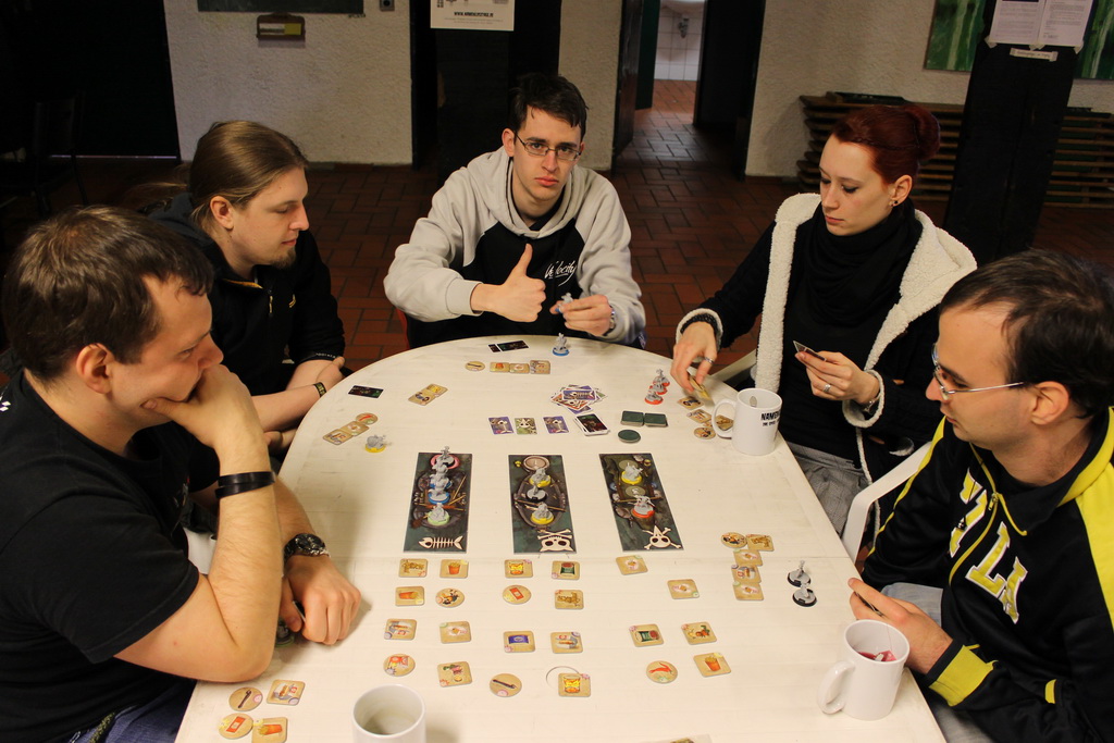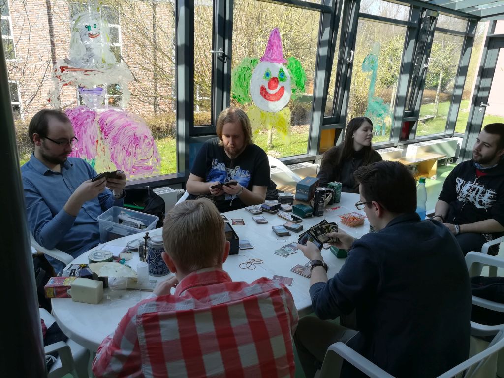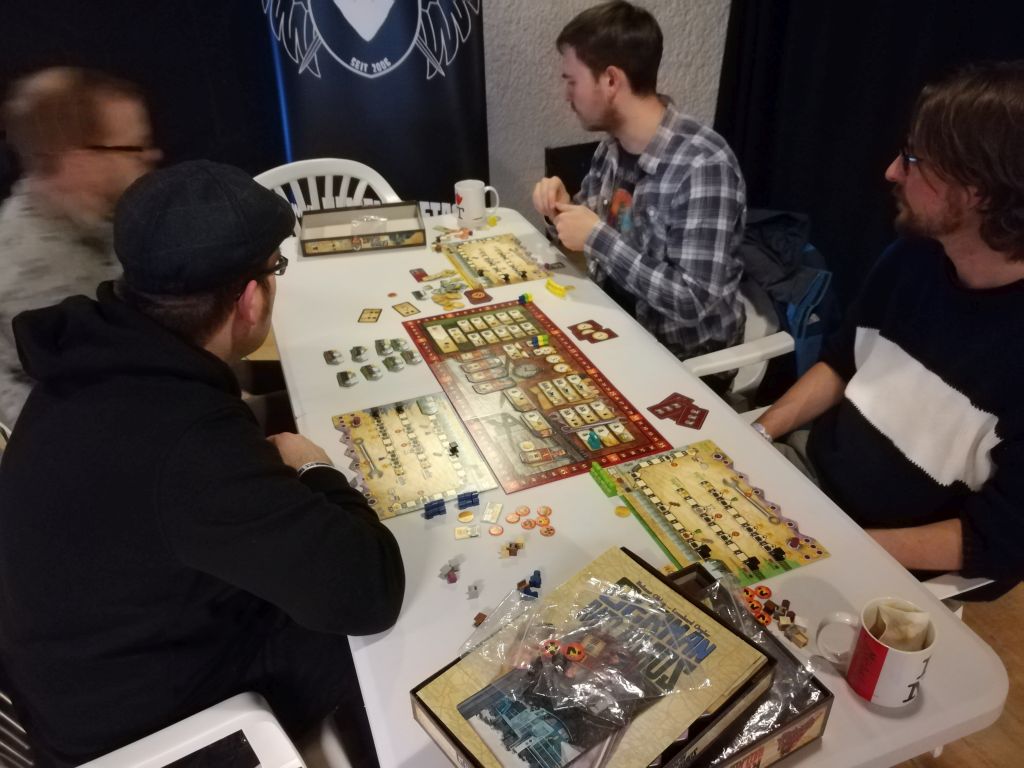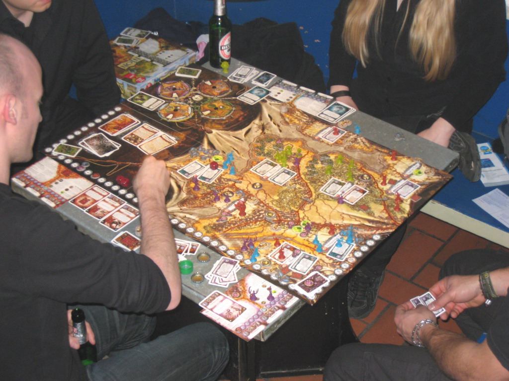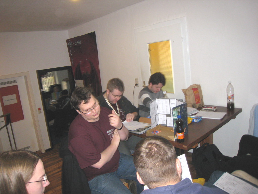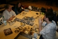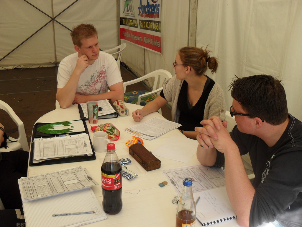 NT24: Bei frischem, wenn doch trockenem Wetter, öffneten sich die Pforten gegen 17:30 Uhr und der Run auf die Tassen im JD Style konnte beginnen. Mit Flatrate und Proviant gewappnet ging es auch schon an die Spieltische. Wer hingegen etwas Kultur genießen wollte, war in der Lesung mit Bernhard Hennen genau richtig. Als der Chilimeister zum Mitternachtsimbiss rief und auch der letzte eine Spielrunde oder bereits einen Platz im Schlafraum der neuen Kita gefunden hatte, ging der Freitag mit einem neuen Besucherrekord von 212 Gästen zu Ende. Am Samstag sollte es spannend werden, ob der Wegfall des Obergeschosses im Jugendhaus auf die Tischreserven auswirken sollte, doch dem war nicht so. Auch einem erneuten Wurststau konnte entgegengewirkt werden, trotz dessen es zu kurzen Wartezeiten beim Grillmeister kam. Mit der Wunschlesung von Bernhard Hennen und Tom Daut wurde auch der Samstag Nachmittag literarisch aufgewertet. Bei der Tombola am Abend konnte man gleich zu Beginn, oder doch am Ende, den verwirrten Gästen eine Besucherzahl von 310 präsentieren. Am Sonntag sollte, ausser beim Grillmeister nichts mehr anbrennen. Die Besucher die es bis dahin geschafft hatten gegen die Müdigkeit anzukämpfen nutzten nochmal ihre Flatrate und spielten bis zur letzten Minute. Mit 321 Gästen, ging die an der Besucherzahl gemessene zweit stärkste Märzveranstaltung zu Ende.