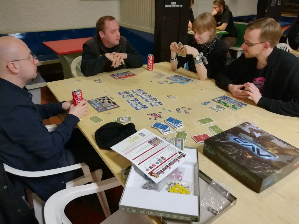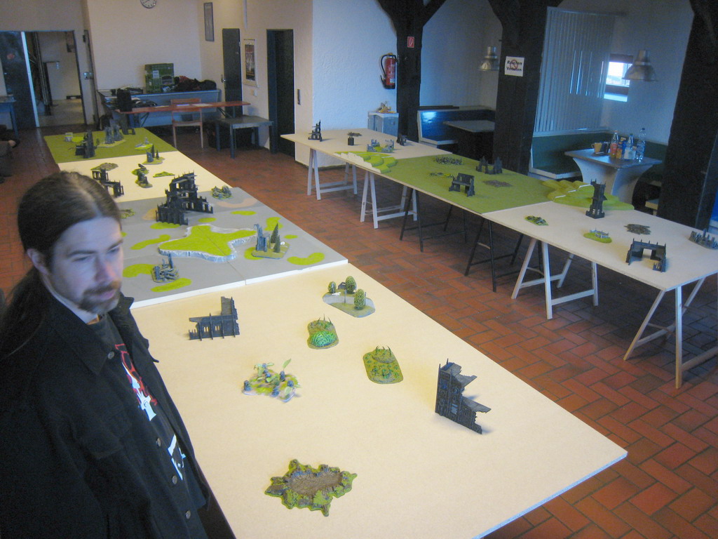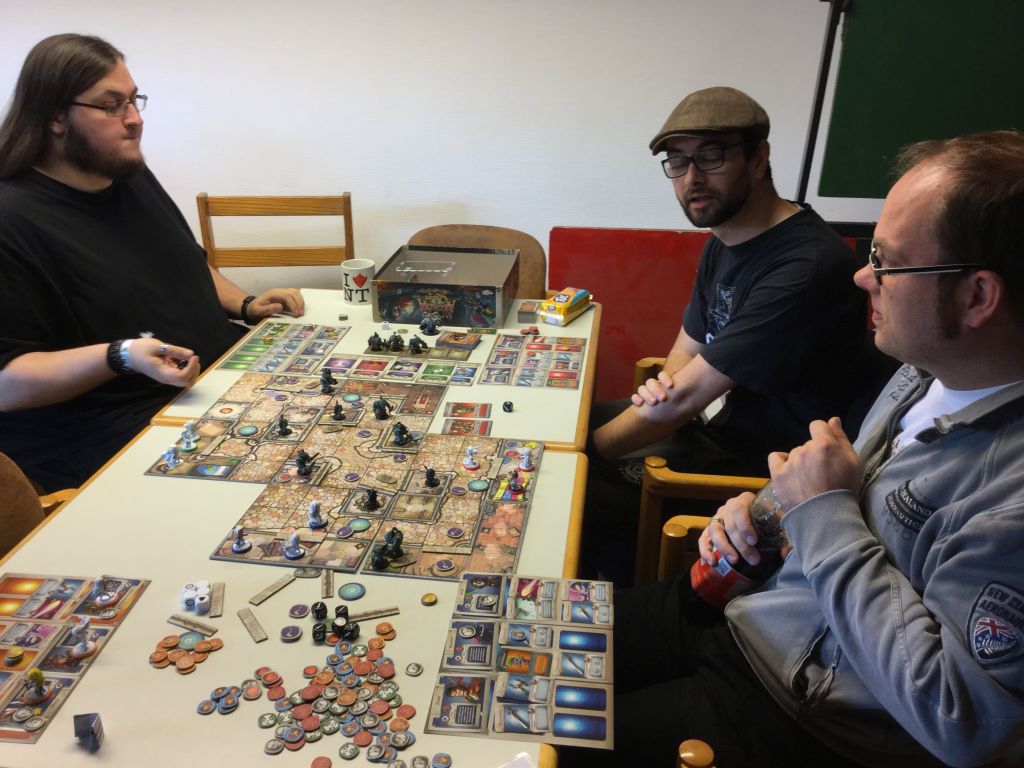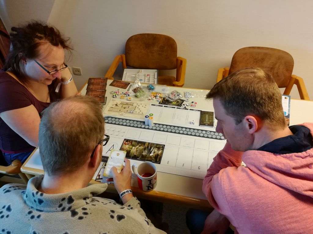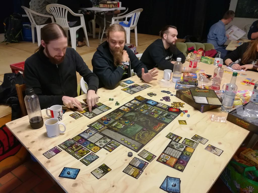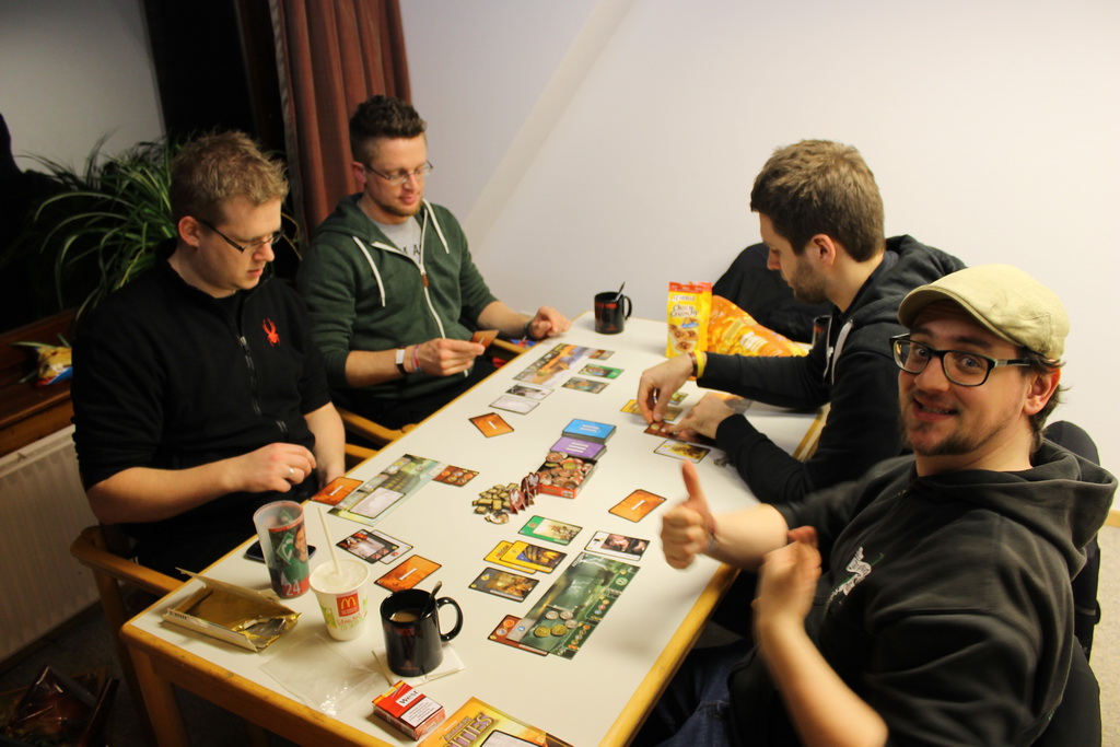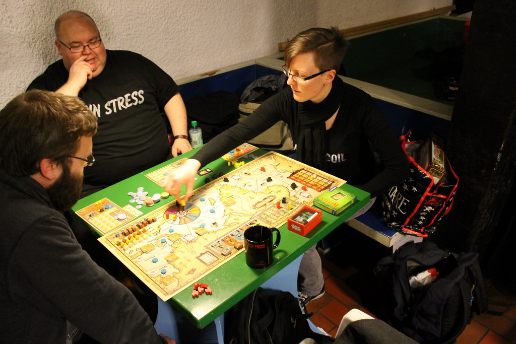 NT24: Bei frischem, wenn doch trockenem Wetter, öffneten sich die Pforten gegen 17:30 Uhr und der Run auf die Tassen im JD Style konnte beginnen. Mit Flatrate und Proviant gewappnet ging es auch schon an die Spieltische. Wer hingegen etwas Kultur genießen wollte, war in der Lesung mit Bernhard Hennen genau richtig. Als der Chilimeister zum Mitternachtsimbiss rief und auch der letzte eine Spielrunde oder bereits einen Platz im Schlafraum der neuen Kita gefunden hatte, ging der Freitag mit einem neuen Besucherrekord von 212 Gästen zu Ende. Am Samstag sollte es spannend werden, ob der Wegfall des Obergeschosses im Jugendhaus auf die Tischreserven auswirken sollte, doch dem war nicht so. Auch einem erneuten Wurststau konnte entgegengewirkt werden, trotz dessen es zu kurzen Wartezeiten beim Grillmeister kam. Mit der Wunschlesung von Bernhard Hennen und Tom Daut wurde auch der Samstag Nachmittag literarisch aufgewertet. Bei der Tombola am Abend konnte man gleich zu Beginn, oder doch am Ende, den verwirrten Gästen eine Besucherzahl von 310 präsentieren. Am Sonntag sollte, ausser beim Grillmeister nichts mehr anbrennen. Die Besucher die es bis dahin geschafft hatten gegen die Müdigkeit anzukämpfen nutzten nochmal ihre Flatrate und spielten bis zur letzten Minute. Mit 321 Gästen, ging die an der Besucherzahl gemessene zweit stärkste Märzveranstaltung zu Ende.