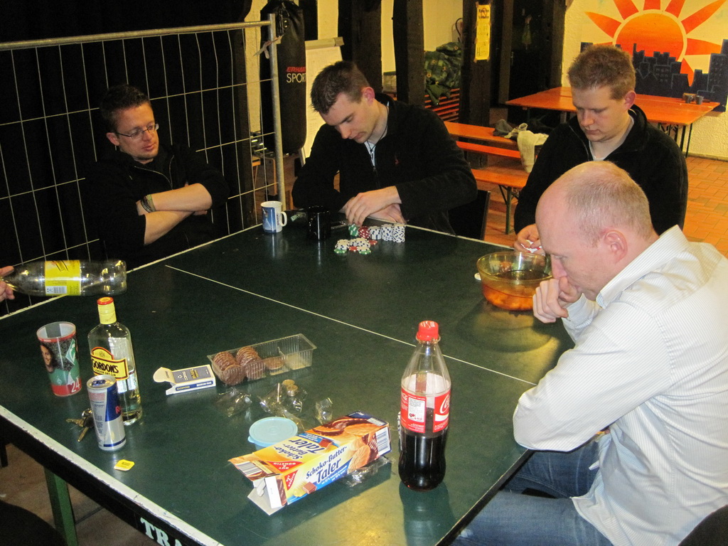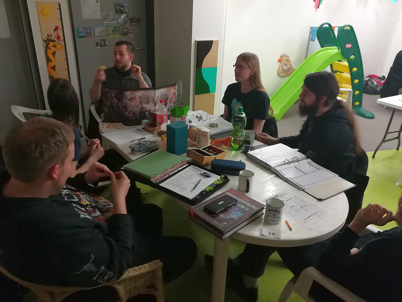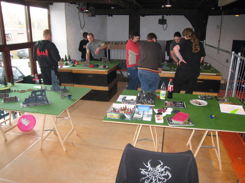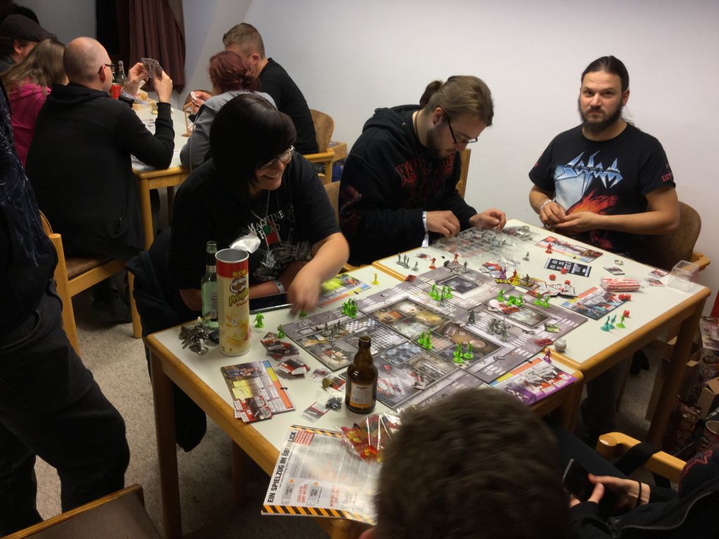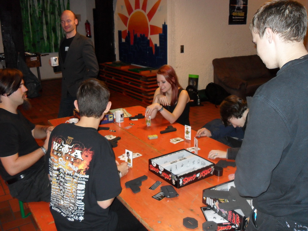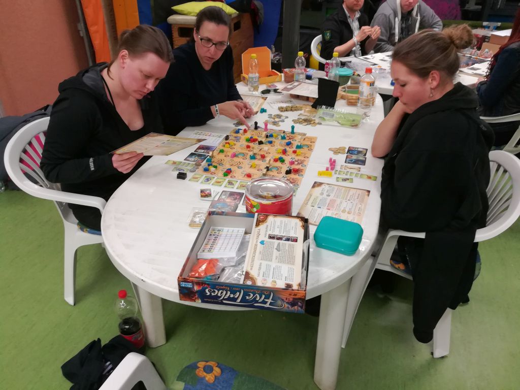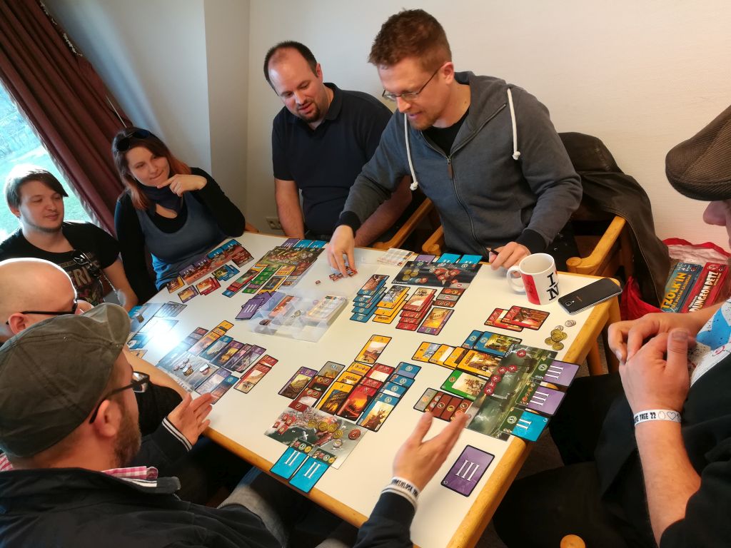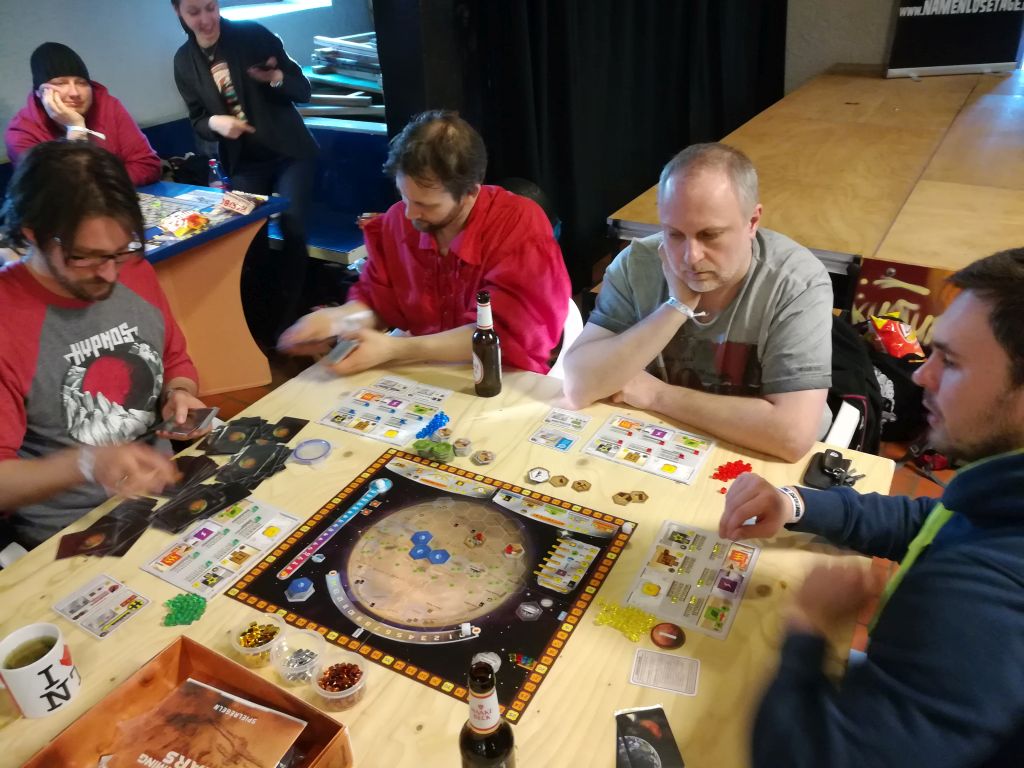 NT24: Bei frischem, wenn doch trockenem Wetter, öffneten sich die Pforten gegen 17:30 Uhr und der Run auf die Tassen im JD Style konnte beginnen. Mit Flatrate und Proviant gewappnet ging es auch schon an die Spieltische. Wer hingegen etwas Kultur genießen wollte, war in der Lesung mit Bernhard Hennen genau richtig. Als der Chilimeister zum Mitternachtsimbiss rief und auch der letzte eine Spielrunde oder bereits einen Platz im Schlafraum der neuen Kita gefunden hatte, ging der Freitag mit einem neuen Besucherrekord von 212 Gästen zu Ende. Am Samstag sollte es spannend werden, ob der Wegfall des Obergeschosses im Jugendhaus auf die Tischreserven auswirken sollte, doch dem war nicht so. Auch einem erneuten Wurststau konnte entgegengewirkt werden, trotz dessen es zu kurzen Wartezeiten beim Grillmeister kam. Mit der Wunschlesung von Bernhard Hennen und Tom Daut wurde auch der Samstag Nachmittag literarisch aufgewertet. Bei der Tombola am Abend konnte man gleich zu Beginn, oder doch am Ende, den verwirrten Gästen eine Besucherzahl von 310 präsentieren. Am Sonntag sollte, ausser beim Grillmeister nichts mehr anbrennen. Die Besucher die es bis dahin geschafft hatten gegen die Müdigkeit anzukämpfen nutzten nochmal ihre Flatrate und spielten bis zur letzten Minute. Mit 321 Gästen, ging die an der Besucherzahl gemessene zweit stärkste Märzveranstaltung zu Ende.