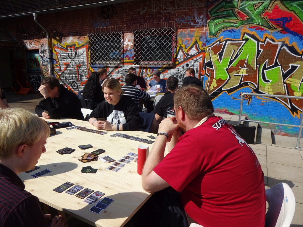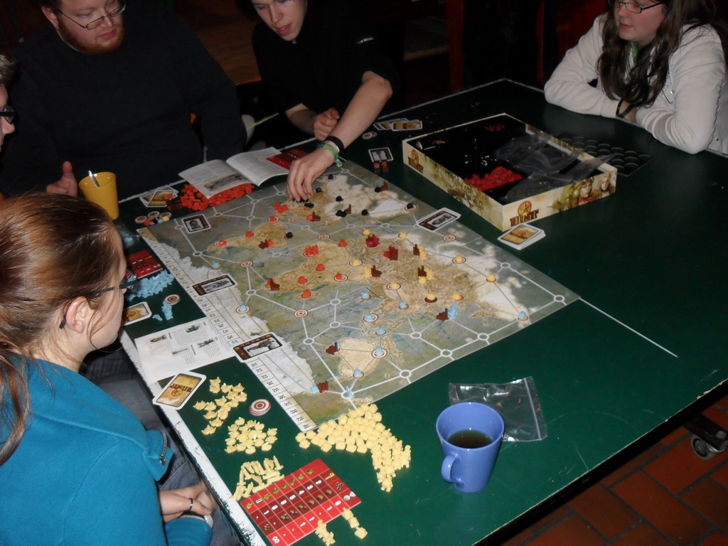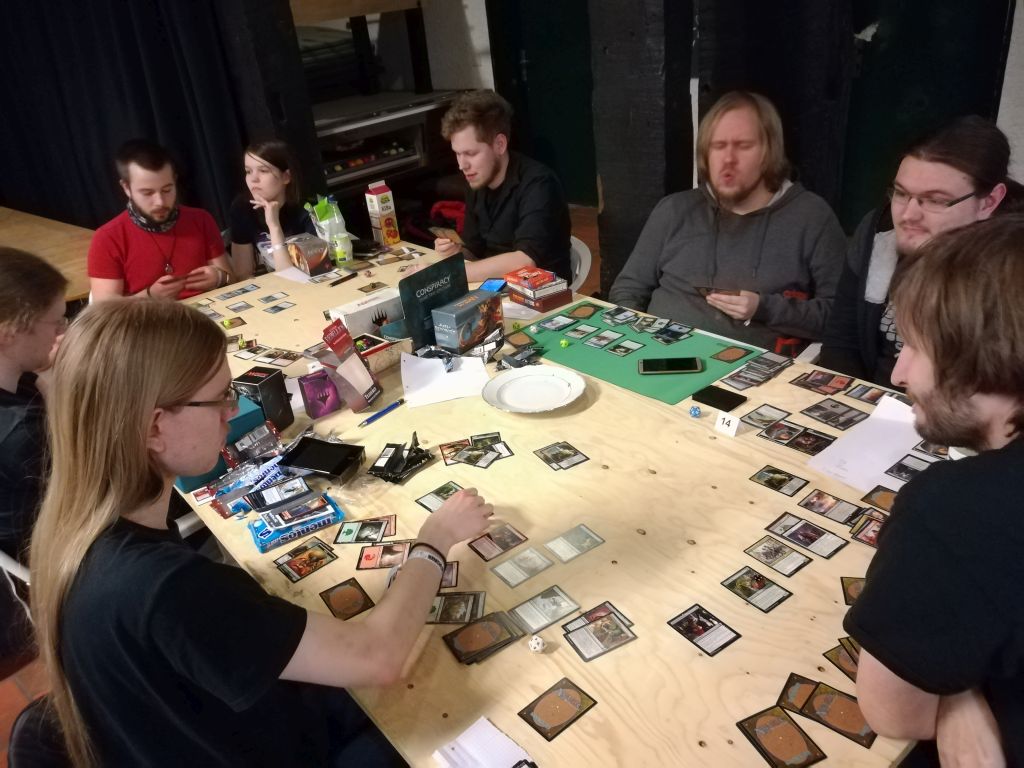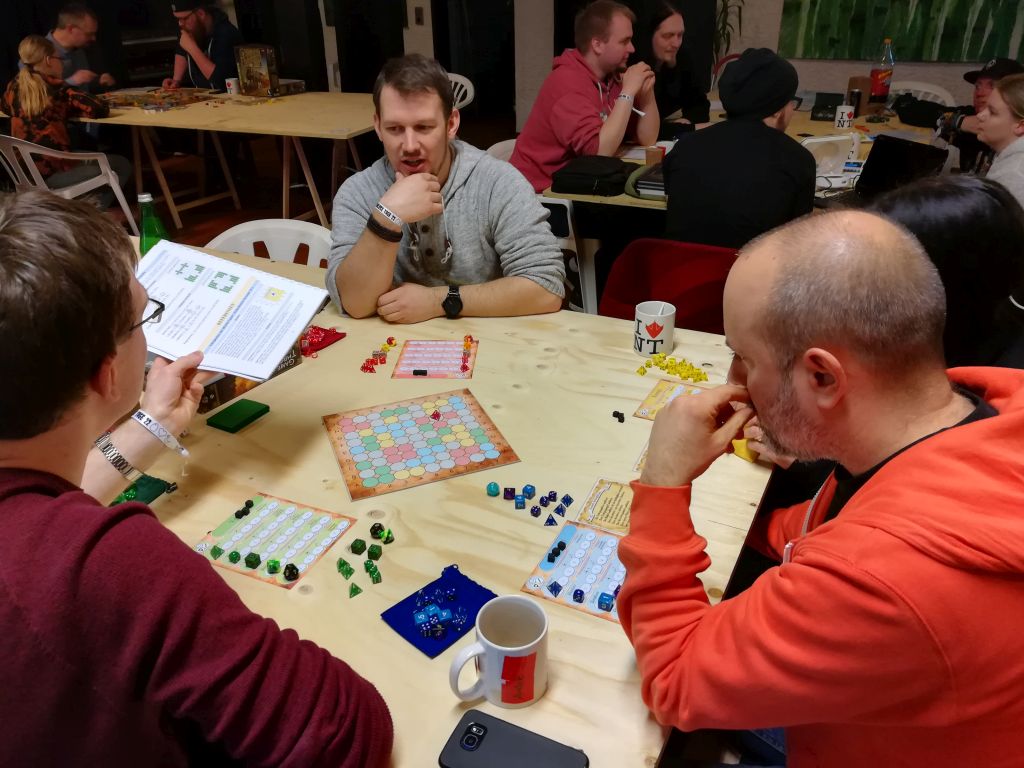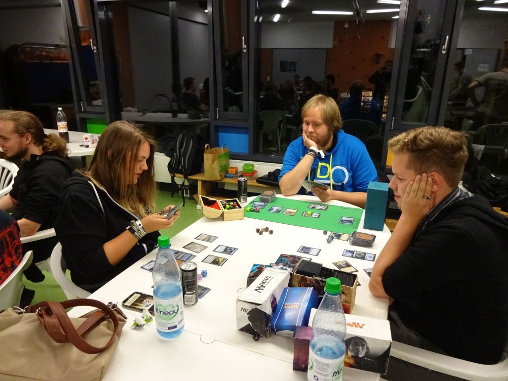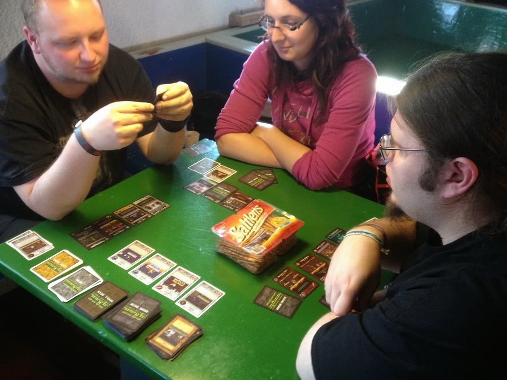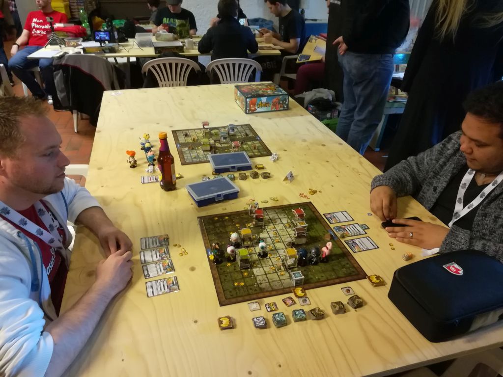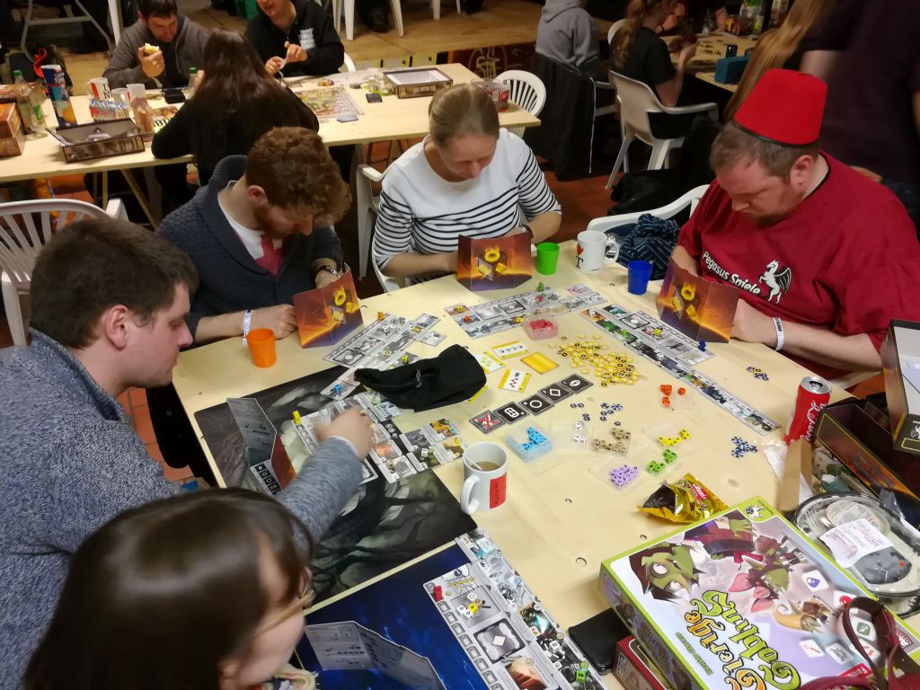 NT24: Bei frischem, wenn doch trockenem Wetter, öffneten sich die Pforten gegen 17:30 Uhr und der Run auf die Tassen im JD Style konnte beginnen. Mit Flatrate und Proviant gewappnet ging es auch schon an die Spieltische. Wer hingegen etwas Kultur genießen wollte, war in der Lesung mit Bernhard Hennen genau richtig. Als der Chilimeister zum Mitternachtsimbiss rief und auch der letzte eine Spielrunde oder bereits einen Platz im Schlafraum der neuen Kita gefunden hatte, ging der Freitag mit einem neuen Besucherrekord von 212 Gästen zu Ende. Am Samstag sollte es spannend werden, ob der Wegfall des Obergeschosses im Jugendhaus auf die Tischreserven auswirken sollte, doch dem war nicht so. Auch einem erneuten Wurststau konnte entgegengewirkt werden, trotz dessen es zu kurzen Wartezeiten beim Grillmeister kam. Mit der Wunschlesung von Bernhard Hennen und Tom Daut wurde auch der Samstag Nachmittag literarisch aufgewertet. Bei der Tombola am Abend konnte man gleich zu Beginn, oder doch am Ende, den verwirrten Gästen eine Besucherzahl von 310 präsentieren. Am Sonntag sollte, ausser beim Grillmeister nichts mehr anbrennen. Die Besucher die es bis dahin geschafft hatten gegen die Müdigkeit anzukämpfen nutzten nochmal ihre Flatrate und spielten bis zur letzten Minute. Mit 321 Gästen, ging die an der Besucherzahl gemessene zweit stärkste Märzveranstaltung zu Ende.