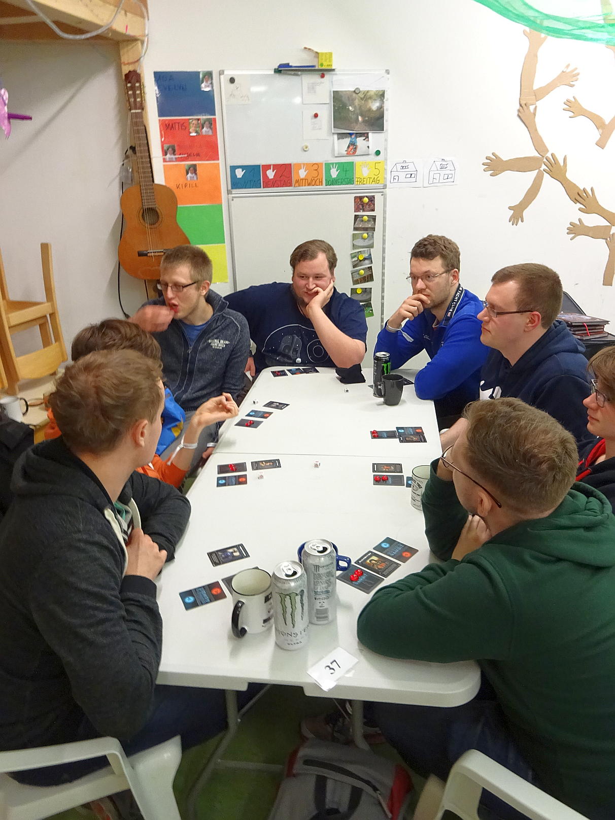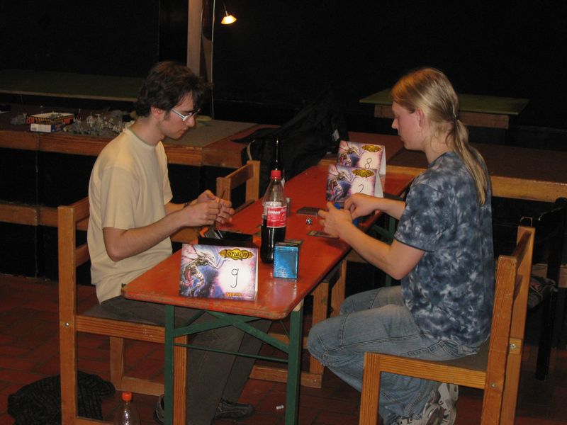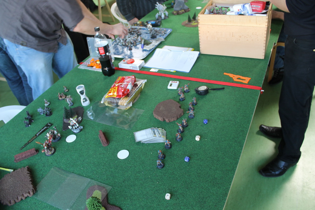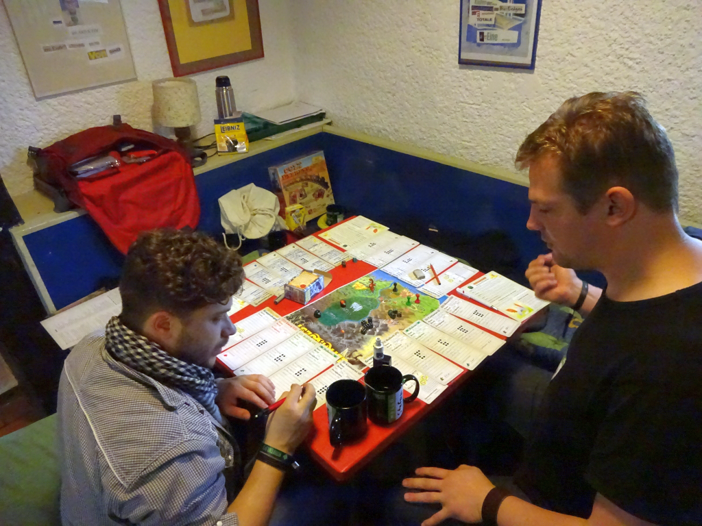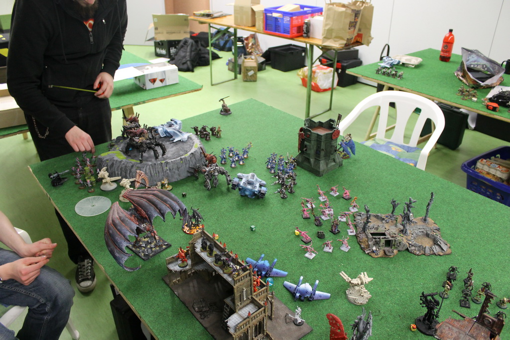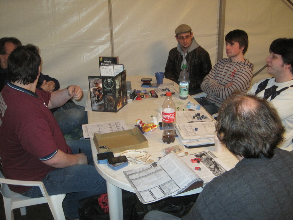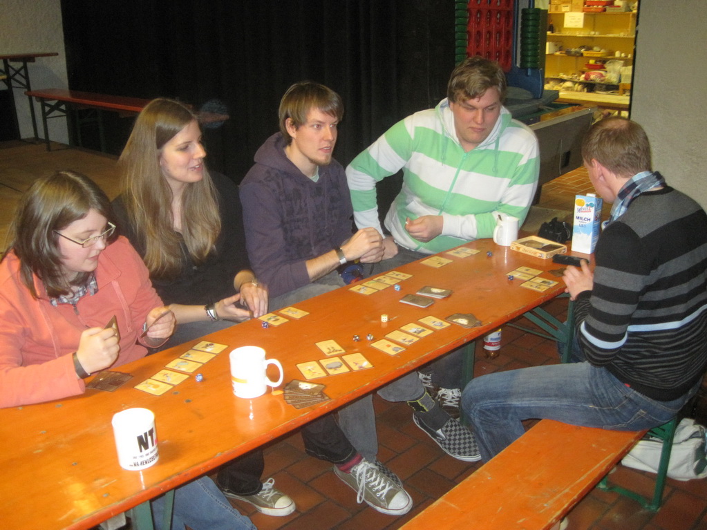 NT24: Bei frischem, wenn doch trockenem Wetter, öffneten sich die Pforten gegen 17:30 Uhr und der Run auf die Tassen im JD Style konnte beginnen. Mit Flatrate und Proviant gewappnet ging es auch schon an die Spieltische. Wer hingegen etwas Kultur genießen wollte, war in der Lesung mit Bernhard Hennen genau richtig. Als der Chilimeister zum Mitternachtsimbiss rief und auch der letzte eine Spielrunde oder bereits einen Platz im Schlafraum der neuen Kita gefunden hatte, ging der Freitag mit einem neuen Besucherrekord von 212 Gästen zu Ende. Am Samstag sollte es spannend werden, ob der Wegfall des Obergeschosses im Jugendhaus auf die Tischreserven auswirken sollte, doch dem war nicht so. Auch einem erneuten Wurststau konnte entgegengewirkt werden, trotz dessen es zu kurzen Wartezeiten beim Grillmeister kam. Mit der Wunschlesung von Bernhard Hennen und Tom Daut wurde auch der Samstag Nachmittag literarisch aufgewertet. Bei der Tombola am Abend konnte man gleich zu Beginn, oder doch am Ende, den verwirrten Gästen eine Besucherzahl von 310 präsentieren. Am Sonntag sollte, ausser beim Grillmeister nichts mehr anbrennen. Die Besucher die es bis dahin geschafft hatten gegen die Müdigkeit anzukämpfen nutzten nochmal ihre Flatrate und spielten bis zur letzten Minute. Mit 321 Gästen, ging die an der Besucherzahl gemessene zweit stärkste Märzveranstaltung zu Ende.