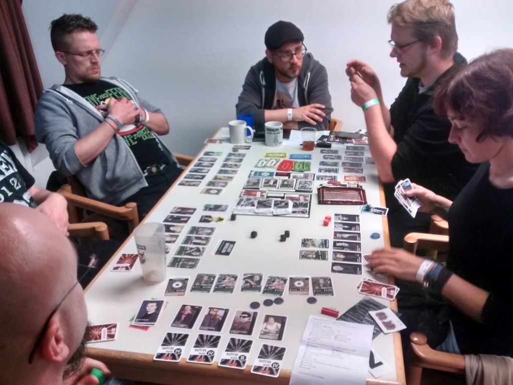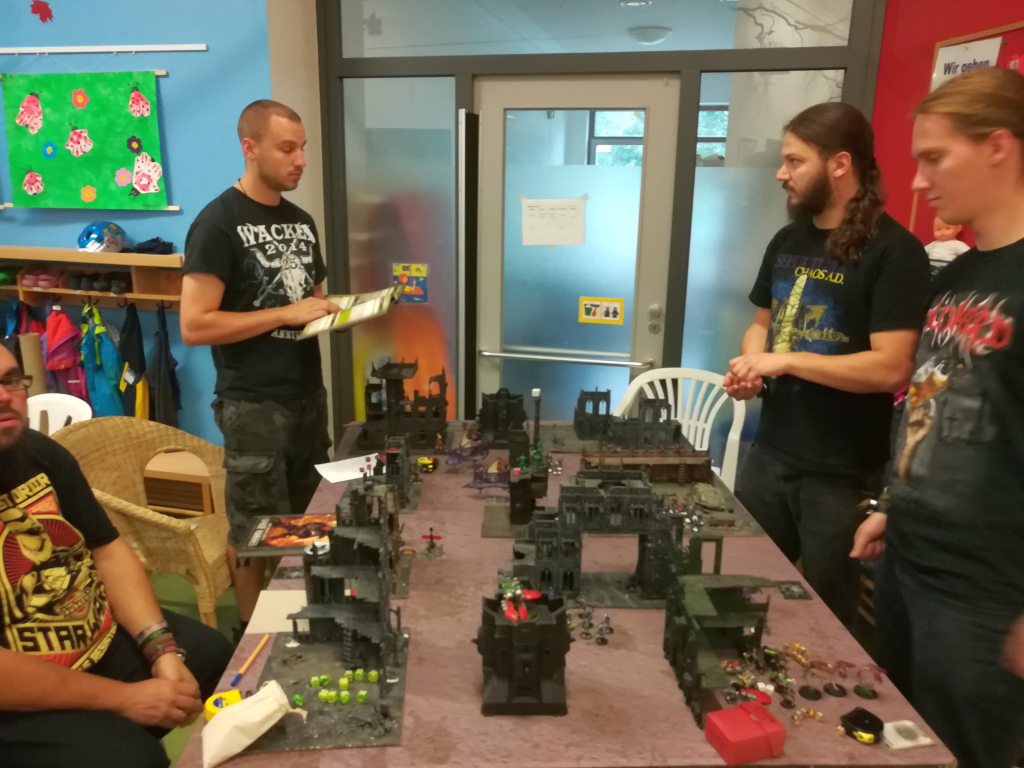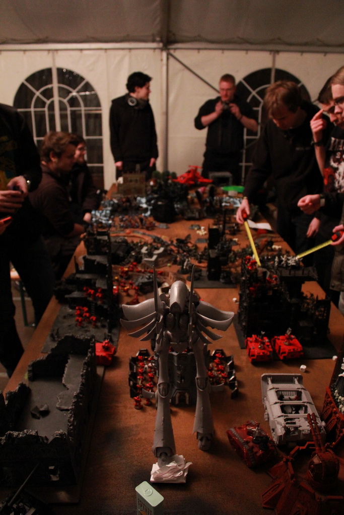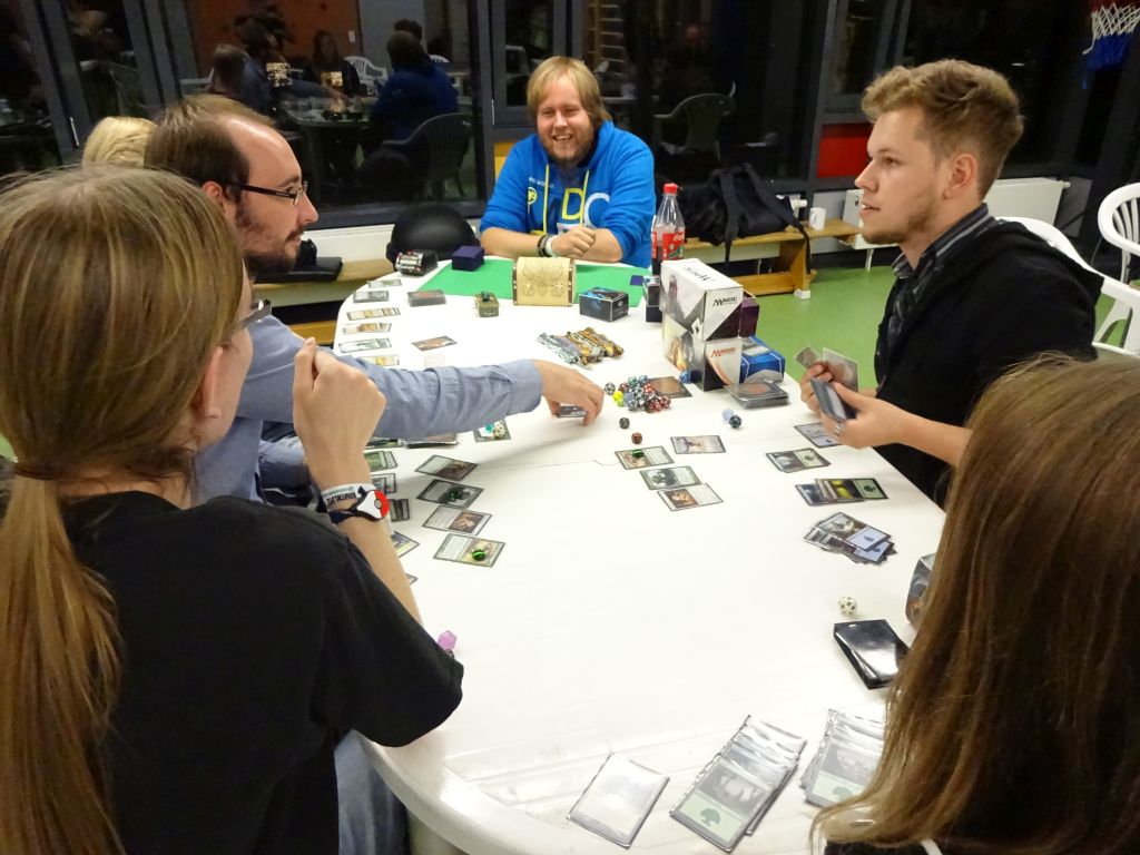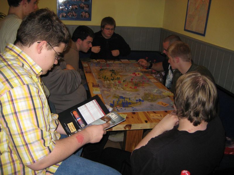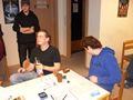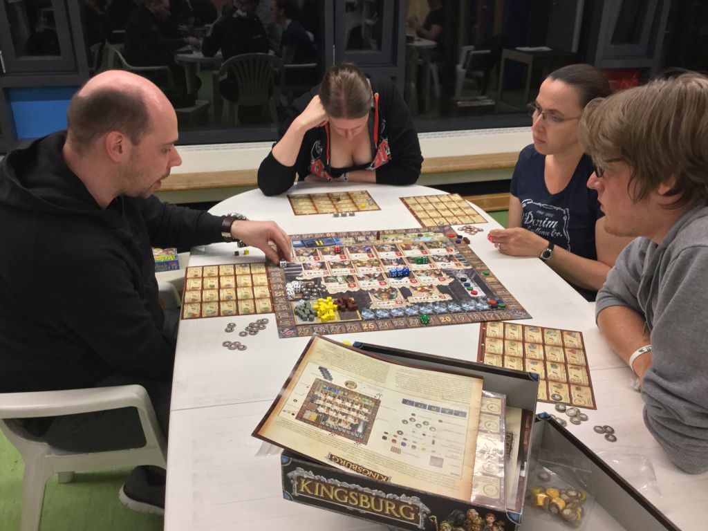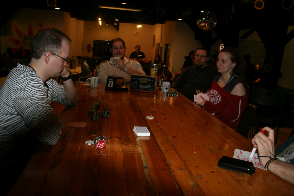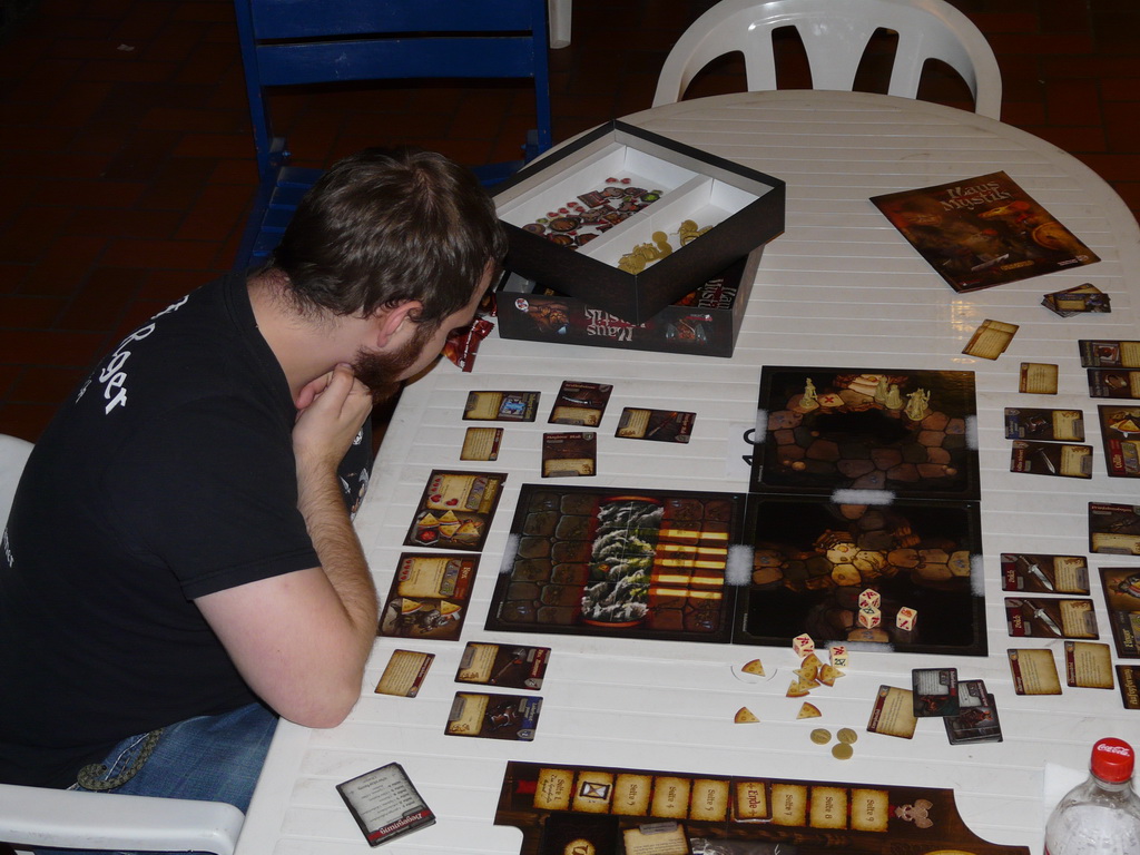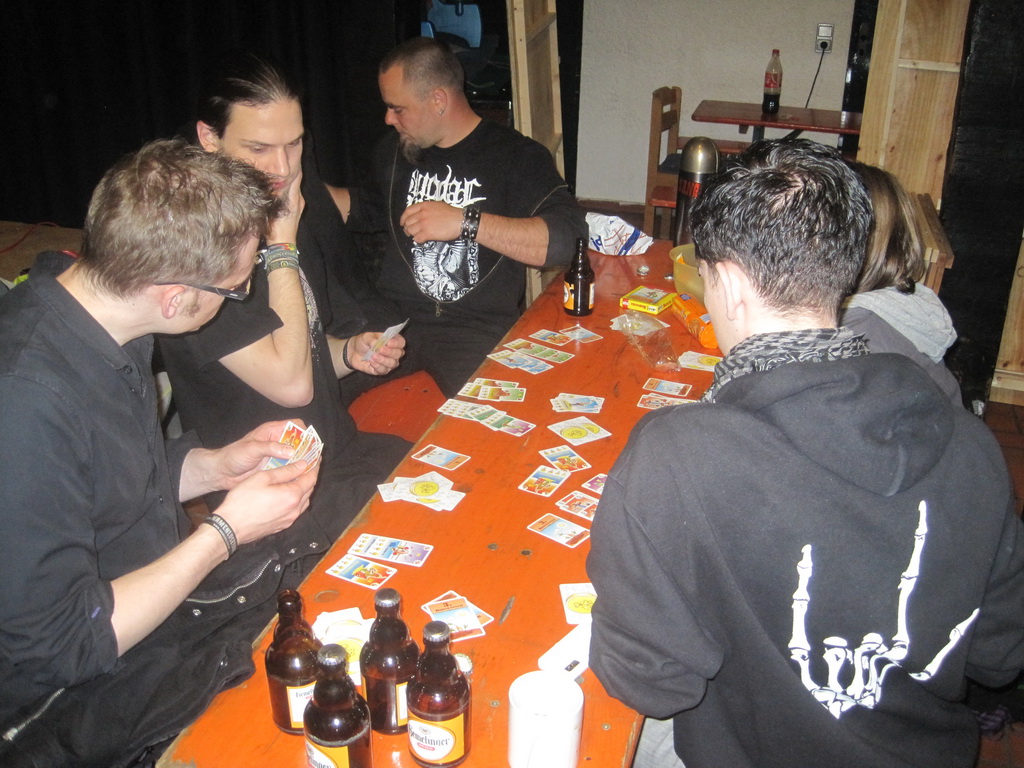 NT24: Bei frischem, wenn doch trockenem Wetter, öffneten sich die Pforten gegen 17:30 Uhr und der Run auf die Tassen im JD Style konnte beginnen. Mit Flatrate und Proviant gewappnet ging es auch schon an die Spieltische. Wer hingegen etwas Kultur genießen wollte, war in der Lesung mit Bernhard Hennen genau richtig. Als der Chilimeister zum Mitternachtsimbiss rief und auch der letzte eine Spielrunde oder bereits einen Platz im Schlafraum der neuen Kita gefunden hatte, ging der Freitag mit einem neuen Besucherrekord von 212 Gästen zu Ende. Am Samstag sollte es spannend werden, ob der Wegfall des Obergeschosses im Jugendhaus auf die Tischreserven auswirken sollte, doch dem war nicht so. Auch einem erneuten Wurststau konnte entgegengewirkt werden, trotz dessen es zu kurzen Wartezeiten beim Grillmeister kam. Mit der Wunschlesung von Bernhard Hennen und Tom Daut wurde auch der Samstag Nachmittag literarisch aufgewertet. Bei der Tombola am Abend konnte man gleich zu Beginn, oder doch am Ende, den verwirrten Gästen eine Besucherzahl von 310 präsentieren. Am Sonntag sollte, ausser beim Grillmeister nichts mehr anbrennen. Die Besucher die es bis dahin geschafft hatten gegen die Müdigkeit anzukämpfen nutzten nochmal ihre Flatrate und spielten bis zur letzten Minute. Mit 321 Gästen, ging die an der Besucherzahl gemessene zweit stärkste Märzveranstaltung zu Ende.
