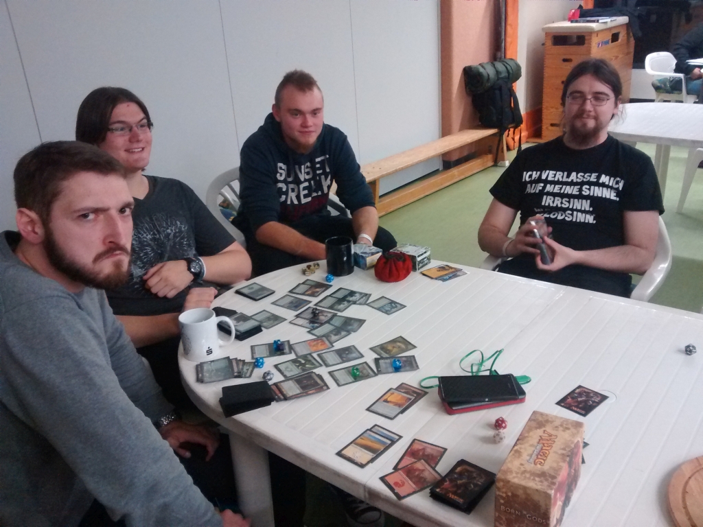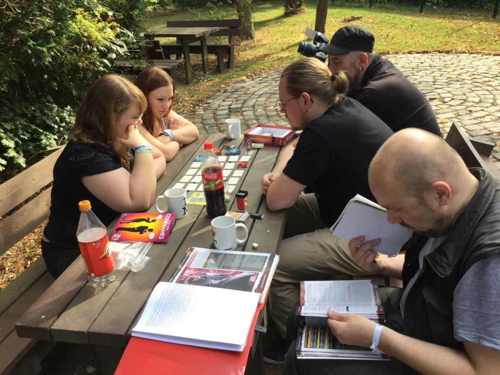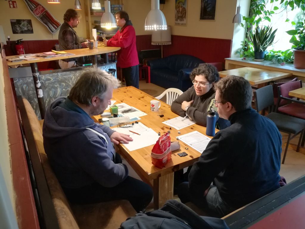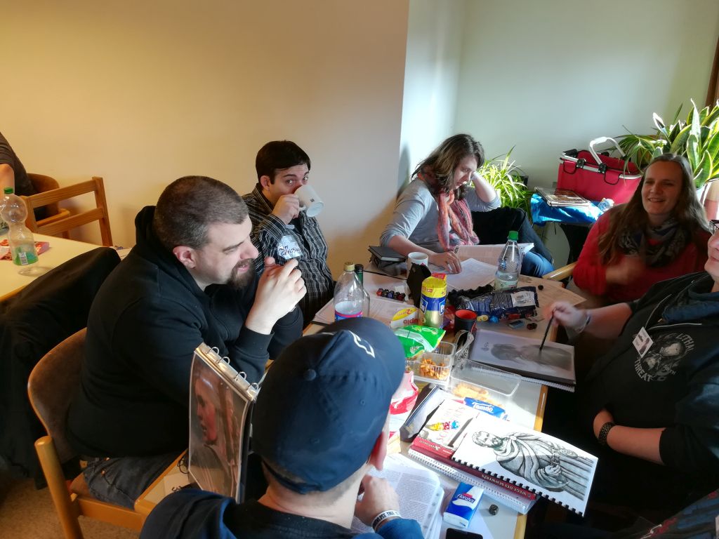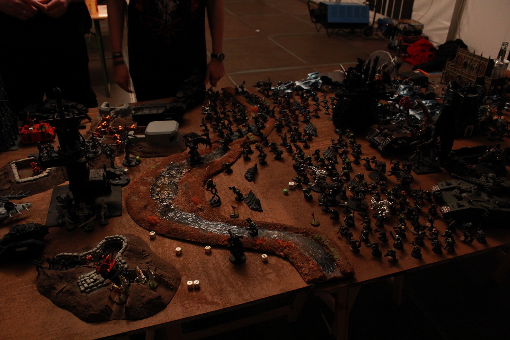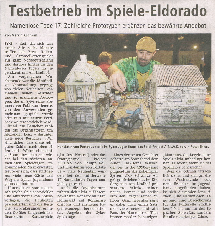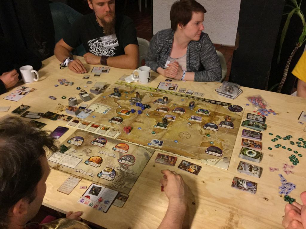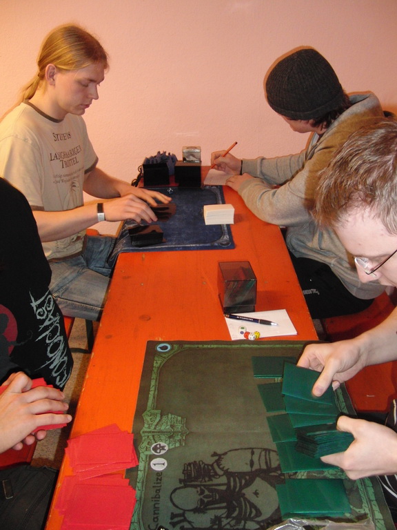 NT24: Bei frischem, wenn doch trockenem Wetter, öffneten sich die Pforten gegen 17:30 Uhr und der Run auf die Tassen im JD Style konnte beginnen. Mit Flatrate und Proviant gewappnet ging es auch schon an die Spieltische. Wer hingegen etwas Kultur genießen wollte, war in der Lesung mit Bernhard Hennen genau richtig. Als der Chilimeister zum Mitternachtsimbiss rief und auch der letzte eine Spielrunde oder bereits einen Platz im Schlafraum der neuen Kita gefunden hatte, ging der Freitag mit einem neuen Besucherrekord von 212 Gästen zu Ende. Am Samstag sollte es spannend werden, ob der Wegfall des Obergeschosses im Jugendhaus auf die Tischreserven auswirken sollte, doch dem war nicht so. Auch einem erneuten Wurststau konnte entgegengewirkt werden, trotz dessen es zu kurzen Wartezeiten beim Grillmeister kam. Mit der Wunschlesung von Bernhard Hennen und Tom Daut wurde auch der Samstag Nachmittag literarisch aufgewertet. Bei der Tombola am Abend konnte man gleich zu Beginn, oder doch am Ende, den verwirrten Gästen eine Besucherzahl von 310 präsentieren. Am Sonntag sollte, ausser beim Grillmeister nichts mehr anbrennen. Die Besucher die es bis dahin geschafft hatten gegen die Müdigkeit anzukämpfen nutzten nochmal ihre Flatrate und spielten bis zur letzten Minute. Mit 321 Gästen, ging die an der Besucherzahl gemessene zweit stärkste Märzveranstaltung zu Ende.