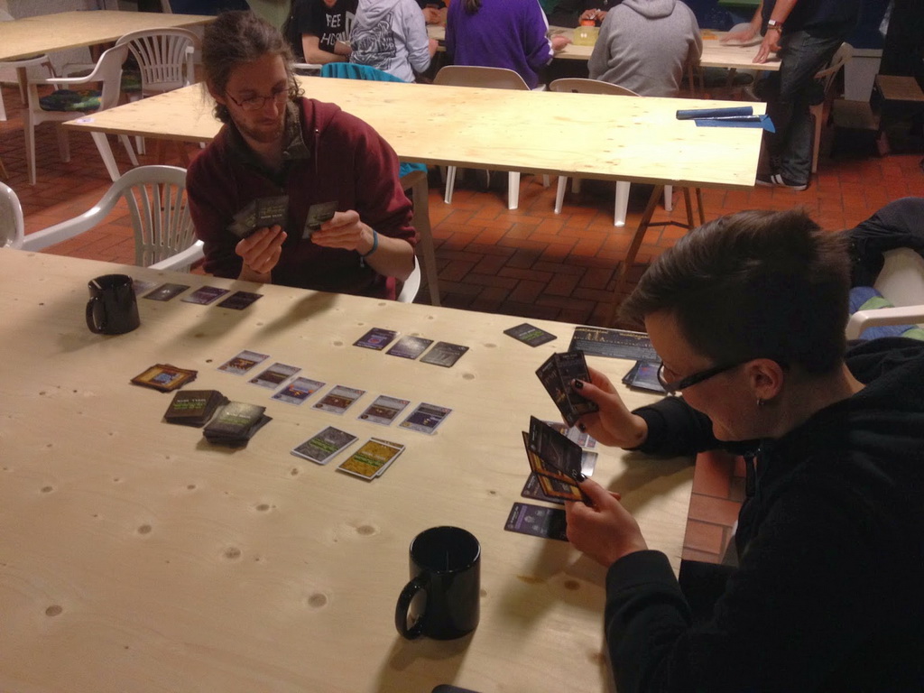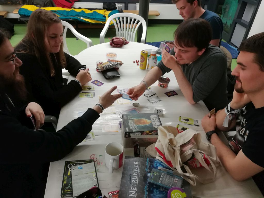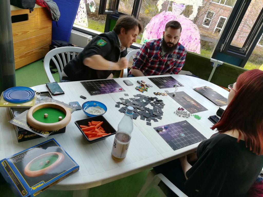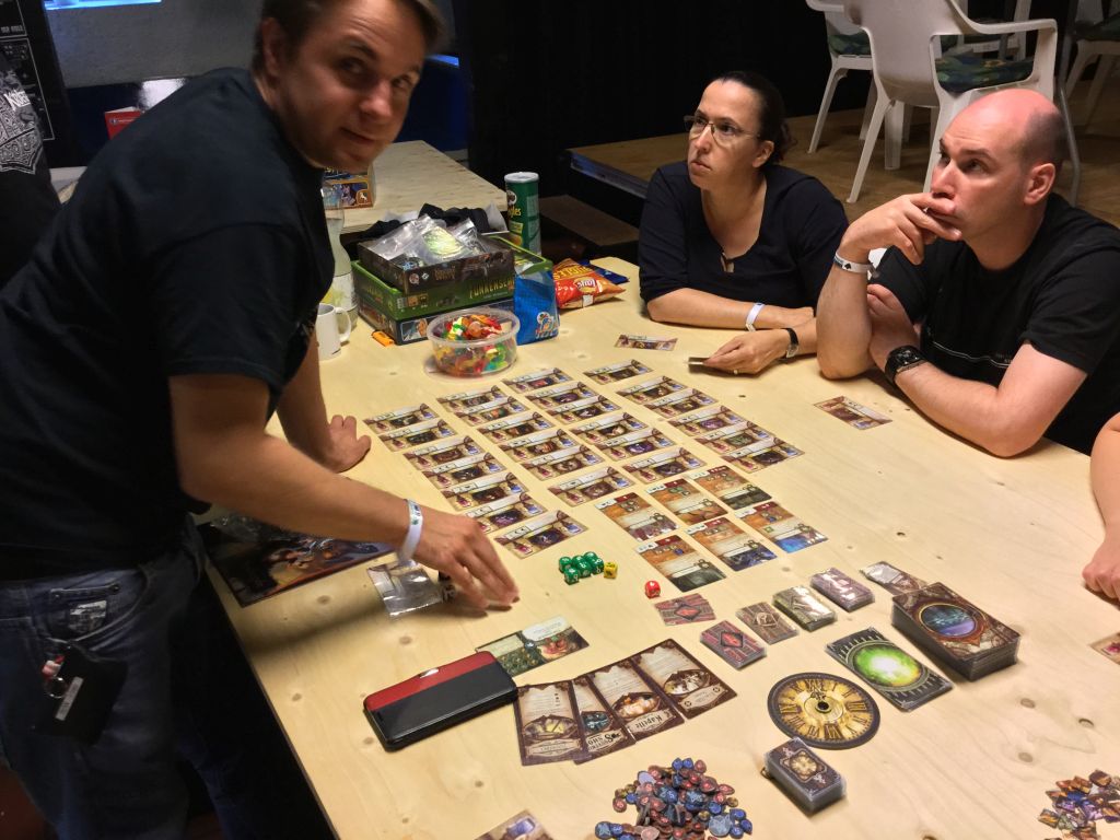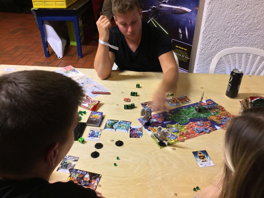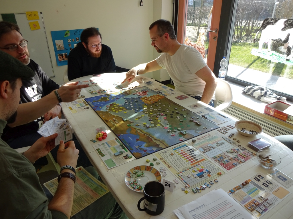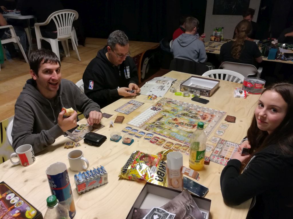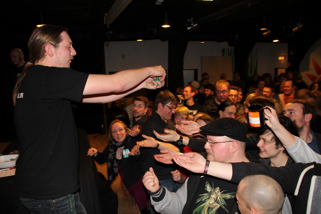 NT24: Bei frischem, wenn doch trockenem Wetter, öffneten sich die Pforten gegen 17:30 Uhr und der Run auf die Tassen im JD Style konnte beginnen. Mit Flatrate und Proviant gewappnet ging es auch schon an die Spieltische. Wer hingegen etwas Kultur genießen wollte, war in der Lesung mit Bernhard Hennen genau richtig. Als der Chilimeister zum Mitternachtsimbiss rief und auch der letzte eine Spielrunde oder bereits einen Platz im Schlafraum der neuen Kita gefunden hatte, ging der Freitag mit einem neuen Besucherrekord von 212 Gästen zu Ende. Am Samstag sollte es spannend werden, ob der Wegfall des Obergeschosses im Jugendhaus auf die Tischreserven auswirken sollte, doch dem war nicht so. Auch einem erneuten Wurststau konnte entgegengewirkt werden, trotz dessen es zu kurzen Wartezeiten beim Grillmeister kam. Mit der Wunschlesung von Bernhard Hennen und Tom Daut wurde auch der Samstag Nachmittag literarisch aufgewertet. Bei der Tombola am Abend konnte man gleich zu Beginn, oder doch am Ende, den verwirrten Gästen eine Besucherzahl von 310 präsentieren. Am Sonntag sollte, ausser beim Grillmeister nichts mehr anbrennen. Die Besucher die es bis dahin geschafft hatten gegen die Müdigkeit anzukämpfen nutzten nochmal ihre Flatrate und spielten bis zur letzten Minute. Mit 321 Gästen, ging die an der Besucherzahl gemessene zweit stärkste Märzveranstaltung zu Ende.
