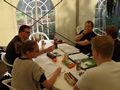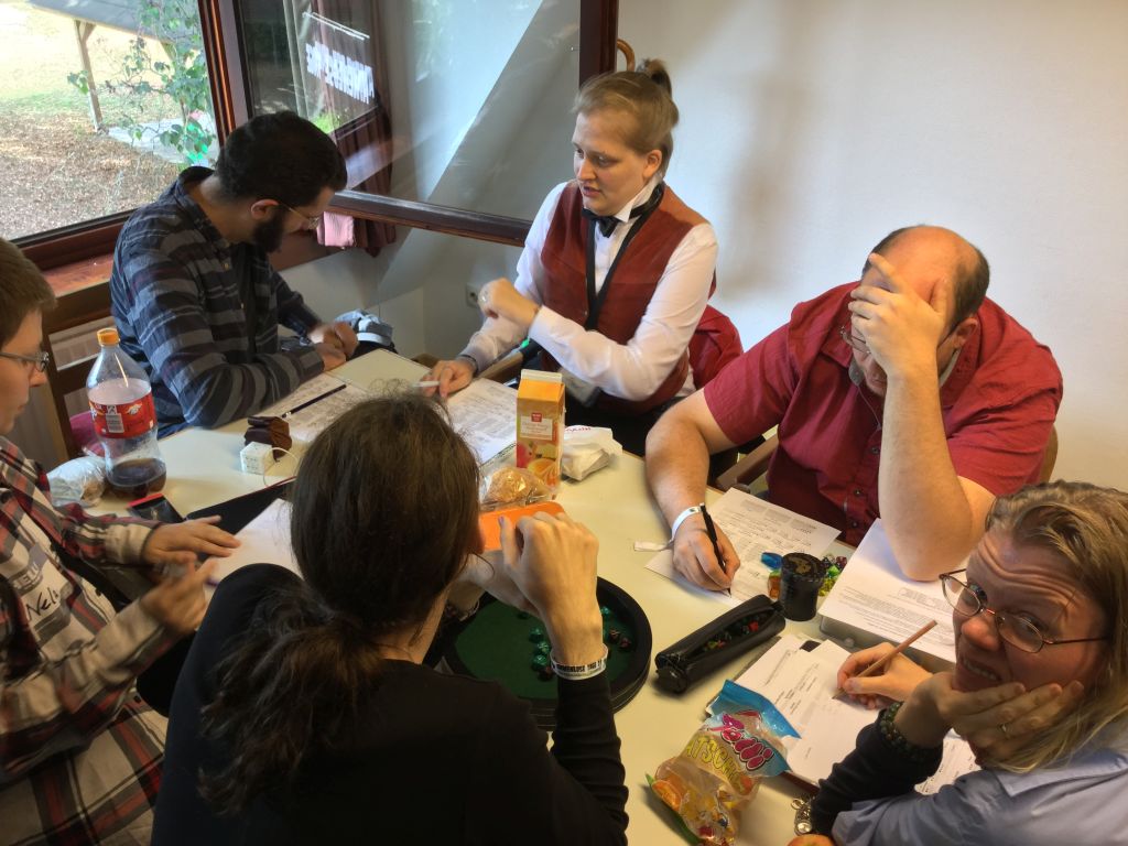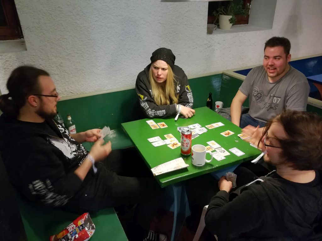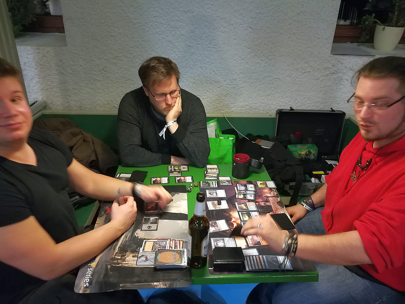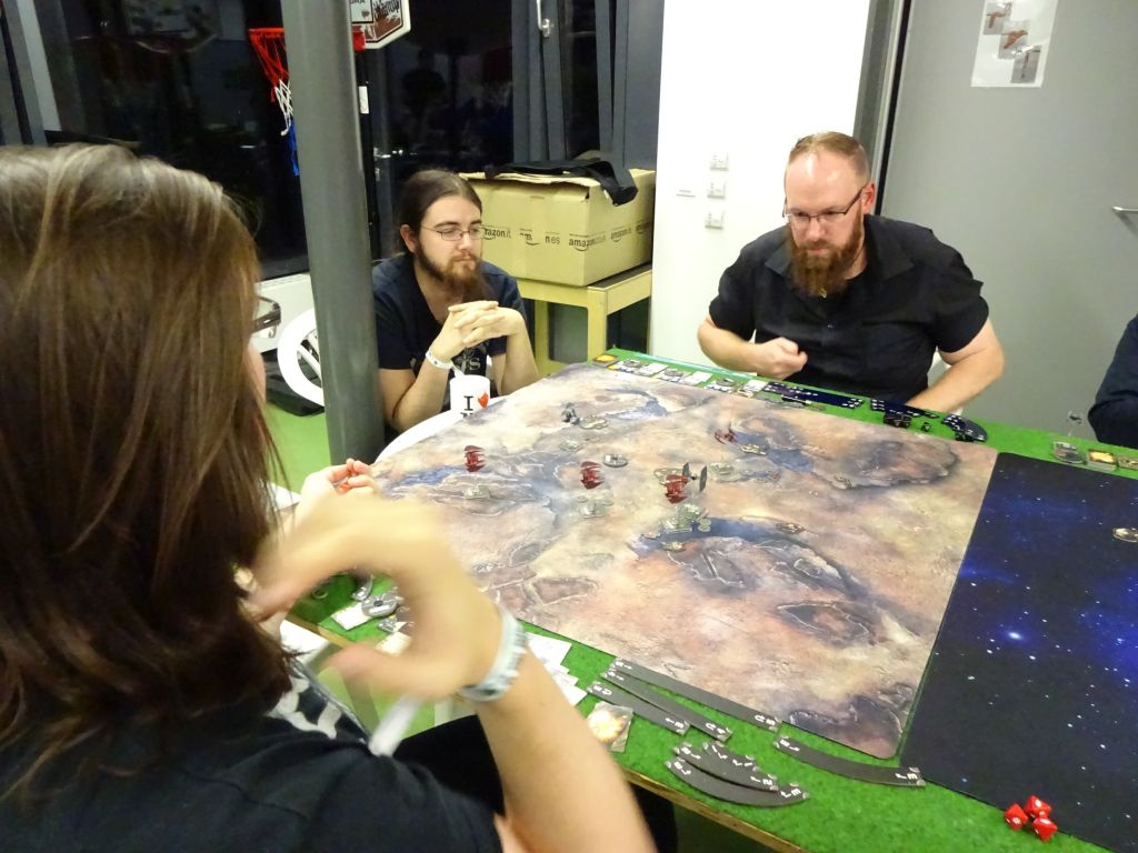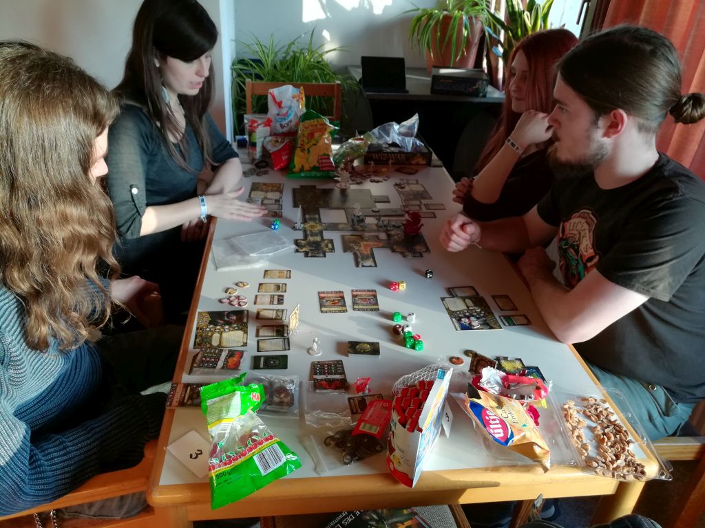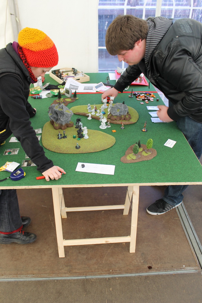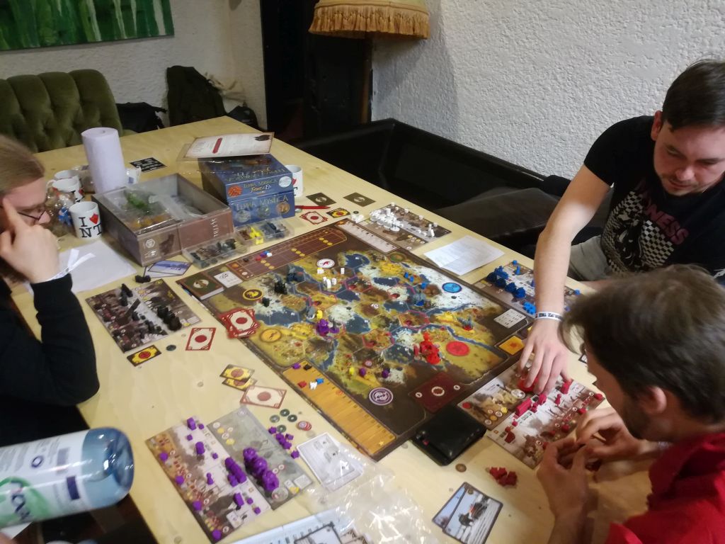 NT24: Bei frischem, wenn doch trockenem Wetter, öffneten sich die Pforten gegen 17:30 Uhr und der Run auf die Tassen im JD Style konnte beginnen. Mit Flatrate und Proviant gewappnet ging es auch schon an die Spieltische. Wer hingegen etwas Kultur genießen wollte, war in der Lesung mit Bernhard Hennen genau richtig. Als der Chilimeister zum Mitternachtsimbiss rief und auch der letzte eine Spielrunde oder bereits einen Platz im Schlafraum der neuen Kita gefunden hatte, ging der Freitag mit einem neuen Besucherrekord von 212 Gästen zu Ende. Am Samstag sollte es spannend werden, ob der Wegfall des Obergeschosses im Jugendhaus auf die Tischreserven auswirken sollte, doch dem war nicht so. Auch einem erneuten Wurststau konnte entgegengewirkt werden, trotz dessen es zu kurzen Wartezeiten beim Grillmeister kam. Mit der Wunschlesung von Bernhard Hennen und Tom Daut wurde auch der Samstag Nachmittag literarisch aufgewertet. Bei der Tombola am Abend konnte man gleich zu Beginn, oder doch am Ende, den verwirrten Gästen eine Besucherzahl von 310 präsentieren. Am Sonntag sollte, ausser beim Grillmeister nichts mehr anbrennen. Die Besucher die es bis dahin geschafft hatten gegen die Müdigkeit anzukämpfen nutzten nochmal ihre Flatrate und spielten bis zur letzten Minute. Mit 321 Gästen, ging die an der Besucherzahl gemessene zweit stärkste Märzveranstaltung zu Ende.