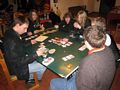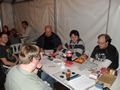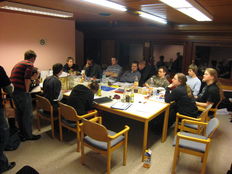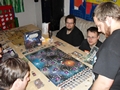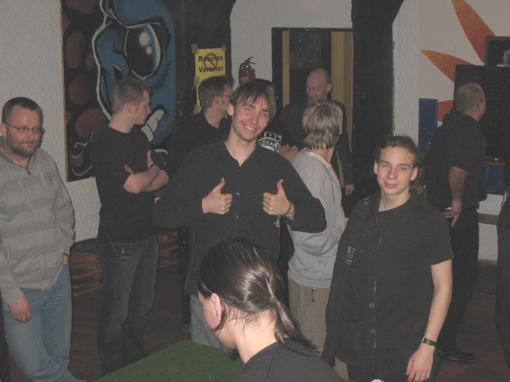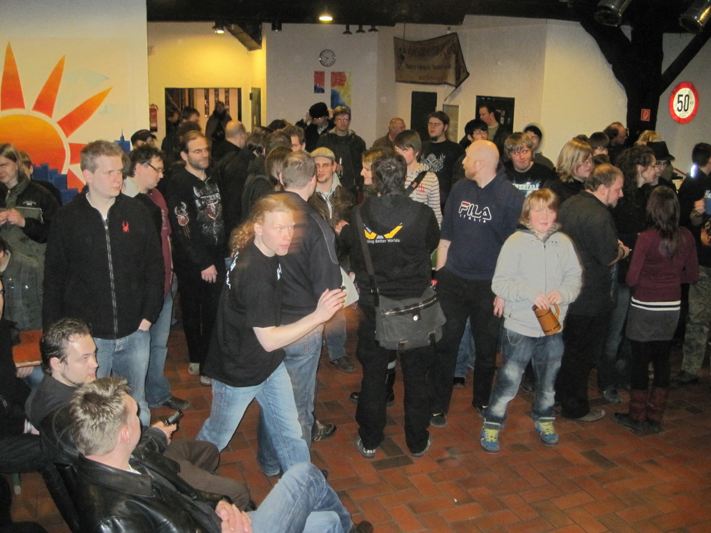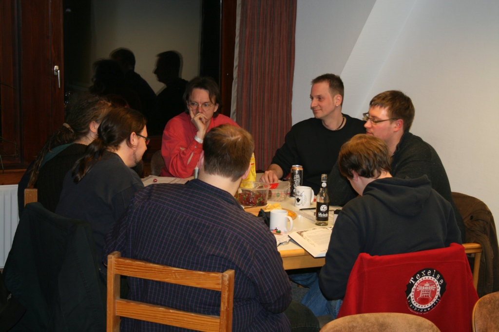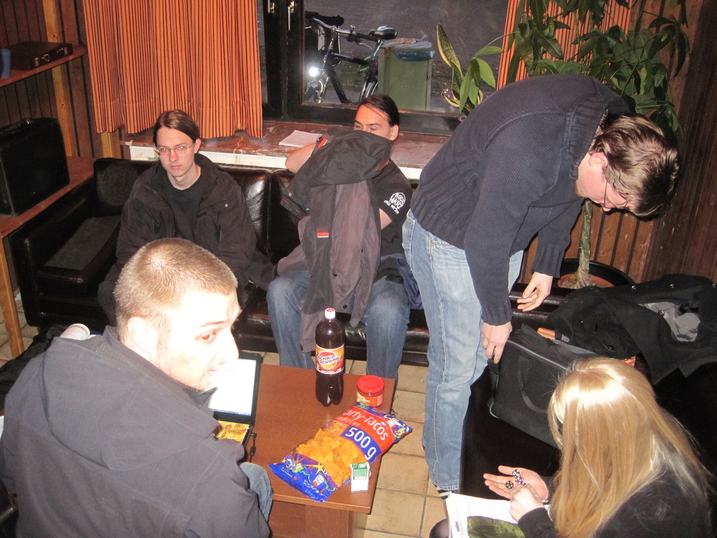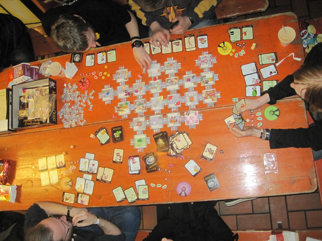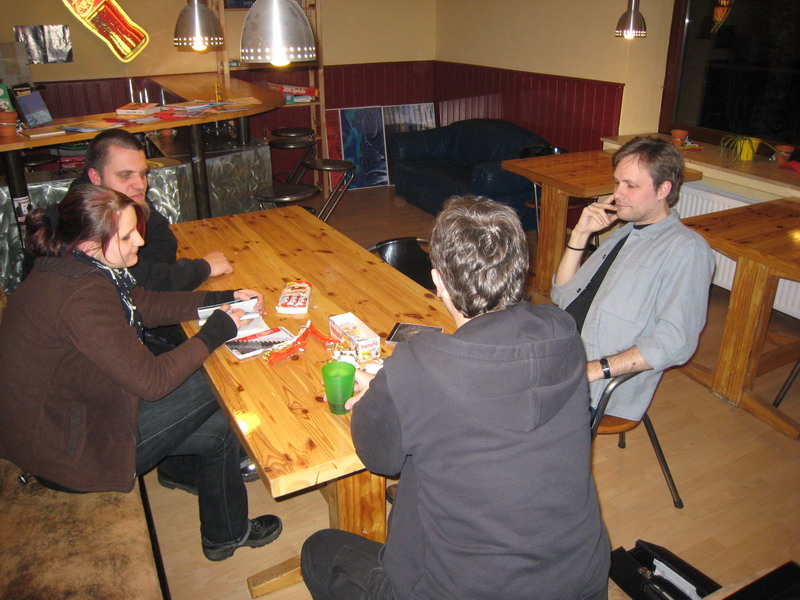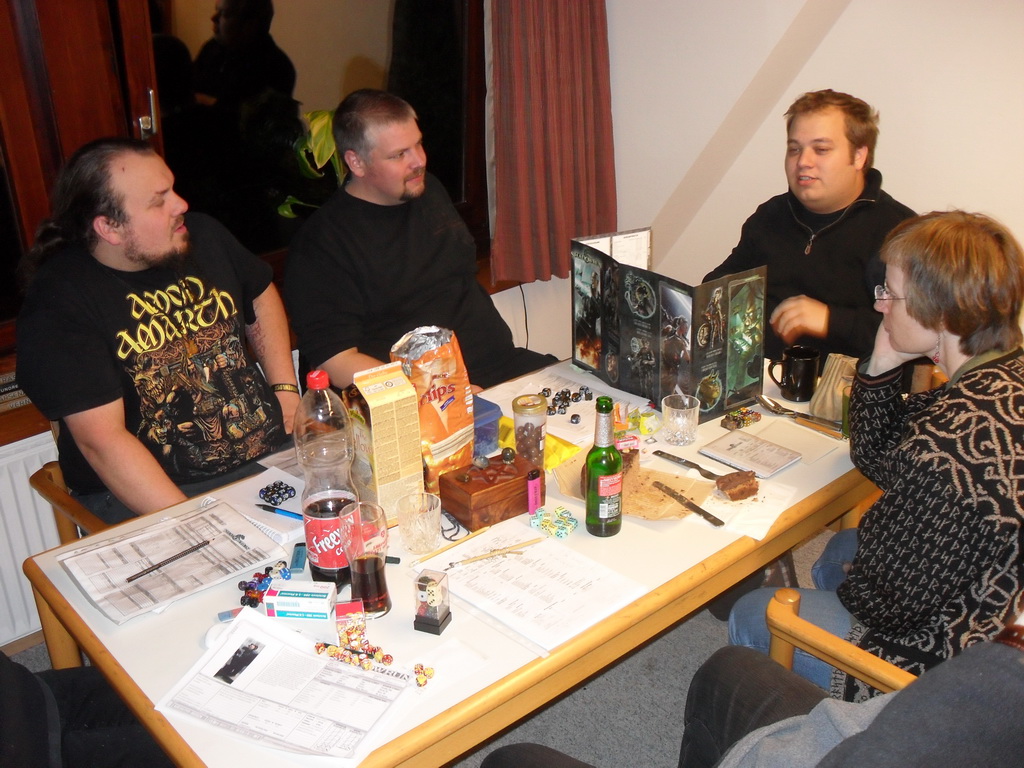 NT12: Ein eiskalter Wind schien die Besucher am Freitag der Veranstaltung in unser warmes Haus zu treiben. Man sammelte sich kurze Hand in kleinen Gruppen und begann das Haus zu einem Gesellschaftsspiel Tempel umzubauen. Eine noch nie gesehene Vielfalt an Brett- und Kartenspielen überraschte genauso, wie die neue Rekordmarke von 121 Besucher für den ersten Abend. Der Samstag wurde sowohl von weiteren eintreffenden Gästen, als auch dem Warhammer Fantasy Turnier eingeleitet. Der Himmel klarte nur für wenige Sonnenstrahlen auf, bevor der eisige Wind die Wolken wieder zu einer grauen Masse verband. Die Rollenspieler kuschelten sich zusammen und liefen, wie der Heizpilz im Zelt, zur Höchstform auf. Bis zum Abend waren das Haus und die Spielrunden ausgefüllt und den Besuchern wurde vor der Tombola durch eine kleine Feuershow noch einmal kräftig eingeheizt. Im Anschluss konnte verkündet werden, das bereits 185 Gäste den Weg zur NT gefunden haben und dann wurden sich Spielorte für die Nacht gesucht. Das traditionelle Pokerturnier zur späten Stunde konnte erneut eine Rekordteilnehmerzahl verkünden und der Gewinner der Letzten Veranstaltung musste sich geschlagen geben, da ein neuer Champion gekürt wurde. Der Sonntag startete mit dem Eintreffen der Warmaschine Hordes Leuten, welche noch einmal für eine kleine Steigerung der Besucher beitragen konnten. Durch das Nichtzustandekommen der beiden traditionellen Eckpunkte am Sonntag, Magic Turnier und Bogenschießen, blieb auch ein weiterer Schwung neuer Leute verwehrt. Dennoch blühten die Gesellschafts- und Rollenspielbereiche auf und verlebten einen ruhigen Ausklang der Veranstaltung. Zum Schluss der Veranstaltung konnten 208 Besucher gezählt werden und man sah zufrieden den 6 Monate später stattfinden 13. Namenlosen Tagen entgegen... dem Ende.