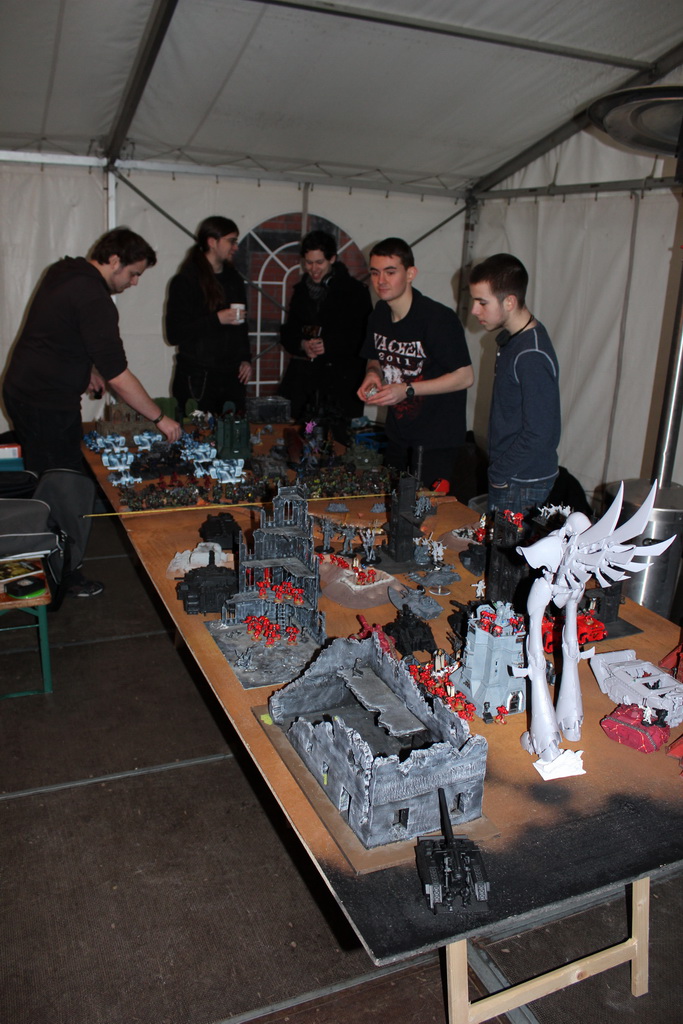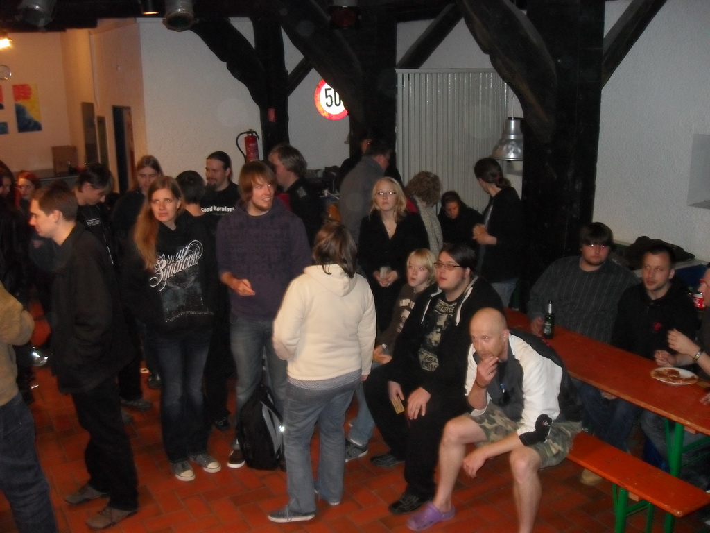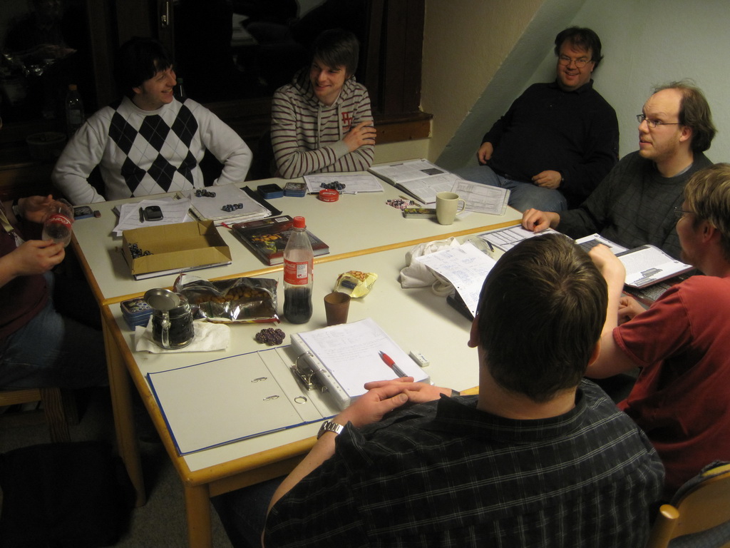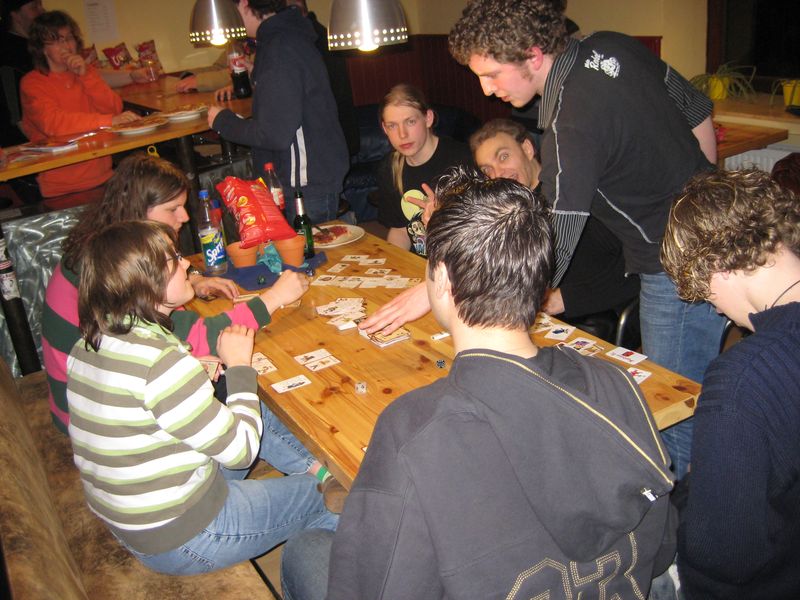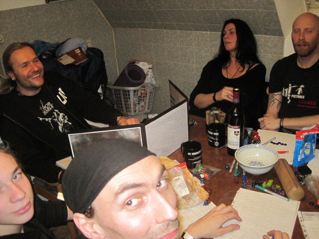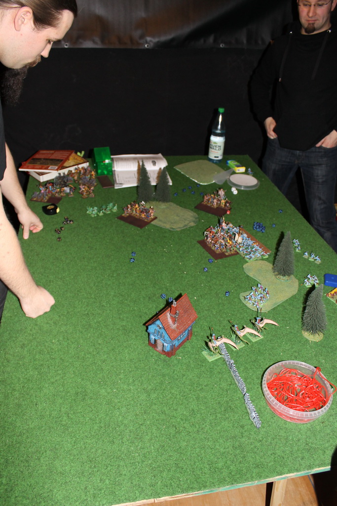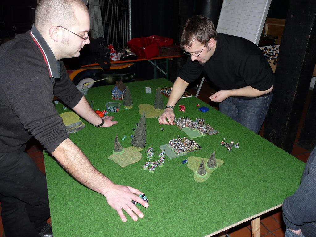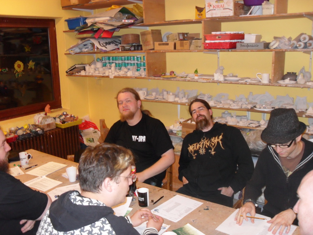 NT12: Ein eiskalter Wind schien die Besucher am Freitag der Veranstaltung in unser warmes Haus zu treiben. Man sammelte sich kurze Hand in kleinen Gruppen und begann das Haus zu einem Gesellschaftsspiel Tempel umzubauen. Eine noch nie gesehene Vielfalt an Brett- und Kartenspielen überraschte genauso, wie die neue Rekordmarke von 121 Besucher für den ersten Abend. Der Samstag wurde sowohl von weiteren eintreffenden Gästen, als auch dem Warhammer Fantasy Turnier eingeleitet. Der Himmel klarte nur für wenige Sonnenstrahlen auf, bevor der eisige Wind die Wolken wieder zu einer grauen Masse verband. Die Rollenspieler kuschelten sich zusammen und liefen, wie der Heizpilz im Zelt, zur Höchstform auf. Bis zum Abend waren das Haus und die Spielrunden ausgefüllt und den Besuchern wurde vor der Tombola durch eine kleine Feuershow noch einmal kräftig eingeheizt. Im Anschluss konnte verkündet werden, das bereits 185 Gäste den Weg zur NT gefunden haben und dann wurden sich Spielorte für die Nacht gesucht. Das traditionelle Pokerturnier zur späten Stunde konnte erneut eine Rekordteilnehmerzahl verkünden und der Gewinner der Letzten Veranstaltung musste sich geschlagen geben, da ein neuer Champion gekürt wurde. Der Sonntag startete mit dem Eintreffen der Warmaschine Hordes Leuten, welche noch einmal für eine kleine Steigerung der Besucher beitragen konnten. Durch das Nichtzustandekommen der beiden traditionellen Eckpunkte am Sonntag, Magic Turnier und Bogenschießen, blieb auch ein weiterer Schwung neuer Leute verwehrt. Dennoch blühten die Gesellschafts- und Rollenspielbereiche auf und verlebten einen ruhigen Ausklang der Veranstaltung. Zum Schluss der Veranstaltung konnten 208 Besucher gezählt werden und man sah zufrieden den 6 Monate später stattfinden 13. Namenlosen Tagen entgegen... dem Ende.