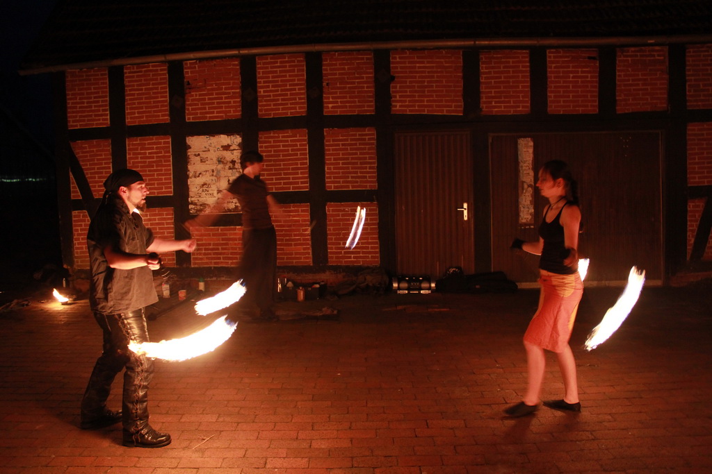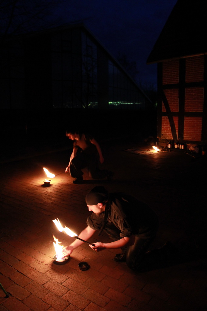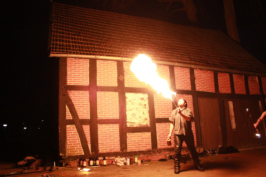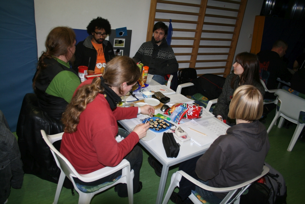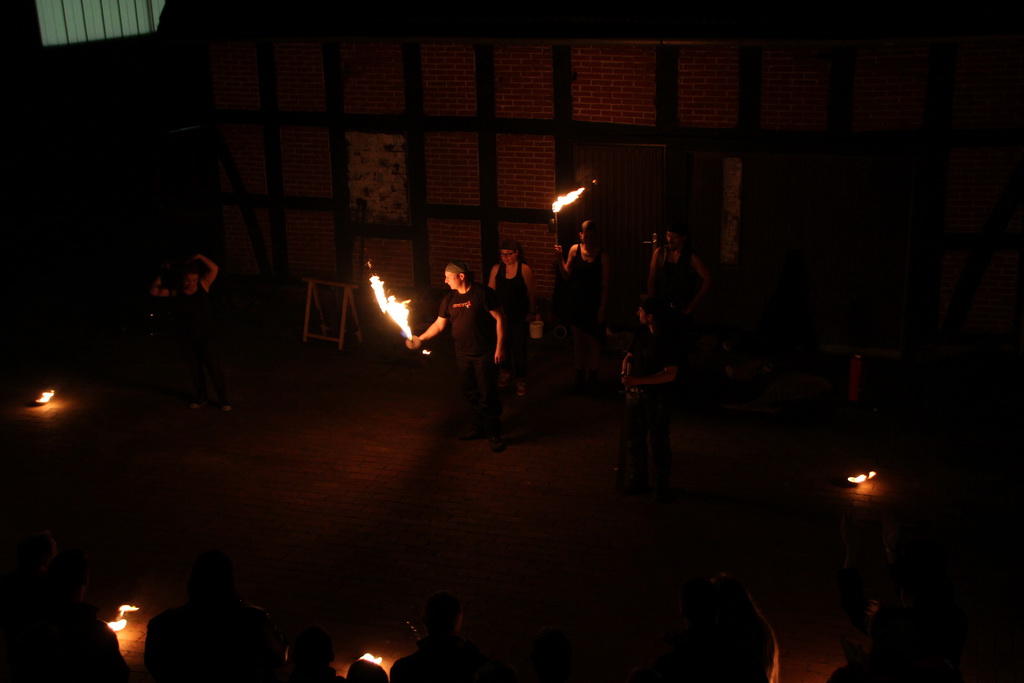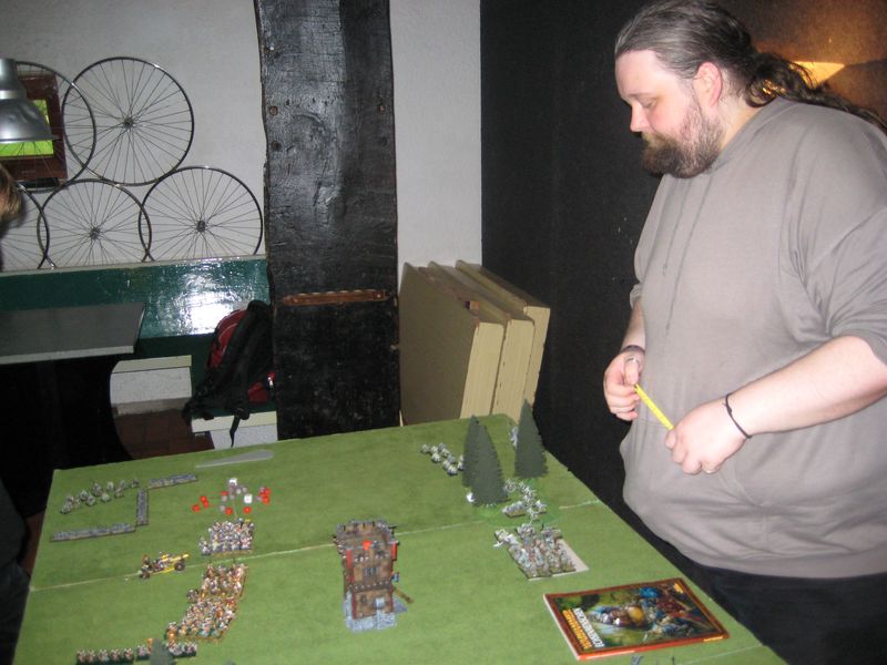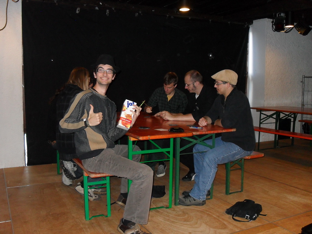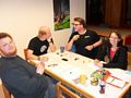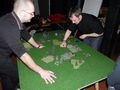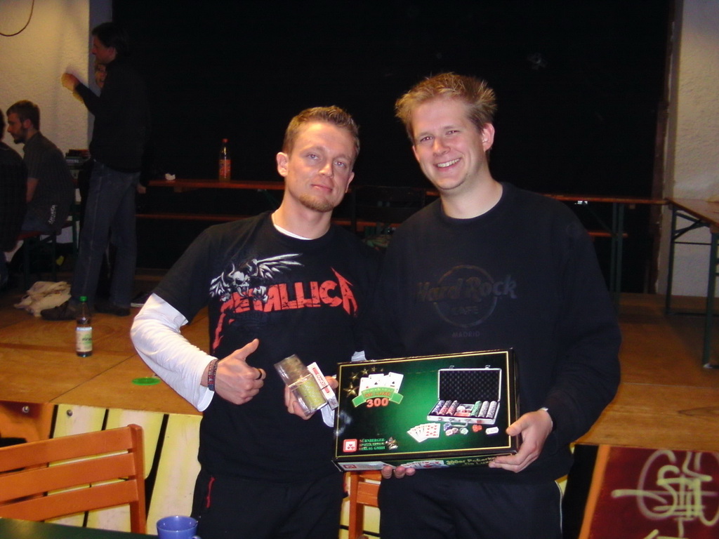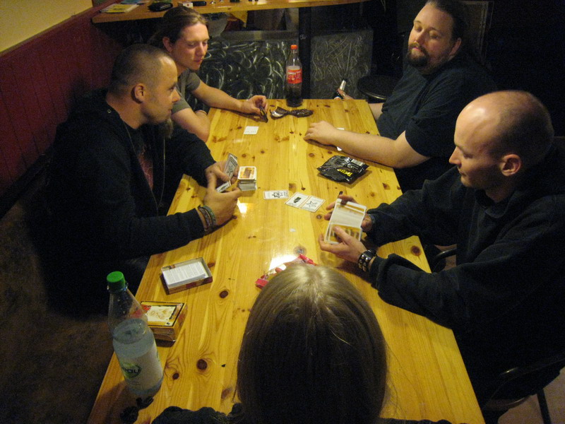 NT12: Ein eiskalter Wind schien die Besucher am Freitag der Veranstaltung in unser warmes Haus zu treiben. Man sammelte sich kurze Hand in kleinen Gruppen und begann das Haus zu einem Gesellschaftsspiel Tempel umzubauen. Eine noch nie gesehene Vielfalt an Brett- und Kartenspielen überraschte genauso, wie die neue Rekordmarke von 121 Besucher für den ersten Abend. Der Samstag wurde sowohl von weiteren eintreffenden Gästen, als auch dem Warhammer Fantasy Turnier eingeleitet. Der Himmel klarte nur für wenige Sonnenstrahlen auf, bevor der eisige Wind die Wolken wieder zu einer grauen Masse verband. Die Rollenspieler kuschelten sich zusammen und liefen, wie der Heizpilz im Zelt, zur Höchstform auf. Bis zum Abend waren das Haus und die Spielrunden ausgefüllt und den Besuchern wurde vor der Tombola durch eine kleine Feuershow noch einmal kräftig eingeheizt. Im Anschluss konnte verkündet werden, das bereits 185 Gäste den Weg zur NT gefunden haben und dann wurden sich Spielorte für die Nacht gesucht. Das traditionelle Pokerturnier zur späten Stunde konnte erneut eine Rekordteilnehmerzahl verkünden und der Gewinner der Letzten Veranstaltung musste sich geschlagen geben, da ein neuer Champion gekürt wurde. Der Sonntag startete mit dem Eintreffen der Warmaschine Hordes Leuten, welche noch einmal für eine kleine Steigerung der Besucher beitragen konnten. Durch das Nichtzustandekommen der beiden traditionellen Eckpunkte am Sonntag, Magic Turnier und Bogenschießen, blieb auch ein weiterer Schwung neuer Leute verwehrt. Dennoch blühten die Gesellschafts- und Rollenspielbereiche auf und verlebten einen ruhigen Ausklang der Veranstaltung. Zum Schluss der Veranstaltung konnten 208 Besucher gezählt werden und man sah zufrieden den 6 Monate später stattfinden 13. Namenlosen Tagen entgegen... dem Ende.
