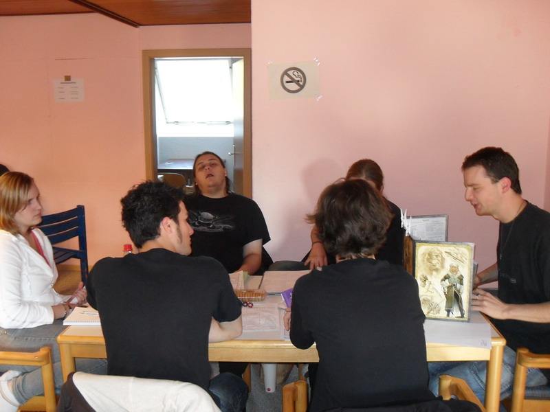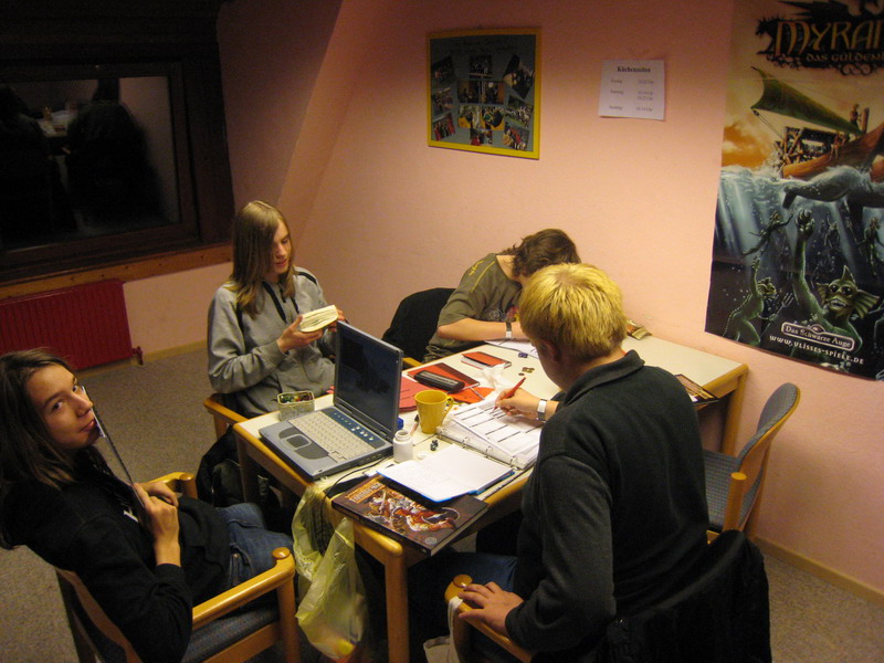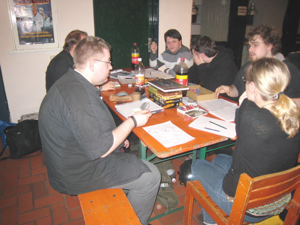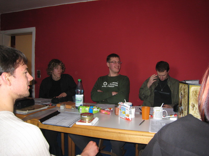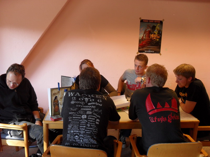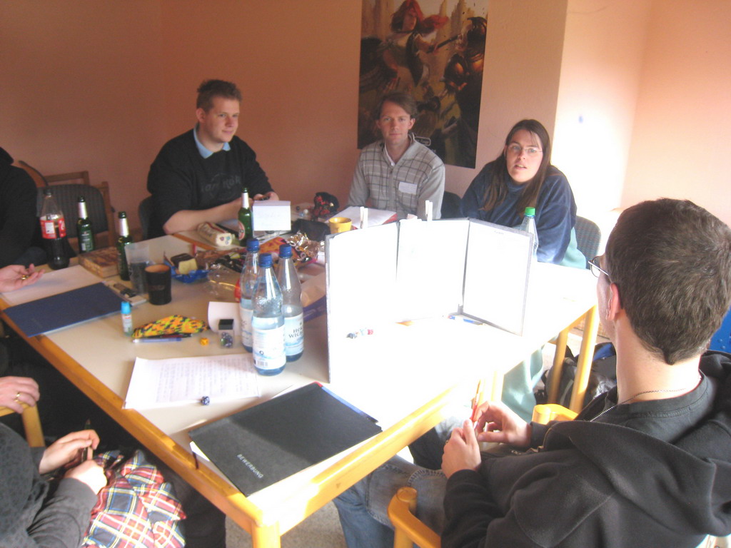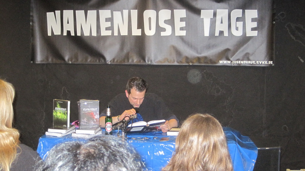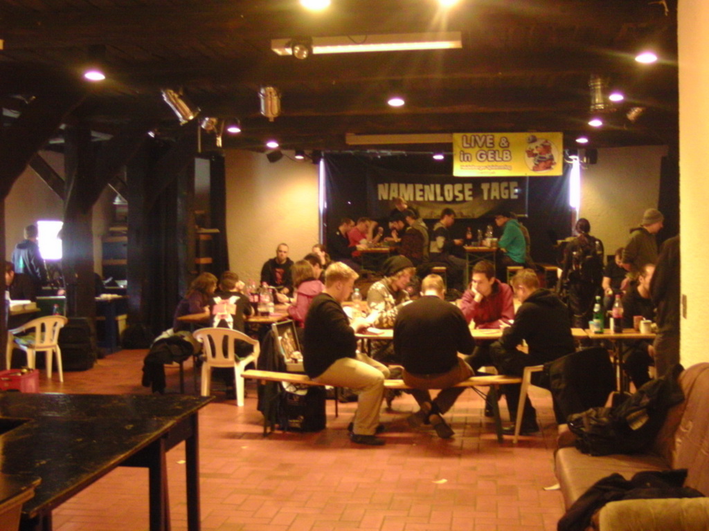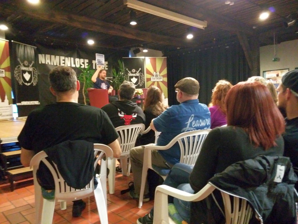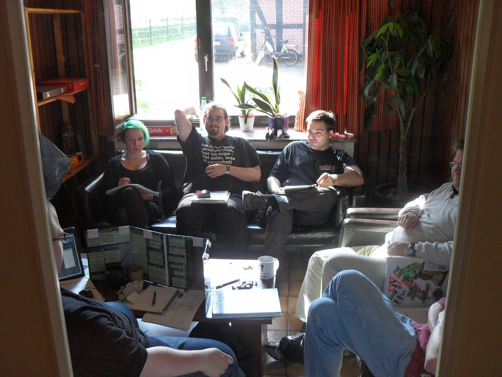 Im Vorfeld: Also irgendwie war von Anfang an der Wurm drin. Die Vorbereitungen zu den 24. Namenlosen Tagen waren ein auf und nieder und vor allem von Rückschlägen gezeichnet. Zunächst hatte man den Plan, die Menge der Spieltische um 10% zu erhöhen, da man den Schlafsaal in die neue, benachbarte Kita auslagern konnte und im Jugendhaus kleine bauliche Veränderungen vorgenommen wurden. Doch als es dann hieß, man könne die obere Etage nicht mehr nutzen, fing der Schlamassel an. Ursprünglich sollte Robert Corvus gemeinsam mit Bernhard Hennen am Freitag eine Lesung veranstalten, ersterer musste dann aber einem anderen Termin den Vorzug geben. Weitere kleine Probleme mussten aus dem Weg geräumt werden, aber als dann unsere lieb gewonnene Putzfrau in den verdienten Ruhestand ging, sah sich die Orga schon am Sonntag bis 0 Uhr im Kindergarten die Böden wischen. Letztendlich konnte in der letzten Woche vor den Namenlosen Tagen alles in die richtigen Bahnen gelenkt werden und man harrte gespannt der Dinge, die da kommen sollten.