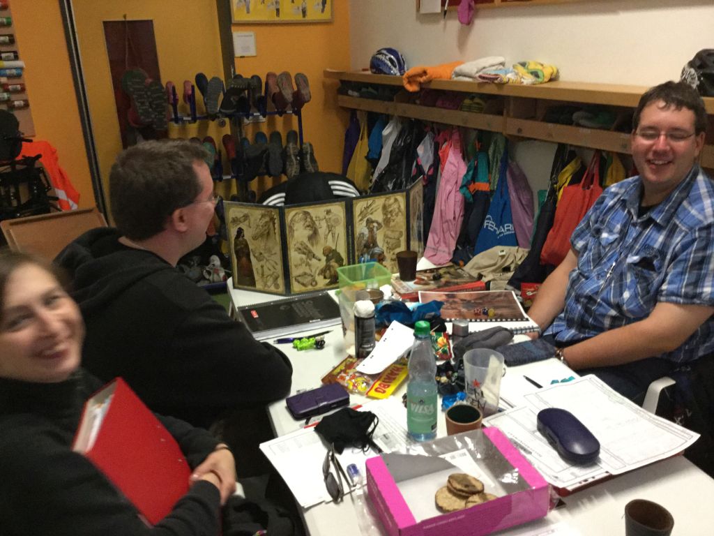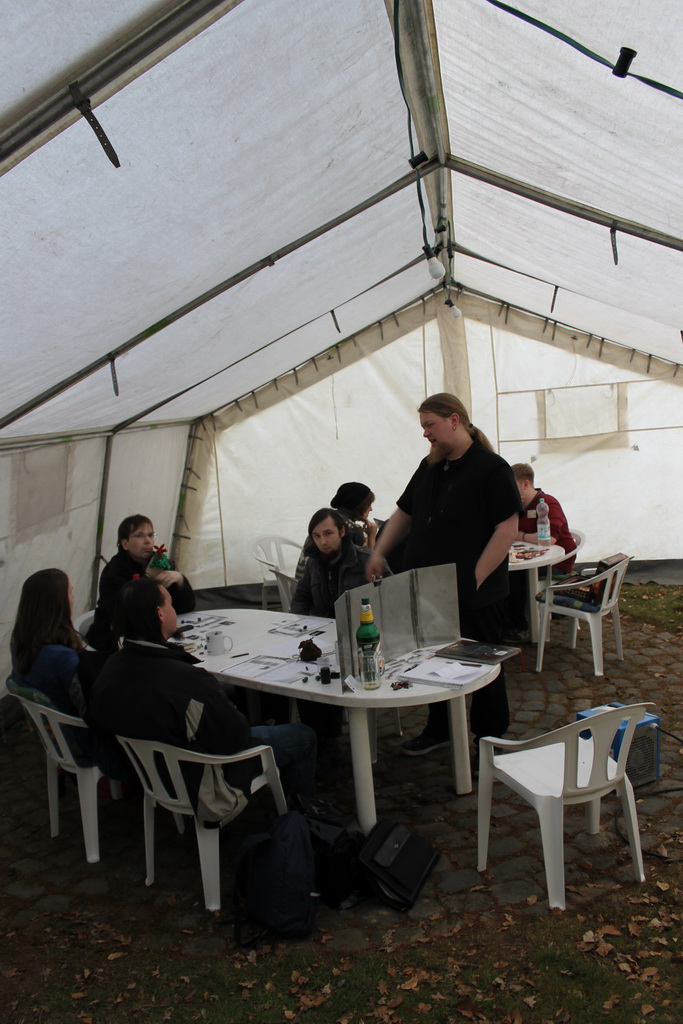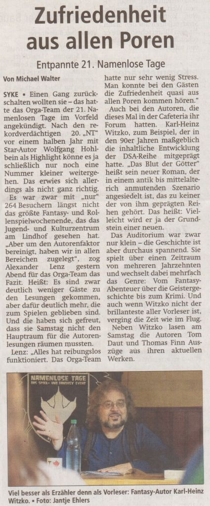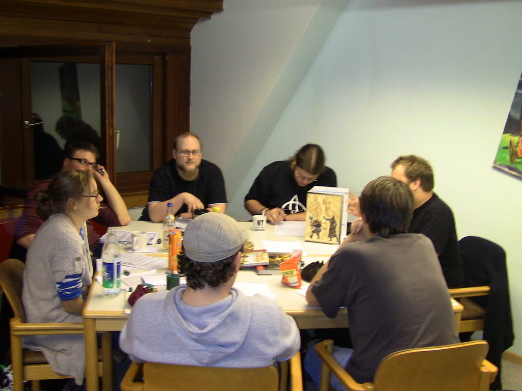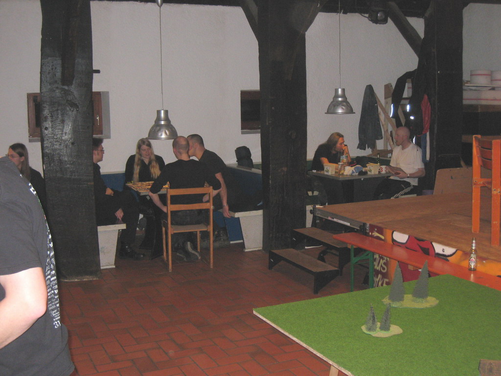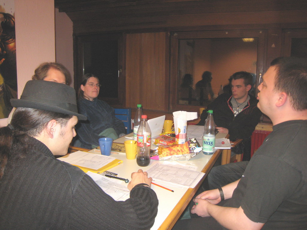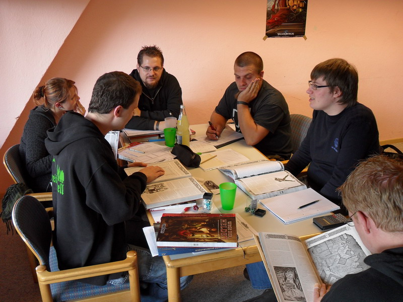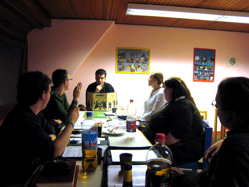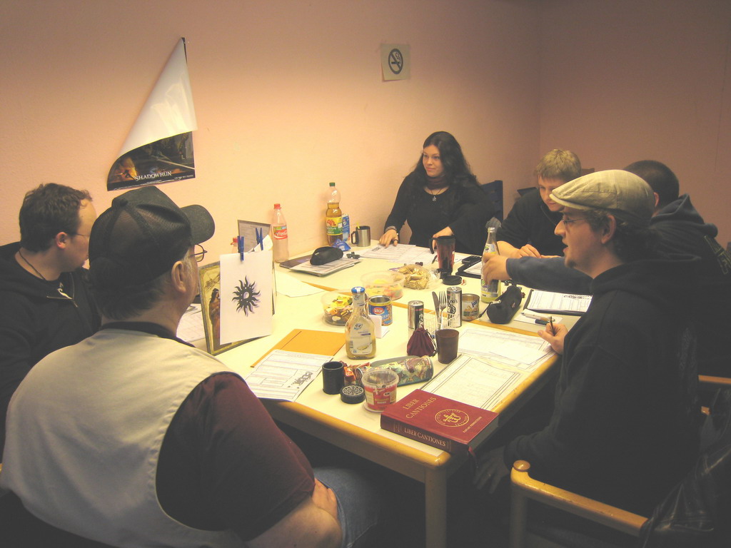 Im Vorfeld: Also irgendwie war von Anfang an der Wurm drin. Die Vorbereitungen zu den 24. Namenlosen Tagen waren ein auf und nieder und vor allem von Rückschlägen gezeichnet. Zunächst hatte man den Plan, die Menge der Spieltische um 10% zu erhöhen, da man den Schlafsaal in die neue, benachbarte Kita auslagern konnte und im Jugendhaus kleine bauliche Veränderungen vorgenommen wurden. Doch als es dann hieß, man könne die obere Etage nicht mehr nutzen, fing der Schlamassel an. Ursprünglich sollte Robert Corvus gemeinsam mit Bernhard Hennen am Freitag eine Lesung veranstalten, ersterer musste dann aber einem anderen Termin den Vorzug geben. Weitere kleine Probleme mussten aus dem Weg geräumt werden, aber als dann unsere lieb gewonnene Putzfrau in den verdienten Ruhestand ging, sah sich die Orga schon am Sonntag bis 0 Uhr im Kindergarten die Böden wischen. Letztendlich konnte in der letzten Woche vor den Namenlosen Tagen alles in die richtigen Bahnen gelenkt werden und man harrte gespannt der Dinge, die da kommen sollten.