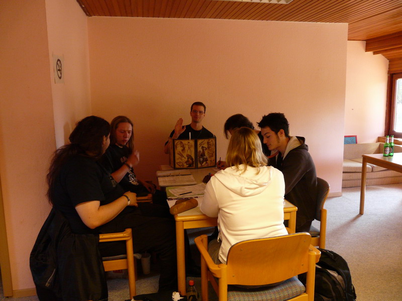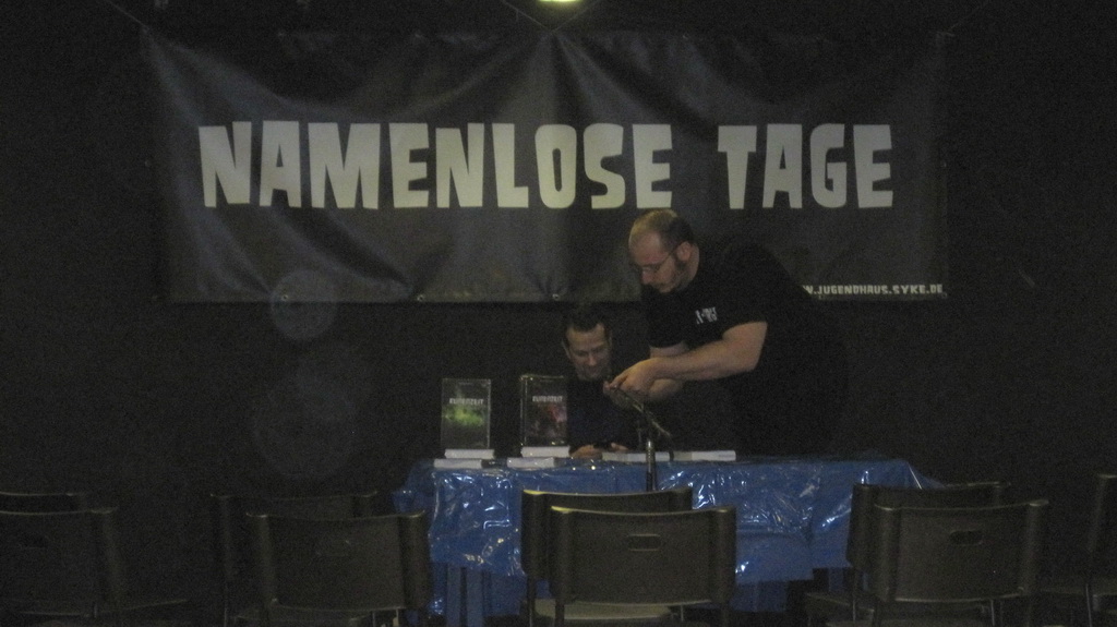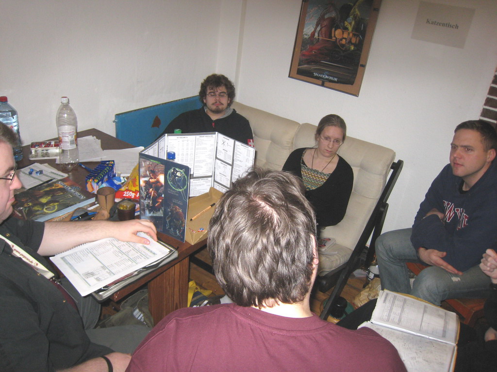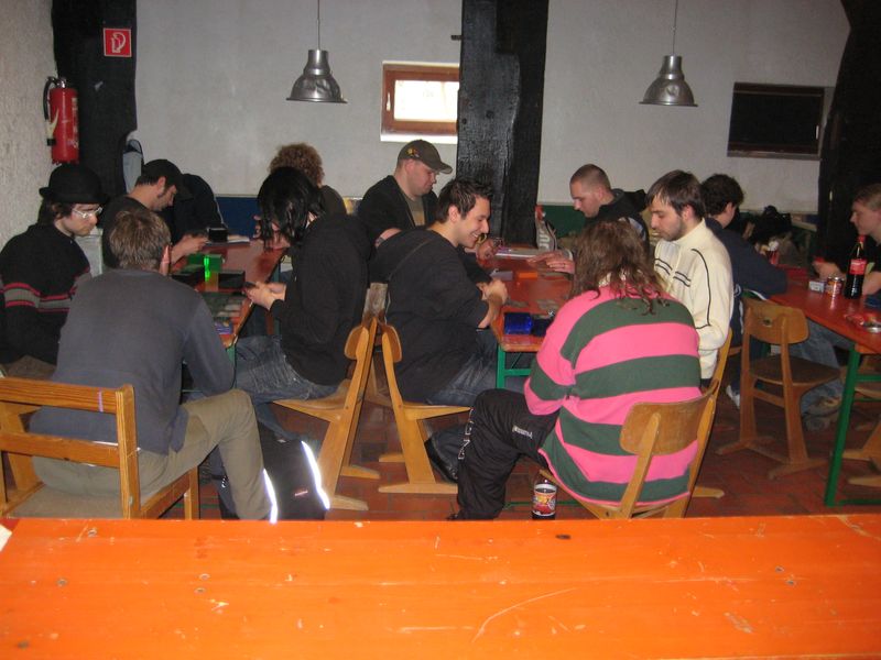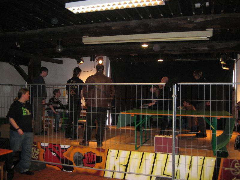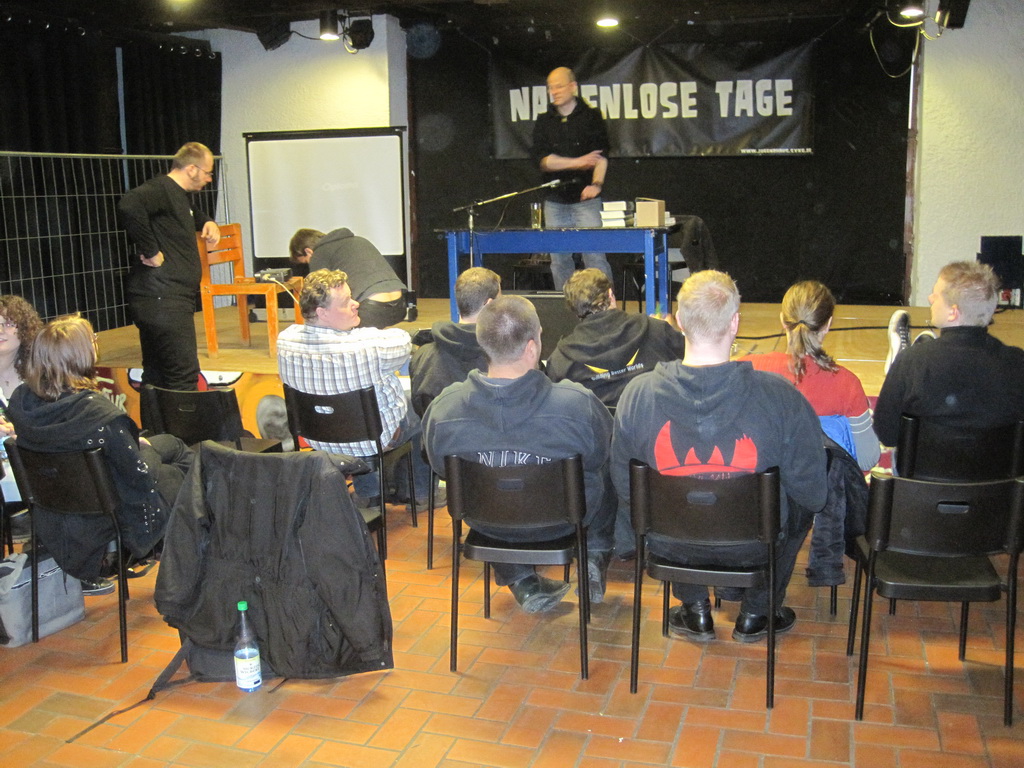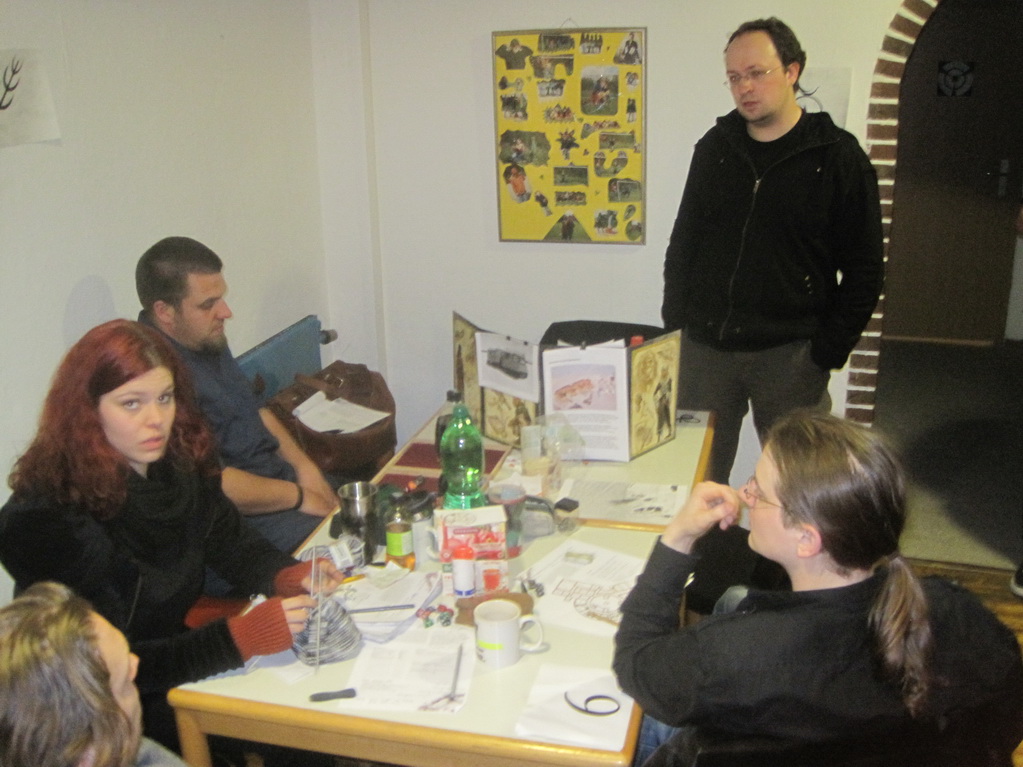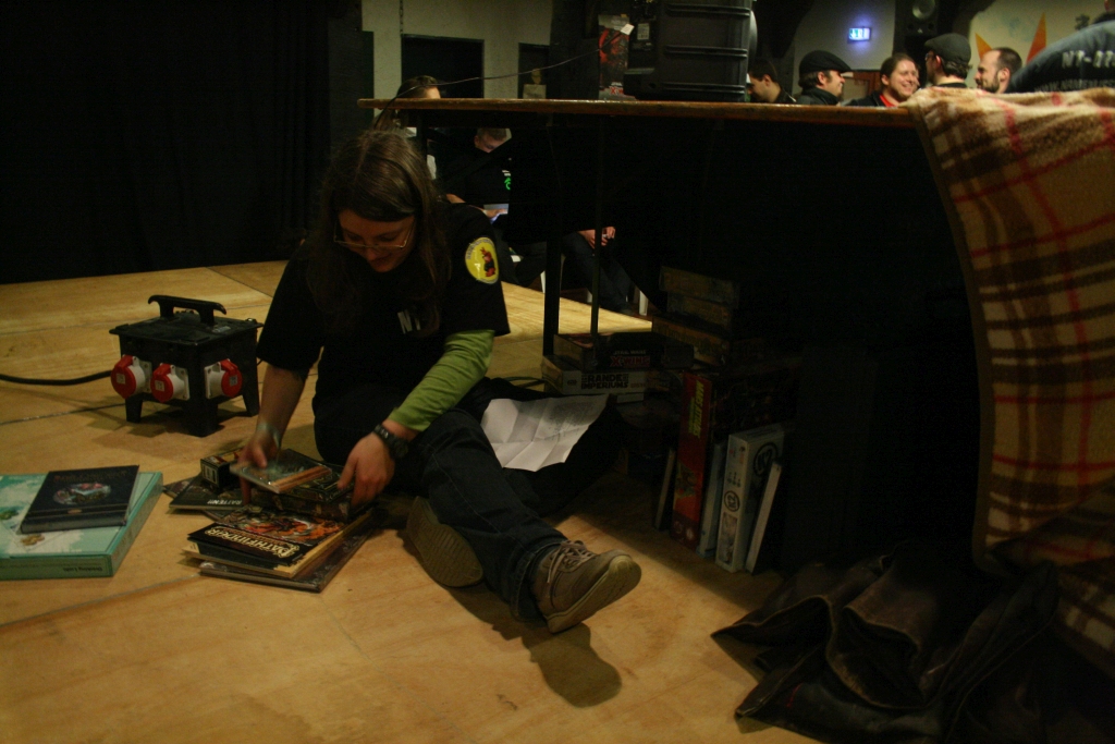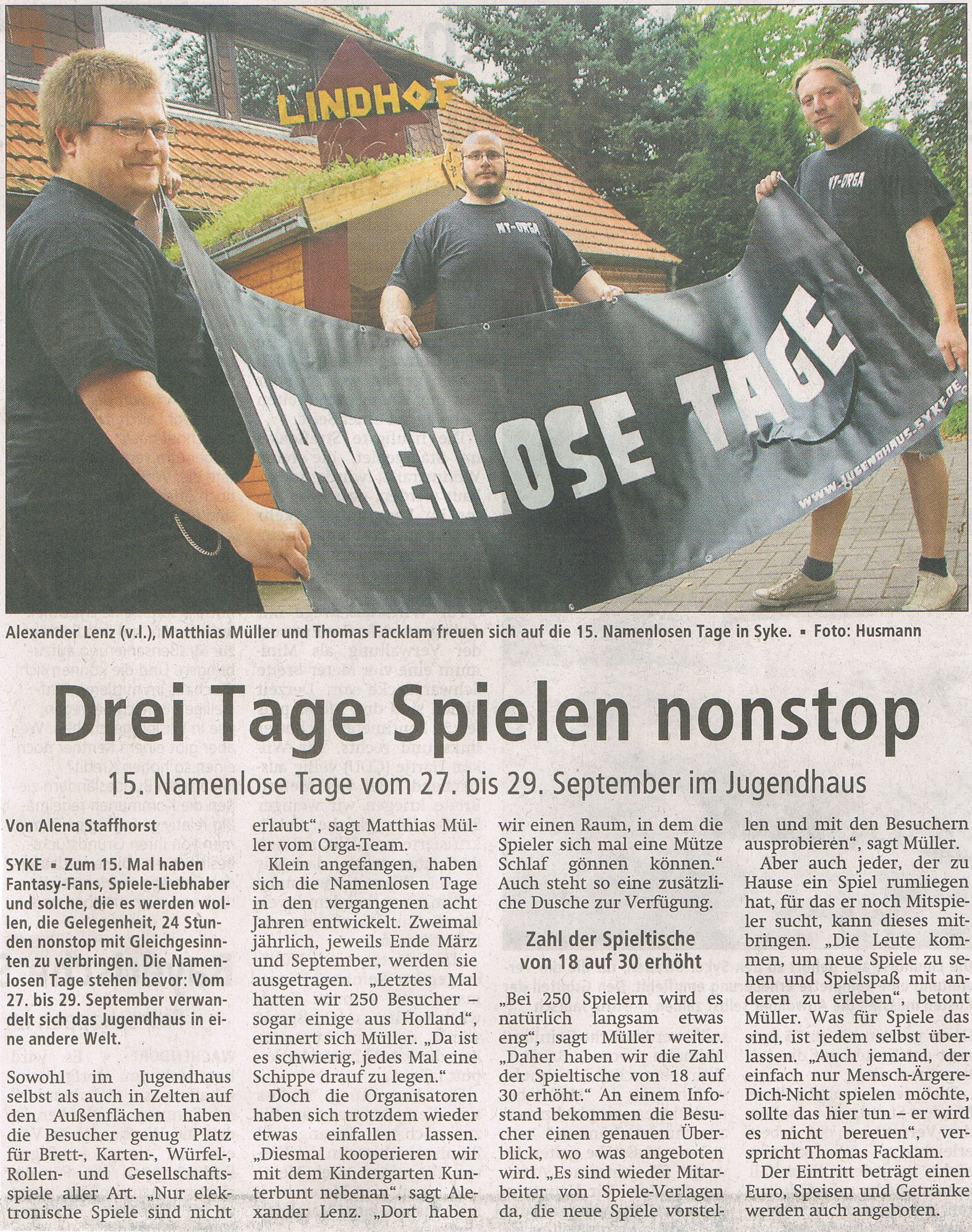 Im Vorfeld: Also irgendwie war von Anfang an der Wurm drin. Die Vorbereitungen zu den 24. Namenlosen Tagen waren ein auf und nieder und vor allem von Rückschlägen gezeichnet. Zunächst hatte man den Plan, die Menge der Spieltische um 10% zu erhöhen, da man den Schlafsaal in die neue, benachbarte Kita auslagern konnte und im Jugendhaus kleine bauliche Veränderungen vorgenommen wurden. Doch als es dann hieß, man könne die obere Etage nicht mehr nutzen, fing der Schlamassel an. Ursprünglich sollte Robert Corvus gemeinsam mit Bernhard Hennen am Freitag eine Lesung veranstalten, ersterer musste dann aber einem anderen Termin den Vorzug geben. Weitere kleine Probleme mussten aus dem Weg geräumt werden, aber als dann unsere lieb gewonnene Putzfrau in den verdienten Ruhestand ging, sah sich die Orga schon am Sonntag bis 0 Uhr im Kindergarten die Böden wischen. Letztendlich konnte in der letzten Woche vor den Namenlosen Tagen alles in die richtigen Bahnen gelenkt werden und man harrte gespannt der Dinge, die da kommen sollten.