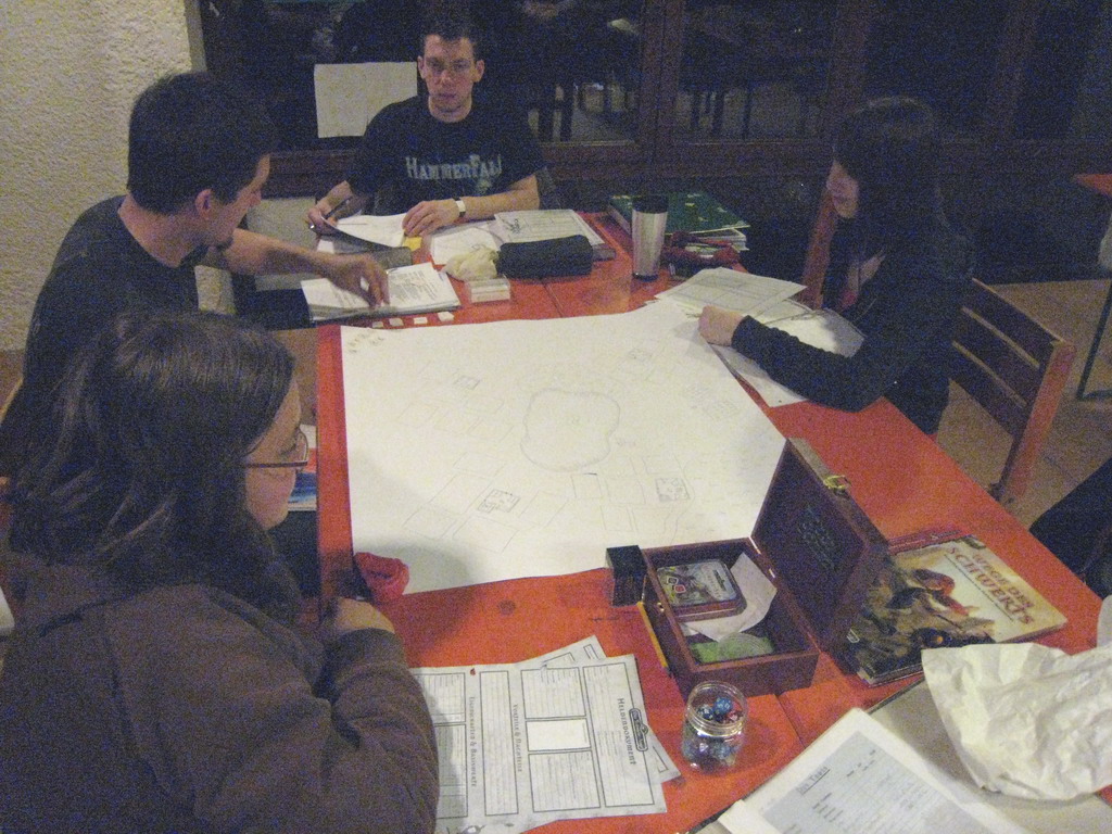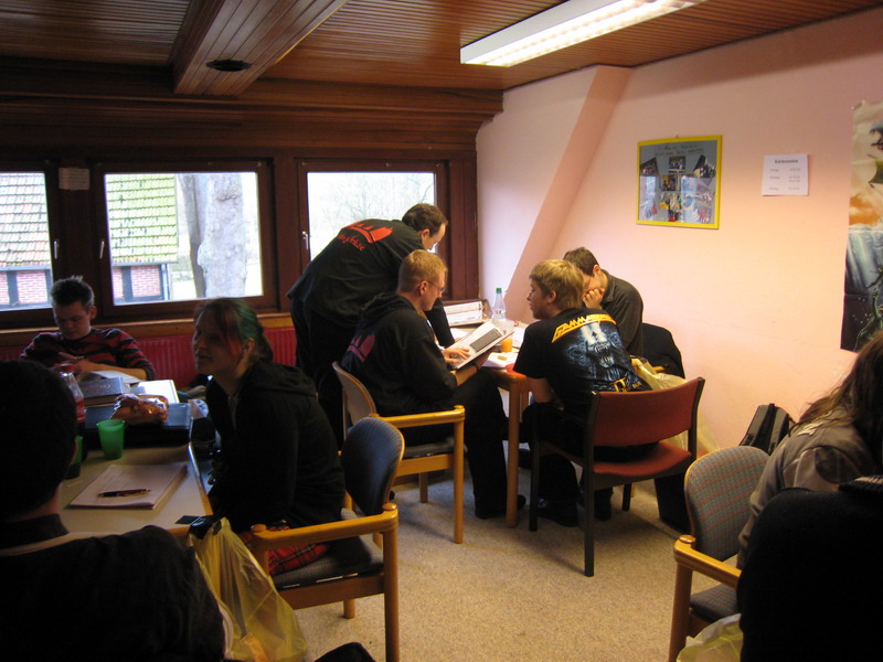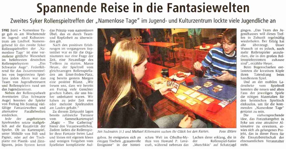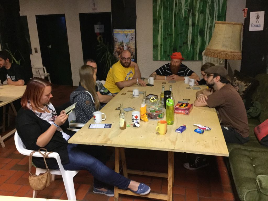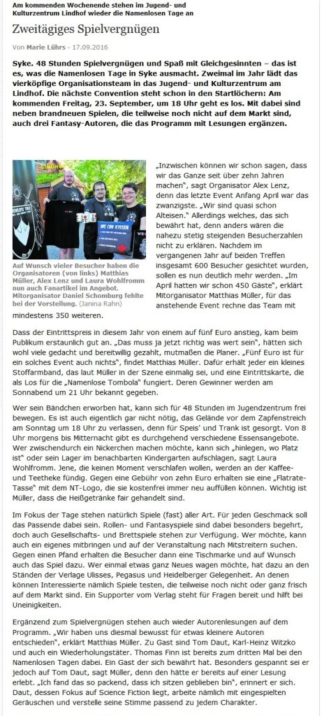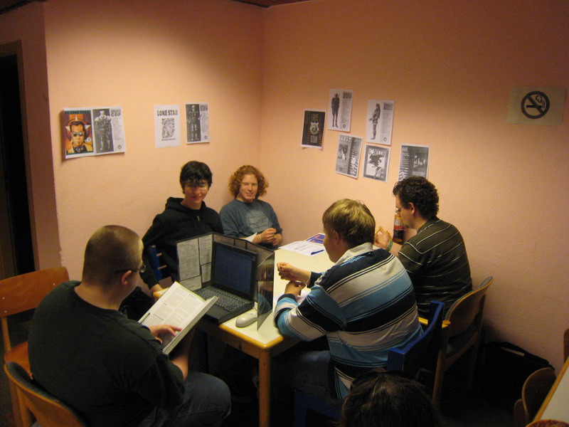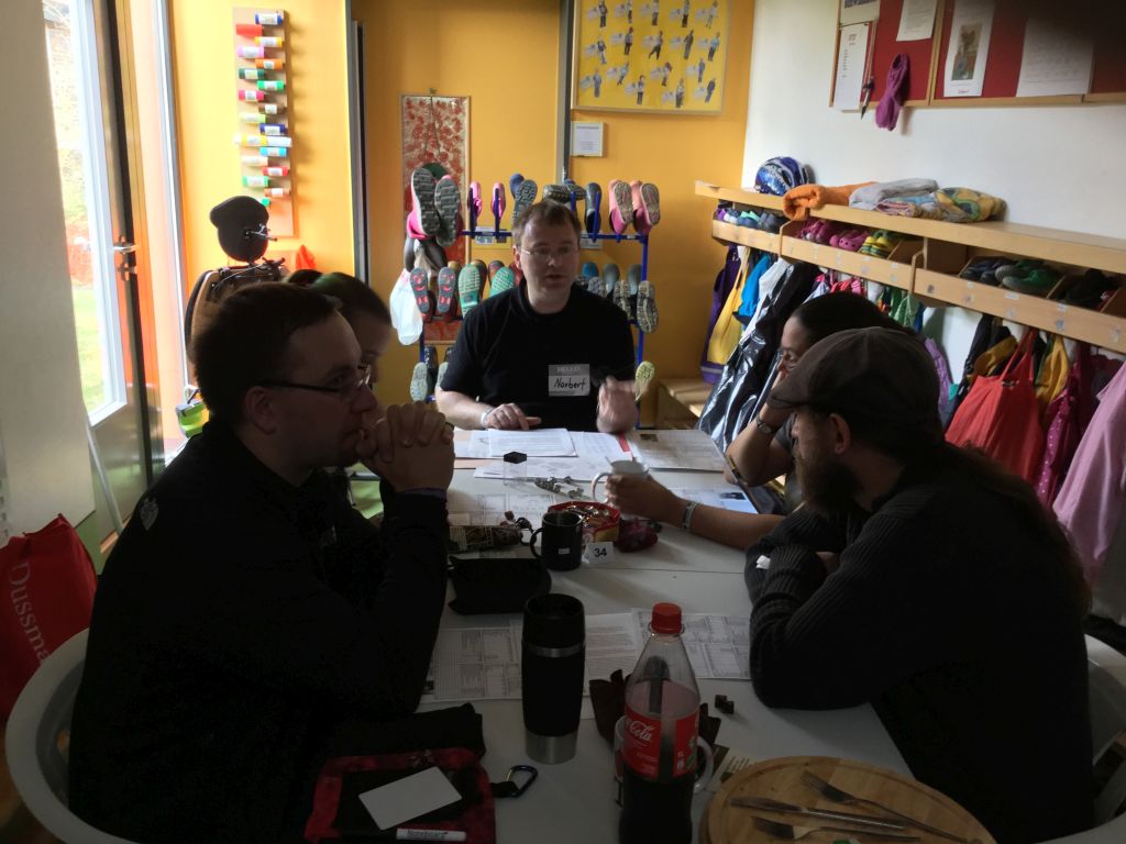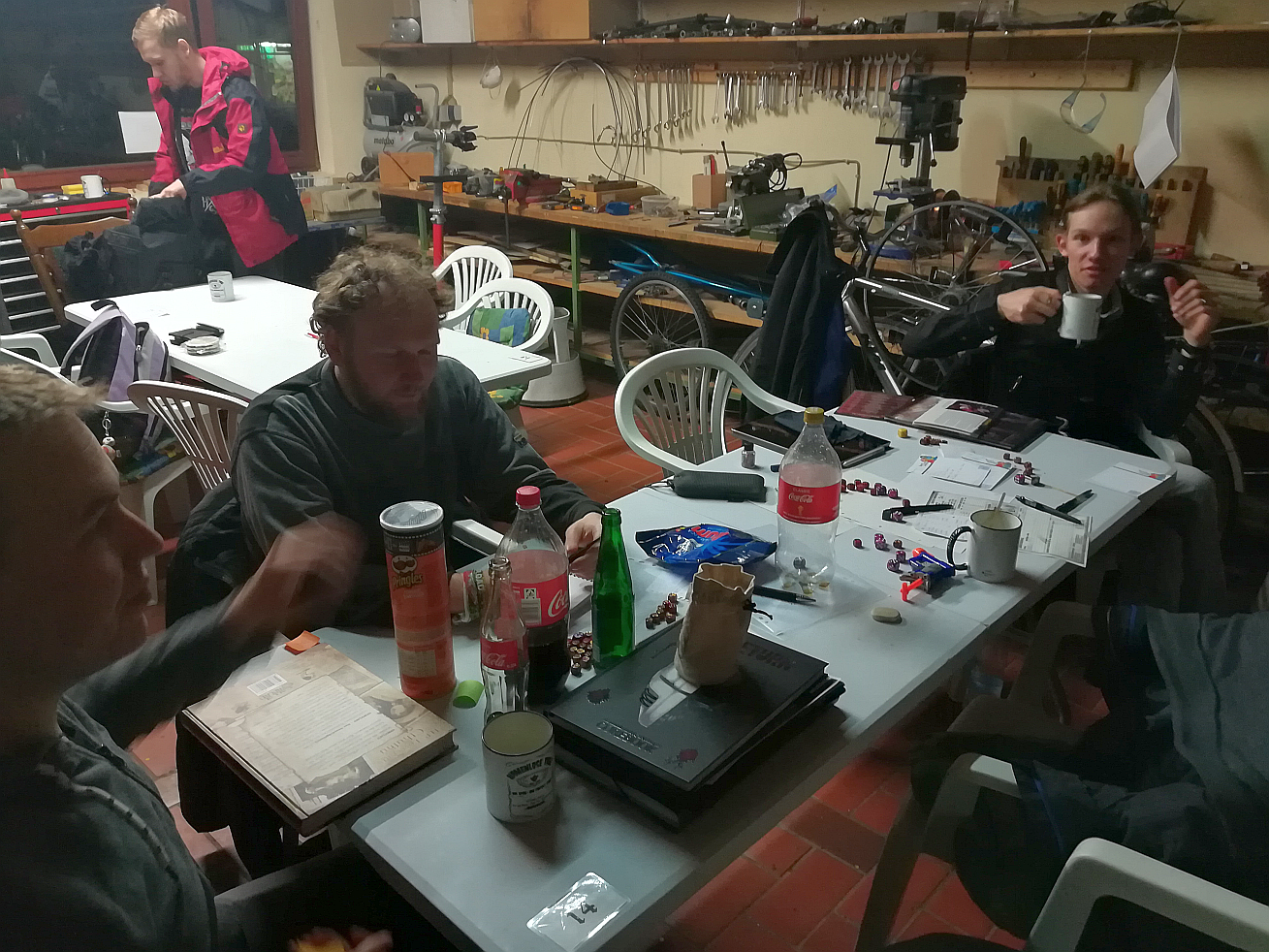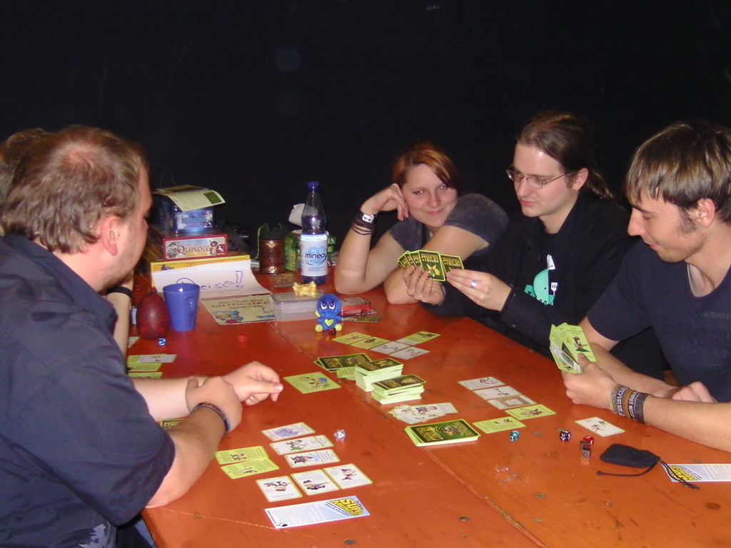 Im Vorfeld: Also irgendwie war von Anfang an der Wurm drin. Die Vorbereitungen zu den 24. Namenlosen Tagen waren ein auf und nieder und vor allem von Rückschlägen gezeichnet. Zunächst hatte man den Plan, die Menge der Spieltische um 10% zu erhöhen, da man den Schlafsaal in die neue, benachbarte Kita auslagern konnte und im Jugendhaus kleine bauliche Veränderungen vorgenommen wurden. Doch als es dann hieß, man könne die obere Etage nicht mehr nutzen, fing der Schlamassel an. Ursprünglich sollte Robert Corvus gemeinsam mit Bernhard Hennen am Freitag eine Lesung veranstalten, ersterer musste dann aber einem anderen Termin den Vorzug geben. Weitere kleine Probleme mussten aus dem Weg geräumt werden, aber als dann unsere lieb gewonnene Putzfrau in den verdienten Ruhestand ging, sah sich die Orga schon am Sonntag bis 0 Uhr im Kindergarten die Böden wischen. Letztendlich konnte in der letzten Woche vor den Namenlosen Tagen alles in die richtigen Bahnen gelenkt werden und man harrte gespannt der Dinge, die da kommen sollten.