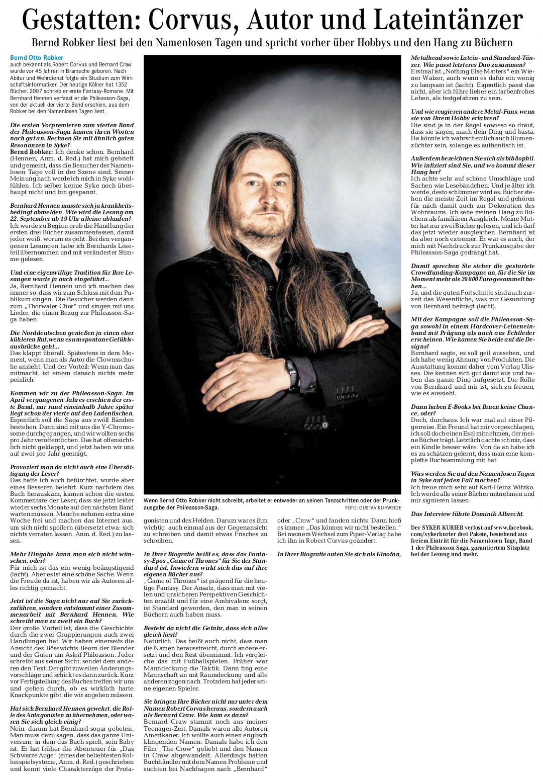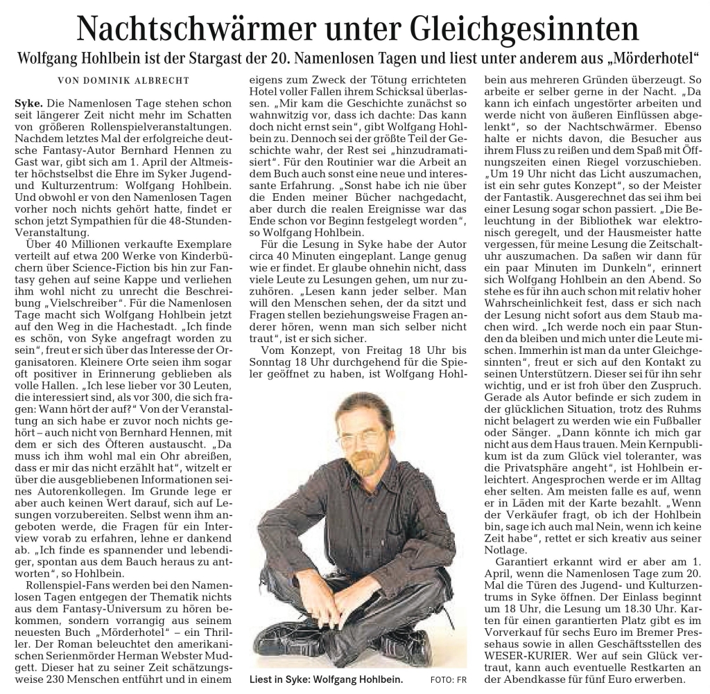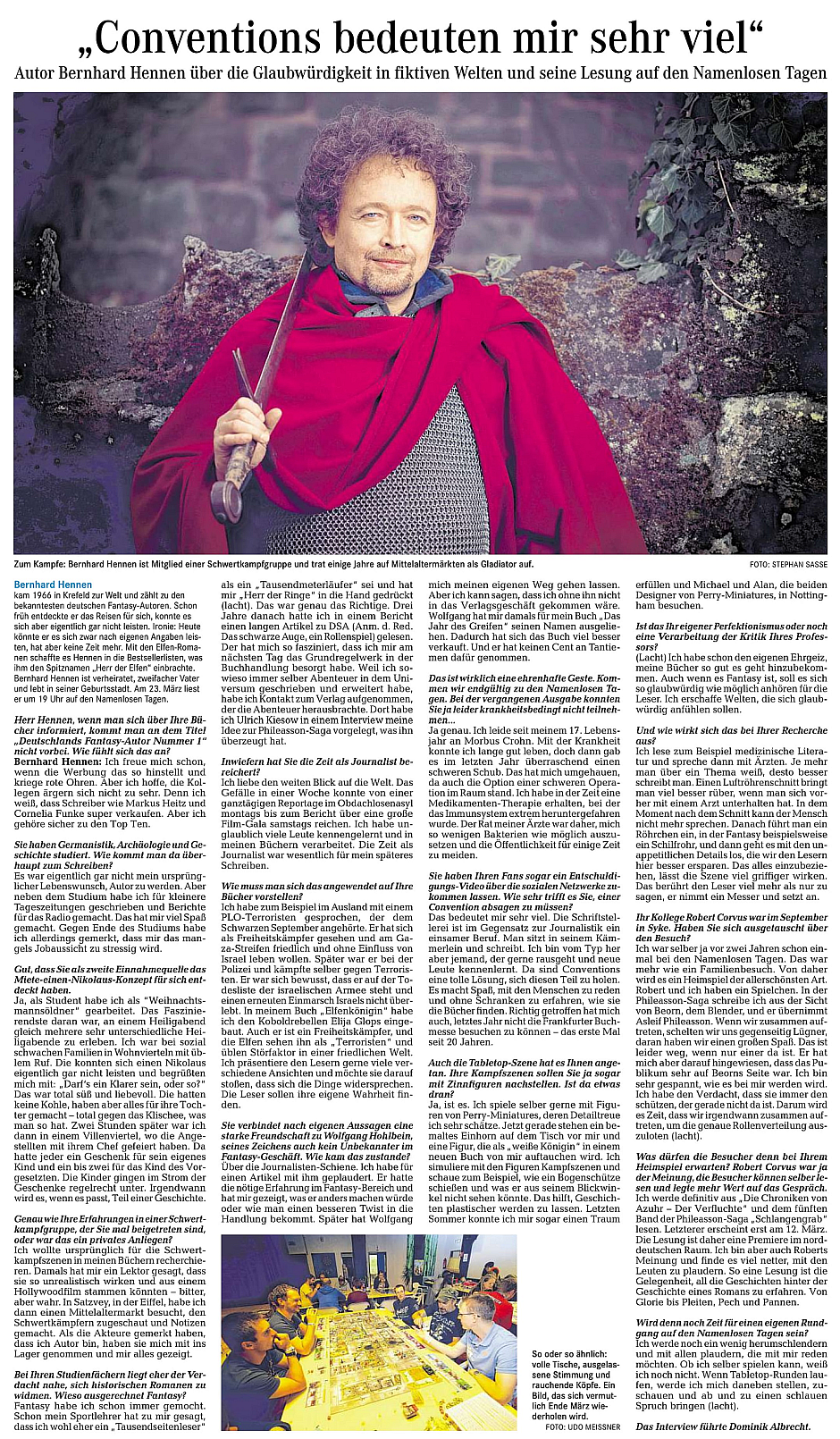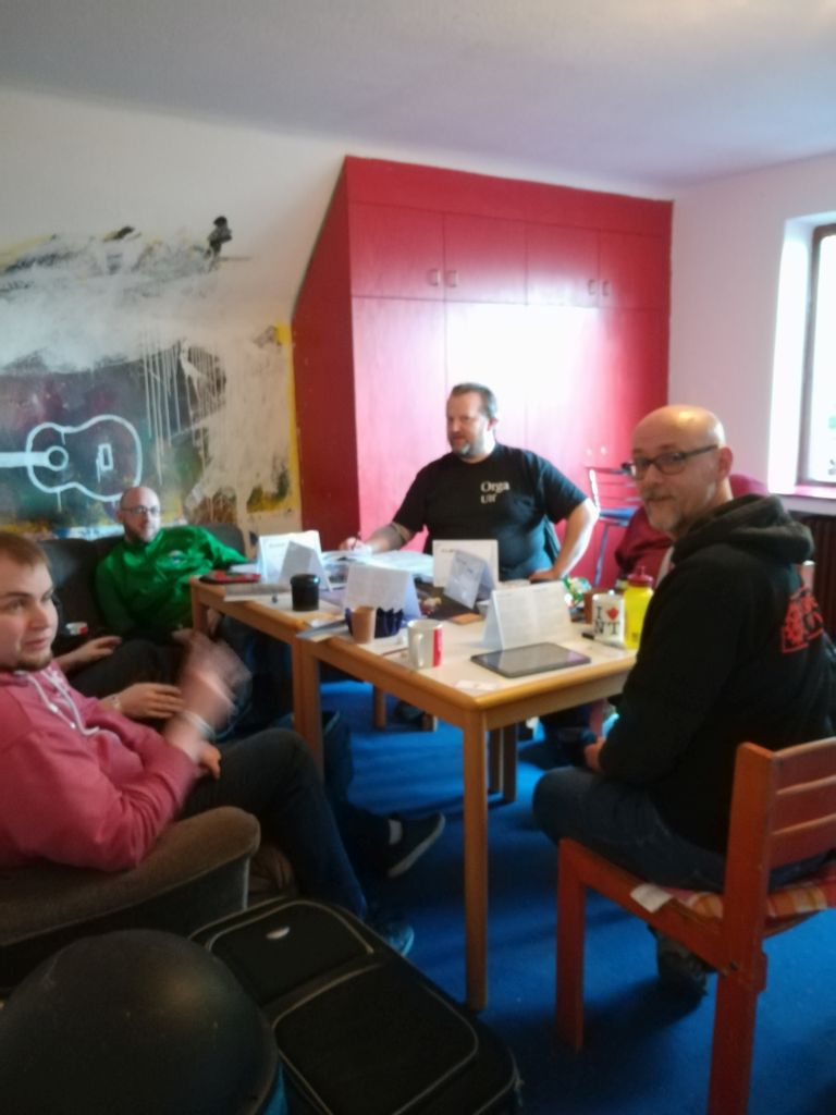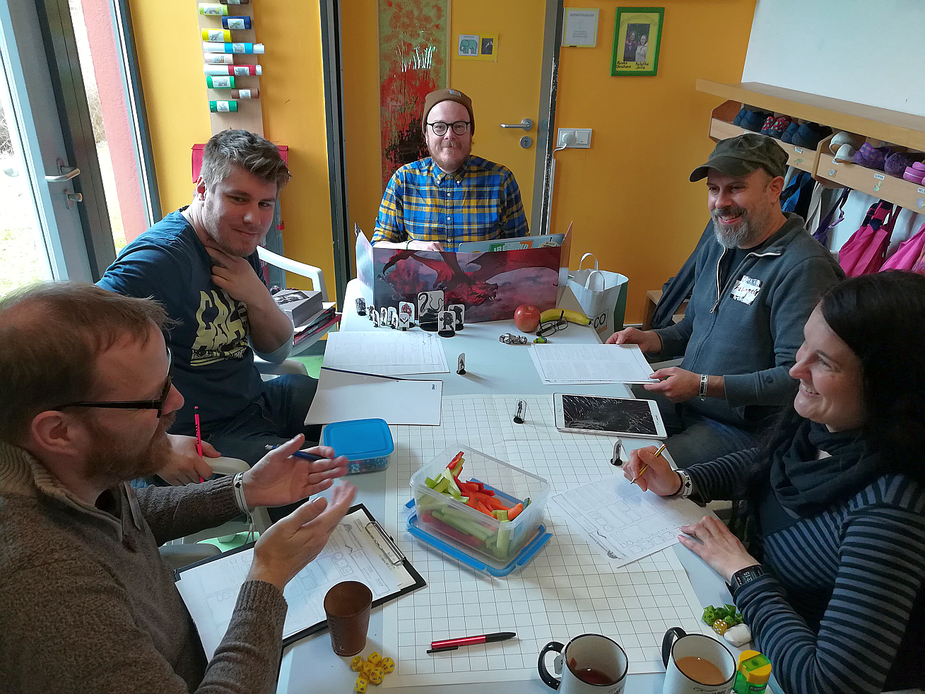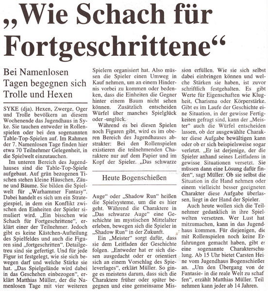 Im Vorfeld: Also irgendwie war von Anfang an der Wurm drin. Die Vorbereitungen zu den 24. Namenlosen Tagen waren ein auf und nieder und vor allem von Rückschlägen gezeichnet. Zunächst hatte man den Plan, die Menge der Spieltische um 10% zu erhöhen, da man den Schlafsaal in die neue, benachbarte Kita auslagern konnte und im Jugendhaus kleine bauliche Veränderungen vorgenommen wurden. Doch als es dann hieß, man könne die obere Etage nicht mehr nutzen, fing der Schlamassel an. Ursprünglich sollte Robert Corvus gemeinsam mit Bernhard Hennen am Freitag eine Lesung veranstalten, ersterer musste dann aber einem anderen Termin den Vorzug geben. Weitere kleine Probleme mussten aus dem Weg geräumt werden, aber als dann unsere lieb gewonnene Putzfrau in den verdienten Ruhestand ging, sah sich die Orga schon am Sonntag bis 0 Uhr im Kindergarten die Böden wischen. Letztendlich konnte in der letzten Woche vor den Namenlosen Tagen alles in die richtigen Bahnen gelenkt werden und man harrte gespannt der Dinge, die da kommen sollten.