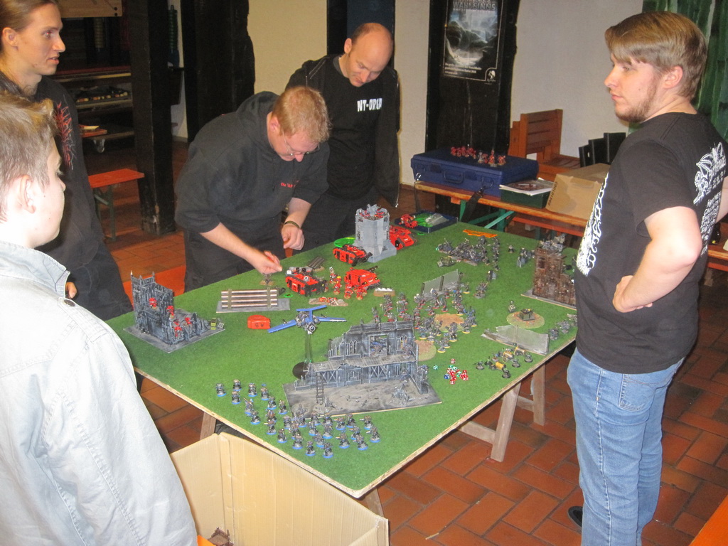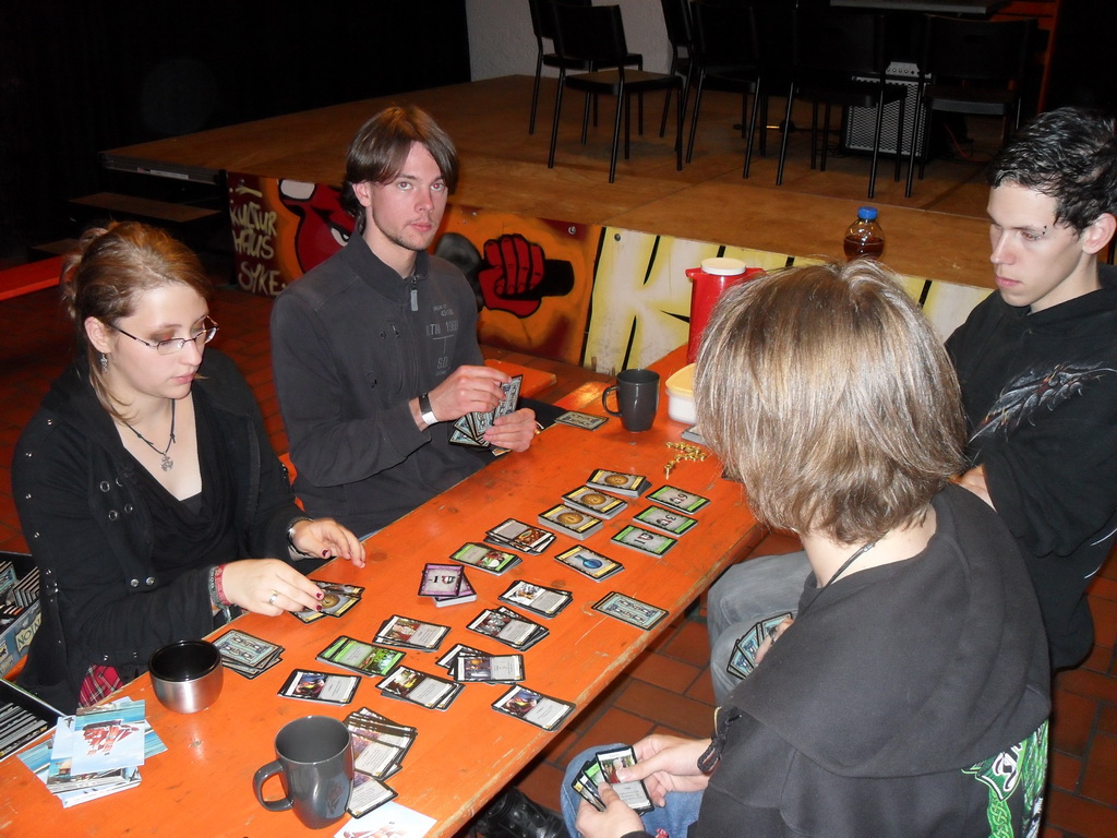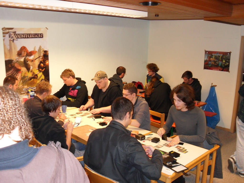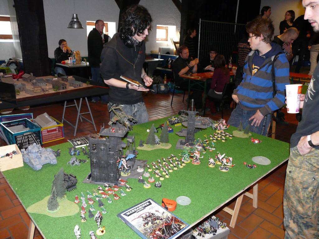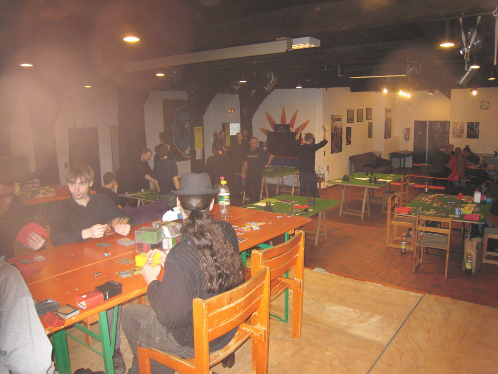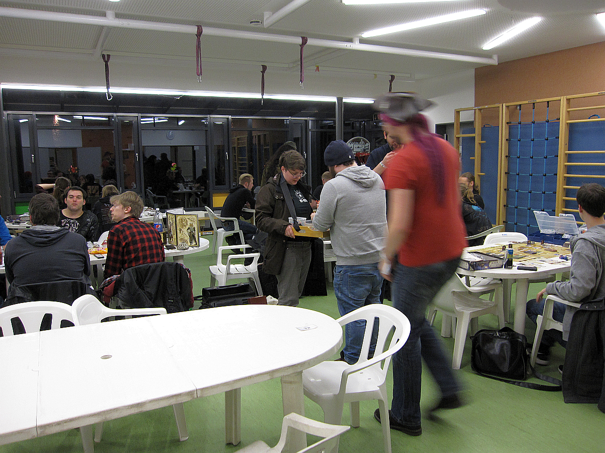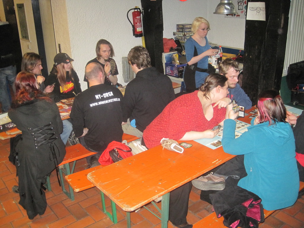 NT11: Der Besucheransturm der vergangenen Veranstaltung, für welchen extra eine Stationskasse eingerichtet wurde, blieb am Freitag aus. Das tat der guten Laune allerdings keinen Abbruch und so konnte man den ersten Abend des Wochenendes mit soliden 90 Gästen ausklingen lassen. Am Samstag, bei fantastischem Herbstwetter, sollte sich dieses allerdings ändern. Das Warhammer Fantasy Turnier überraschte mit der ersten weiblichen Teilnehmerin, welche später nur knapp vor dem Sieg auf Platz 2 landete. Das Munchkin Turnier, welches vom Pegasus Supportteam organisiert wurde, trug zur Unterhaltung in der Diele bei. Die Rollenspieler behaupteten sich und besetzten kurze Hand das restliche Haus. So konnte am Abend bei der Tombola die Zahl von 155 Besuchern verkündet werden. Das Pokerturnier zur späten Stunde vermeldete ebenfalls seine bis dato höchste Teilnehmerzahl und sorgte mit einem neuen Pokerchampion für eine weitere Überraschung, weil dieser bei der Veranstaltung zuvor als erstes vom Tisch ausscheiden musste. Der Sonntag stand dem Samstag vom Wetter und dem Besucherstrom in nichts nach. Das erste Warmaschine Hordes Turnier der NT Geschichte und ein gut besuchtes Magic Turnier sorgten unter anderem dafür, das ein neuer Besucherrekord vermeldet werden konnte. Die Organisatoren zählten mehrmals nach, aber letztendlich stand es fest. Die Besucherschallmauer wurde durchbrochen und man konnte mit einem Rekord von 202 Gästen die Veranstaltung beenden.