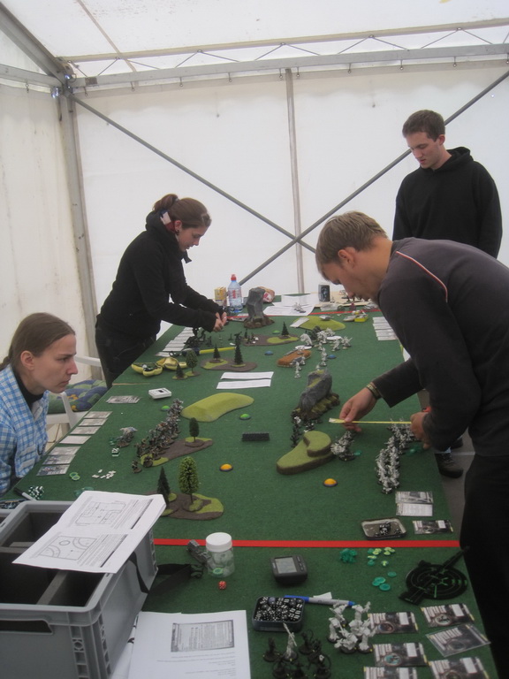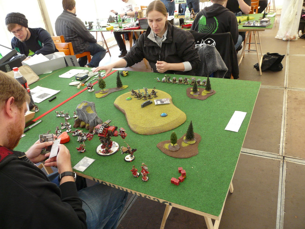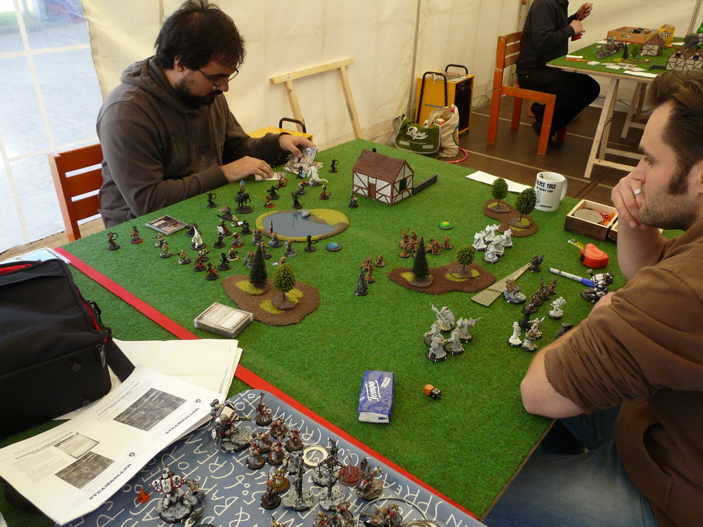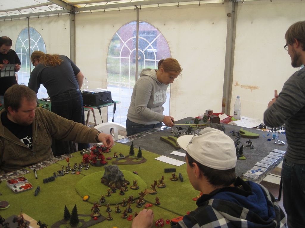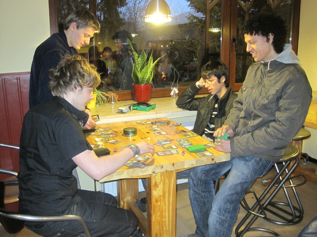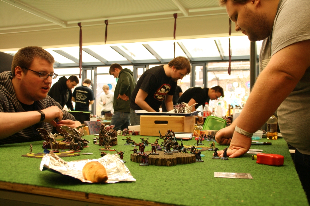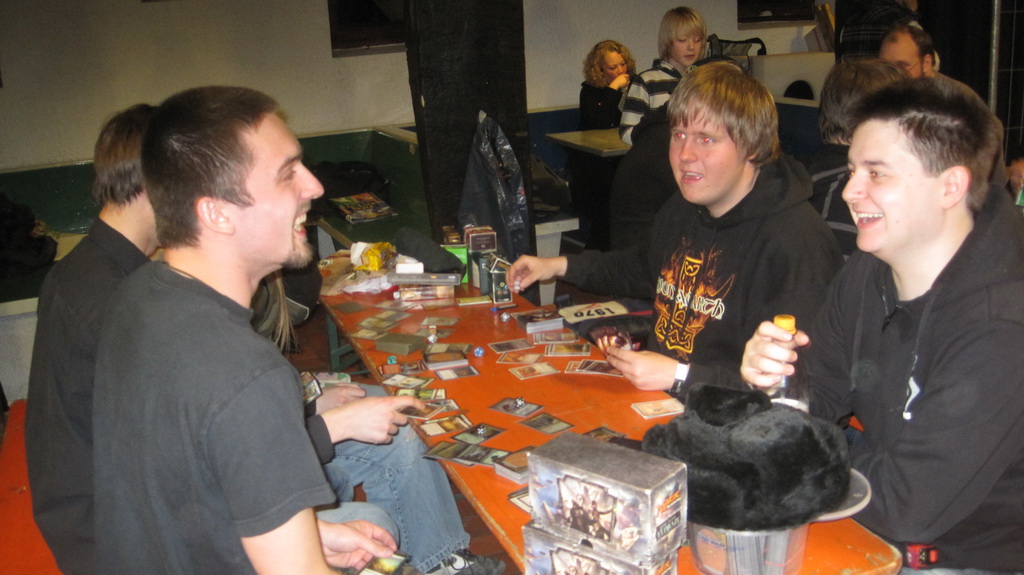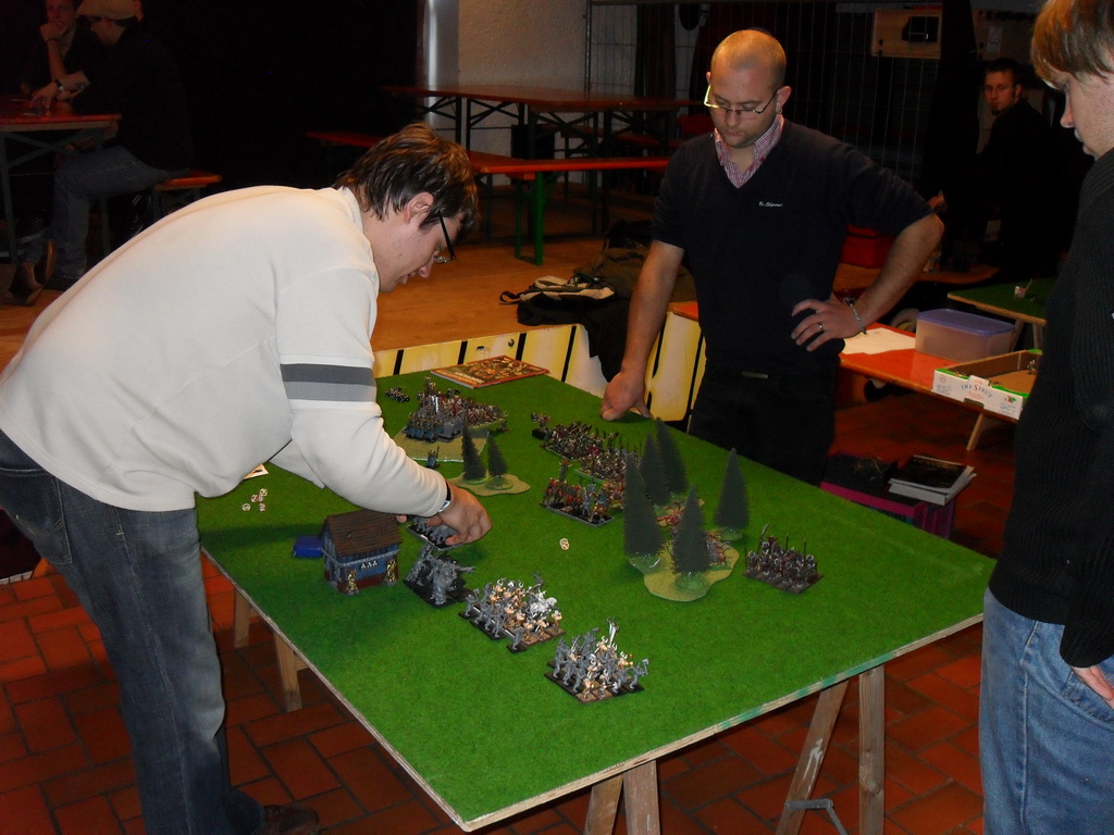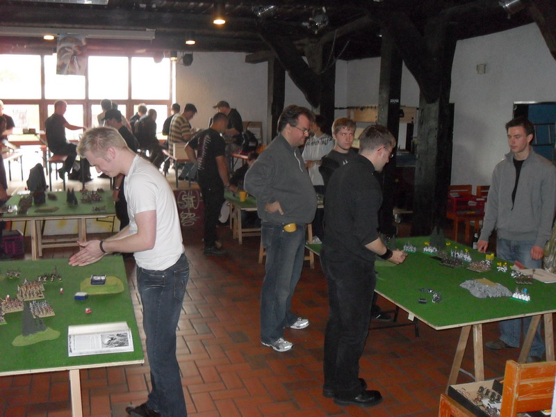 NT11: Der Besucheransturm der vergangenen Veranstaltung, für welchen extra eine Stationskasse eingerichtet wurde, blieb am Freitag aus. Das tat der guten Laune allerdings keinen Abbruch und so konnte man den ersten Abend des Wochenendes mit soliden 90 Gästen ausklingen lassen. Am Samstag, bei fantastischem Herbstwetter, sollte sich dieses allerdings ändern. Das Warhammer Fantasy Turnier überraschte mit der ersten weiblichen Teilnehmerin, welche später nur knapp vor dem Sieg auf Platz 2 landete. Das Munchkin Turnier, welches vom Pegasus Supportteam organisiert wurde, trug zur Unterhaltung in der Diele bei. Die Rollenspieler behaupteten sich und besetzten kurze Hand das restliche Haus. So konnte am Abend bei der Tombola die Zahl von 155 Besuchern verkündet werden. Das Pokerturnier zur späten Stunde vermeldete ebenfalls seine bis dato höchste Teilnehmerzahl und sorgte mit einem neuen Pokerchampion für eine weitere Überraschung, weil dieser bei der Veranstaltung zuvor als erstes vom Tisch ausscheiden musste. Der Sonntag stand dem Samstag vom Wetter und dem Besucherstrom in nichts nach. Das erste Warmaschine Hordes Turnier der NT Geschichte und ein gut besuchtes Magic Turnier sorgten unter anderem dafür, das ein neuer Besucherrekord vermeldet werden konnte. Die Organisatoren zählten mehrmals nach, aber letztendlich stand es fest. Die Besucherschallmauer wurde durchbrochen und man konnte mit einem Rekord von 202 Gästen die Veranstaltung beenden.