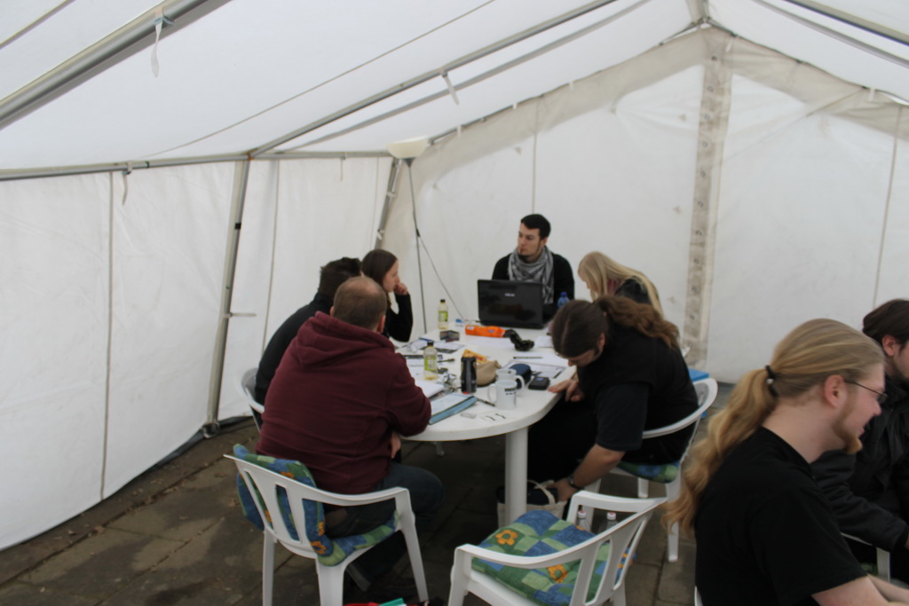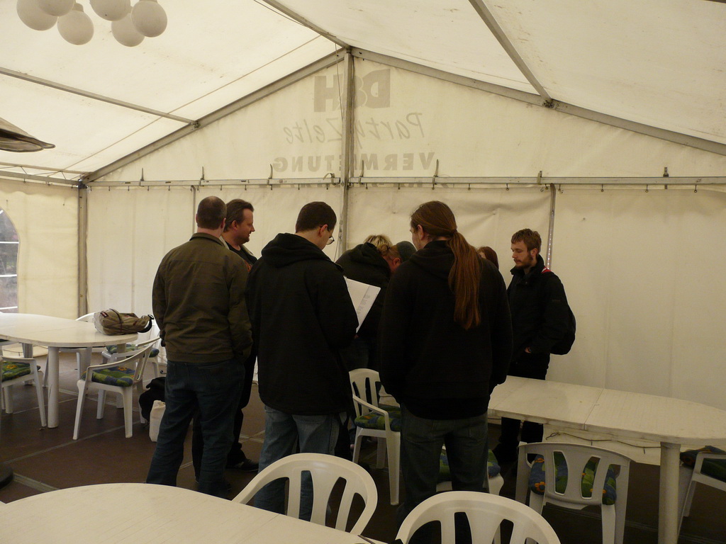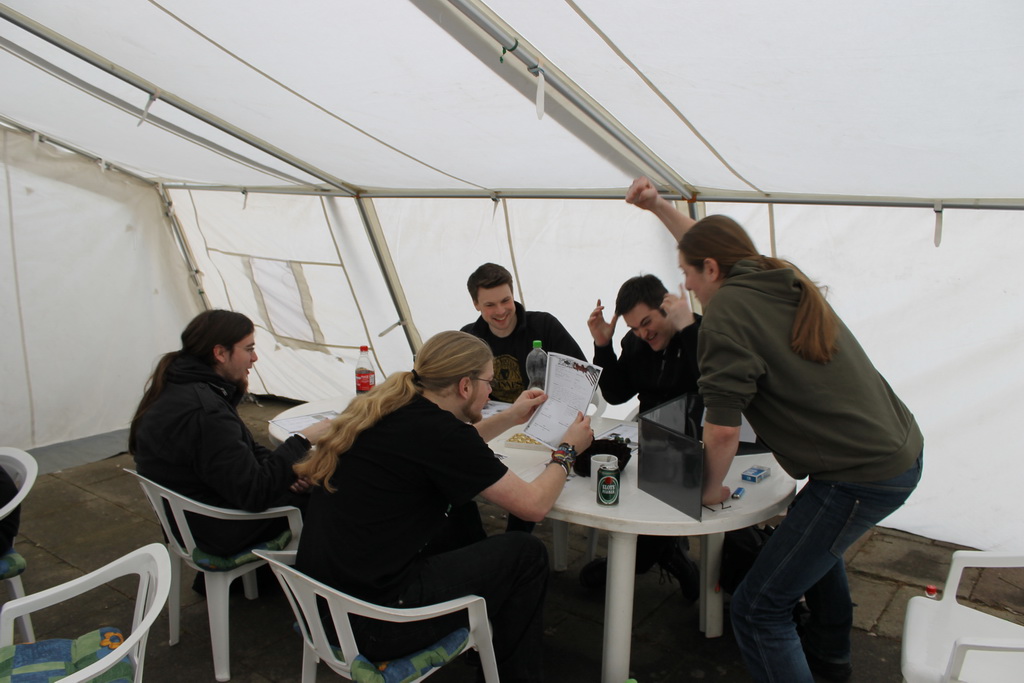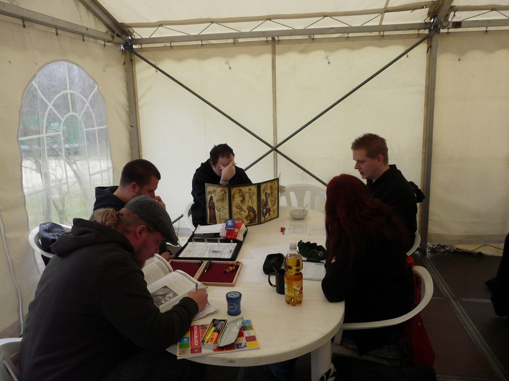 Im Vorfeld: Es schien von Anfang an der Wurm drin zu sein. Die Orga stand vor einem Terminkonflikt, den sie so noch nicht hatte. Es wurde immer gepredigt: "...letztes März-, letztes Septemberwochenende" und nun musste man eine kleine Tradition aufgeben. Die Namenlose Stunde. In der Vergangenheit viel das letzte Märzwochenende immer auf das gleiche, wie die Zeitumstellung, nur dieses Mal eben nicht. Als diese Unstimmigkeiten geklärt waren ging es an die Aufgabenverteilung und alles verlief reibungslos, bis uns das Wochenende wieder einholte. Das Magic Turnier konnte nicht stattfinden und das Zelt war ausgebucht. Letztendlich konnte man zumindest das Zelt für die Veranstaltung gewinnen und ein schönes Wochenende erwarten. Am Zeitumstellungswochenende war herrliches Frühlingswetter bei 21°C, nur leider wendete sich das zur NT12...