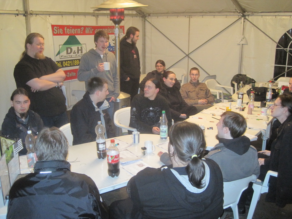 Im Vorfeld: Nach einer fantastischen NT10 und durchweg positiven Gästeresümees, gönnte sich die Orga erst einmal eine kreative Pause. Frisch und erholt begann man dann eigene und Verbesserungsvorschläge der Gäste umzusetzen. Doch schon bald kam der erste kleinere Rückschlag, als man erfuhr, dass auf der NT11 kein Warhammer 40k Turnier stattfinden wird. Darüber hinaus musste man auch das Nichtzustandekommen des Multiparallelen Abenteuers verkraften. Eifrig wurde in der Orga diskutiert und man schaffte es, in Zusammenarbeit mit dem Highlander Bremen, ein Hordes Turnier auf die Beine zu stellen. Des Weiteren mussten neue Standards, welche bei der NT10 erreicht wurden, erneut umgesetzt werden. So musste ein Zelt für den Außenbereich organisiert werden, doch einen wesentlich schwierigeren Standard galt es noch zu bewerkstelligen. Die Namenlose Tasse, welche als einmalige Aktion geplant war, stieß auf so großes Interesse, das wir unseren Kaffeeflatratetrinkern und unseren Sammlern erneut eine Tasse anbieten wollten.