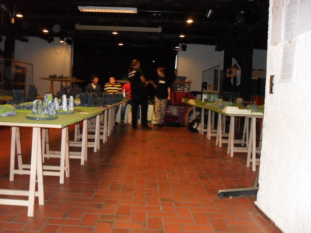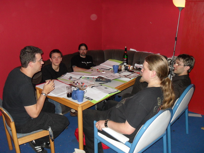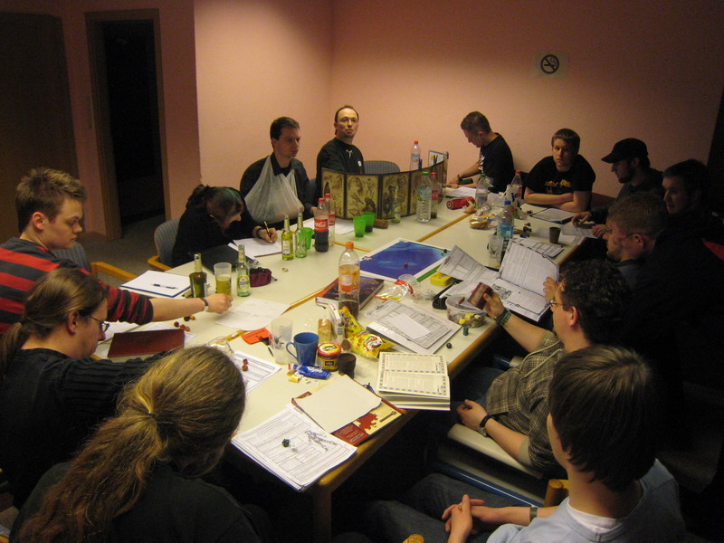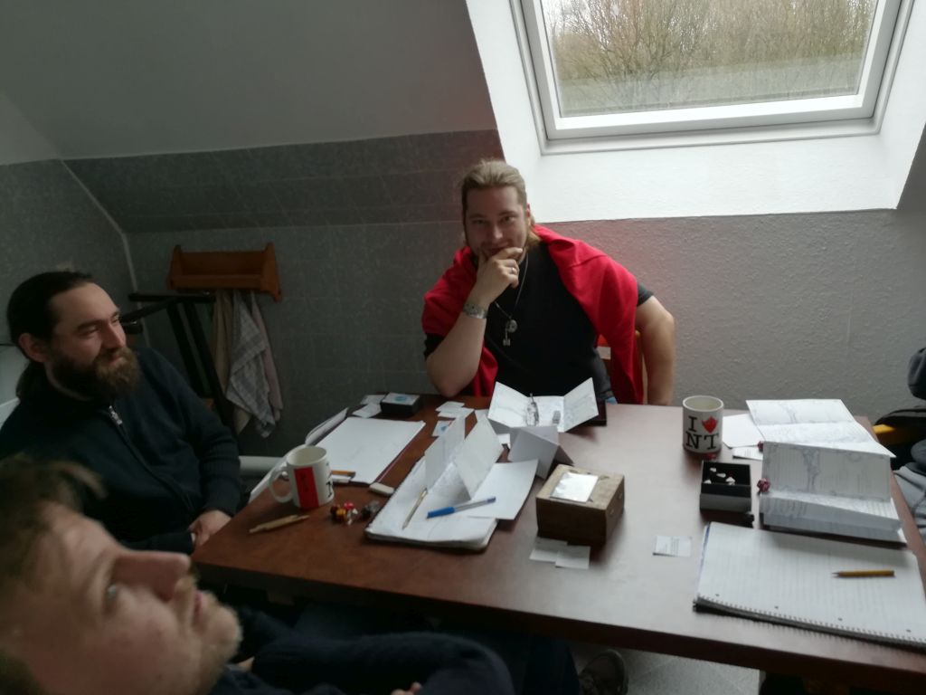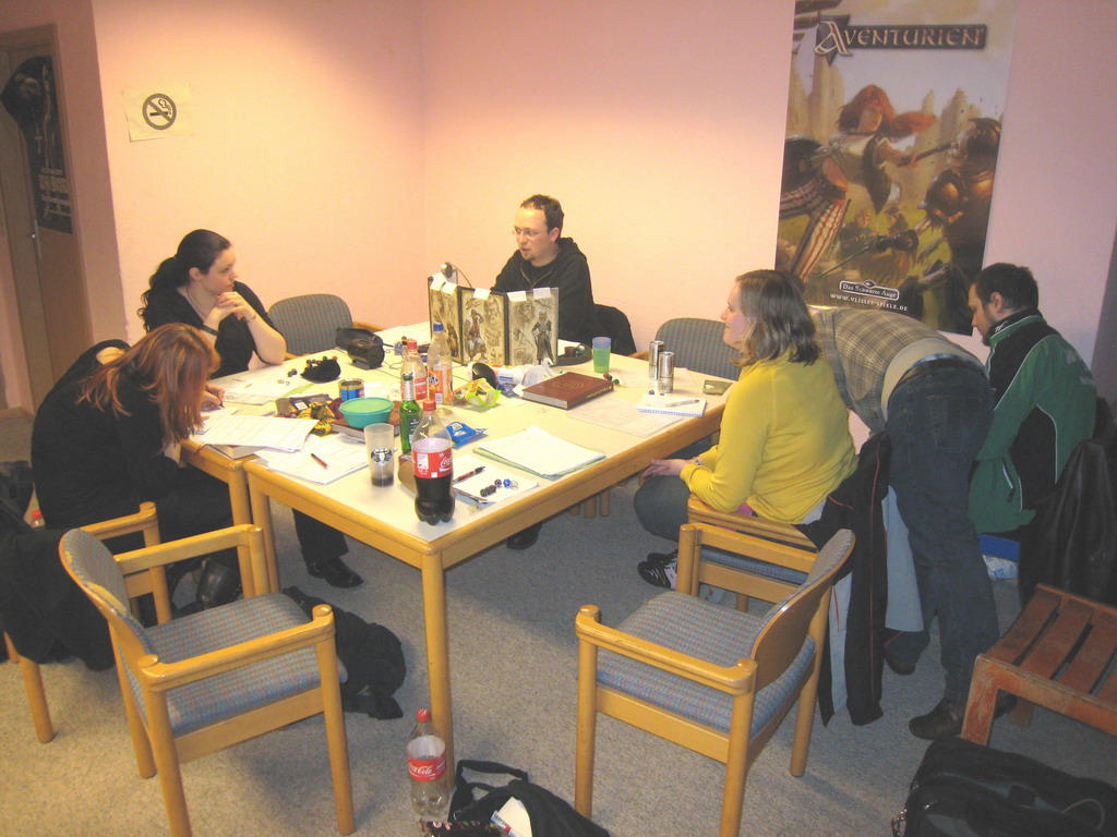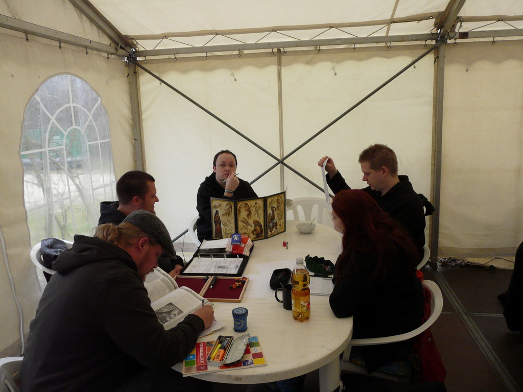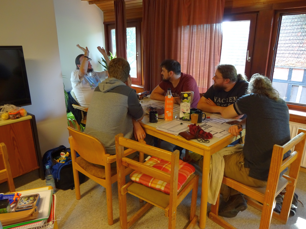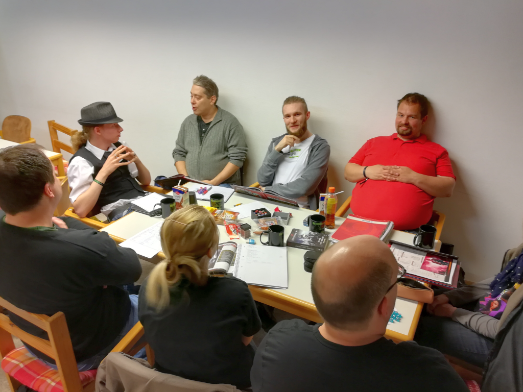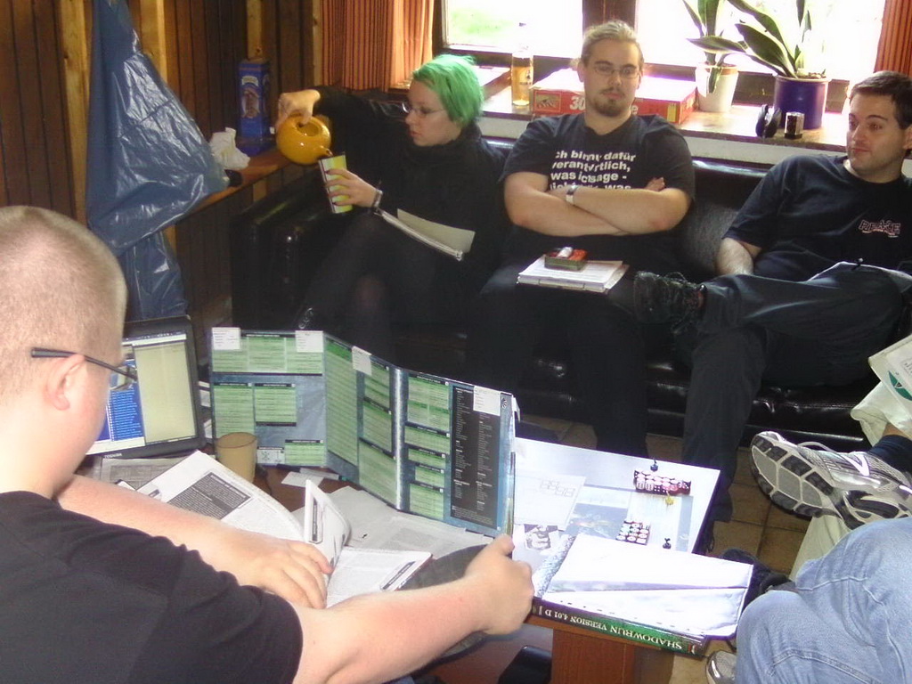 Im Vorfeld: Also irgendwie war von Anfang an der Wurm drin. Die Vorbereitungen zu den 24. Namenlosen Tagen waren ein auf und nieder und vor allem von Rückschlägen gezeichnet. Zunächst hatte man den Plan, die Menge der Spieltische um 10% zu erhöhen, da man den Schlafsaal in die neue, benachbarte Kita auslagern konnte und im Jugendhaus kleine bauliche Veränderungen vorgenommen wurden. Doch als es dann hieß, man könne die obere Etage nicht mehr nutzen, fing der Schlamassel an. Ursprünglich sollte Robert Corvus gemeinsam mit Bernhard Hennen am Freitag eine Lesung veranstalten, ersterer musste dann aber einem anderen Termin den Vorzug geben. Weitere kleine Probleme mussten aus dem Weg geräumt werden, aber als dann unsere lieb gewonnene Putzfrau in den verdienten Ruhestand ging, sah sich die Orga schon am Sonntag bis 0 Uhr im Kindergarten die Böden wischen. Letztendlich konnte in der letzten Woche vor den Namenlosen Tagen alles in die richtigen Bahnen gelenkt werden und man harrte gespannt der Dinge, die da kommen sollten.