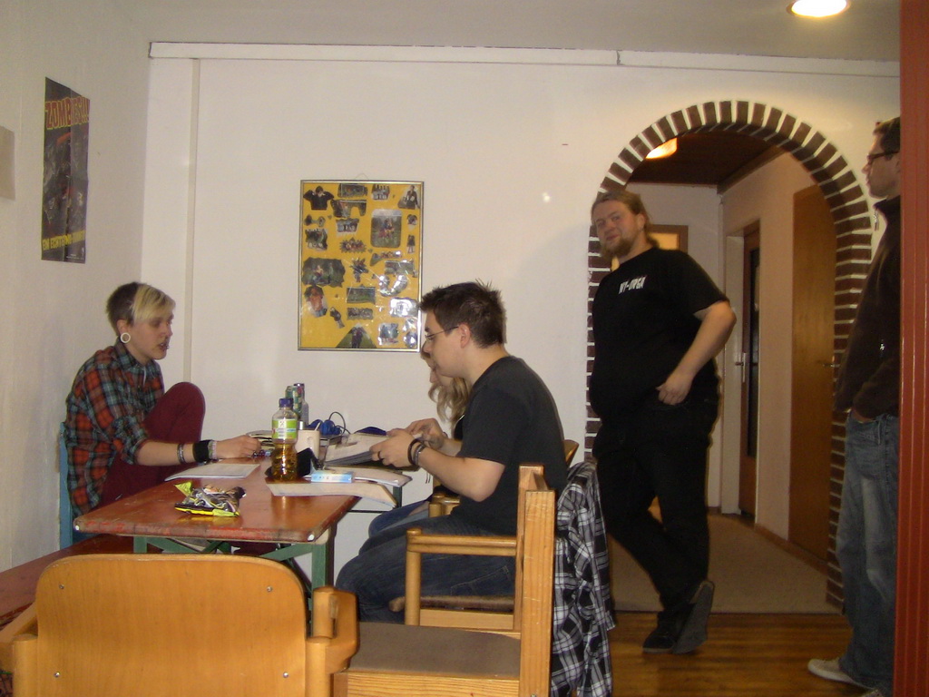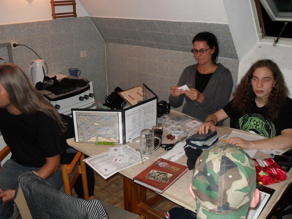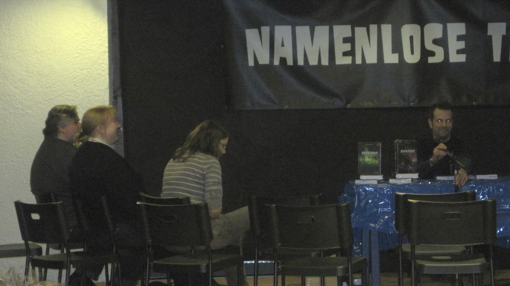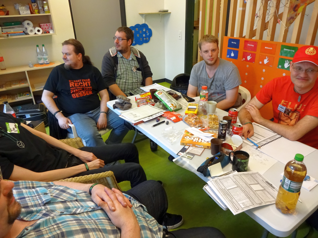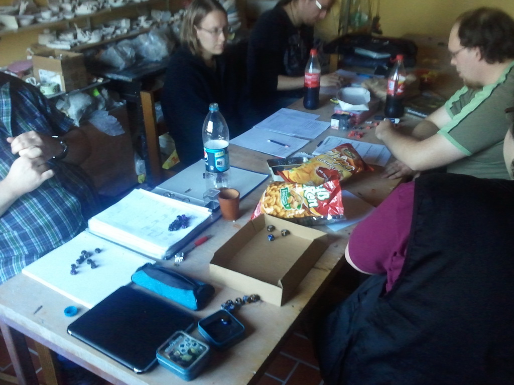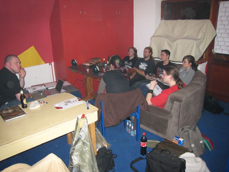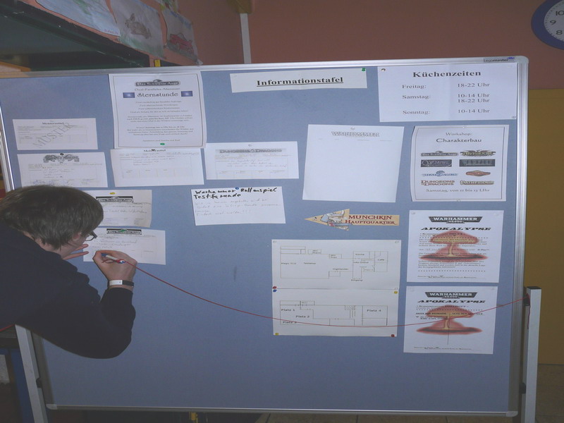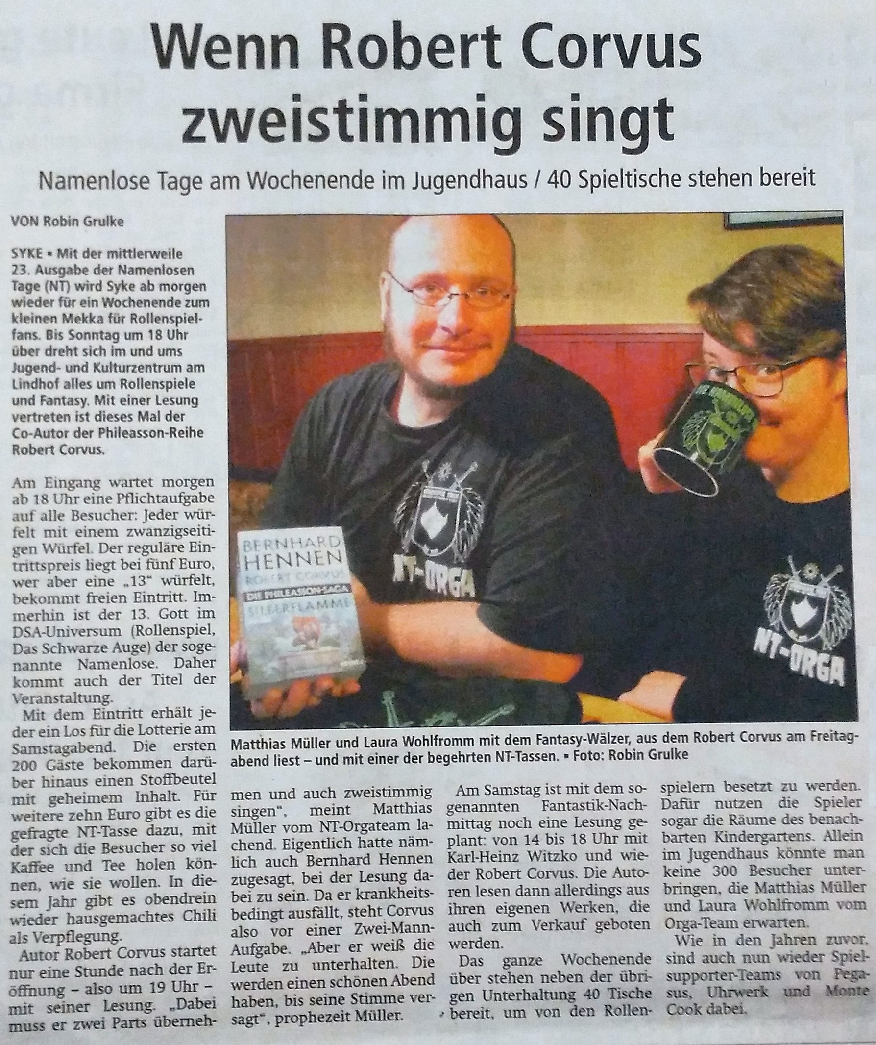 Im Vorfeld: Also irgendwie war von Anfang an der Wurm drin. Die Vorbereitungen zu den 24. Namenlosen Tagen waren ein auf und nieder und vor allem von Rückschlägen gezeichnet. Zunächst hatte man den Plan, die Menge der Spieltische um 10% zu erhöhen, da man den Schlafsaal in die neue, benachbarte Kita auslagern konnte und im Jugendhaus kleine bauliche Veränderungen vorgenommen wurden. Doch als es dann hieß, man könne die obere Etage nicht mehr nutzen, fing der Schlamassel an. Ursprünglich sollte Robert Corvus gemeinsam mit Bernhard Hennen am Freitag eine Lesung veranstalten, ersterer musste dann aber einem anderen Termin den Vorzug geben. Weitere kleine Probleme mussten aus dem Weg geräumt werden, aber als dann unsere lieb gewonnene Putzfrau in den verdienten Ruhestand ging, sah sich die Orga schon am Sonntag bis 0 Uhr im Kindergarten die Böden wischen. Letztendlich konnte in der letzten Woche vor den Namenlosen Tagen alles in die richtigen Bahnen gelenkt werden und man harrte gespannt der Dinge, die da kommen sollten.