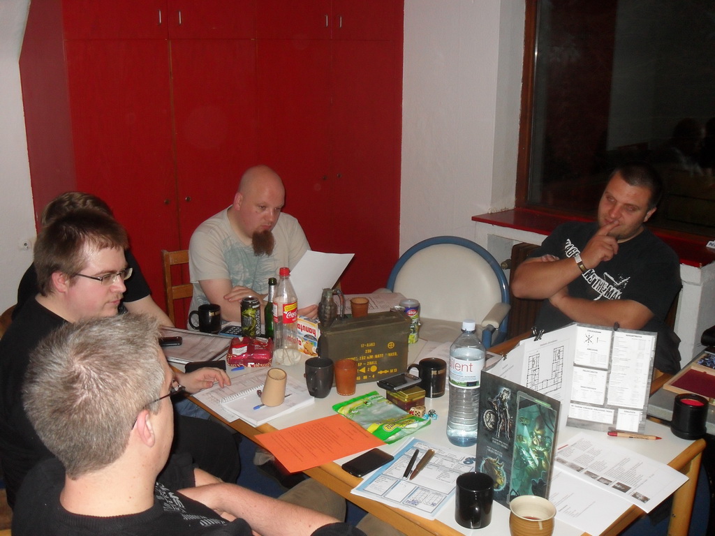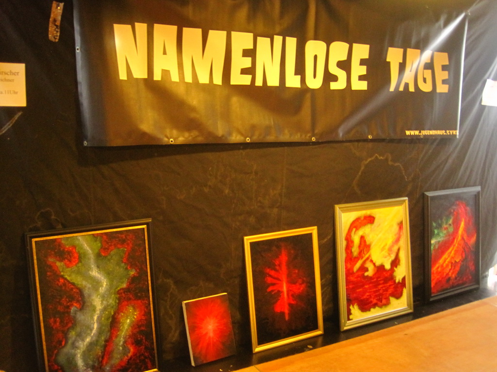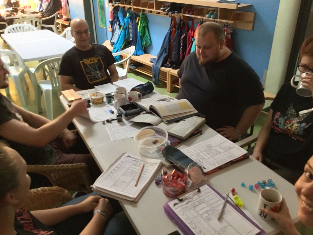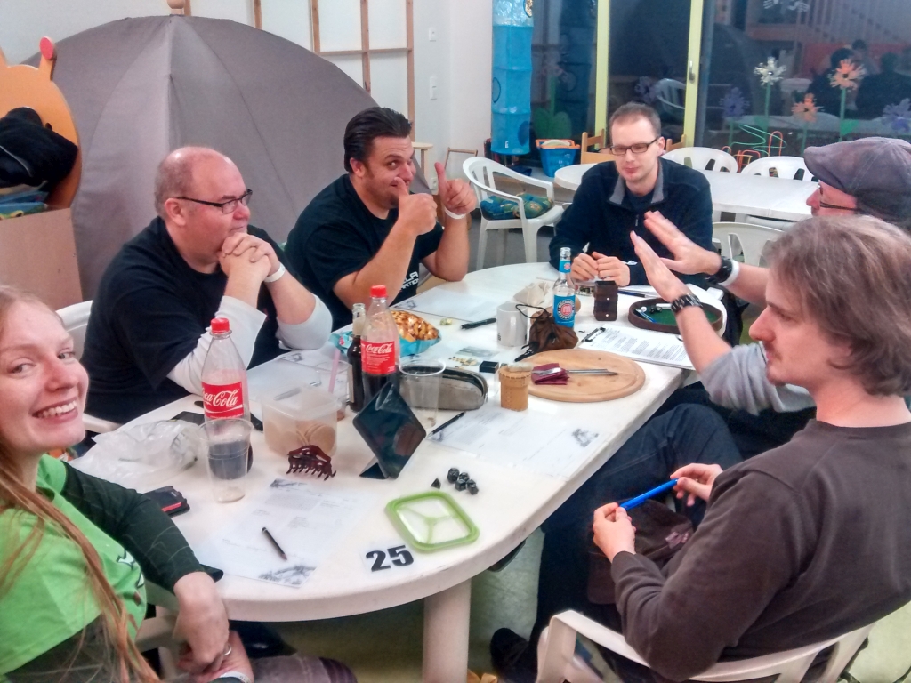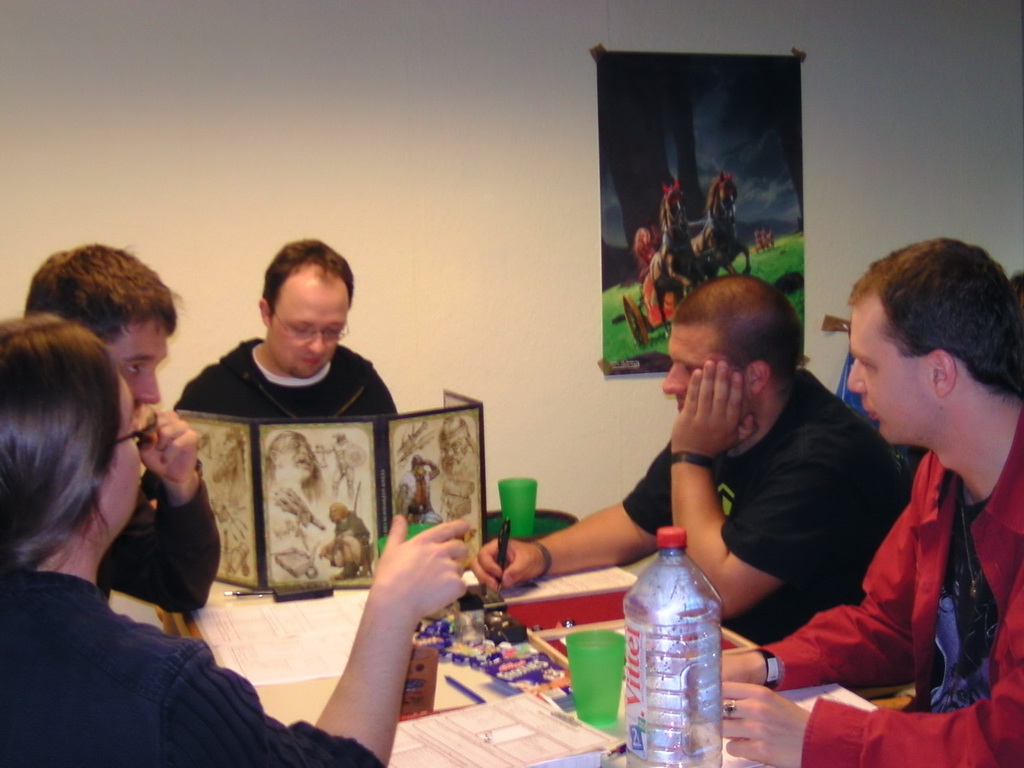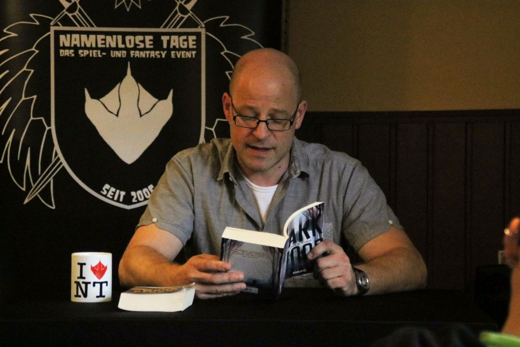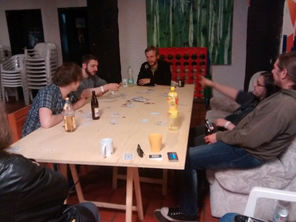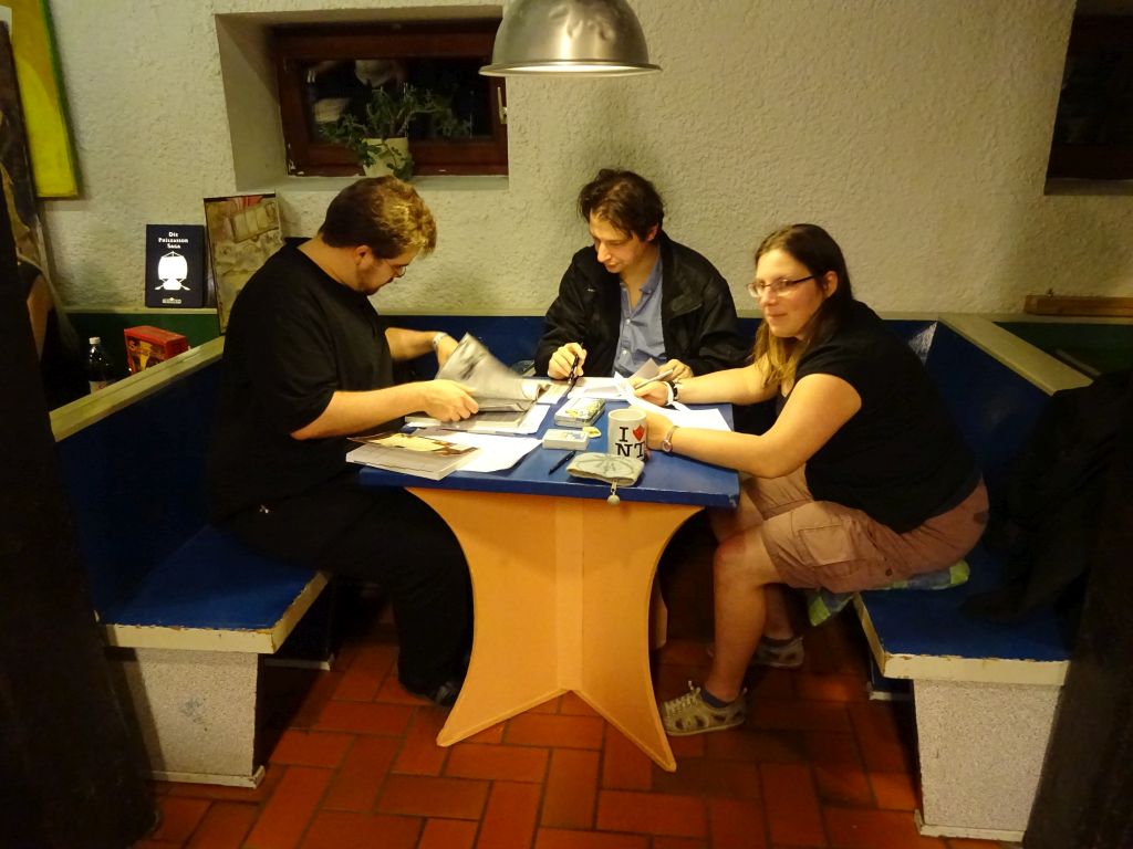 Im Vorfeld: Also irgendwie war von Anfang an der Wurm drin. Die Vorbereitungen zu den 24. Namenlosen Tagen waren ein auf und nieder und vor allem von Rückschlägen gezeichnet. Zunächst hatte man den Plan, die Menge der Spieltische um 10% zu erhöhen, da man den Schlafsaal in die neue, benachbarte Kita auslagern konnte und im Jugendhaus kleine bauliche Veränderungen vorgenommen wurden. Doch als es dann hieß, man könne die obere Etage nicht mehr nutzen, fing der Schlamassel an. Ursprünglich sollte Robert Corvus gemeinsam mit Bernhard Hennen am Freitag eine Lesung veranstalten, ersterer musste dann aber einem anderen Termin den Vorzug geben. Weitere kleine Probleme mussten aus dem Weg geräumt werden, aber als dann unsere lieb gewonnene Putzfrau in den verdienten Ruhestand ging, sah sich die Orga schon am Sonntag bis 0 Uhr im Kindergarten die Böden wischen. Letztendlich konnte in der letzten Woche vor den Namenlosen Tagen alles in die richtigen Bahnen gelenkt werden und man harrte gespannt der Dinge, die da kommen sollten.