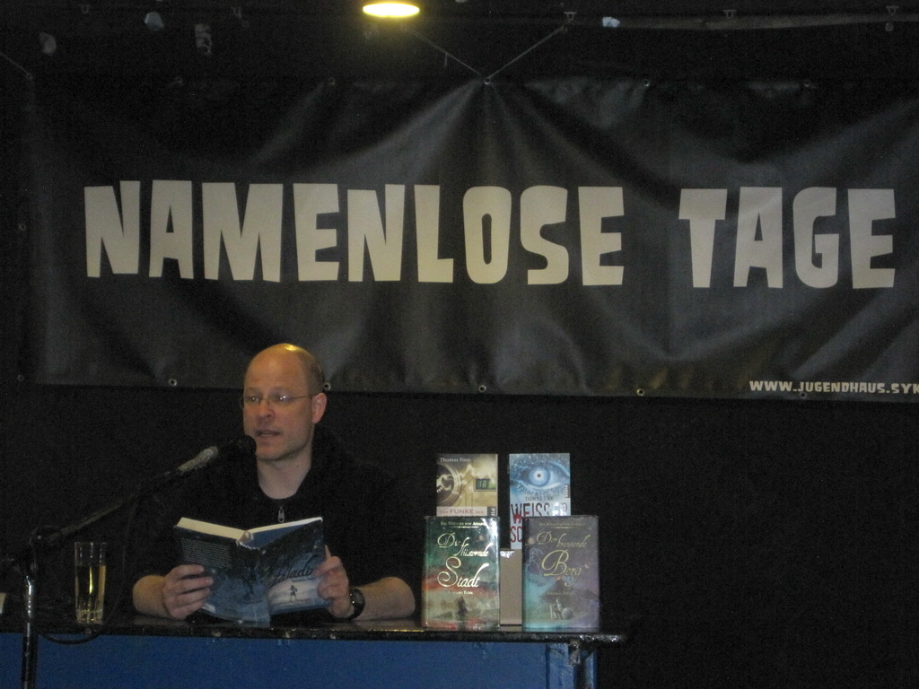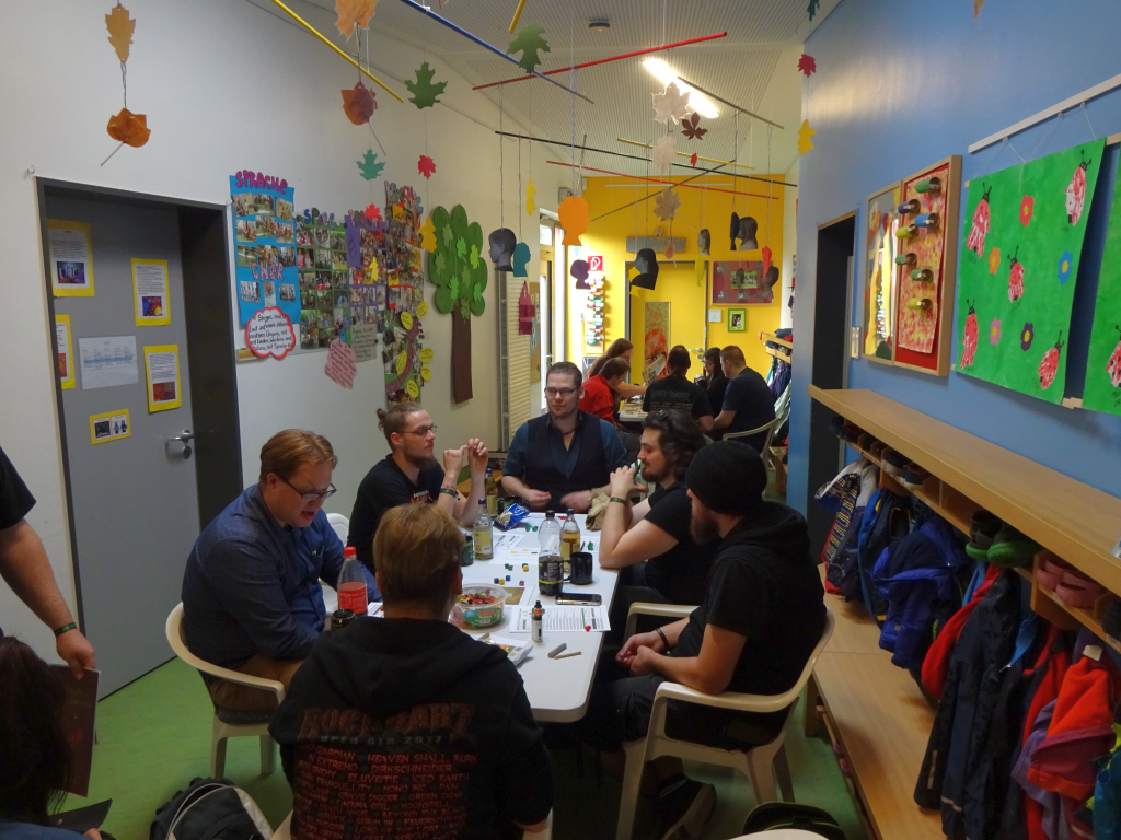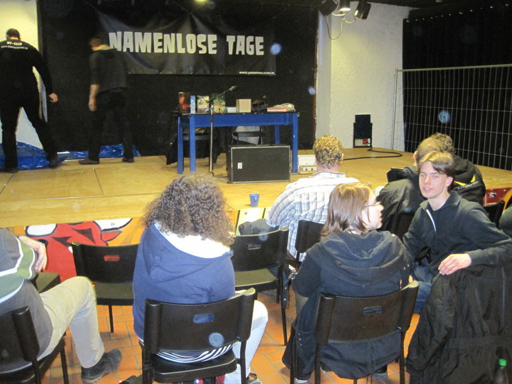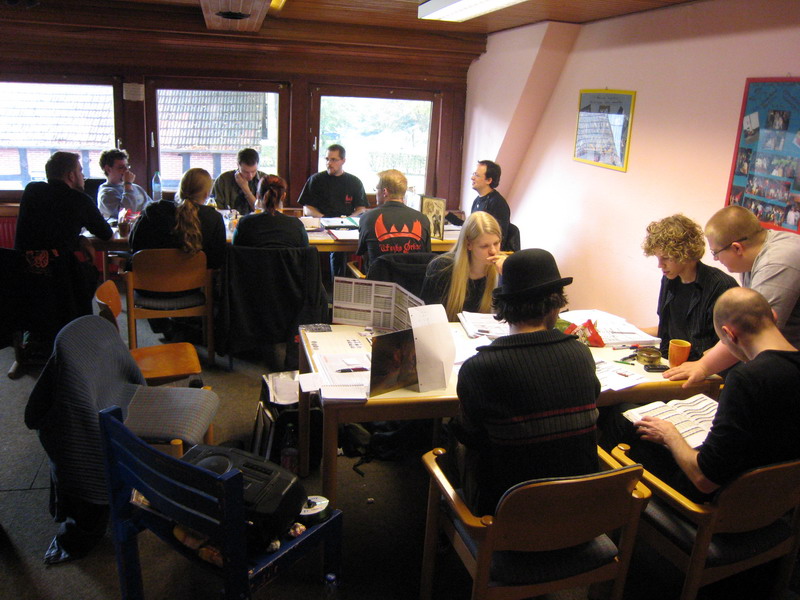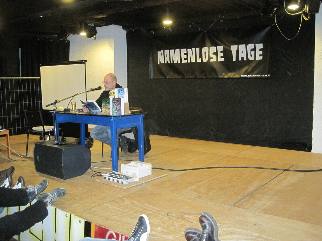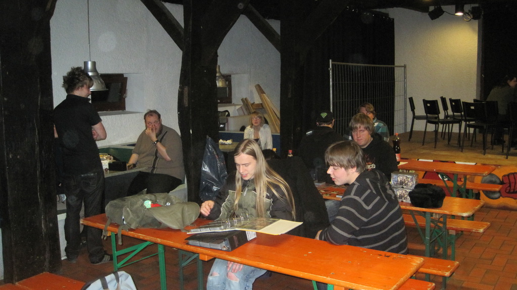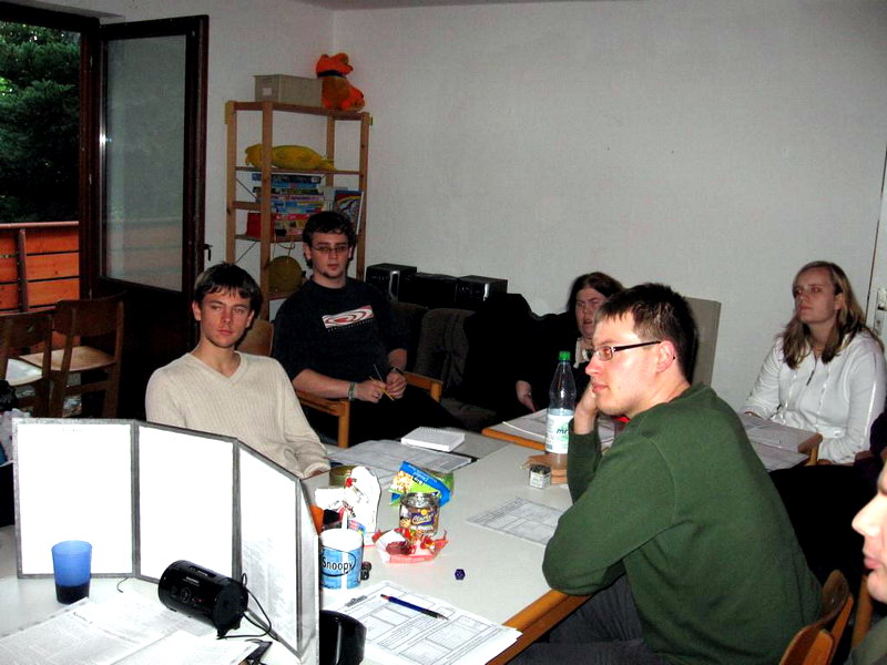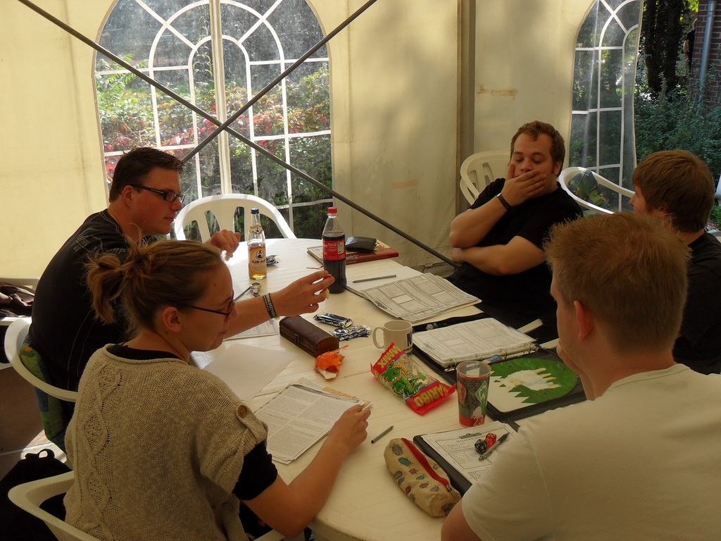 Im Vorfeld: Also irgendwie war von Anfang an der Wurm drin. Die Vorbereitungen zu den 24. Namenlosen Tagen waren ein auf und nieder und vor allem von Rückschlägen gezeichnet. Zunächst hatte man den Plan, die Menge der Spieltische um 10% zu erhöhen, da man den Schlafsaal in die neue, benachbarte Kita auslagern konnte und im Jugendhaus kleine bauliche Veränderungen vorgenommen wurden. Doch als es dann hieß, man könne die obere Etage nicht mehr nutzen, fing der Schlamassel an. Ursprünglich sollte Robert Corvus gemeinsam mit Bernhard Hennen am Freitag eine Lesung veranstalten, ersterer musste dann aber einem anderen Termin den Vorzug geben. Weitere kleine Probleme mussten aus dem Weg geräumt werden, aber als dann unsere lieb gewonnene Putzfrau in den verdienten Ruhestand ging, sah sich die Orga schon am Sonntag bis 0 Uhr im Kindergarten die Böden wischen. Letztendlich konnte in der letzten Woche vor den Namenlosen Tagen alles in die richtigen Bahnen gelenkt werden und man harrte gespannt der Dinge, die da kommen sollten.