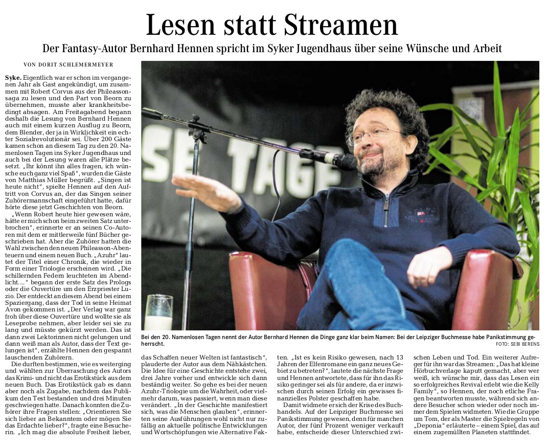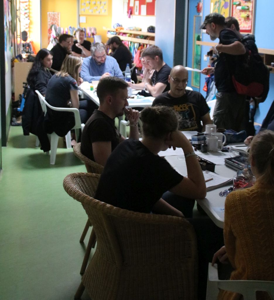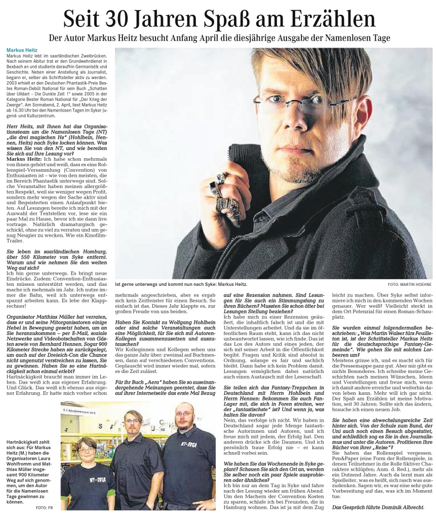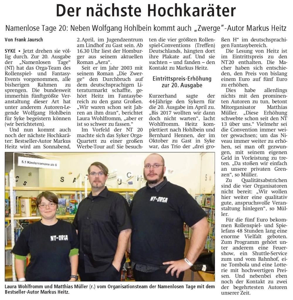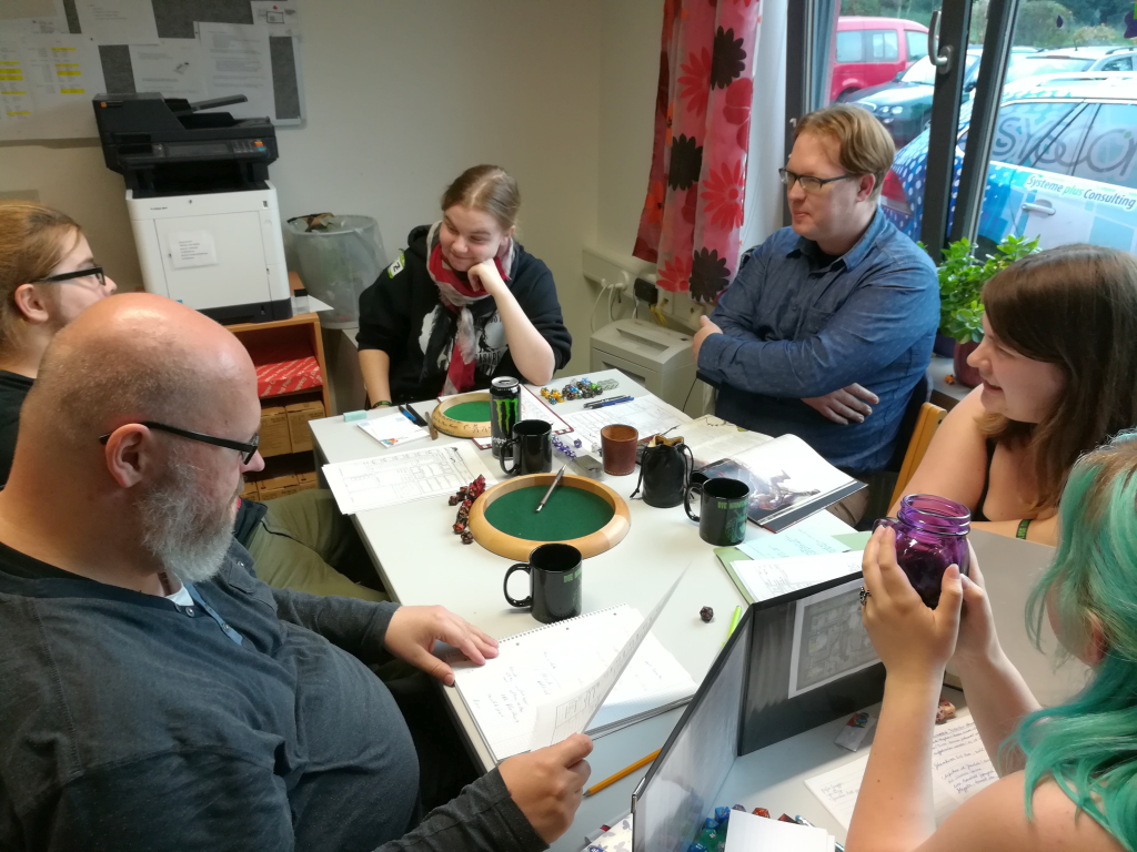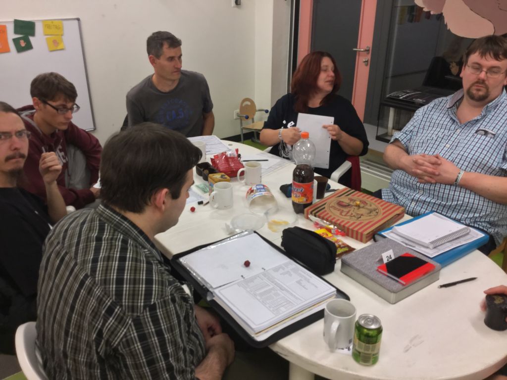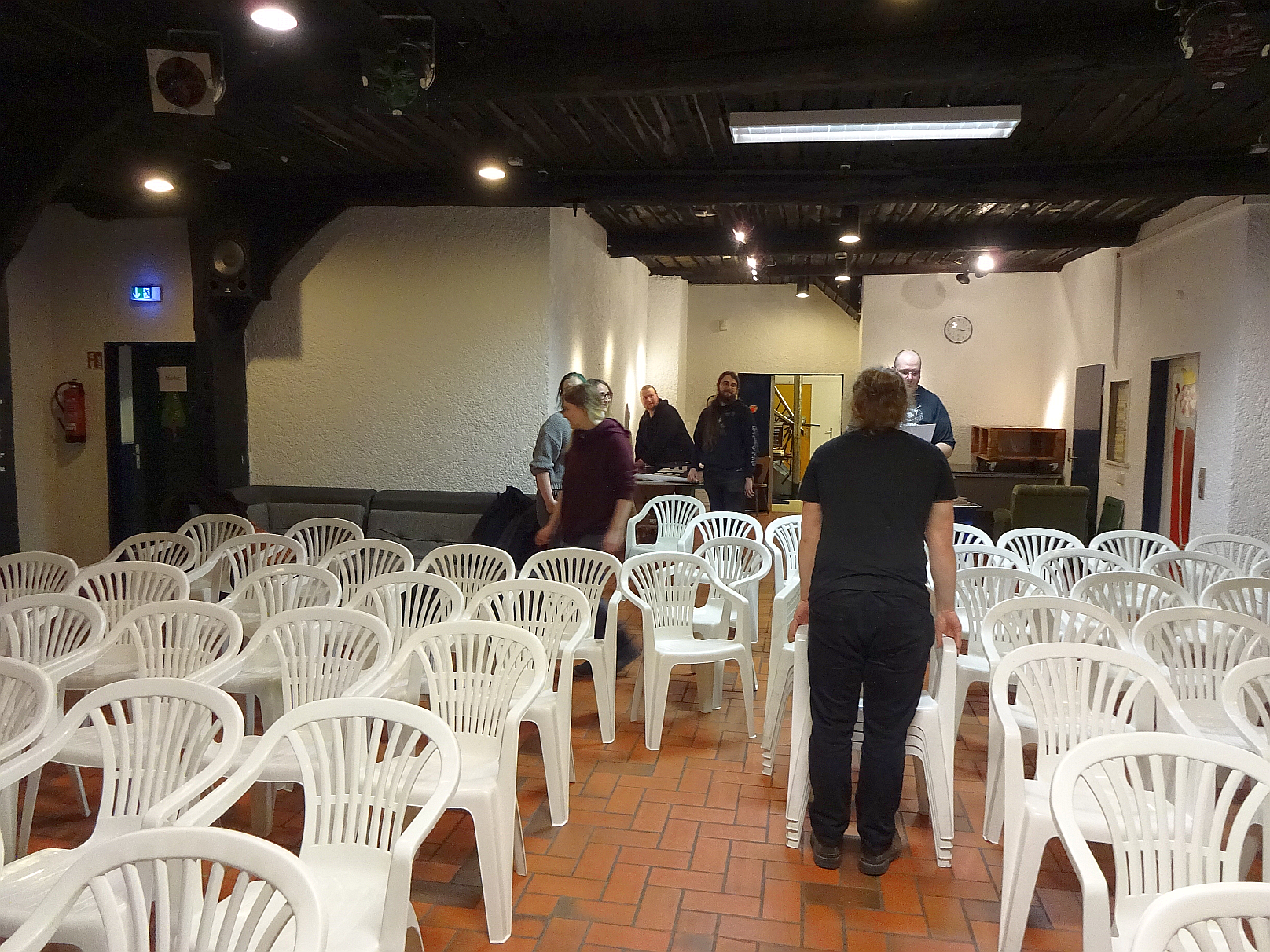 Im Vorfeld: Also irgendwie war von Anfang an der Wurm drin. Die Vorbereitungen zu den 24. Namenlosen Tagen waren ein auf und nieder und vor allem von Rückschlägen gezeichnet. Zunächst hatte man den Plan, die Menge der Spieltische um 10% zu erhöhen, da man den Schlafsaal in die neue, benachbarte Kita auslagern konnte und im Jugendhaus kleine bauliche Veränderungen vorgenommen wurden. Doch als es dann hieß, man könne die obere Etage nicht mehr nutzen, fing der Schlamassel an. Ursprünglich sollte Robert Corvus gemeinsam mit Bernhard Hennen am Freitag eine Lesung veranstalten, ersterer musste dann aber einem anderen Termin den Vorzug geben. Weitere kleine Probleme mussten aus dem Weg geräumt werden, aber als dann unsere lieb gewonnene Putzfrau in den verdienten Ruhestand ging, sah sich die Orga schon am Sonntag bis 0 Uhr im Kindergarten die Böden wischen. Letztendlich konnte in der letzten Woche vor den Namenlosen Tagen alles in die richtigen Bahnen gelenkt werden und man harrte gespannt der Dinge, die da kommen sollten.