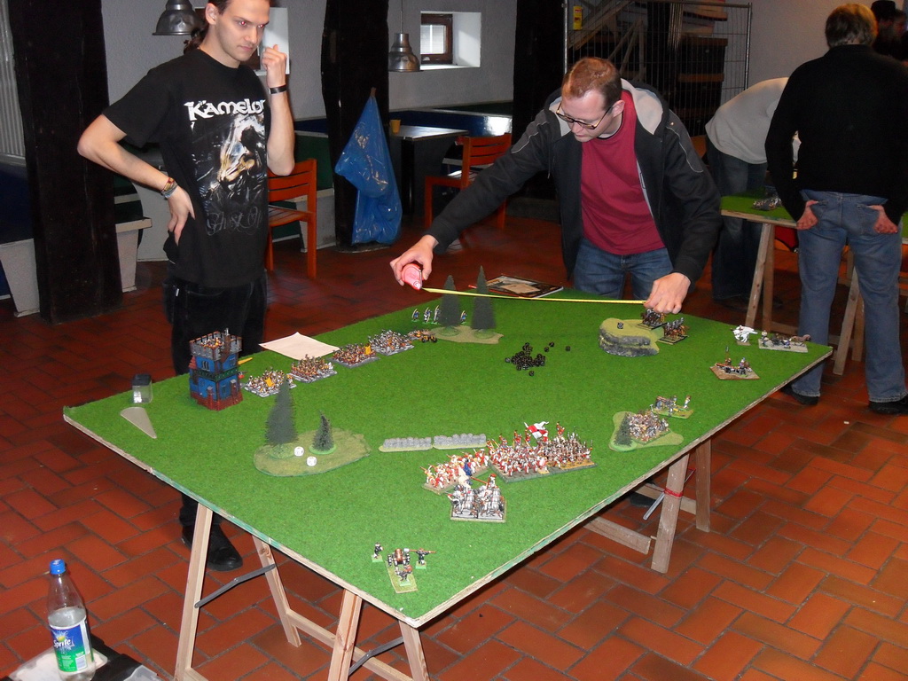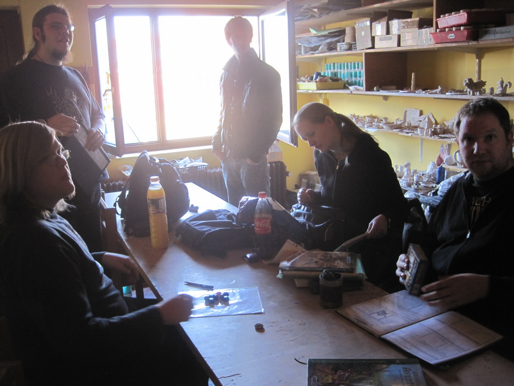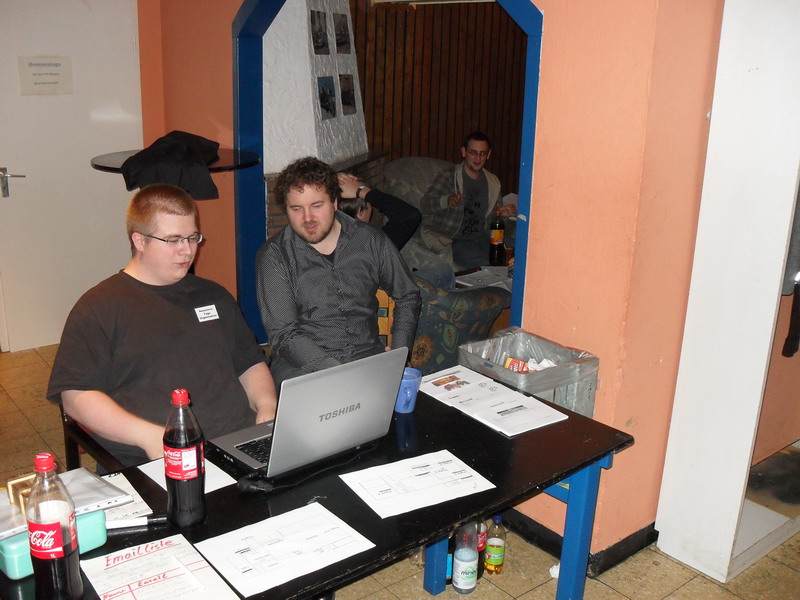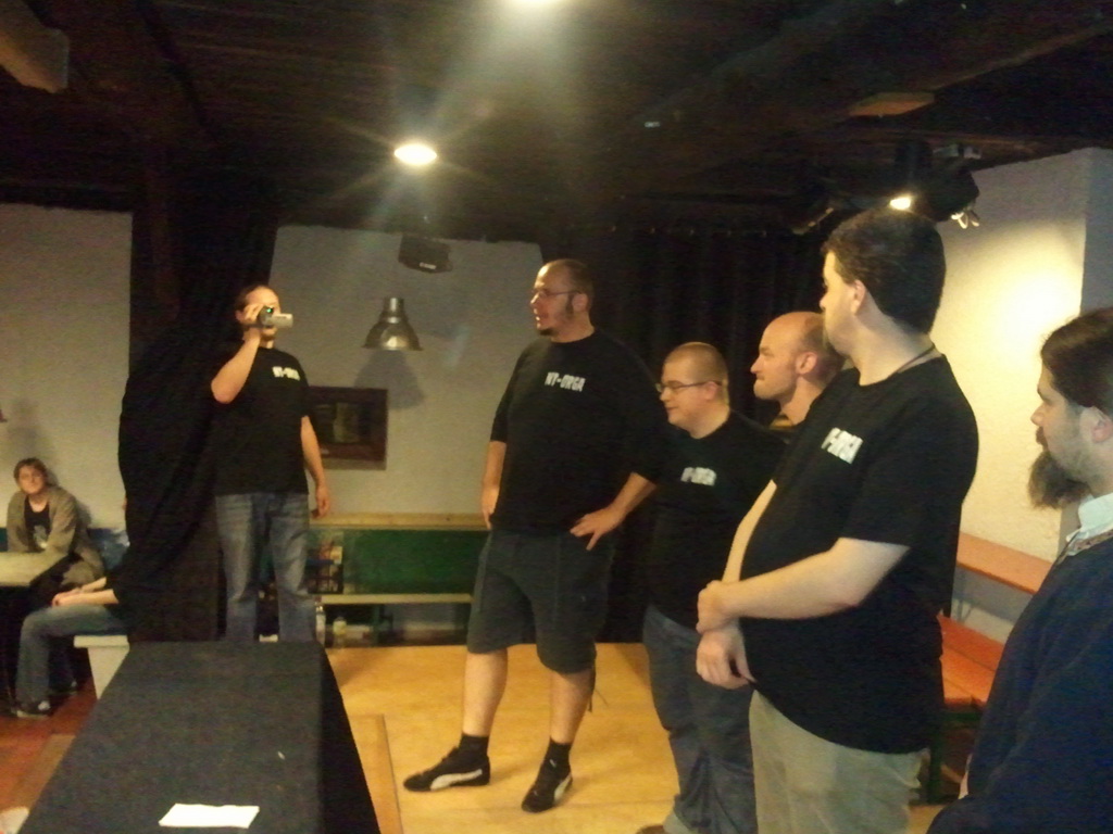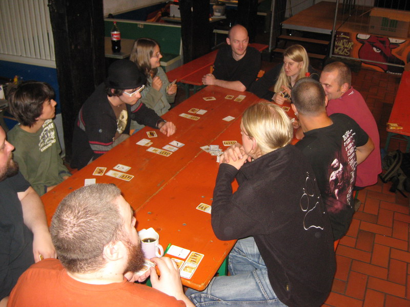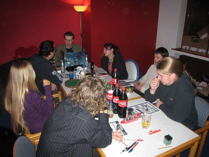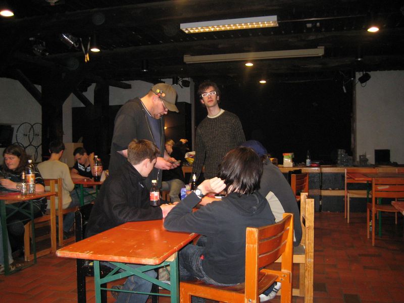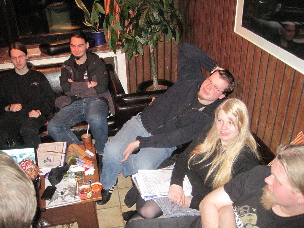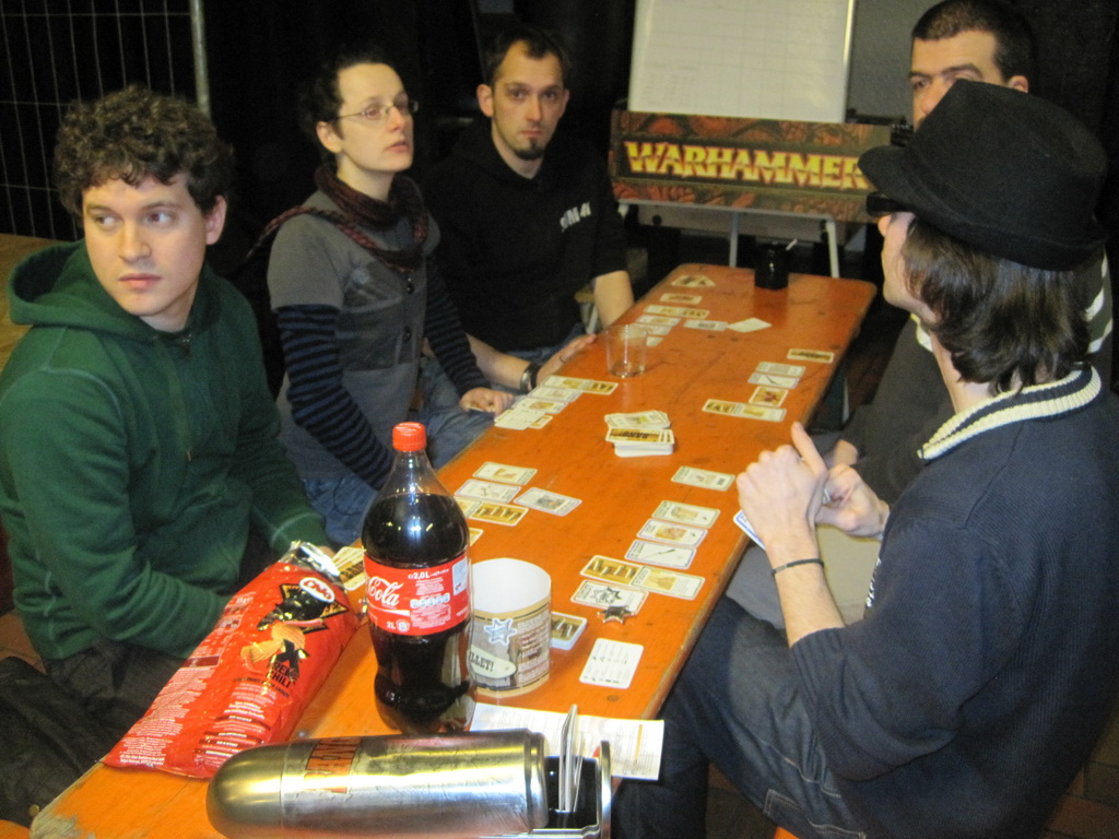 NT12: Ein eiskalter Wind schien die Besucher am Freitag der Veranstaltung in unser warmes Haus zu treiben. Man sammelte sich kurze Hand in kleinen Gruppen und begann das Haus zu einem Gesellschaftsspiel Tempel umzubauen. Eine noch nie gesehene Vielfalt an Brett- und Kartenspielen überraschte genauso, wie die neue Rekordmarke von 121 Besucher für den ersten Abend. Der Samstag wurde sowohl von weiteren eintreffenden Gästen, als auch dem Warhammer Fantasy Turnier eingeleitet. Der Himmel klarte nur für wenige Sonnenstrahlen auf, bevor der eisige Wind die Wolken wieder zu einer grauen Masse verband. Die Rollenspieler kuschelten sich zusammen und liefen, wie der Heizpilz im Zelt, zur Höchstform auf. Bis zum Abend waren das Haus und die Spielrunden ausgefüllt und den Besuchern wurde vor der Tombola durch eine kleine Feuershow noch einmal kräftig eingeheizt. Im Anschluss konnte verkündet werden, das bereits 185 Gäste den Weg zur NT gefunden haben und dann wurden sich Spielorte für die Nacht gesucht. Das traditionelle Pokerturnier zur späten Stunde konnte erneut eine Rekordteilnehmerzahl verkünden und der Gewinner der Letzten Veranstaltung musste sich geschlagen geben, da ein neuer Champion gekürt wurde. Der Sonntag startete mit dem Eintreffen der Warmaschine Hordes Leuten, welche noch einmal für eine kleine Steigerung der Besucher beitragen konnten. Durch das Nichtzustandekommen der beiden traditionellen Eckpunkte am Sonntag, Magic Turnier und Bogenschießen, blieb auch ein weiterer Schwung neuer Leute verwehrt. Dennoch blühten die Gesellschafts- und Rollenspielbereiche auf und verlebten einen ruhigen Ausklang der Veranstaltung. Zum Schluss der Veranstaltung konnten 208 Besucher gezählt werden und man sah zufrieden den 6 Monate später stattfinden 13. Namenlosen Tagen entgegen... dem Ende.