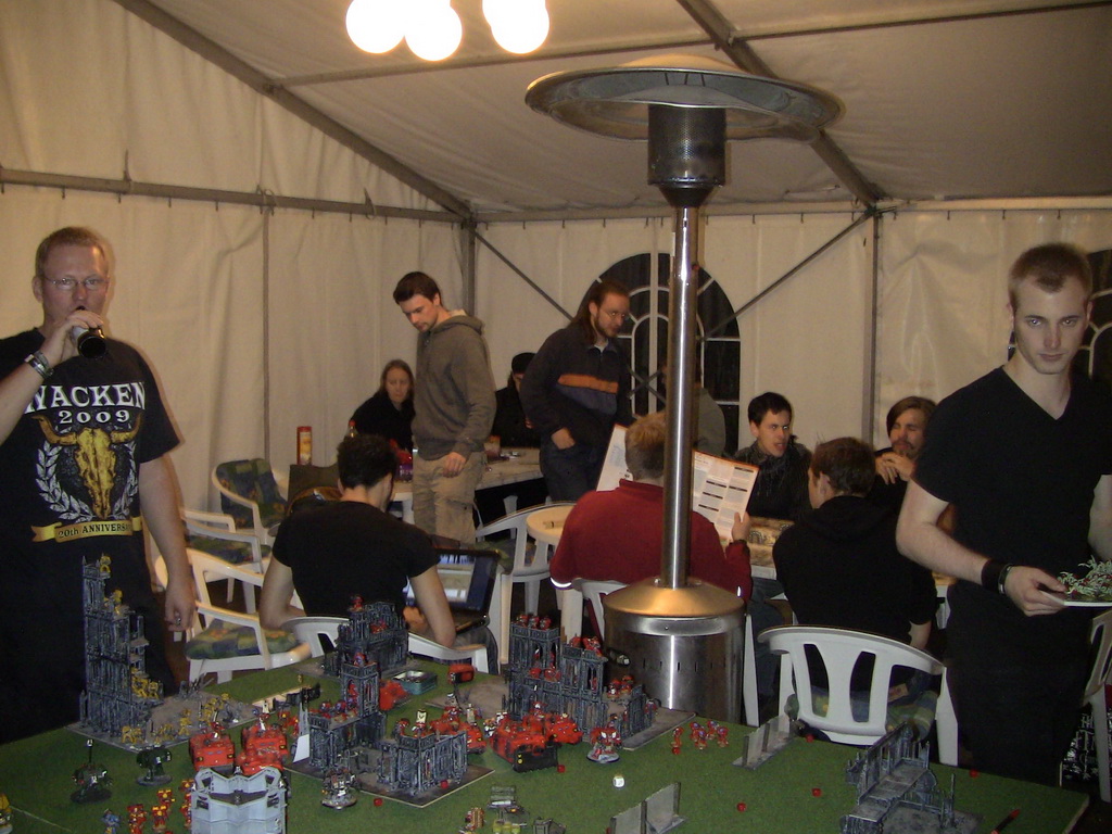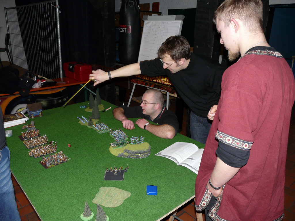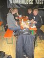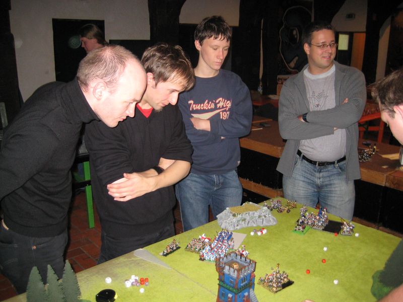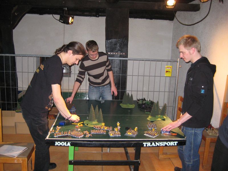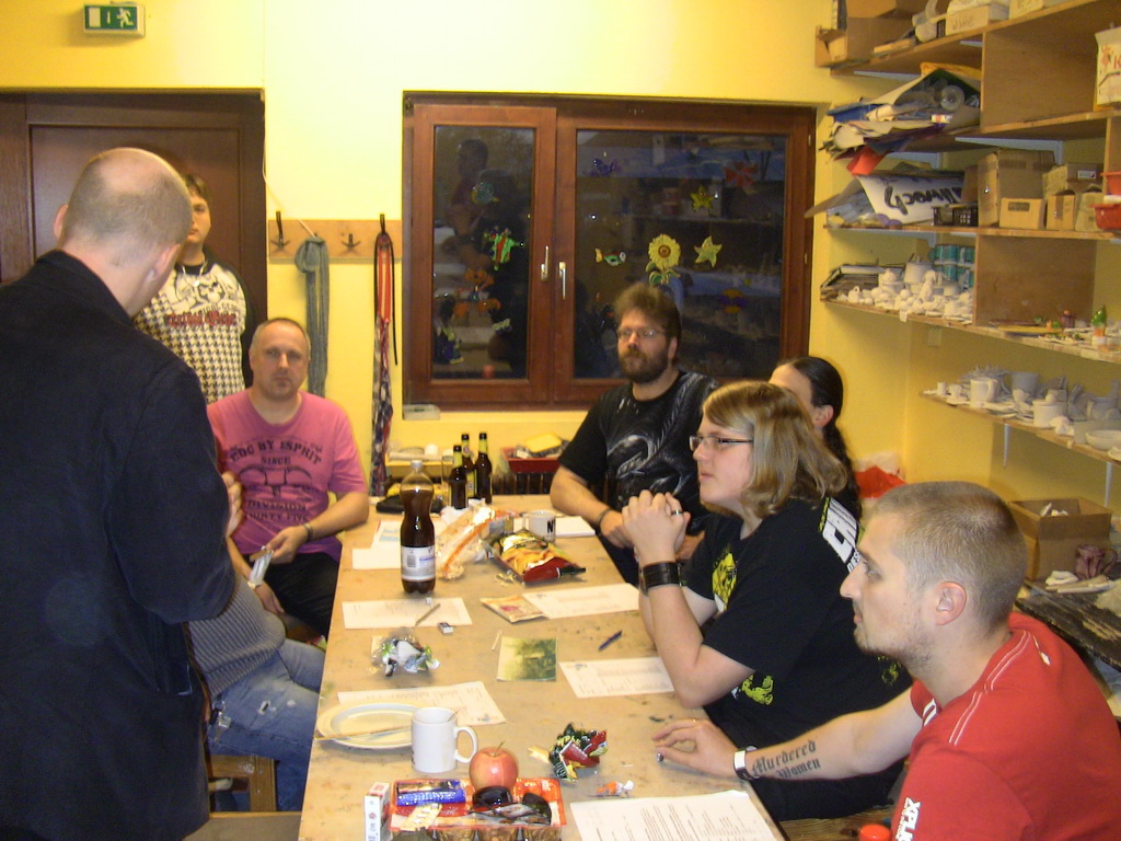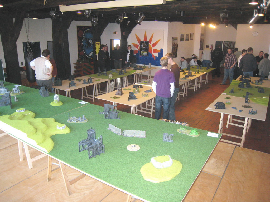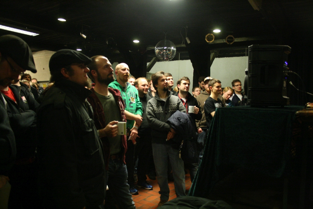 NT12: Ein eiskalter Wind schien die Besucher am Freitag der Veranstaltung in unser warmes Haus zu treiben. Man sammelte sich kurze Hand in kleinen Gruppen und begann das Haus zu einem Gesellschaftsspiel Tempel umzubauen. Eine noch nie gesehene Vielfalt an Brett- und Kartenspielen überraschte genauso, wie die neue Rekordmarke von 121 Besucher für den ersten Abend. Der Samstag wurde sowohl von weiteren eintreffenden Gästen, als auch dem Warhammer Fantasy Turnier eingeleitet. Der Himmel klarte nur für wenige Sonnenstrahlen auf, bevor der eisige Wind die Wolken wieder zu einer grauen Masse verband. Die Rollenspieler kuschelten sich zusammen und liefen, wie der Heizpilz im Zelt, zur Höchstform auf. Bis zum Abend waren das Haus und die Spielrunden ausgefüllt und den Besuchern wurde vor der Tombola durch eine kleine Feuershow noch einmal kräftig eingeheizt. Im Anschluss konnte verkündet werden, das bereits 185 Gäste den Weg zur NT gefunden haben und dann wurden sich Spielorte für die Nacht gesucht. Das traditionelle Pokerturnier zur späten Stunde konnte erneut eine Rekordteilnehmerzahl verkünden und der Gewinner der Letzten Veranstaltung musste sich geschlagen geben, da ein neuer Champion gekürt wurde. Der Sonntag startete mit dem Eintreffen der Warmaschine Hordes Leuten, welche noch einmal für eine kleine Steigerung der Besucher beitragen konnten. Durch das Nichtzustandekommen der beiden traditionellen Eckpunkte am Sonntag, Magic Turnier und Bogenschießen, blieb auch ein weiterer Schwung neuer Leute verwehrt. Dennoch blühten die Gesellschafts- und Rollenspielbereiche auf und verlebten einen ruhigen Ausklang der Veranstaltung. Zum Schluss der Veranstaltung konnten 208 Besucher gezählt werden und man sah zufrieden den 6 Monate später stattfinden 13. Namenlosen Tagen entgegen... dem Ende.