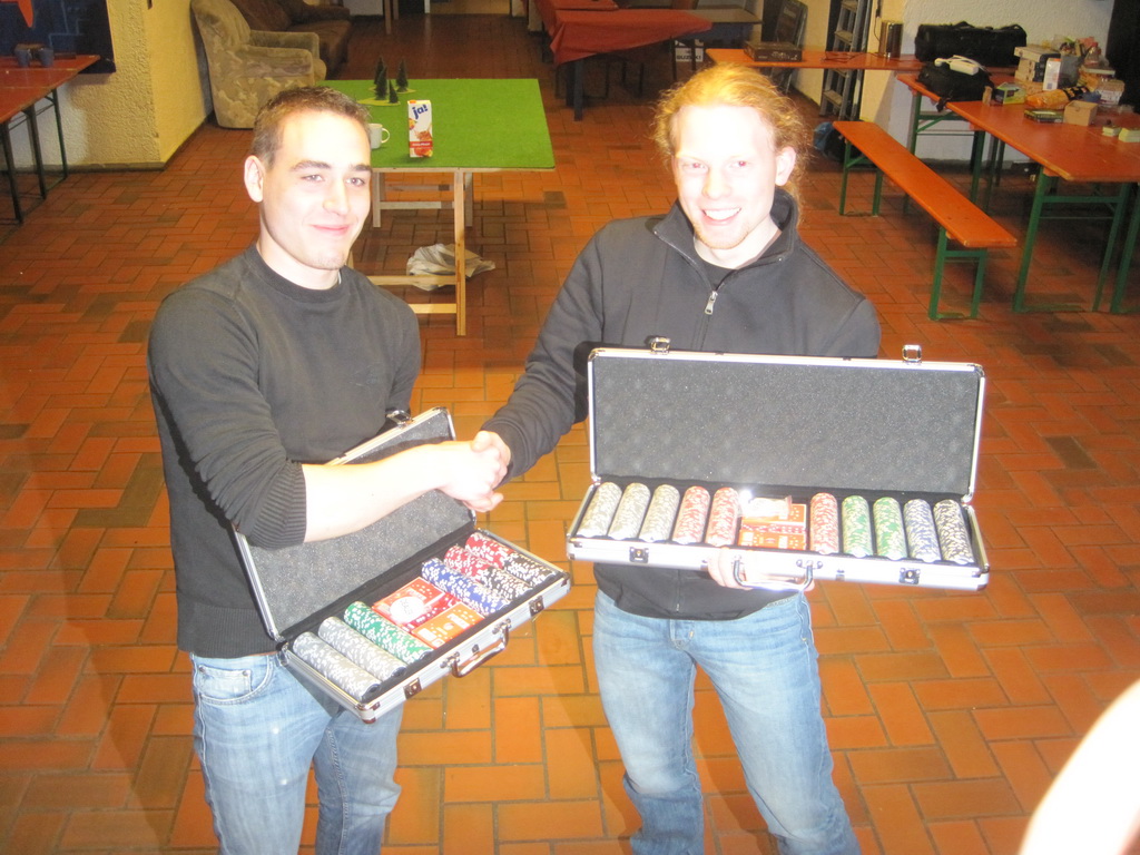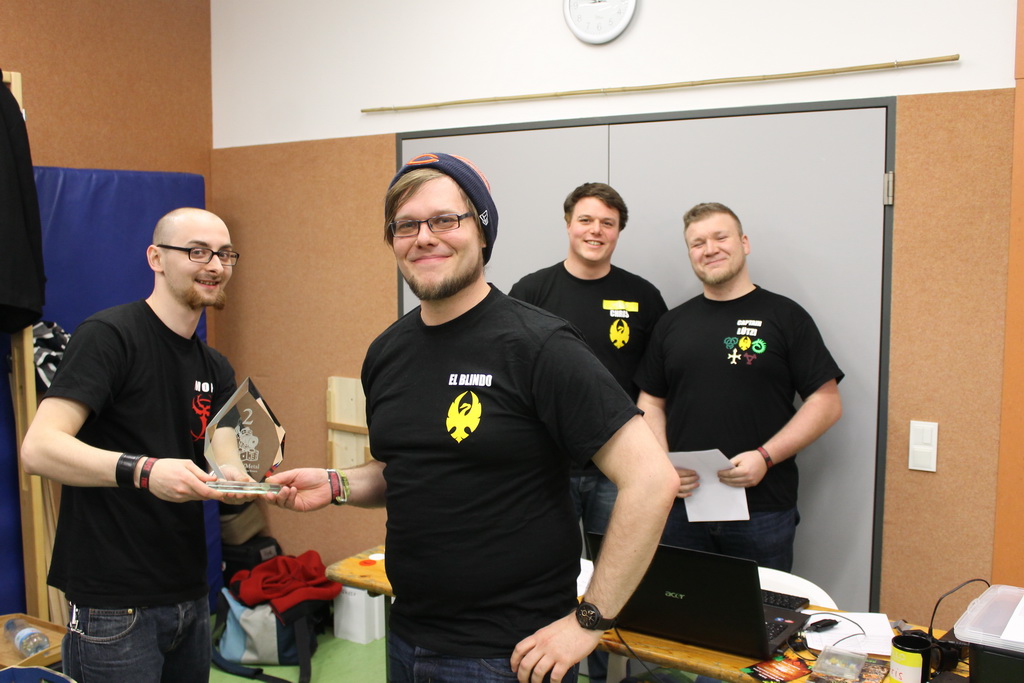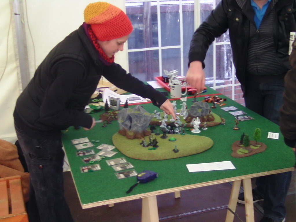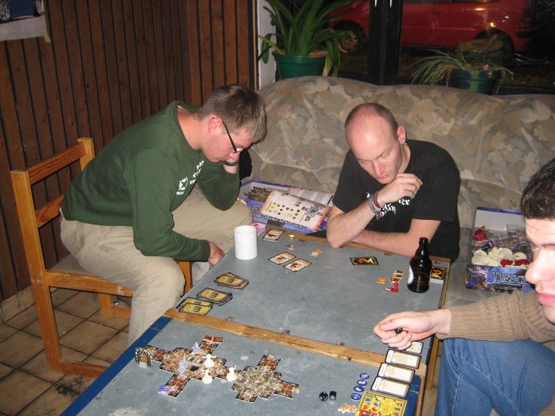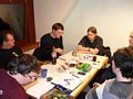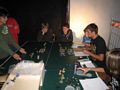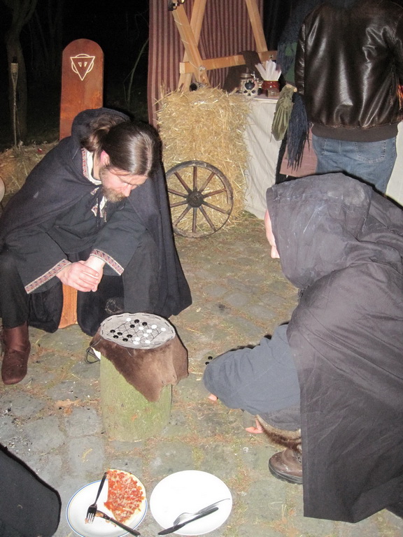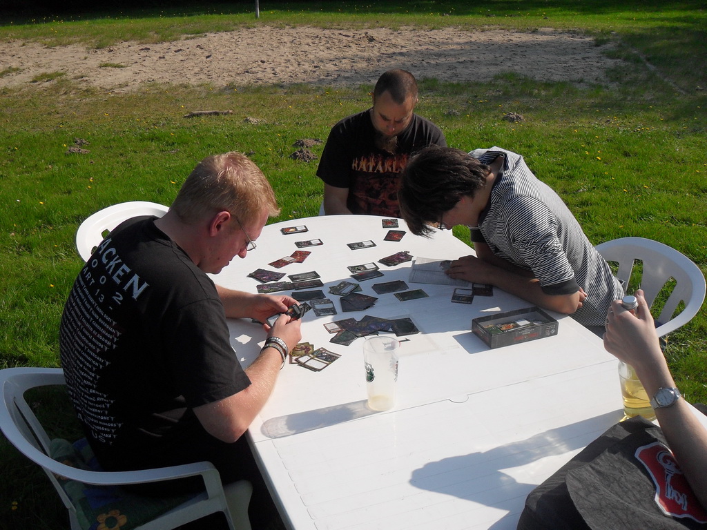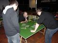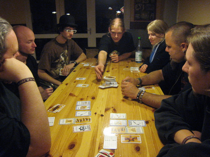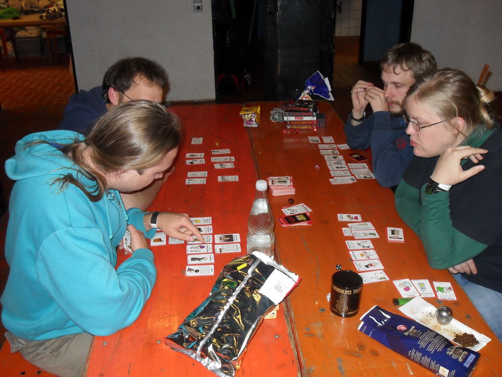 NT12: Ein eiskalter Wind schien die Besucher am Freitag der Veranstaltung in unser warmes Haus zu treiben. Man sammelte sich kurze Hand in kleinen Gruppen und begann das Haus zu einem Gesellschaftsspiel Tempel umzubauen. Eine noch nie gesehene Vielfalt an Brett- und Kartenspielen überraschte genauso, wie die neue Rekordmarke von 121 Besucher für den ersten Abend. Der Samstag wurde sowohl von weiteren eintreffenden Gästen, als auch dem Warhammer Fantasy Turnier eingeleitet. Der Himmel klarte nur für wenige Sonnenstrahlen auf, bevor der eisige Wind die Wolken wieder zu einer grauen Masse verband. Die Rollenspieler kuschelten sich zusammen und liefen, wie der Heizpilz im Zelt, zur Höchstform auf. Bis zum Abend waren das Haus und die Spielrunden ausgefüllt und den Besuchern wurde vor der Tombola durch eine kleine Feuershow noch einmal kräftig eingeheizt. Im Anschluss konnte verkündet werden, das bereits 185 Gäste den Weg zur NT gefunden haben und dann wurden sich Spielorte für die Nacht gesucht. Das traditionelle Pokerturnier zur späten Stunde konnte erneut eine Rekordteilnehmerzahl verkünden und der Gewinner der Letzten Veranstaltung musste sich geschlagen geben, da ein neuer Champion gekürt wurde. Der Sonntag startete mit dem Eintreffen der Warmaschine Hordes Leuten, welche noch einmal für eine kleine Steigerung der Besucher beitragen konnten. Durch das Nichtzustandekommen der beiden traditionellen Eckpunkte am Sonntag, Magic Turnier und Bogenschießen, blieb auch ein weiterer Schwung neuer Leute verwehrt. Dennoch blühten die Gesellschafts- und Rollenspielbereiche auf und verlebten einen ruhigen Ausklang der Veranstaltung. Zum Schluss der Veranstaltung konnten 208 Besucher gezählt werden und man sah zufrieden den 6 Monate später stattfinden 13. Namenlosen Tagen entgegen... dem Ende.