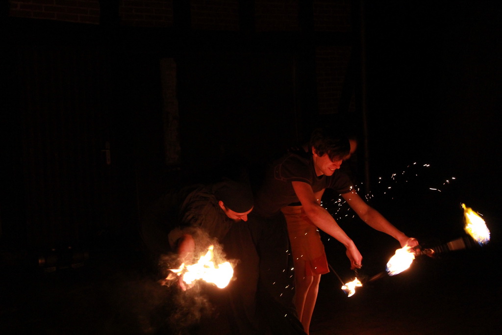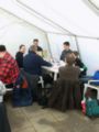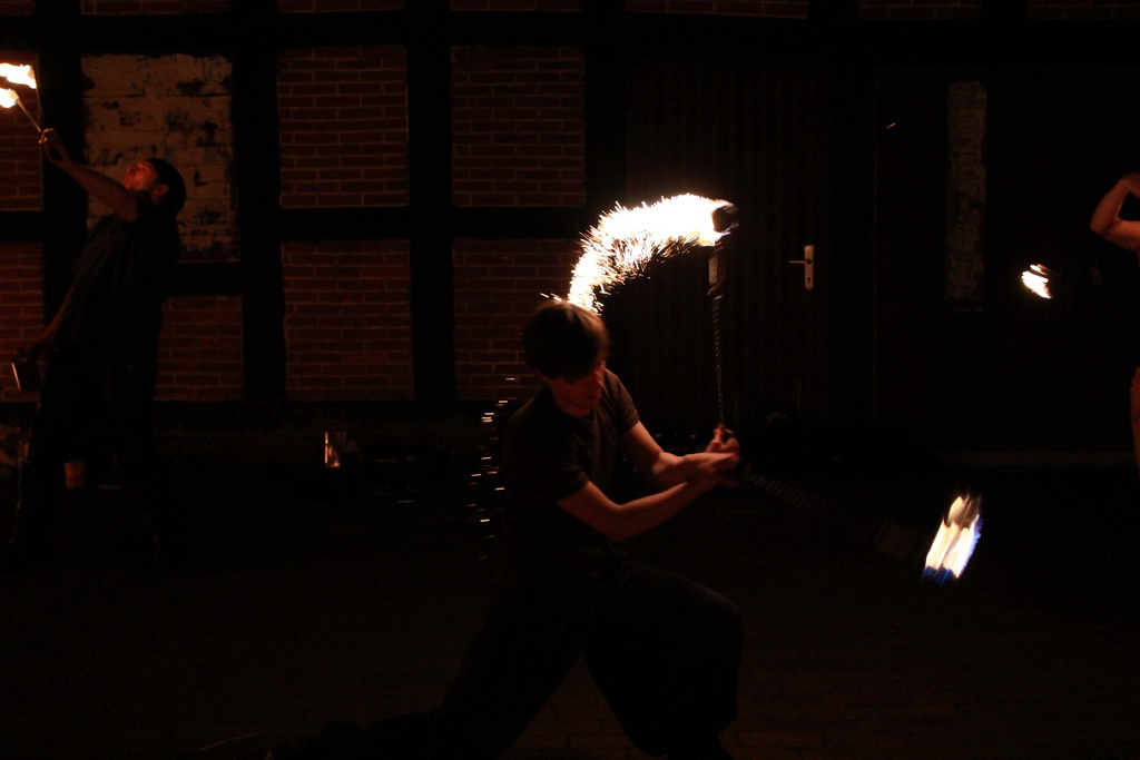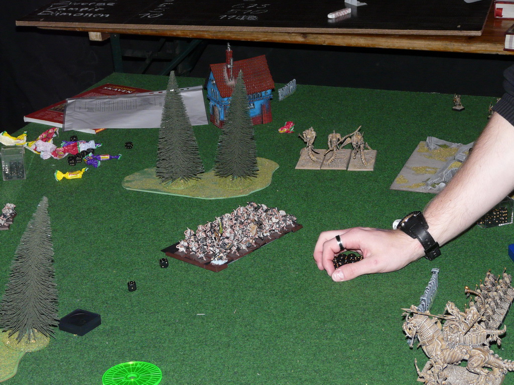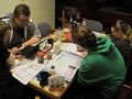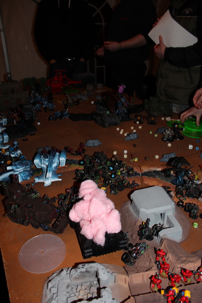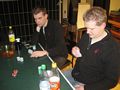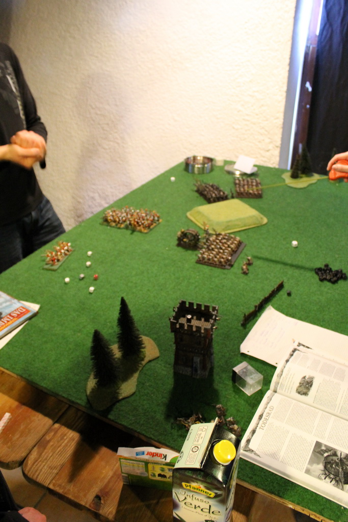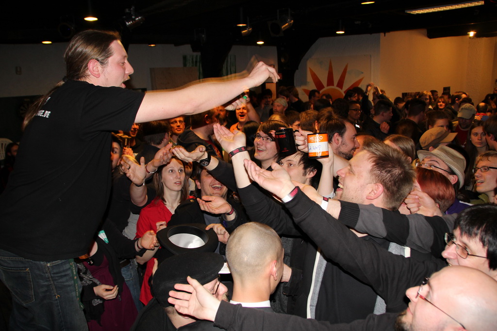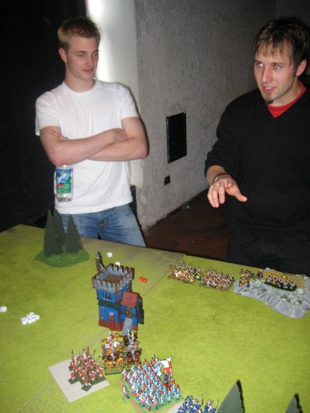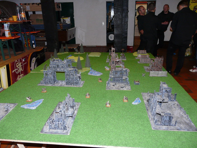 NT12: Ein eiskalter Wind schien die Besucher am Freitag der Veranstaltung in unser warmes Haus zu treiben. Man sammelte sich kurze Hand in kleinen Gruppen und begann das Haus zu einem Gesellschaftsspiel Tempel umzubauen. Eine noch nie gesehene Vielfalt an Brett- und Kartenspielen überraschte genauso, wie die neue Rekordmarke von 121 Besucher für den ersten Abend. Der Samstag wurde sowohl von weiteren eintreffenden Gästen, als auch dem Warhammer Fantasy Turnier eingeleitet. Der Himmel klarte nur für wenige Sonnenstrahlen auf, bevor der eisige Wind die Wolken wieder zu einer grauen Masse verband. Die Rollenspieler kuschelten sich zusammen und liefen, wie der Heizpilz im Zelt, zur Höchstform auf. Bis zum Abend waren das Haus und die Spielrunden ausgefüllt und den Besuchern wurde vor der Tombola durch eine kleine Feuershow noch einmal kräftig eingeheizt. Im Anschluss konnte verkündet werden, das bereits 185 Gäste den Weg zur NT gefunden haben und dann wurden sich Spielorte für die Nacht gesucht. Das traditionelle Pokerturnier zur späten Stunde konnte erneut eine Rekordteilnehmerzahl verkünden und der Gewinner der Letzten Veranstaltung musste sich geschlagen geben, da ein neuer Champion gekürt wurde. Der Sonntag startete mit dem Eintreffen der Warmaschine Hordes Leuten, welche noch einmal für eine kleine Steigerung der Besucher beitragen konnten. Durch das Nichtzustandekommen der beiden traditionellen Eckpunkte am Sonntag, Magic Turnier und Bogenschießen, blieb auch ein weiterer Schwung neuer Leute verwehrt. Dennoch blühten die Gesellschafts- und Rollenspielbereiche auf und verlebten einen ruhigen Ausklang der Veranstaltung. Zum Schluss der Veranstaltung konnten 208 Besucher gezählt werden und man sah zufrieden den 6 Monate später stattfinden 13. Namenlosen Tagen entgegen... dem Ende.