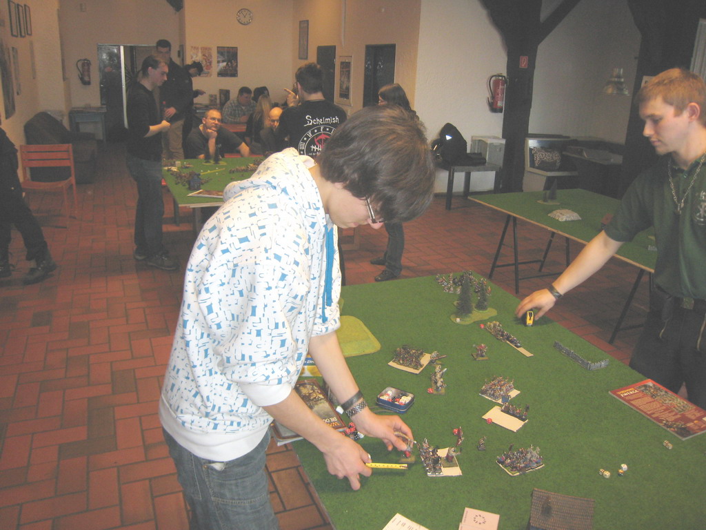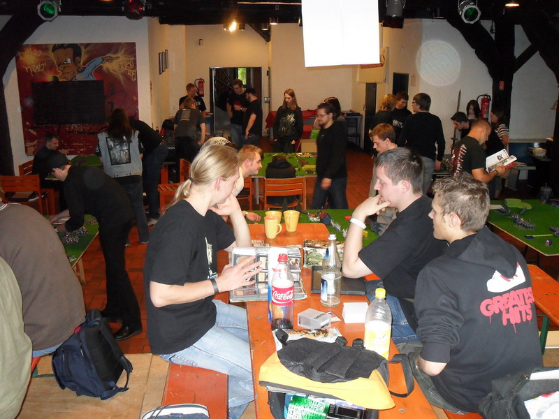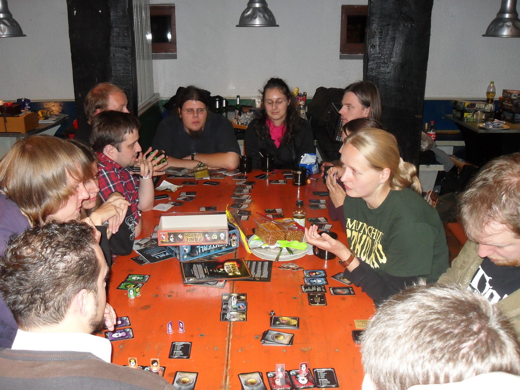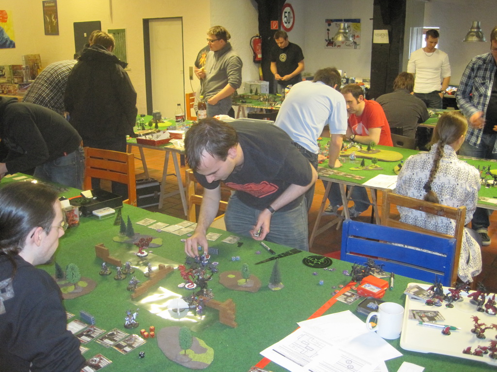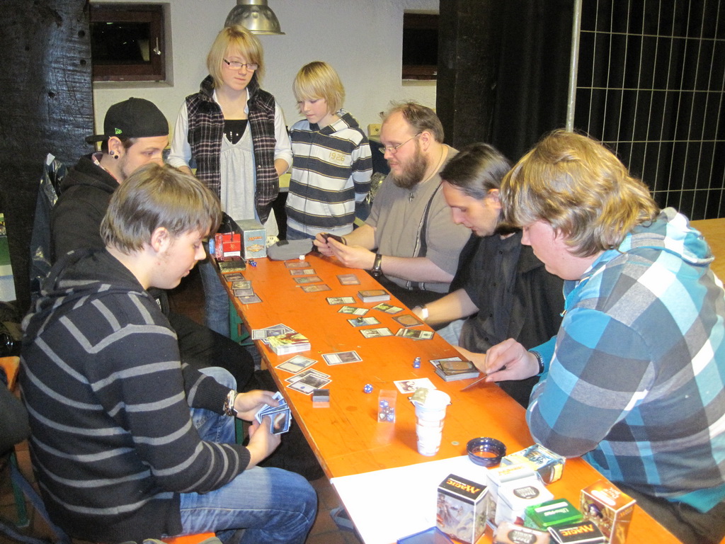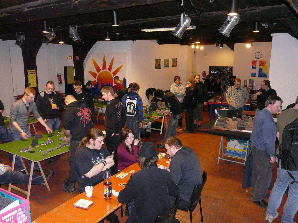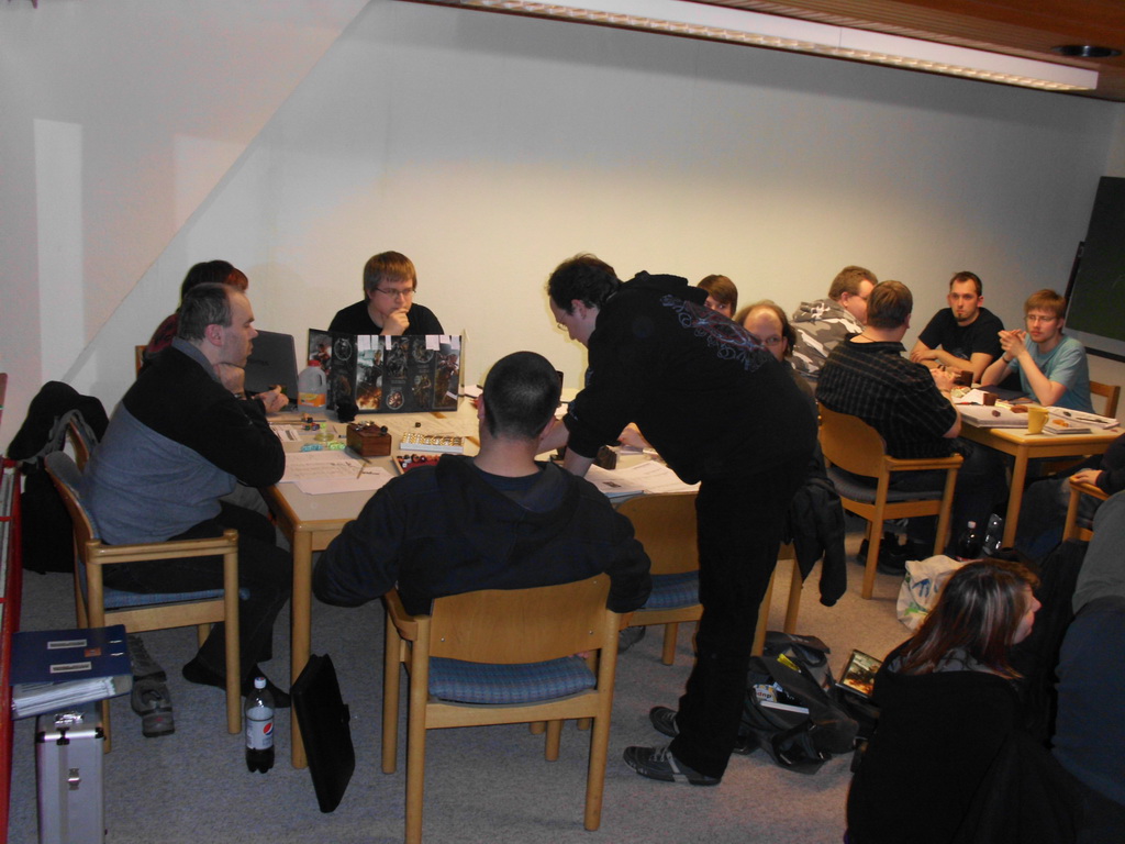 NT11: Der Besucheransturm der vergangenen Veranstaltung, für welchen extra eine Stationskasse eingerichtet wurde, blieb am Freitag aus. Das tat der guten Laune allerdings keinen Abbruch und so konnte man den ersten Abend des Wochenendes mit soliden 90 Gästen ausklingen lassen. Am Samstag, bei fantastischem Herbstwetter, sollte sich dieses allerdings ändern. Das Warhammer Fantasy Turnier überraschte mit der ersten weiblichen Teilnehmerin, welche später nur knapp vor dem Sieg auf Platz 2 landete. Das Munchkin Turnier, welches vom Pegasus Supportteam organisiert wurde, trug zur Unterhaltung in der Diele bei. Die Rollenspieler behaupteten sich und besetzten kurze Hand das restliche Haus. So konnte am Abend bei der Tombola die Zahl von 155 Besuchern verkündet werden. Das Pokerturnier zur späten Stunde vermeldete ebenfalls seine bis dato höchste Teilnehmerzahl und sorgte mit einem neuen Pokerchampion für eine weitere Überraschung, weil dieser bei der Veranstaltung zuvor als erstes vom Tisch ausscheiden musste. Der Sonntag stand dem Samstag vom Wetter und dem Besucherstrom in nichts nach. Das erste Warmaschine Hordes Turnier der NT Geschichte und ein gut besuchtes Magic Turnier sorgten unter anderem dafür, das ein neuer Besucherrekord vermeldet werden konnte. Die Organisatoren zählten mehrmals nach, aber letztendlich stand es fest. Die Besucherschallmauer wurde durchbrochen und man konnte mit einem Rekord von 202 Gästen die Veranstaltung beenden.