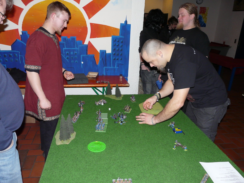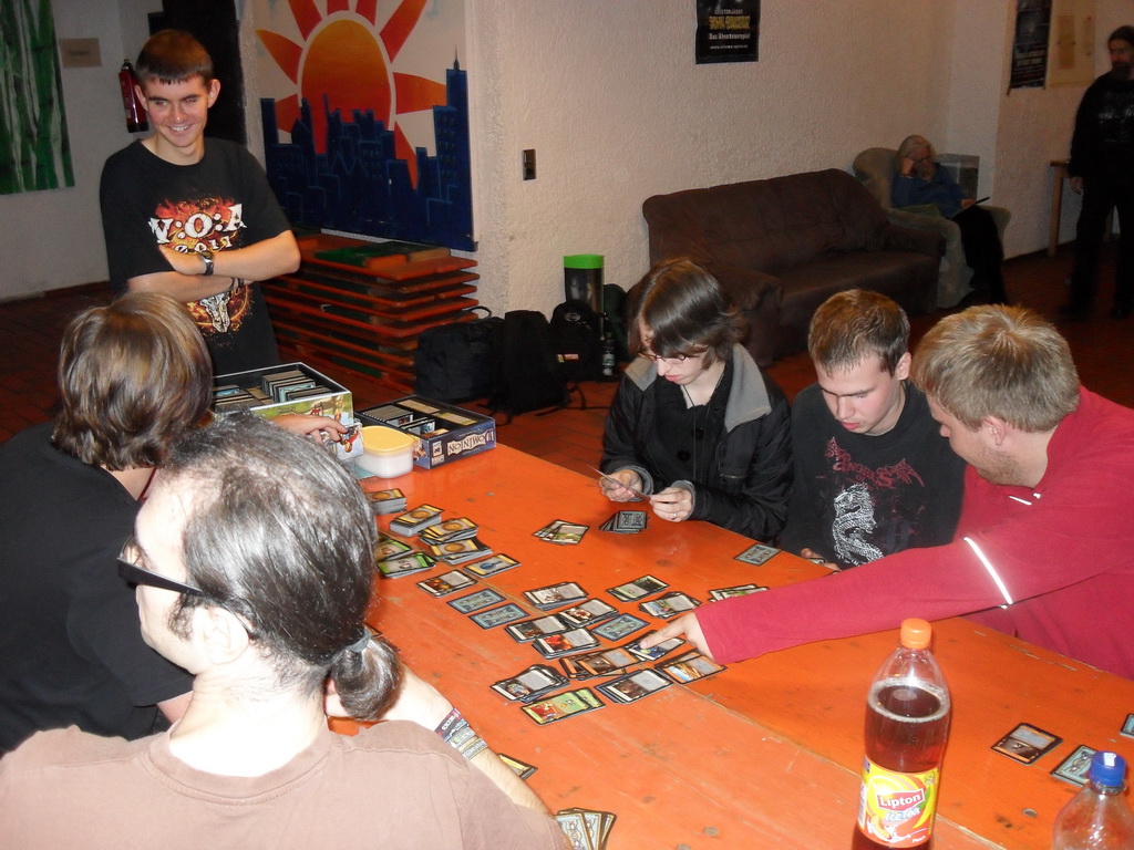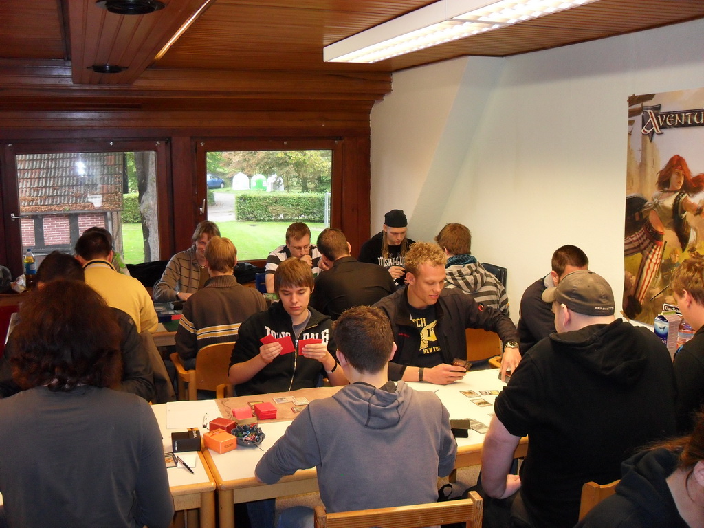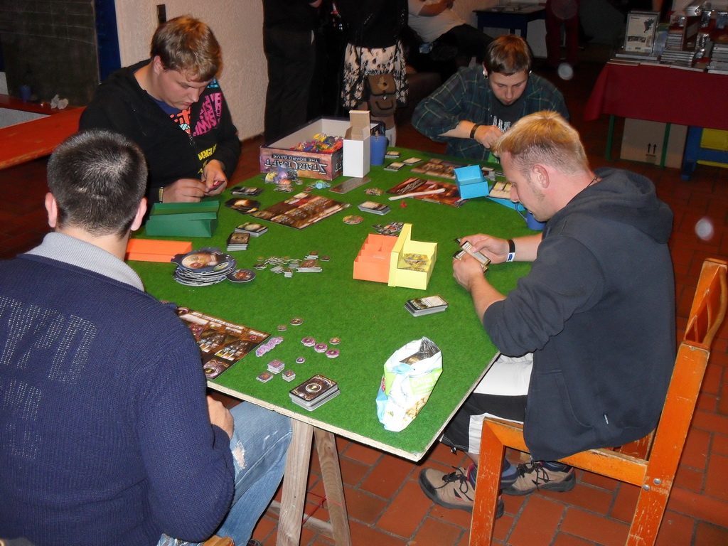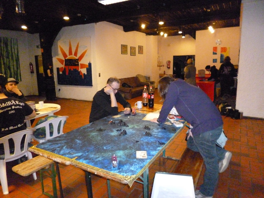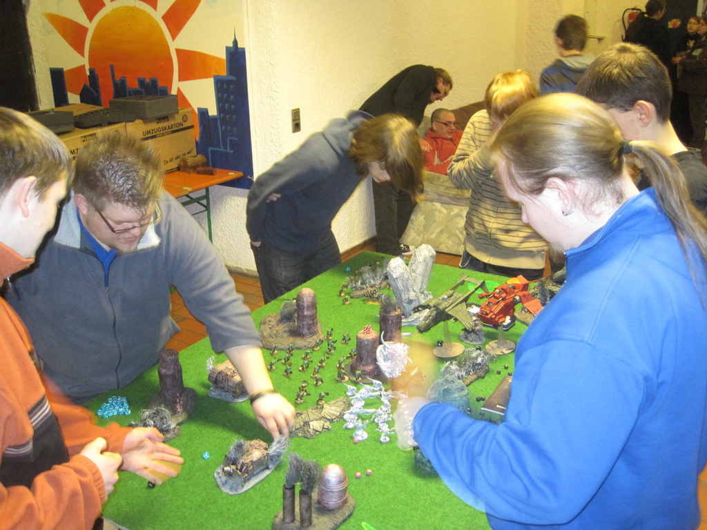 NT11: Der Besucheransturm der vergangenen Veranstaltung, für welchen extra eine Stationskasse eingerichtet wurde, blieb am Freitag aus. Das tat der guten Laune allerdings keinen Abbruch und so konnte man den ersten Abend des Wochenendes mit soliden 90 Gästen ausklingen lassen. Am Samstag, bei fantastischem Herbstwetter, sollte sich dieses allerdings ändern. Das Warhammer Fantasy Turnier überraschte mit der ersten weiblichen Teilnehmerin, welche später nur knapp vor dem Sieg auf Platz 2 landete. Das Munchkin Turnier, welches vom Pegasus Supportteam organisiert wurde, trug zur Unterhaltung in der Diele bei. Die Rollenspieler behaupteten sich und besetzten kurze Hand das restliche Haus. So konnte am Abend bei der Tombola die Zahl von 155 Besuchern verkündet werden. Das Pokerturnier zur späten Stunde vermeldete ebenfalls seine bis dato höchste Teilnehmerzahl und sorgte mit einem neuen Pokerchampion für eine weitere Überraschung, weil dieser bei der Veranstaltung zuvor als erstes vom Tisch ausscheiden musste. Der Sonntag stand dem Samstag vom Wetter und dem Besucherstrom in nichts nach. Das erste Warmaschine Hordes Turnier der NT Geschichte und ein gut besuchtes Magic Turnier sorgten unter anderem dafür, das ein neuer Besucherrekord vermeldet werden konnte. Die Organisatoren zählten mehrmals nach, aber letztendlich stand es fest. Die Besucherschallmauer wurde durchbrochen und man konnte mit einem Rekord von 202 Gästen die Veranstaltung beenden.