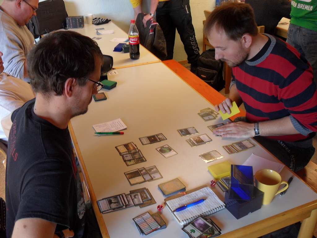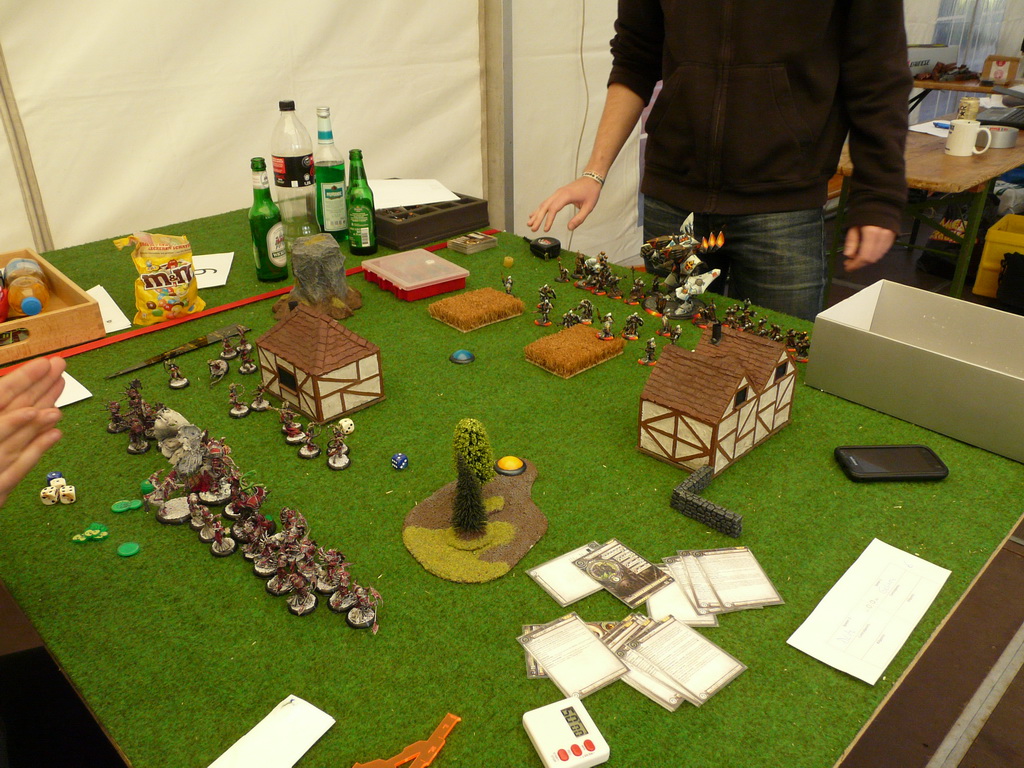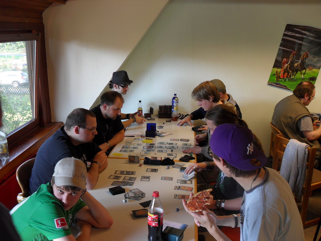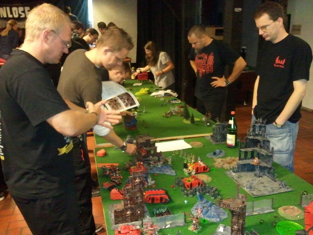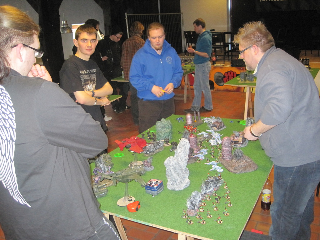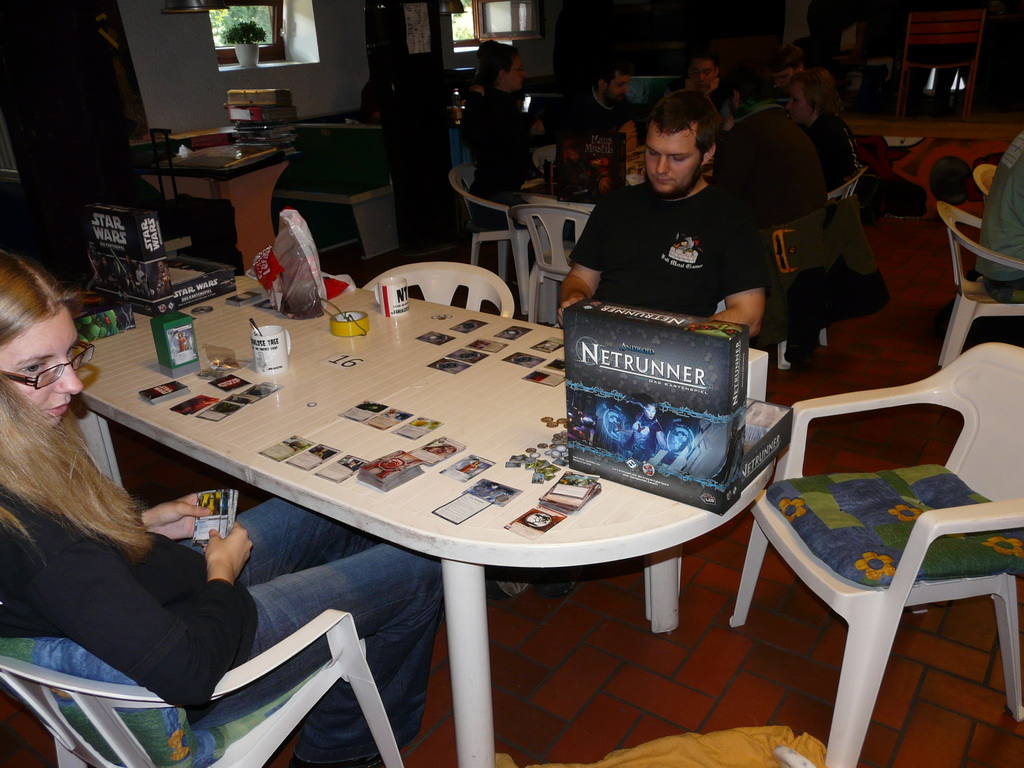 NT11: Der Besucheransturm der vergangenen Veranstaltung, für welchen extra eine Stationskasse eingerichtet wurde, blieb am Freitag aus. Das tat der guten Laune allerdings keinen Abbruch und so konnte man den ersten Abend des Wochenendes mit soliden 90 Gästen ausklingen lassen. Am Samstag, bei fantastischem Herbstwetter, sollte sich dieses allerdings ändern. Das Warhammer Fantasy Turnier überraschte mit der ersten weiblichen Teilnehmerin, welche später nur knapp vor dem Sieg auf Platz 2 landete. Das Munchkin Turnier, welches vom Pegasus Supportteam organisiert wurde, trug zur Unterhaltung in der Diele bei. Die Rollenspieler behaupteten sich und besetzten kurze Hand das restliche Haus. So konnte am Abend bei der Tombola die Zahl von 155 Besuchern verkündet werden. Das Pokerturnier zur späten Stunde vermeldete ebenfalls seine bis dato höchste Teilnehmerzahl und sorgte mit einem neuen Pokerchampion für eine weitere Überraschung, weil dieser bei der Veranstaltung zuvor als erstes vom Tisch ausscheiden musste. Der Sonntag stand dem Samstag vom Wetter und dem Besucherstrom in nichts nach. Das erste Warmaschine Hordes Turnier der NT Geschichte und ein gut besuchtes Magic Turnier sorgten unter anderem dafür, das ein neuer Besucherrekord vermeldet werden konnte. Die Organisatoren zählten mehrmals nach, aber letztendlich stand es fest. Die Besucherschallmauer wurde durchbrochen und man konnte mit einem Rekord von 202 Gästen die Veranstaltung beenden.