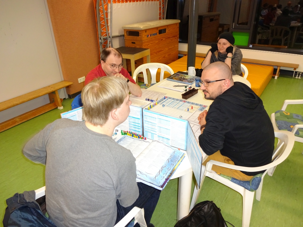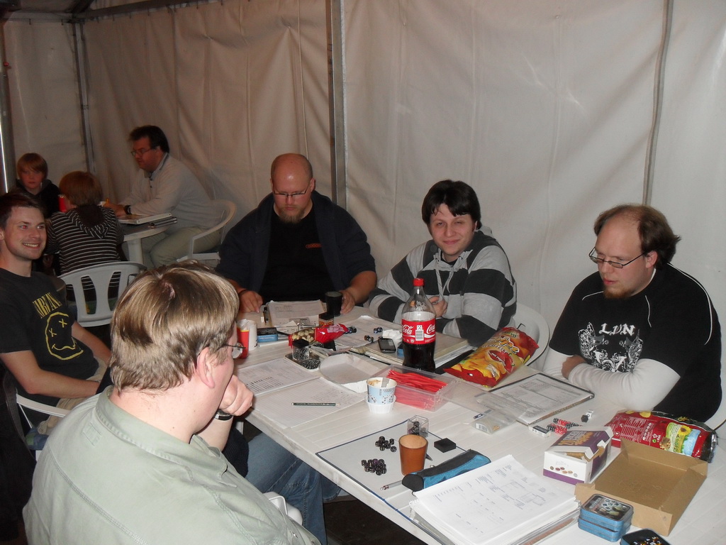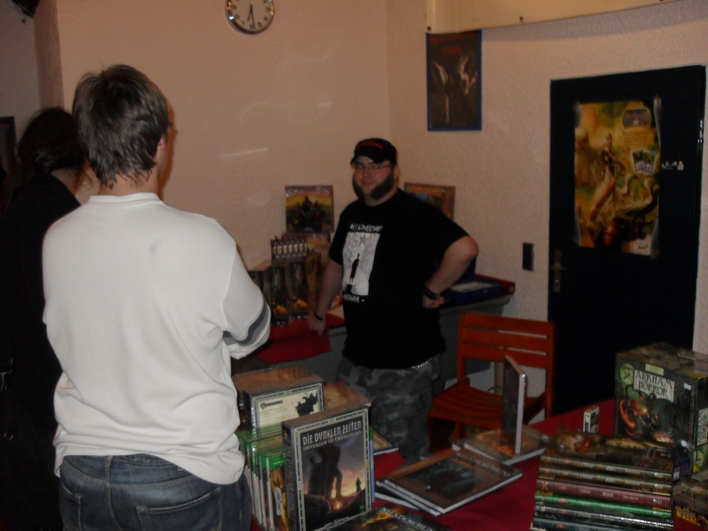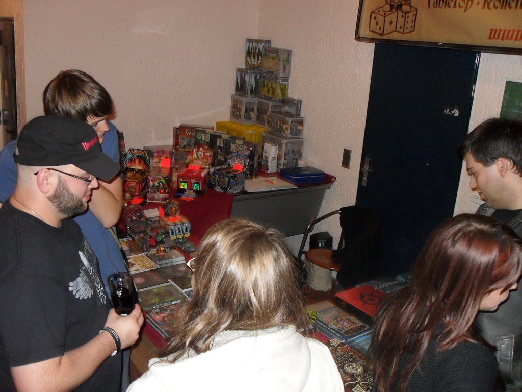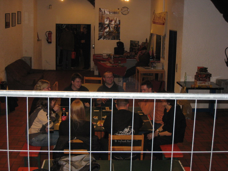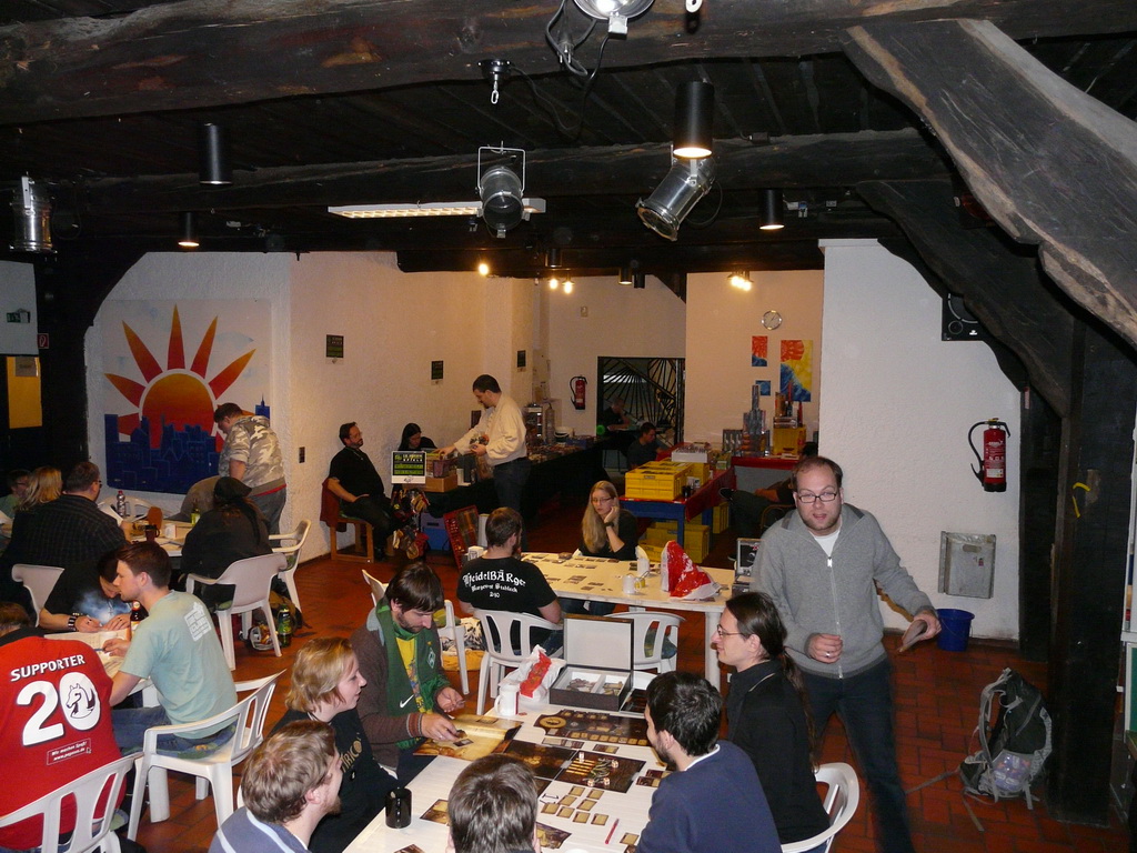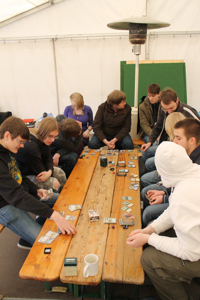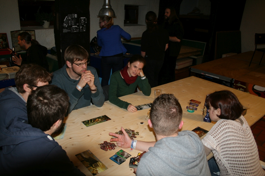 NT24: Bei frischem, wenn doch trockenem Wetter, öffneten sich die Pforten gegen 17:30 Uhr und der Run auf die Tassen im JD Style konnte beginnen. Mit Flatrate und Proviant gewappnet ging es auch schon an die Spieltische. Wer hingegen etwas Kultur genießen wollte, war in der Lesung mit Bernhard Hennen genau richtig. Als der Chilimeister zum Mitternachtsimbiss rief und auch der letzte eine Spielrunde oder bereits einen Platz im Schlafraum der neuen Kita gefunden hatte, ging der Freitag mit einem neuen Besucherrekord von 212 Gästen zu Ende. Am Samstag sollte es spannend werden, ob der Wegfall des Obergeschosses im Jugendhaus auf die Tischreserven auswirken sollte, doch dem war nicht so. Auch einem erneuten Wurststau konnte entgegengewirkt werden, trotz dessen es zu kurzen Wartezeiten beim Grillmeister kam. Mit der Wunschlesung von Bernhard Hennen und Tom Daut wurde auch der Samstag Nachmittag literarisch aufgewertet. Bei der Tombola am Abend konnte man gleich zu Beginn, oder doch am Ende, den verwirrten Gästen eine Besucherzahl von 310 präsentieren. Am Sonntag sollte, ausser beim Grillmeister nichts mehr anbrennen. Die Besucher die es bis dahin geschafft hatten gegen die Müdigkeit anzukämpfen nutzten nochmal ihre Flatrate und spielten bis zur letzten Minute. Mit 321 Gästen, ging die an der Besucherzahl gemessene zweit stärkste Märzveranstaltung zu Ende.